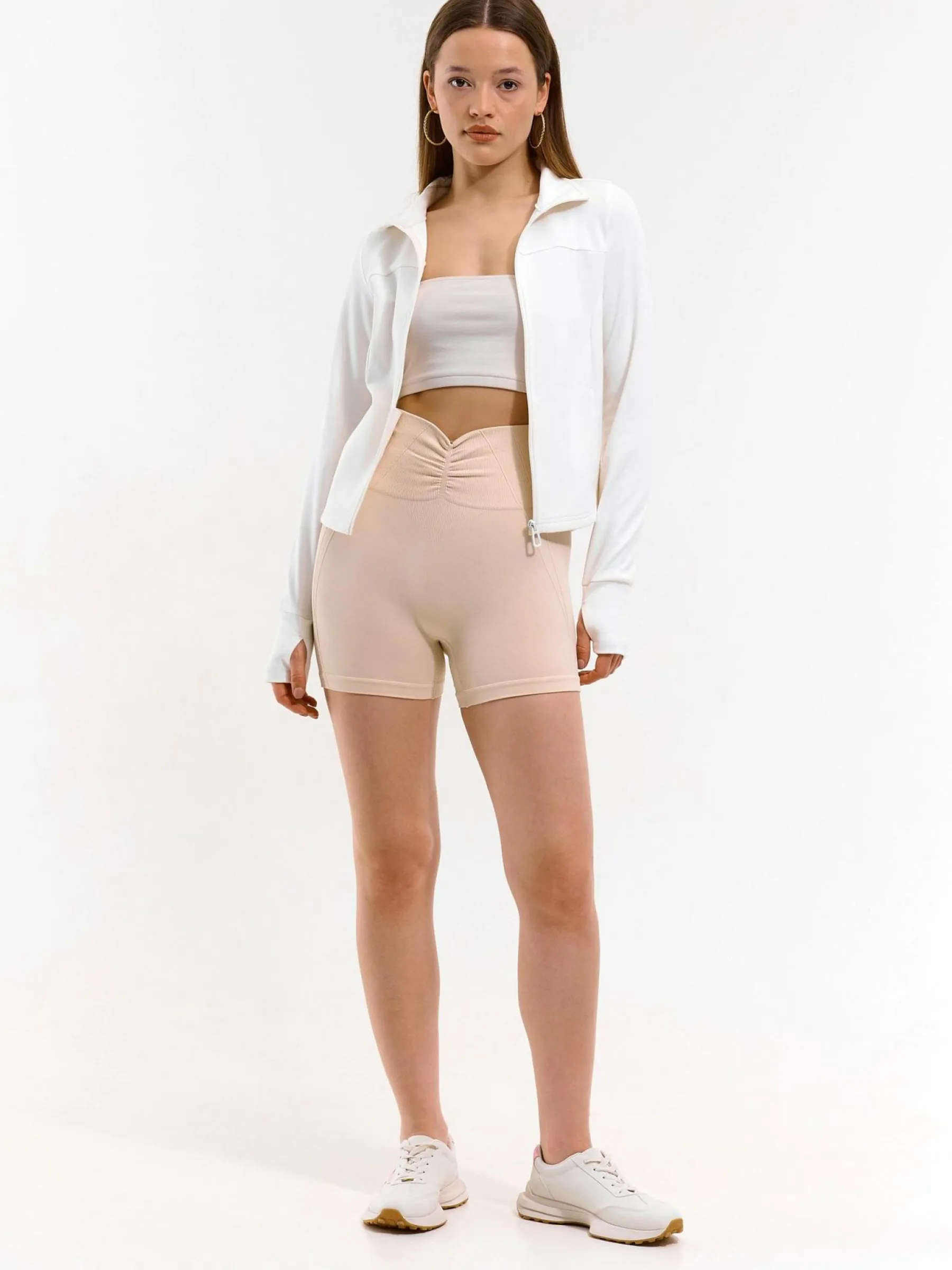 Zdjęcia z modelką mogą nie odpowiadać rzeczywistemu kolorowi produktu.Kolor: beżowyKrój: biker, push-upTyp: spoden…