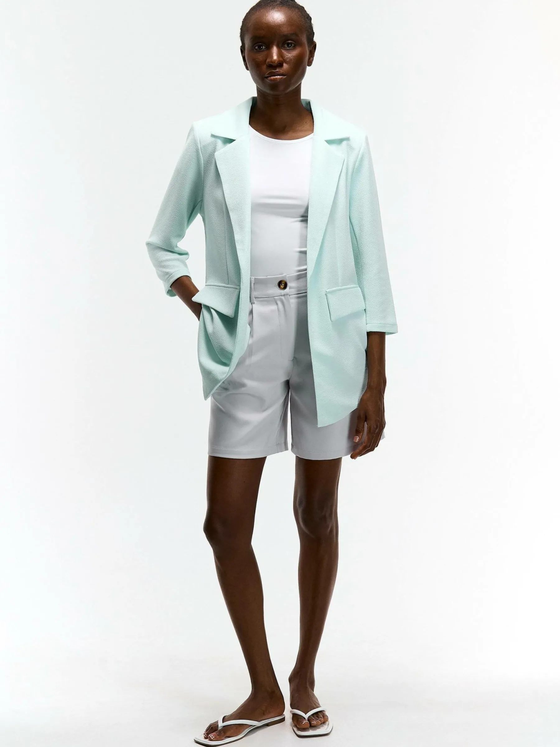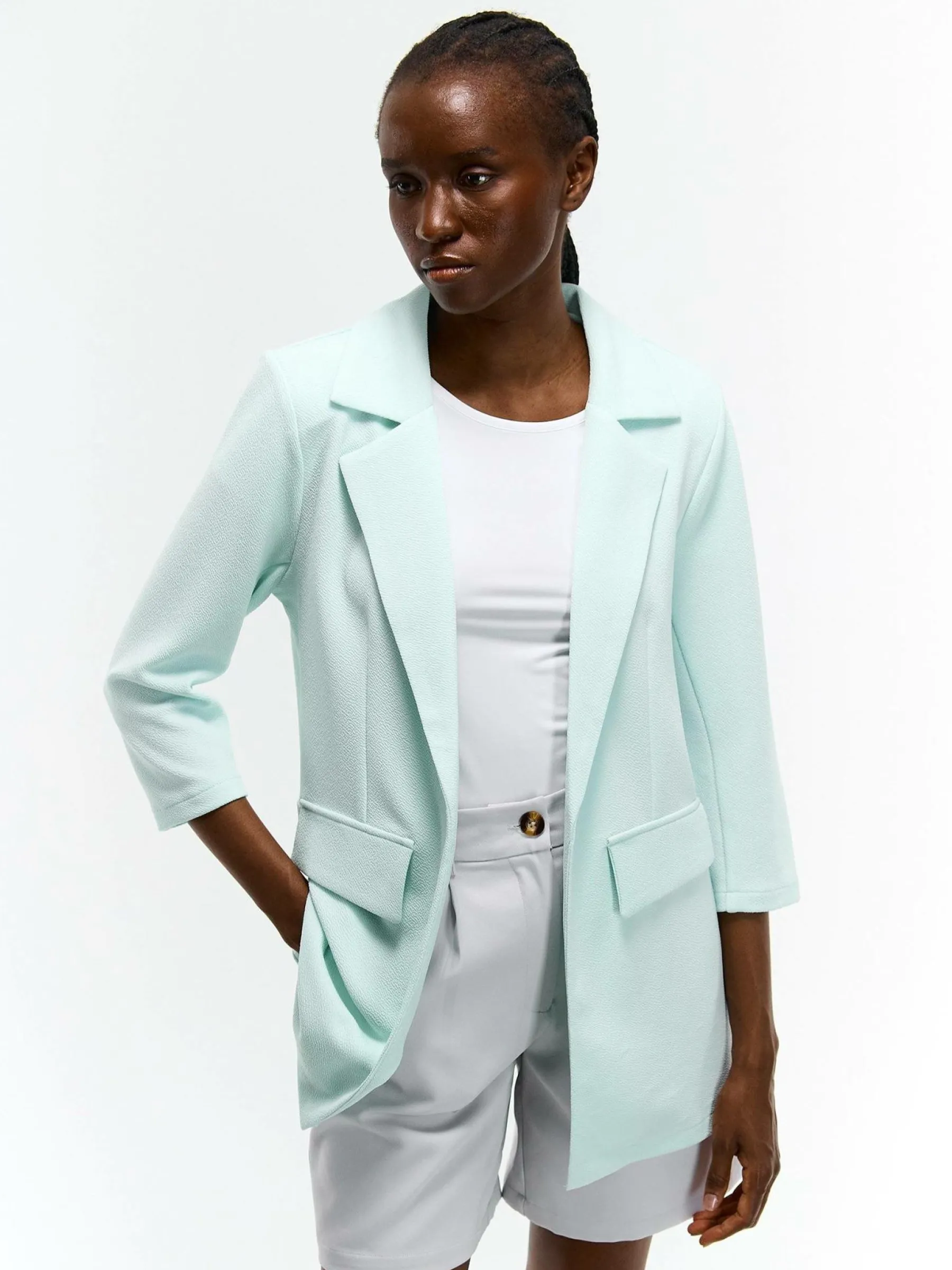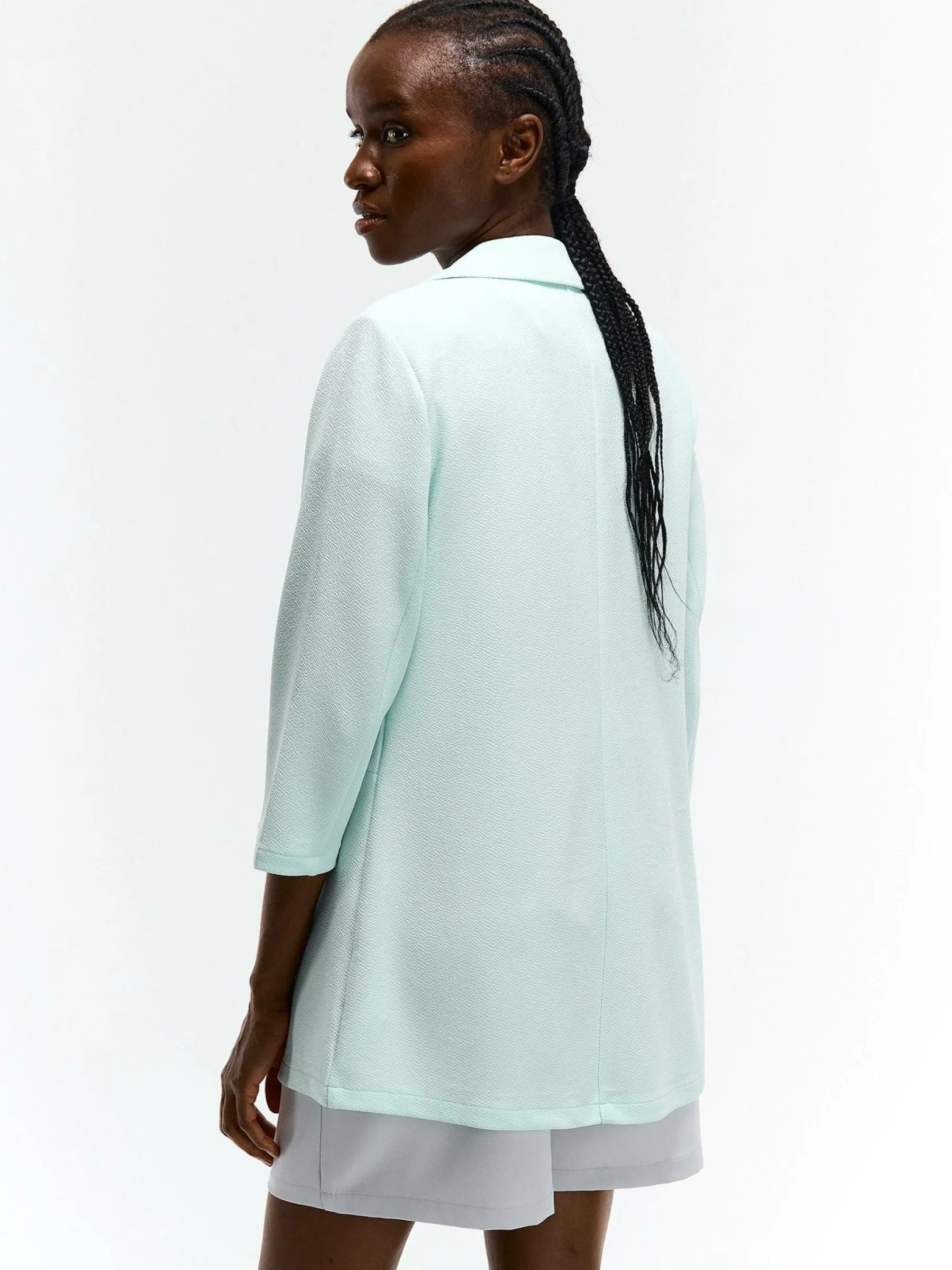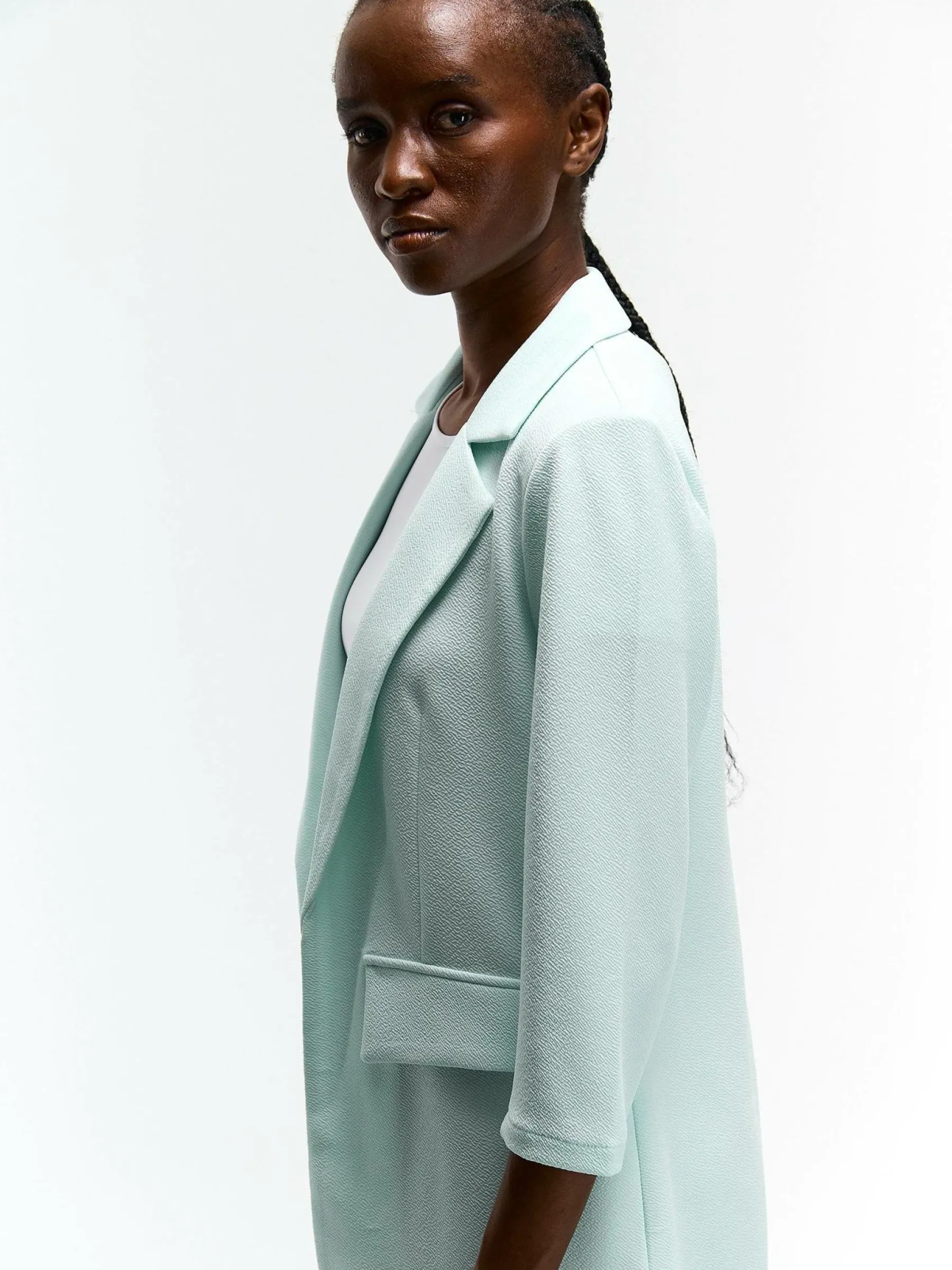 Kolor: zielonyKrój: podstawowyTyp: marynarkaRekaw: rękaw 3/4Długość: dlugiePattern style: pojedynczy kolor, struktu…