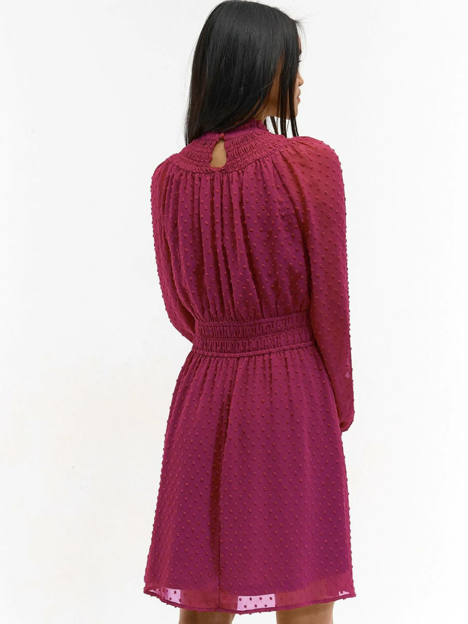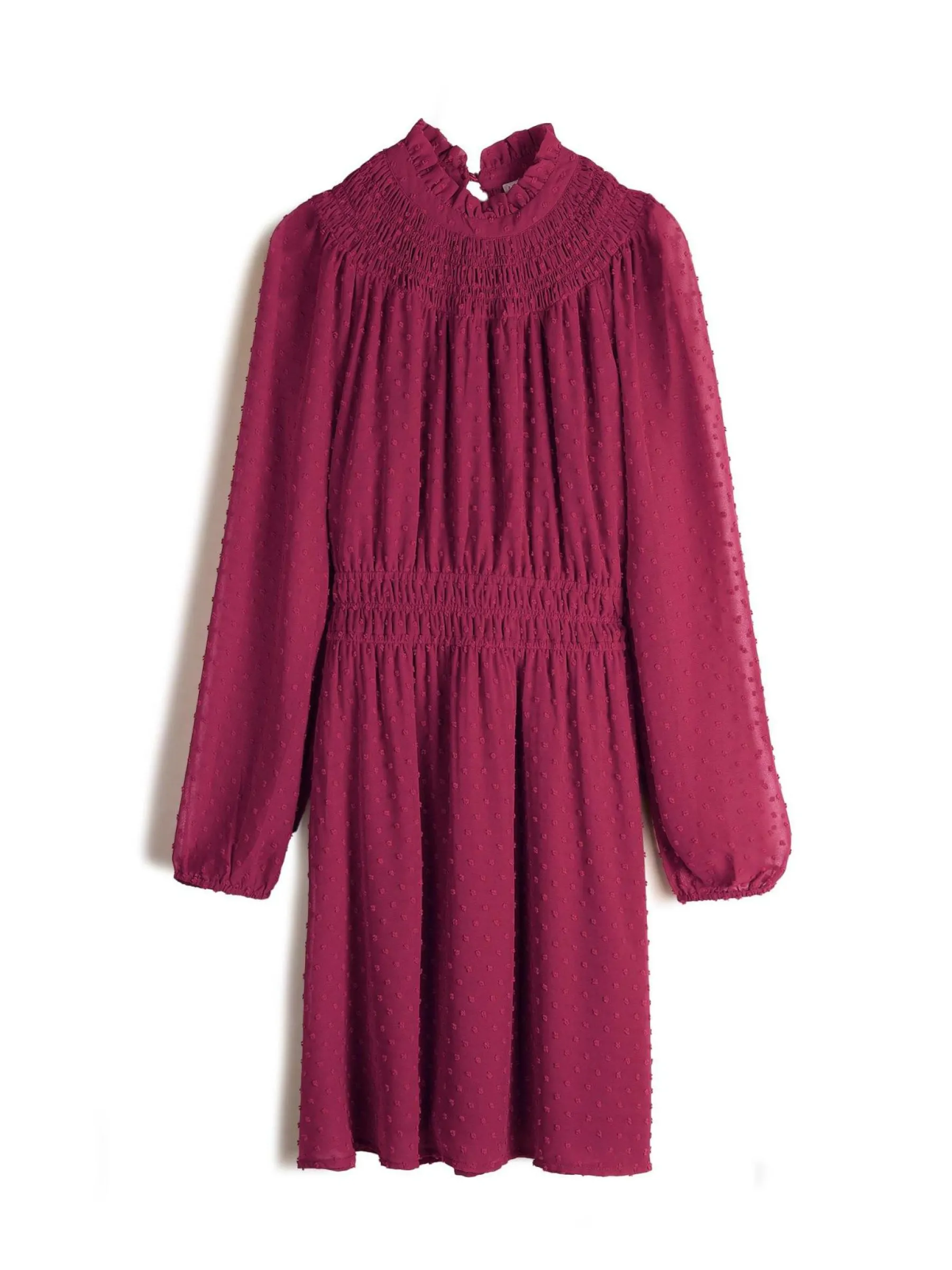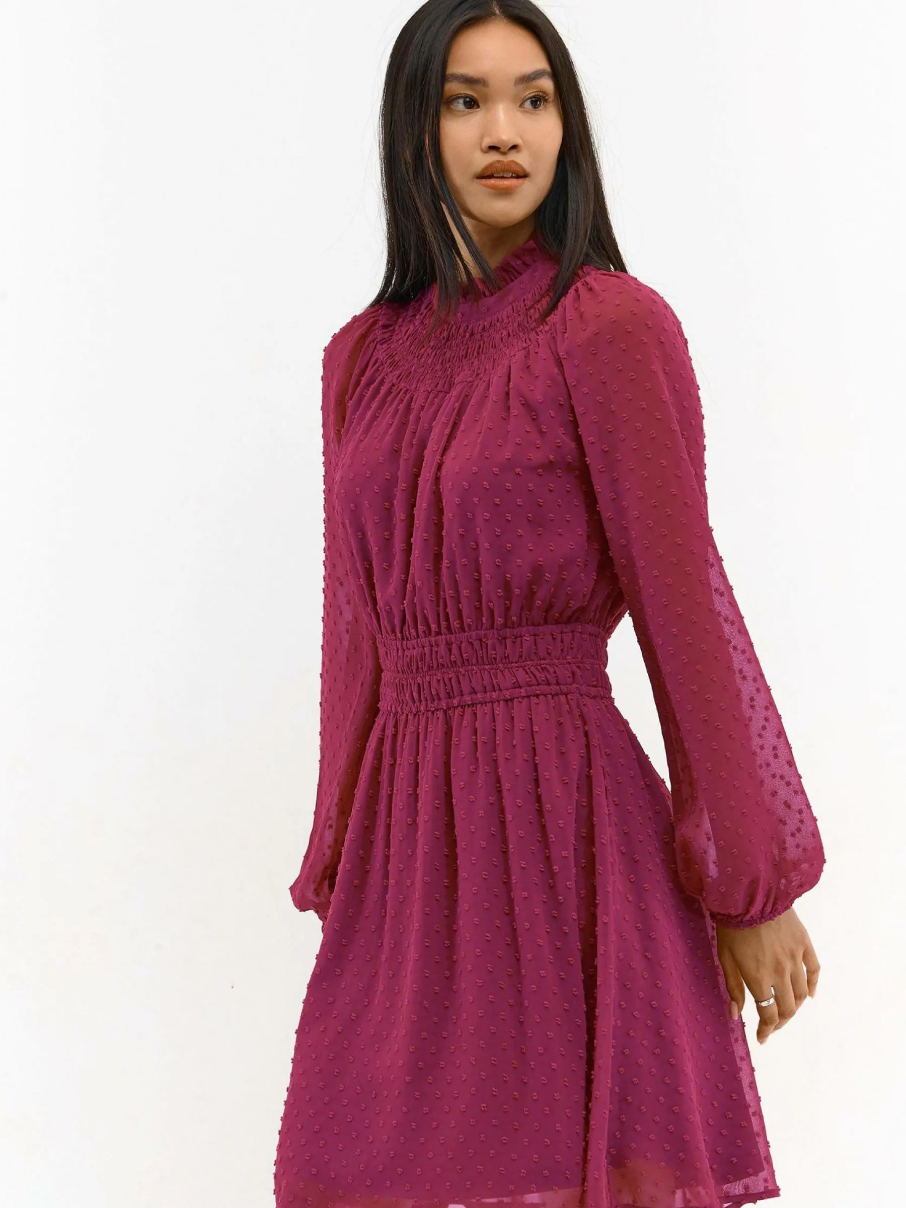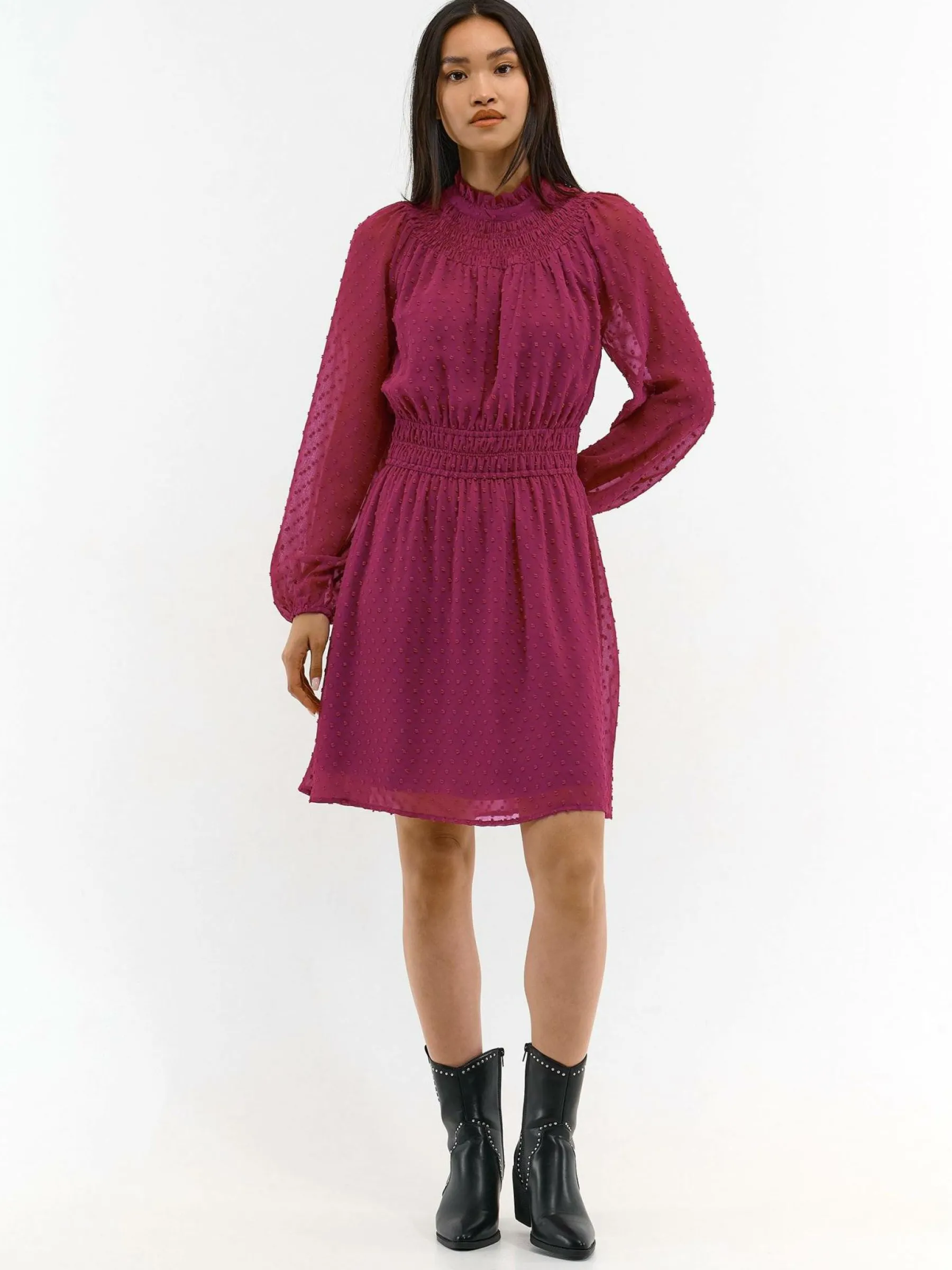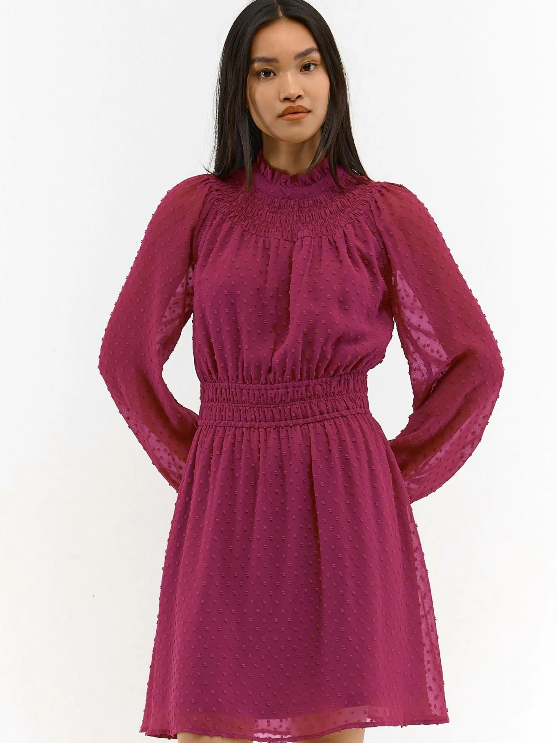 Kolor: różowyKrój: z marszczeniemTyp: sukienkaRekaw: długi rękawDługość: miniPattern style: pojedynczy kolor, st…