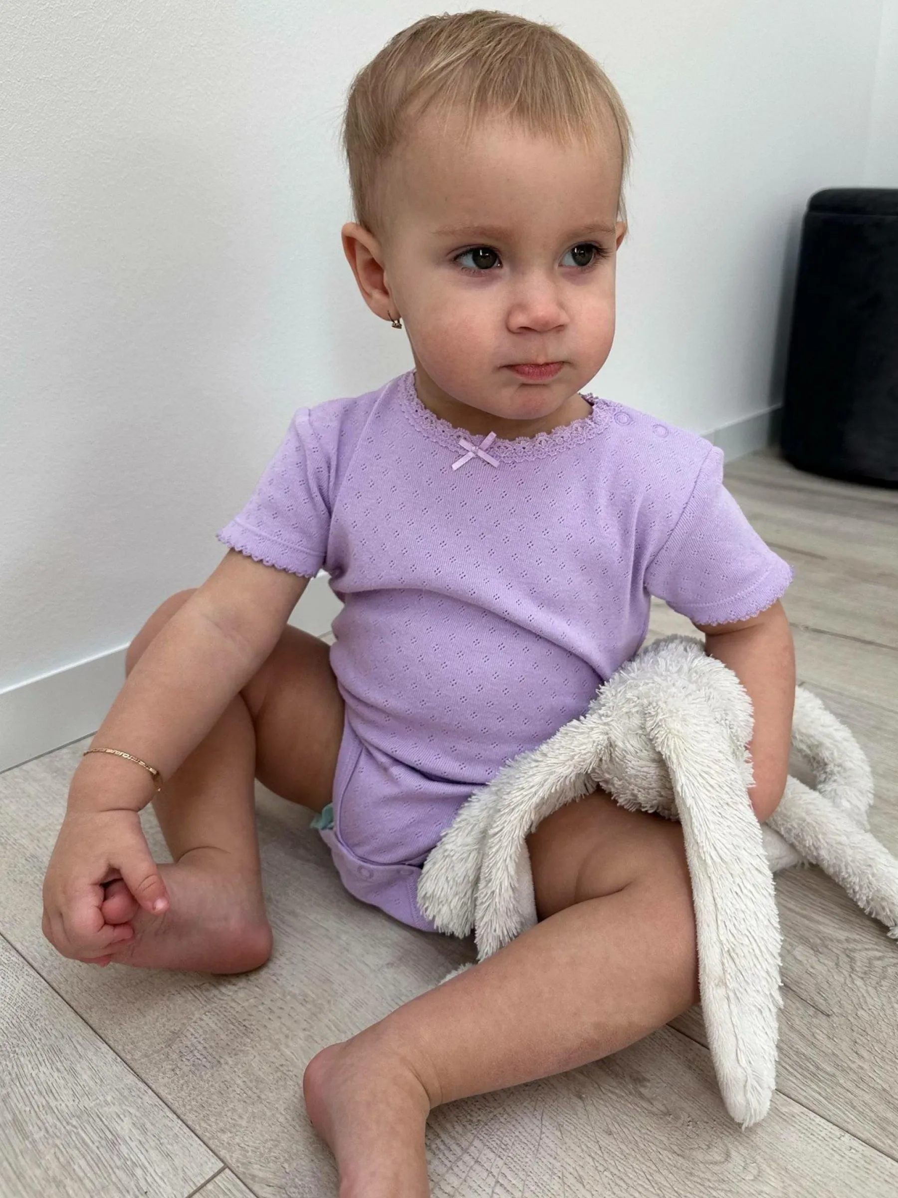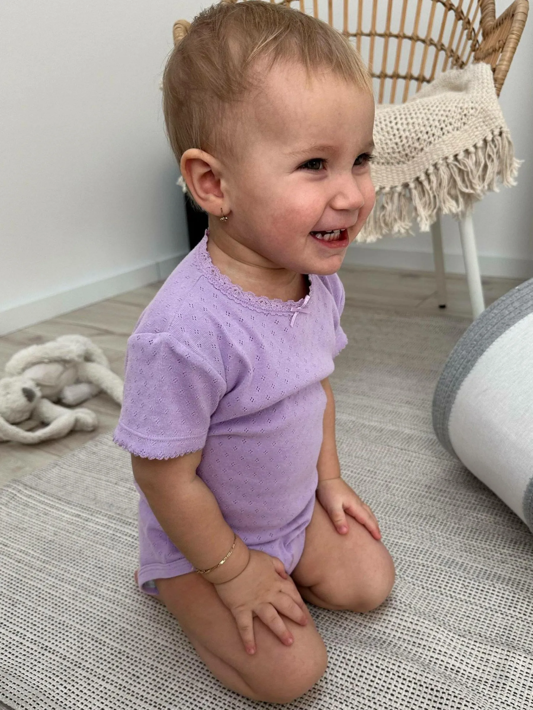 Kolor: purpurowyKrój: podstawowyTyp: bodyRekaw: krótki rękawDługość: krótkiPattern style: pojedynczy kolor, struk…
