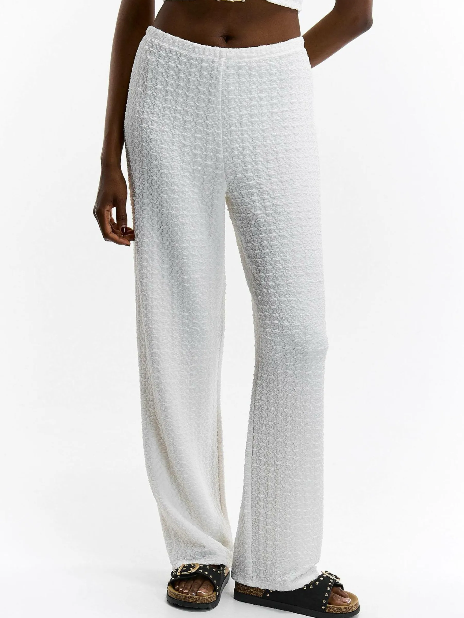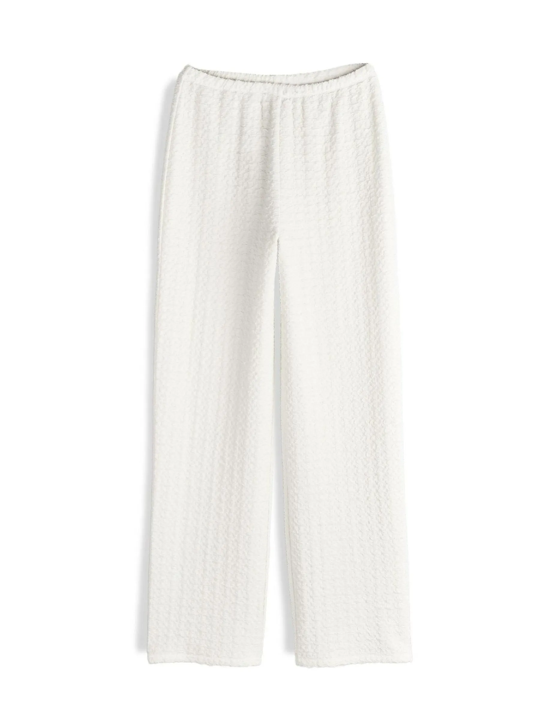 Kolor: białyKrój: szerokieTyp: spodnieDługość: dlugiePattern style: pojedynczy kolor, strukturowaneDetal: z elastyc…