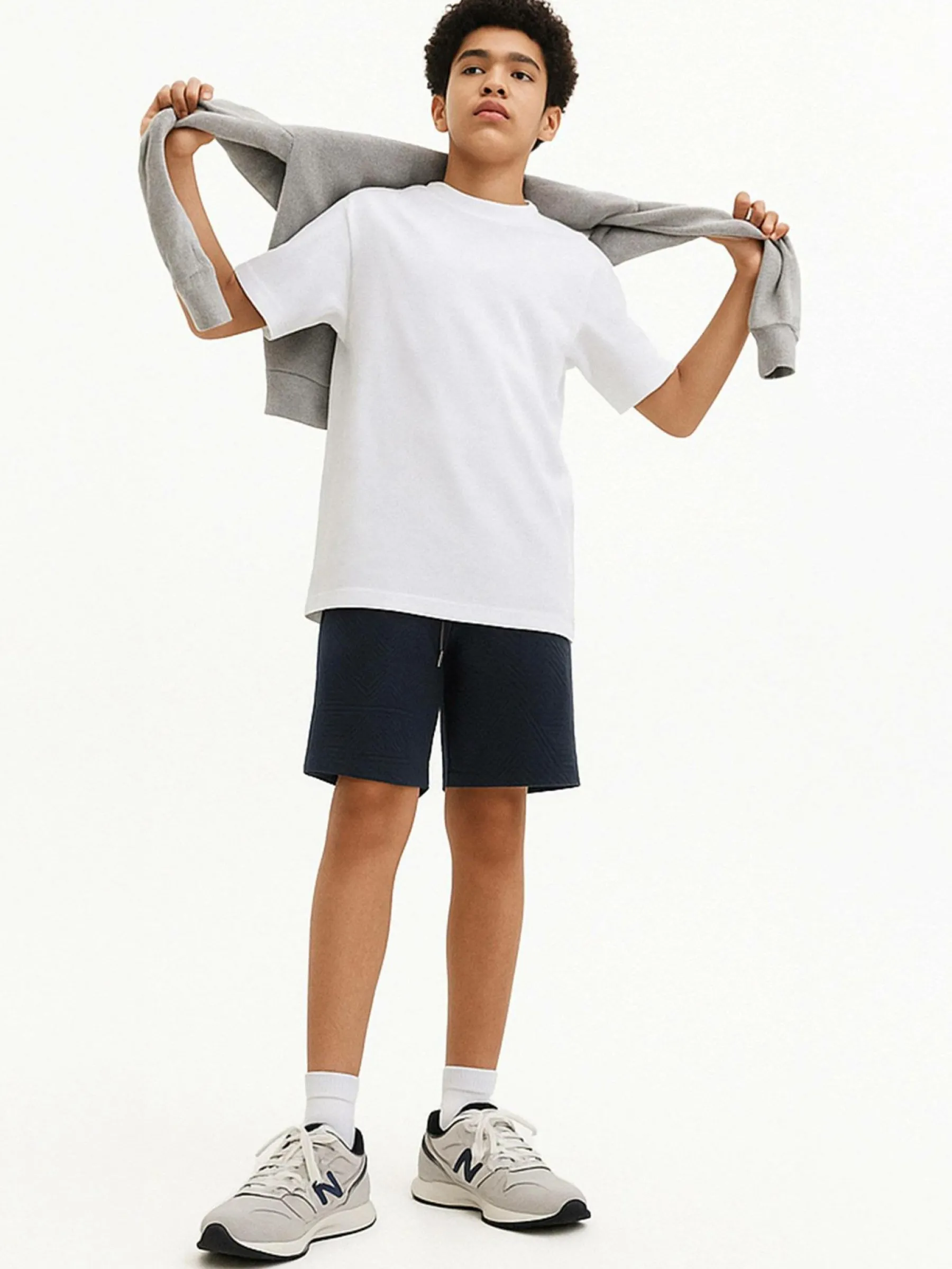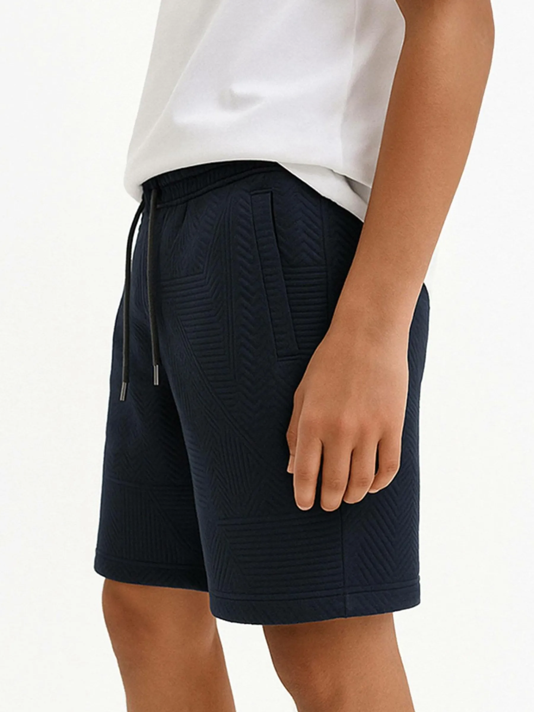 Kolor: granatowyKrój: regularTyp: spodenkiDługość: krótkiPattern style: strukturowane, pojedynczy kolorDetal: ze sz…