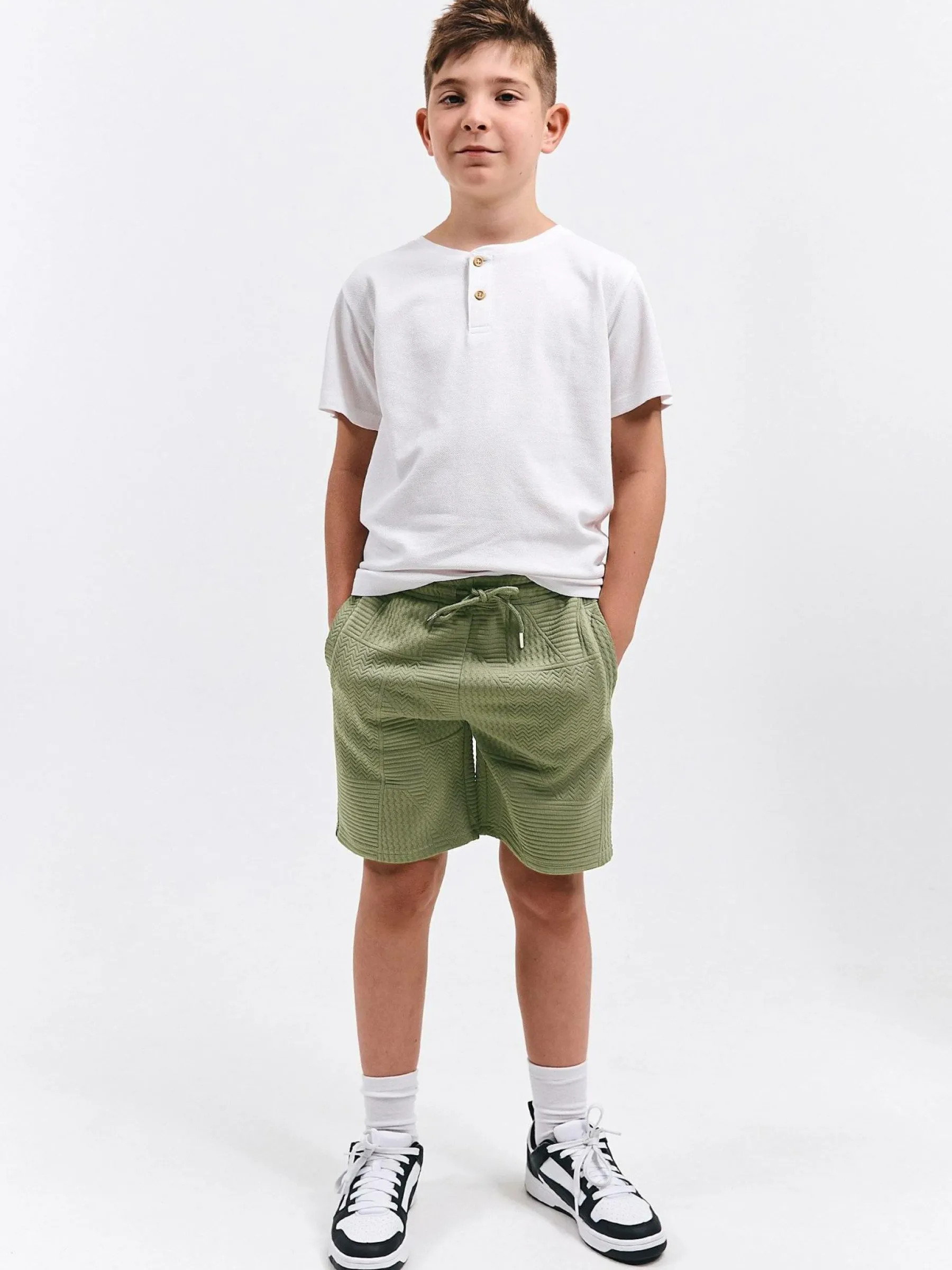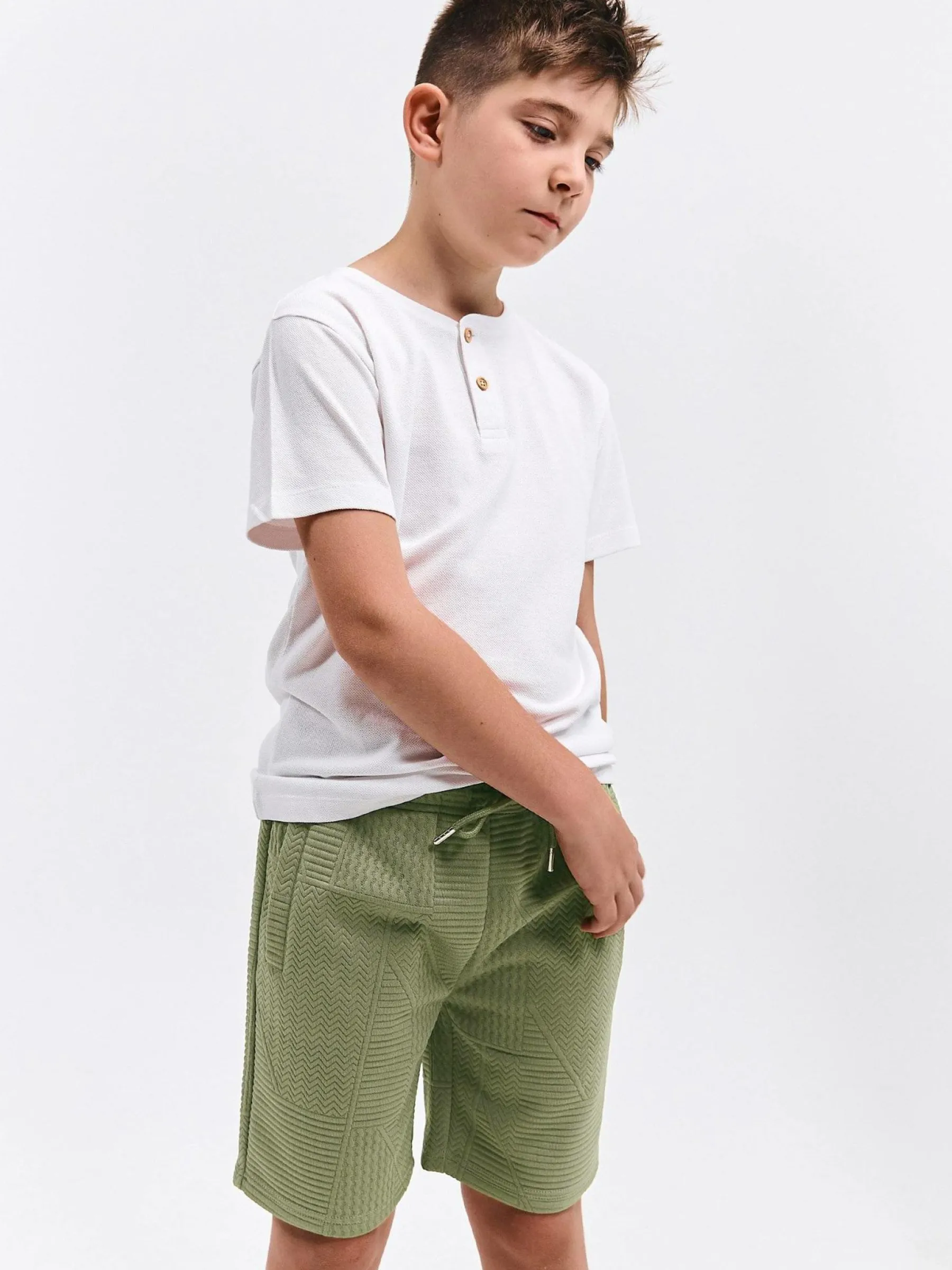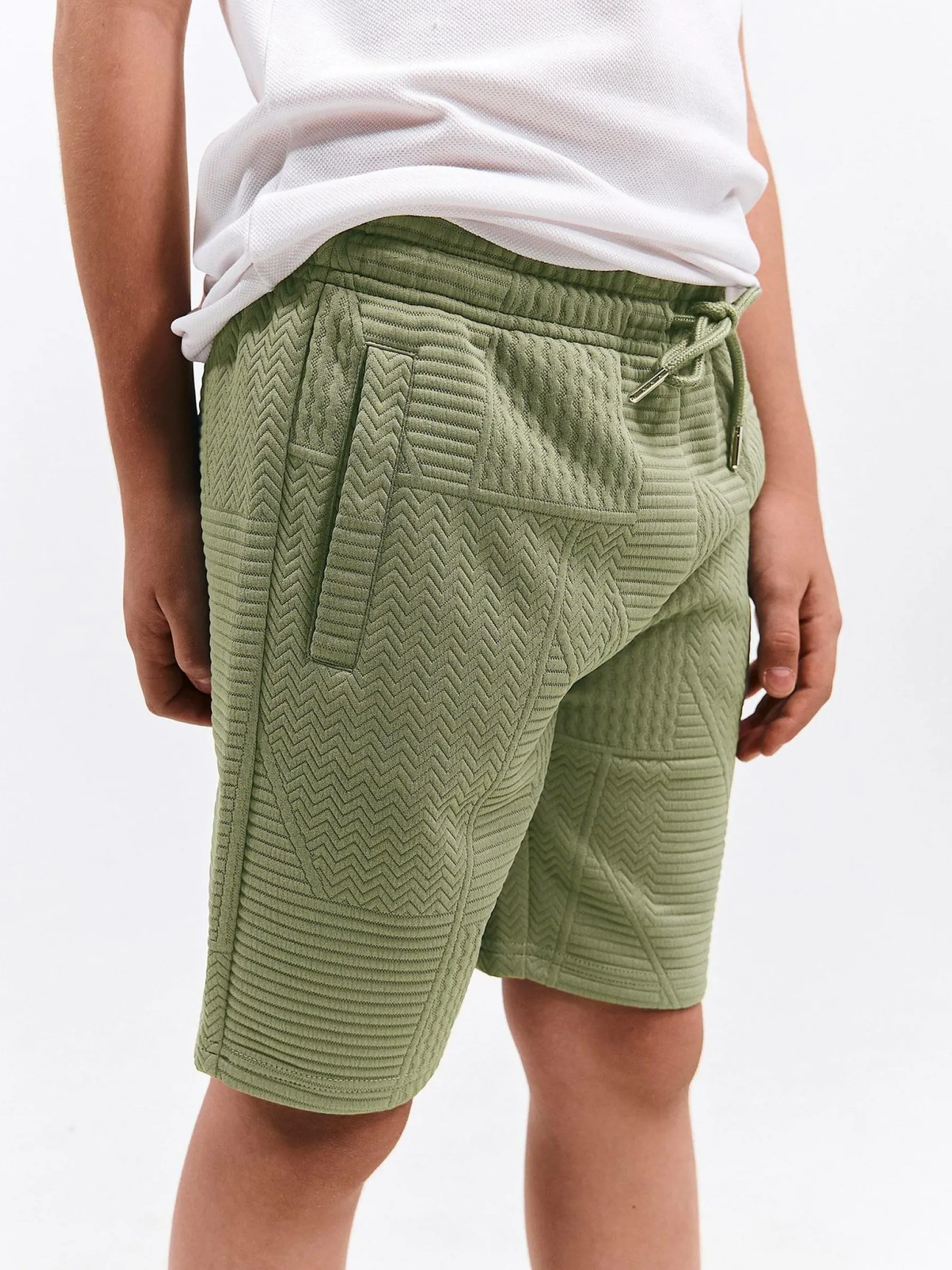 Kolor: zielonyKrój: regularTyp: spodenkiDługość: krótkiPattern style: pojedynczy kolor, strukturowaneDetal: ze sznu…