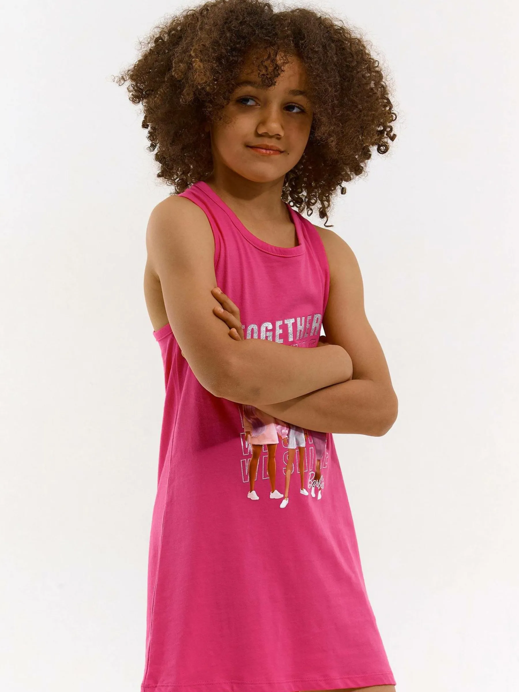 Kolor: różowyKrój: regularTyp: sukienkaRekaw: bez rękawówDługość: miniPattern style: z nadrukiemDetal: nad głow…