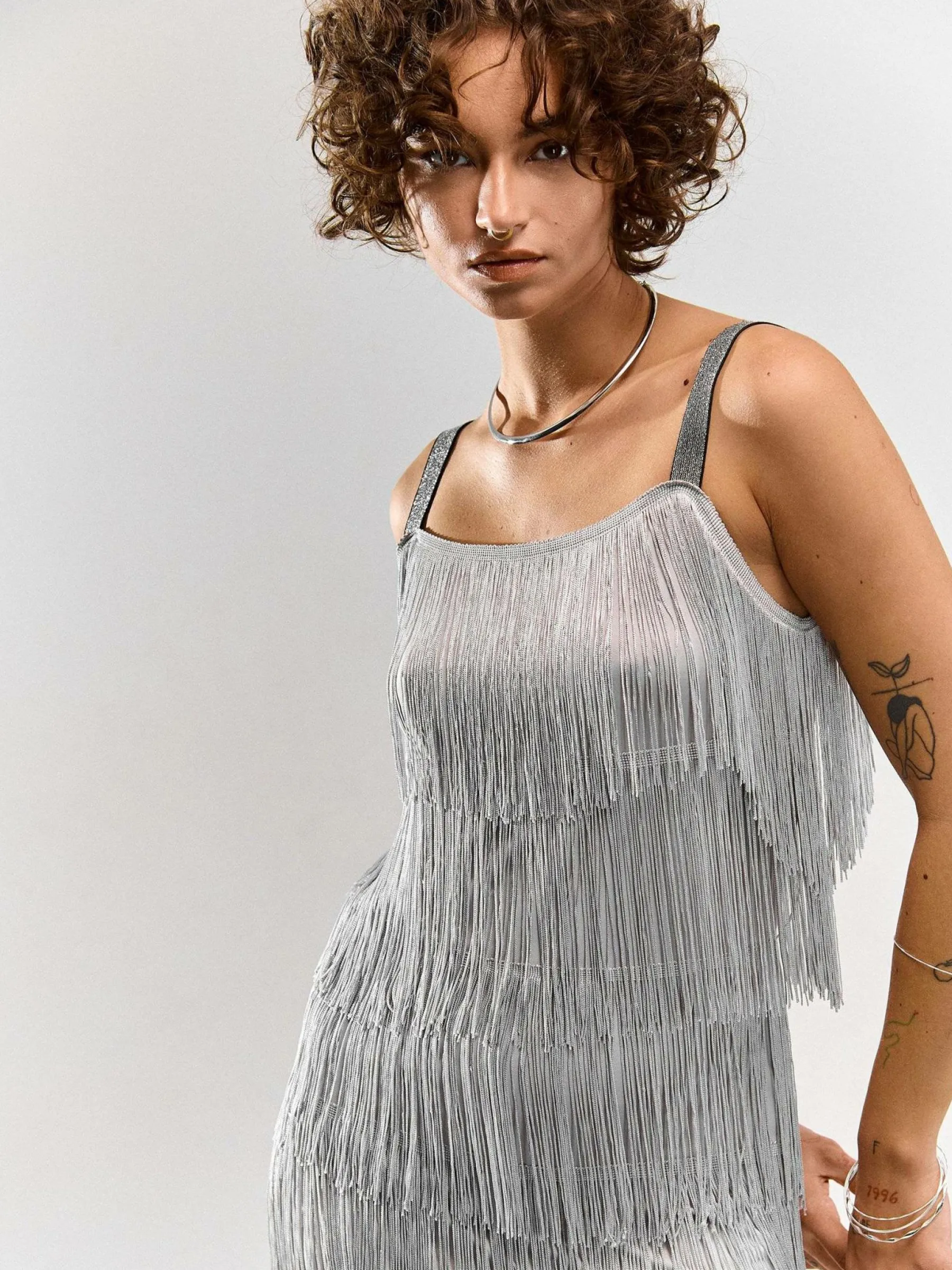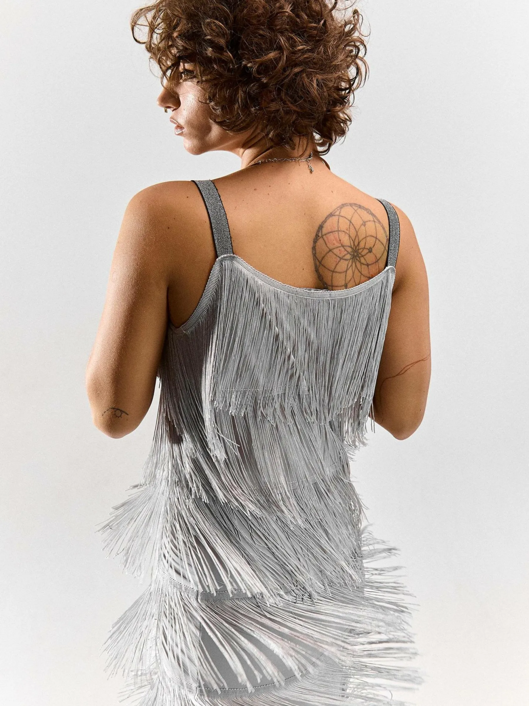 Kolor: szaryKrój: regularTyp: sukienkaRekaw: bez rękawówDługość: miniPattern style: pojedynczy kolorDetal: nad gł…