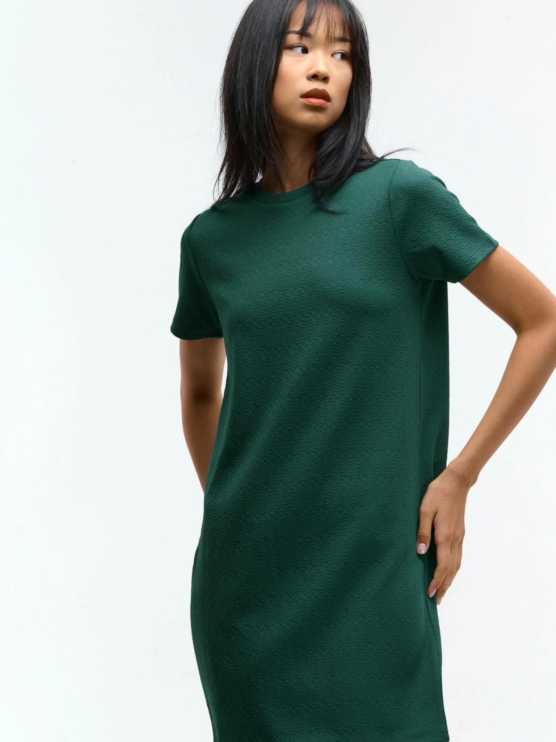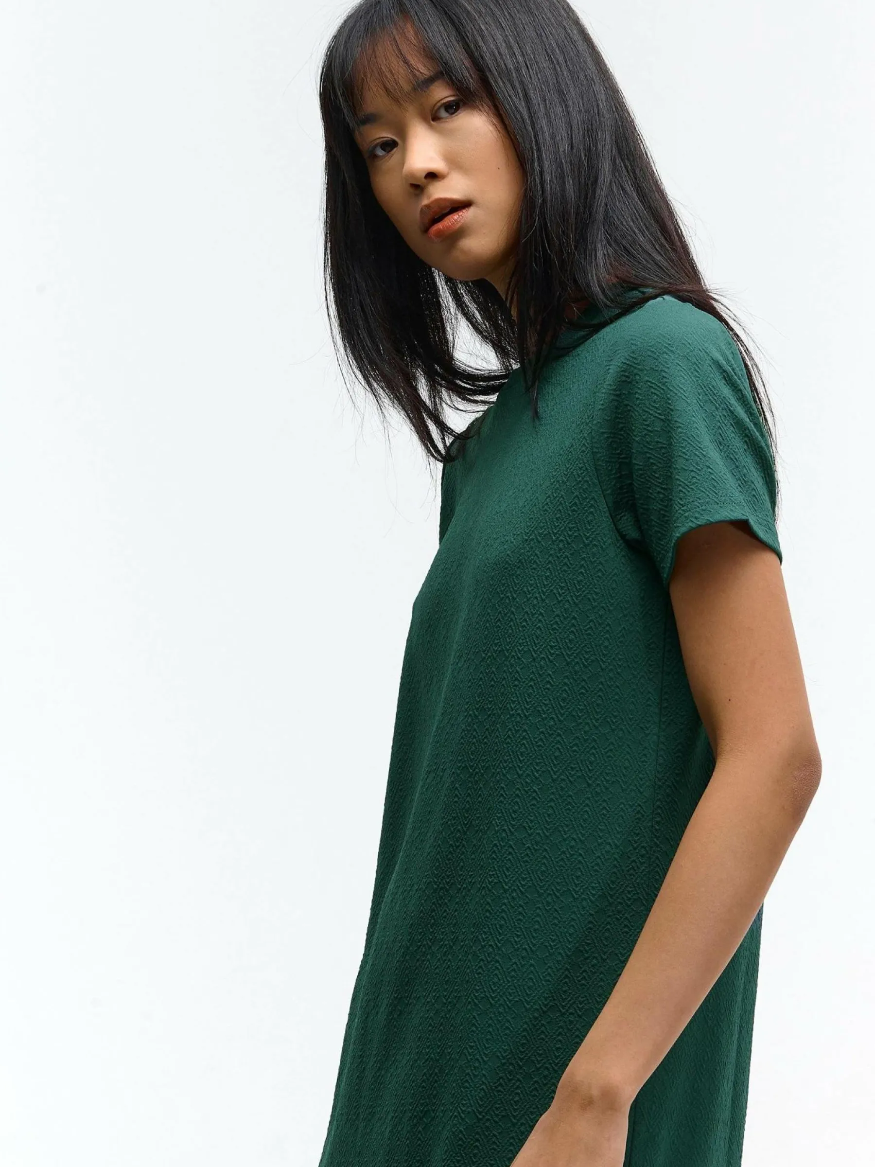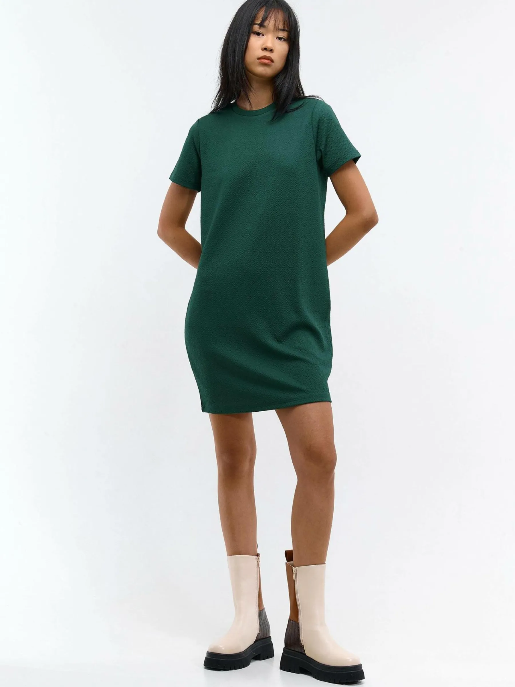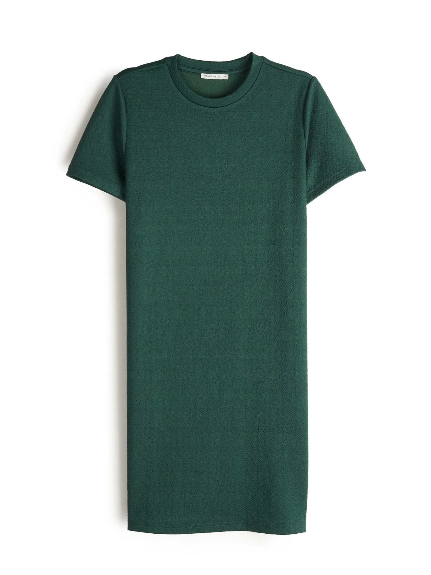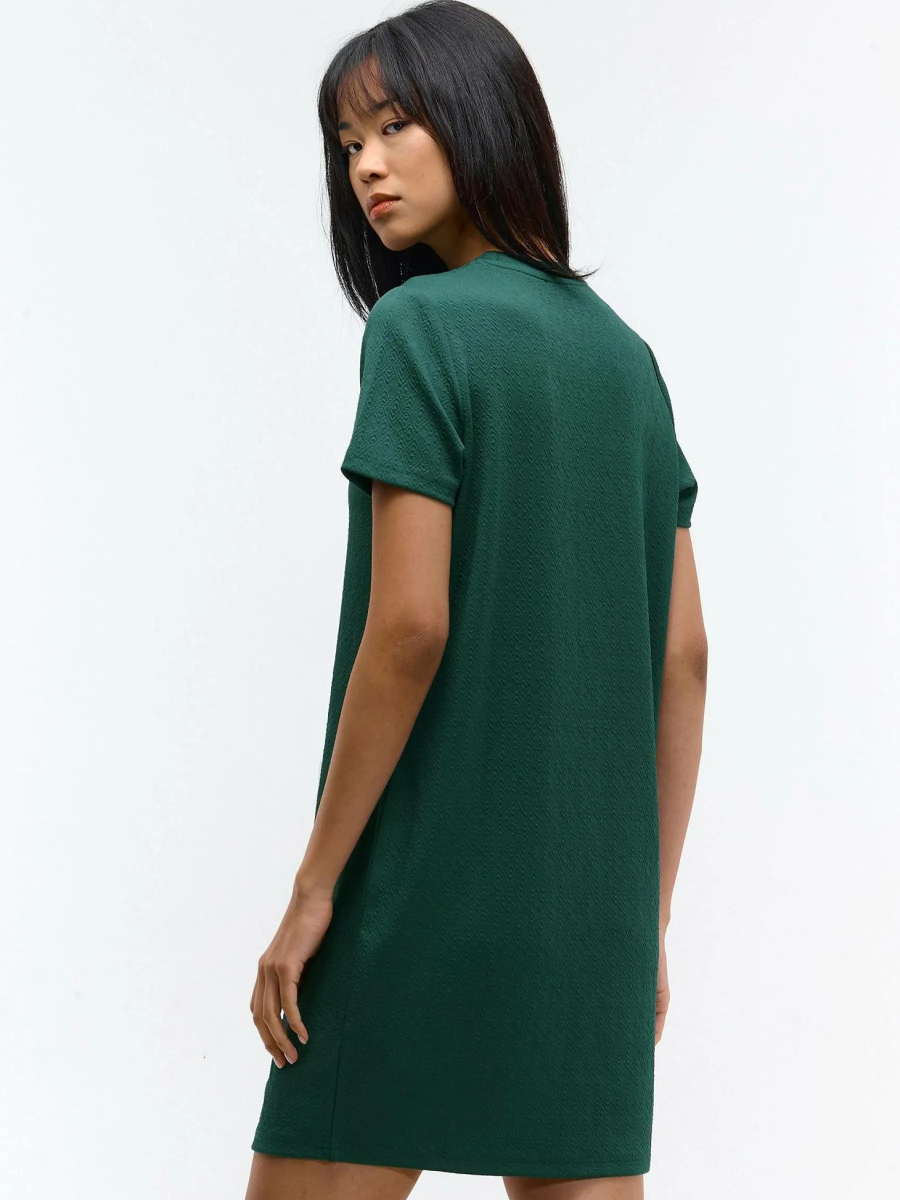 Kolor: zielonyKrój: regularTyp: sukienkaRekaw: krótki rękawDługość: miniPattern style: pojedynczy kolor, strukturo…