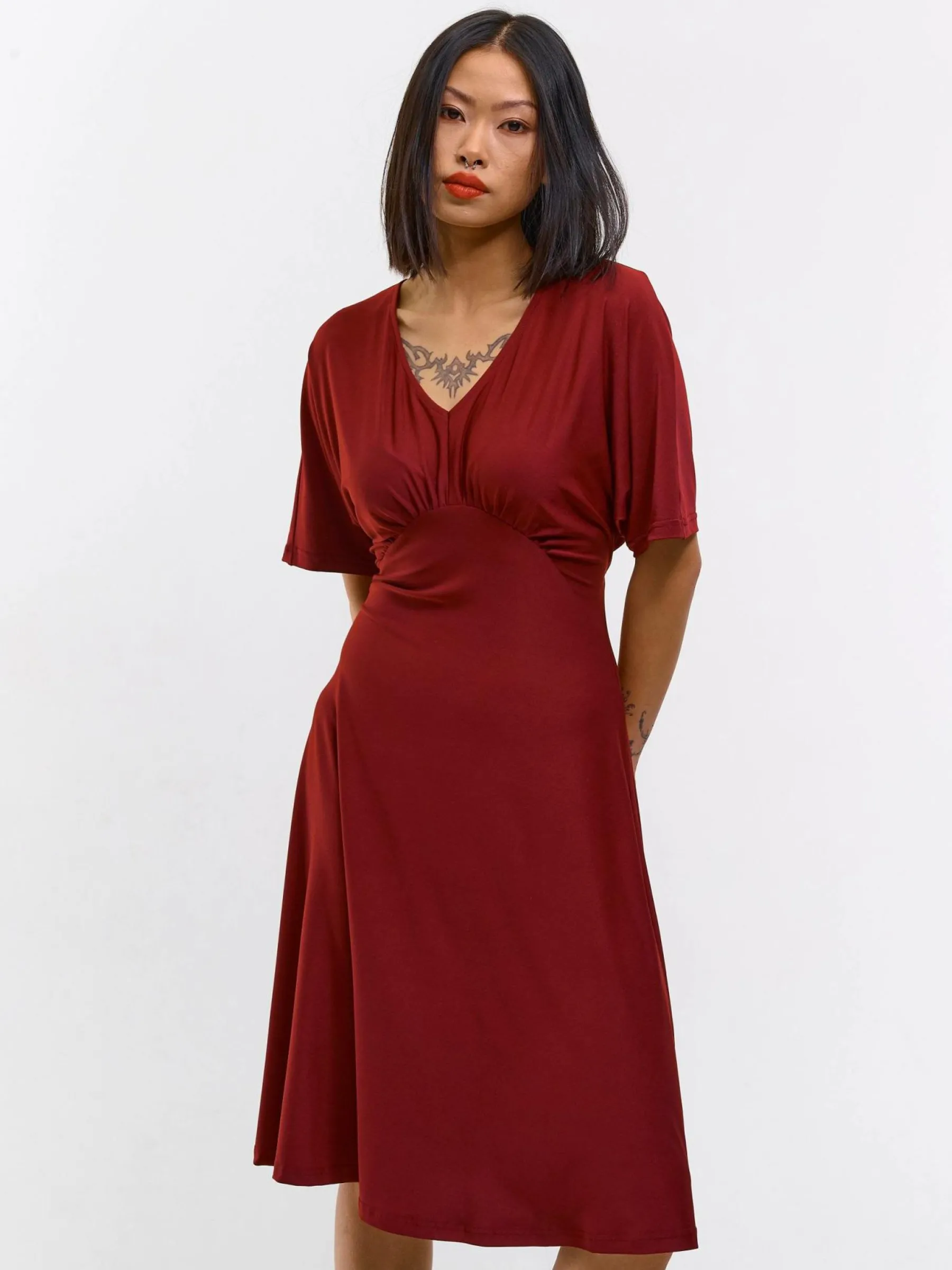 Kolor: różowyKrój: asyTyp: sukienkaRekaw: krótki rękawDługość: miniPattern style: pojedynczy kolorDetal: v-neck,…