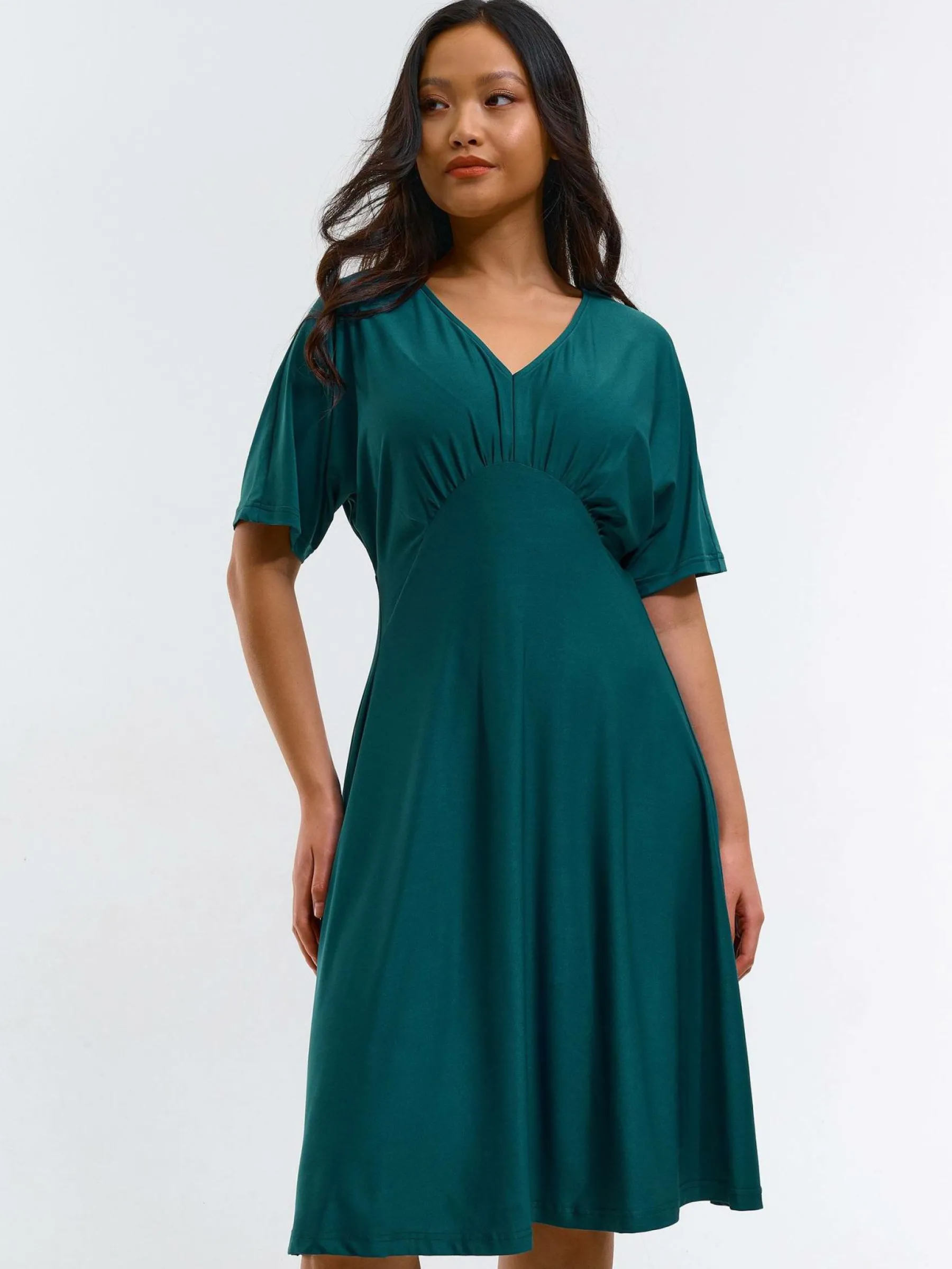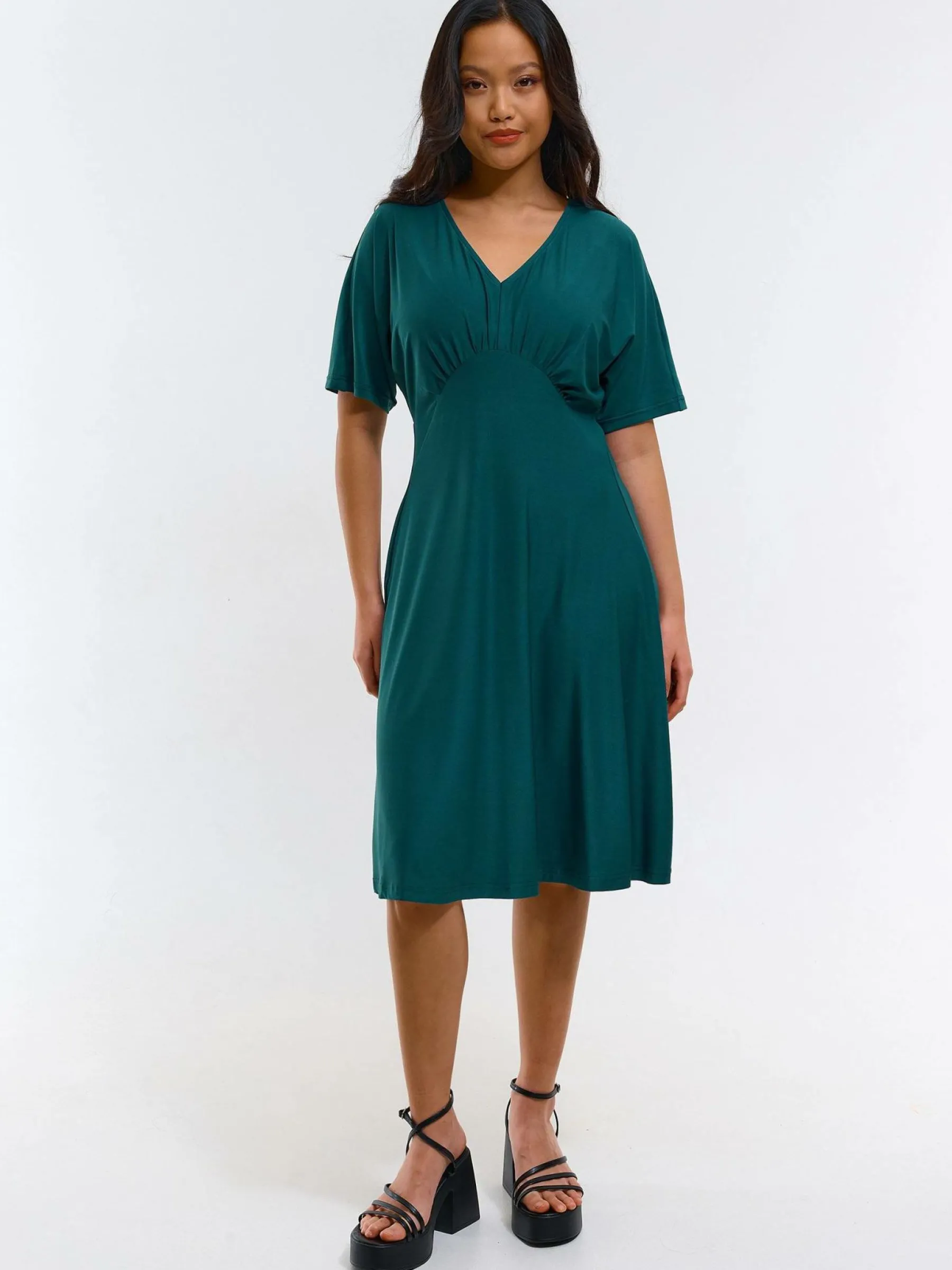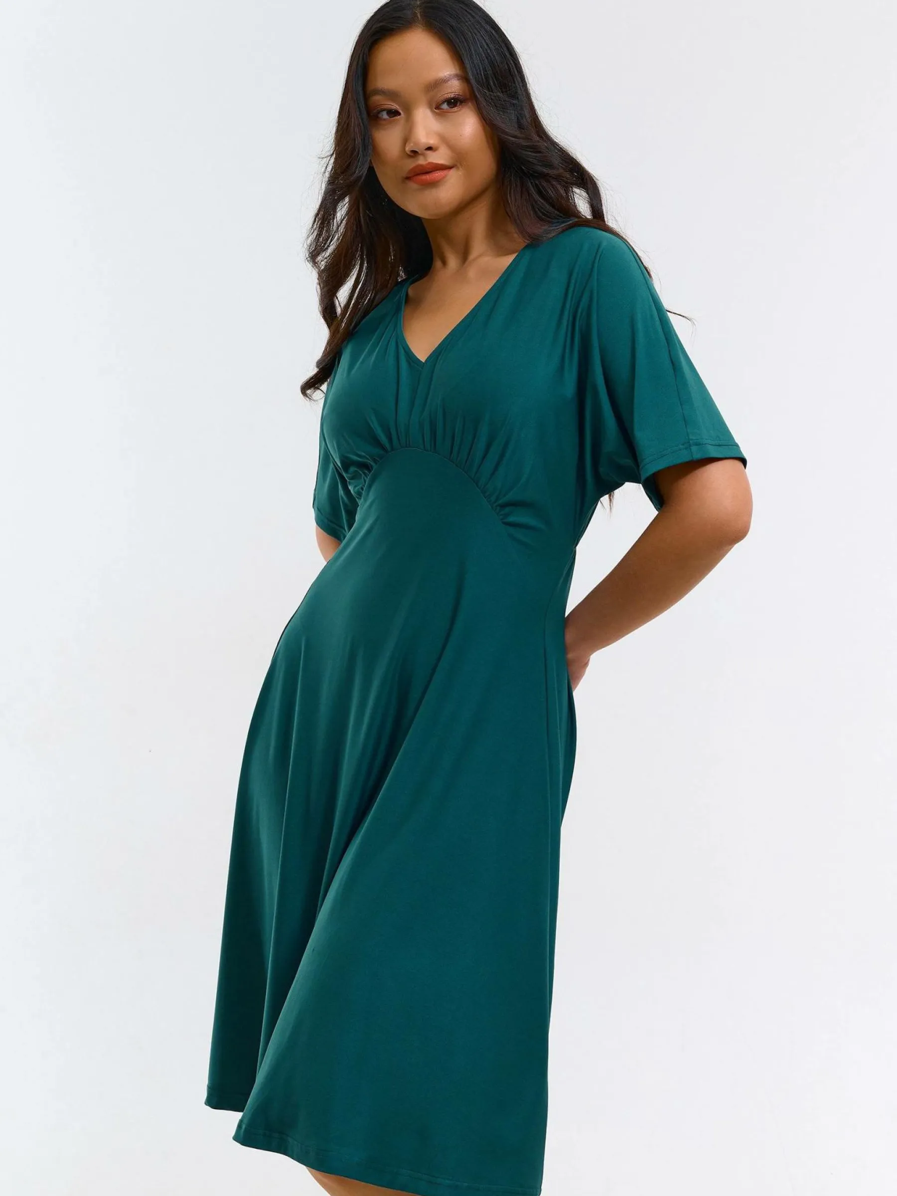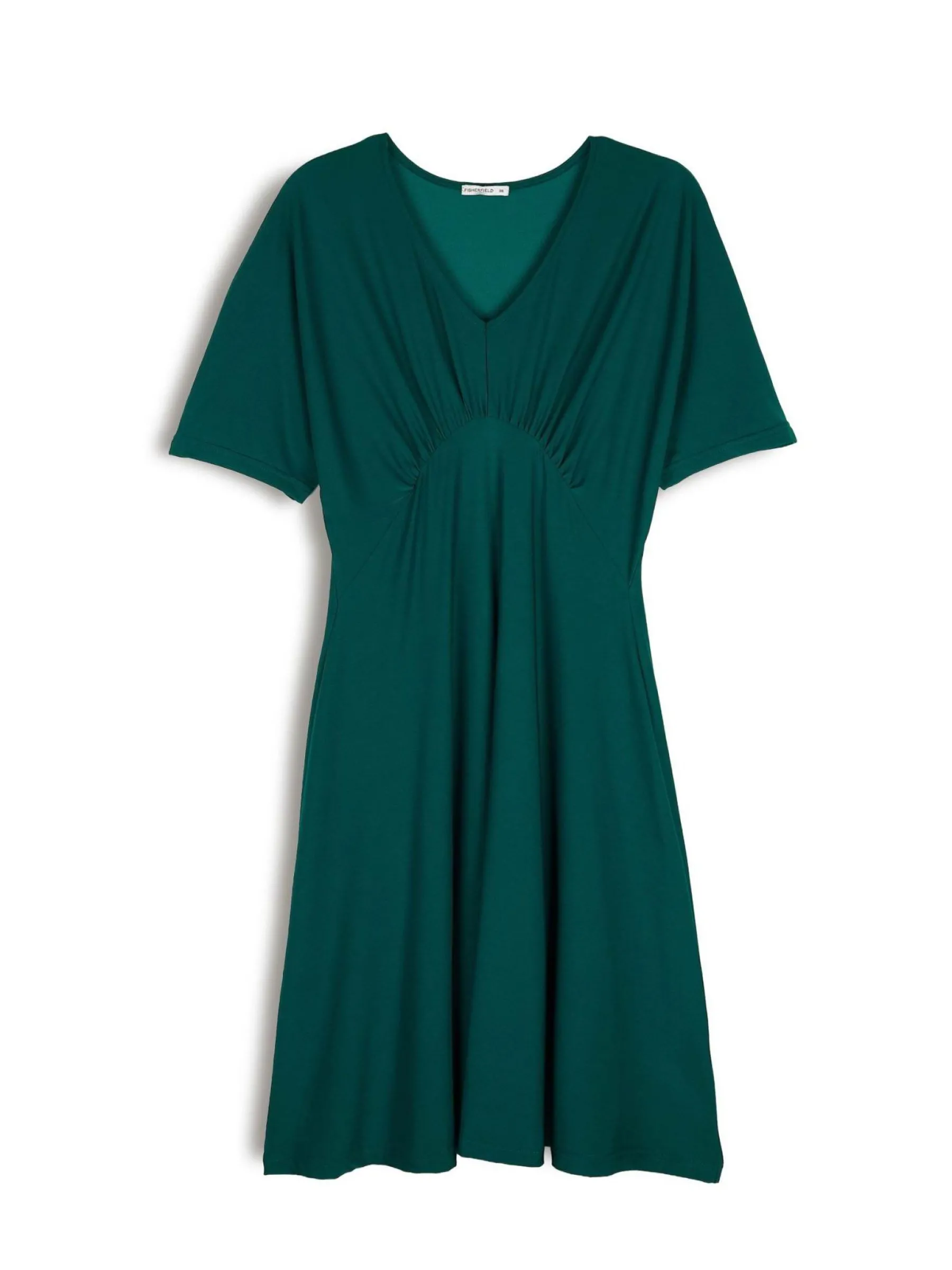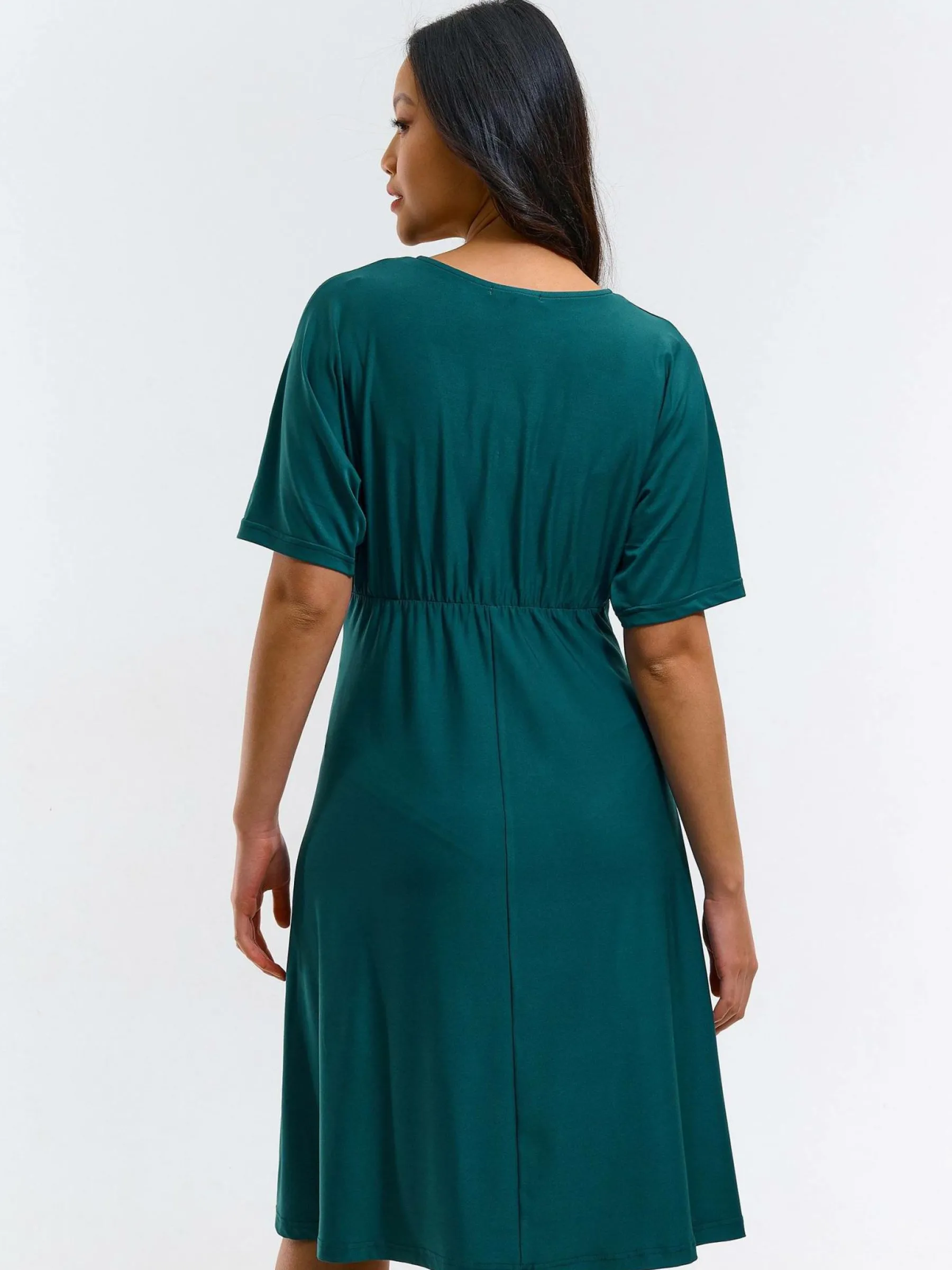 Kolor: zielonyKrój: asyTyp: sukienkaRekaw: krótki rękawDługość: miniPattern style: pojedynczy kolorDetal: nad gło…