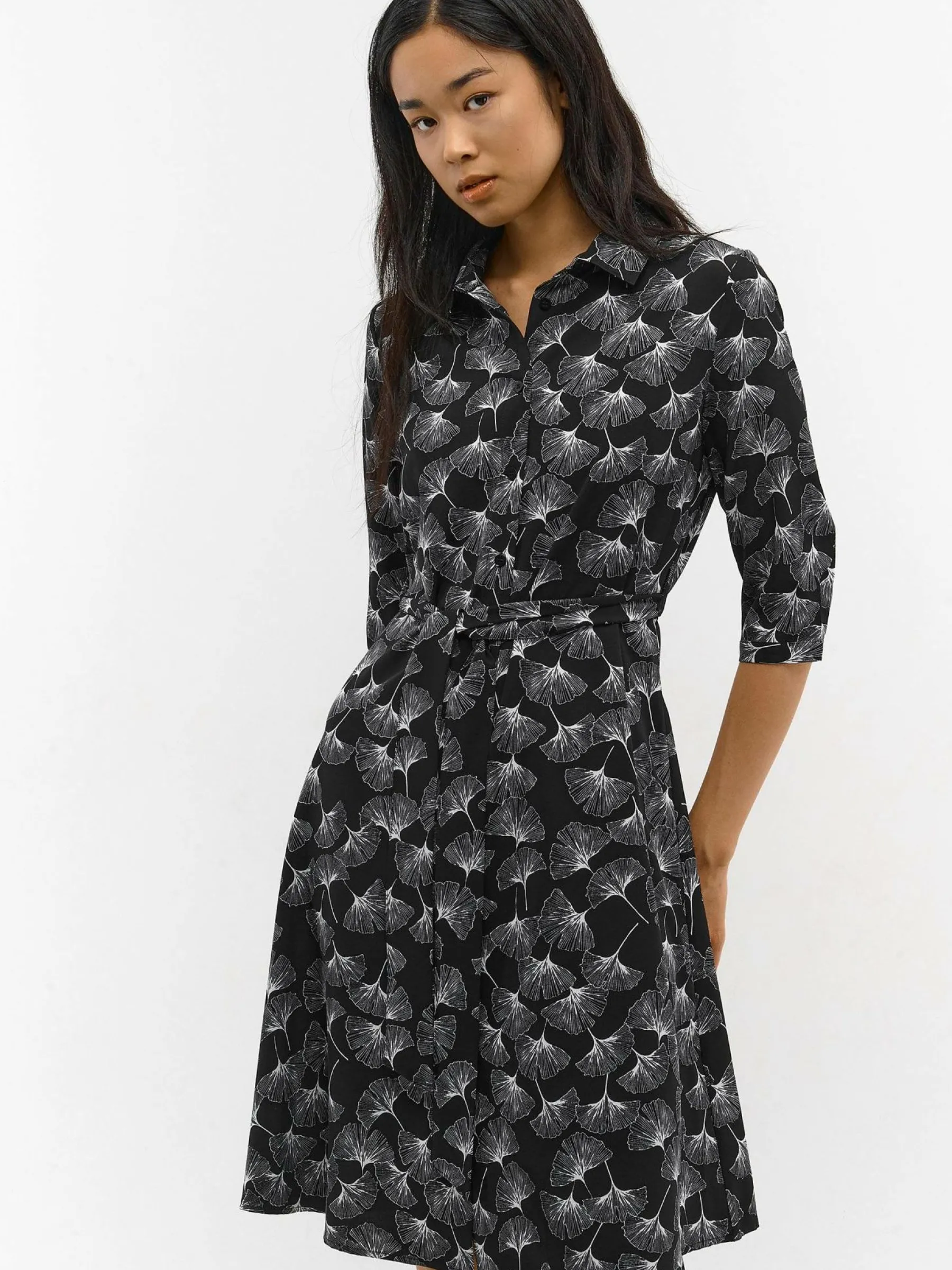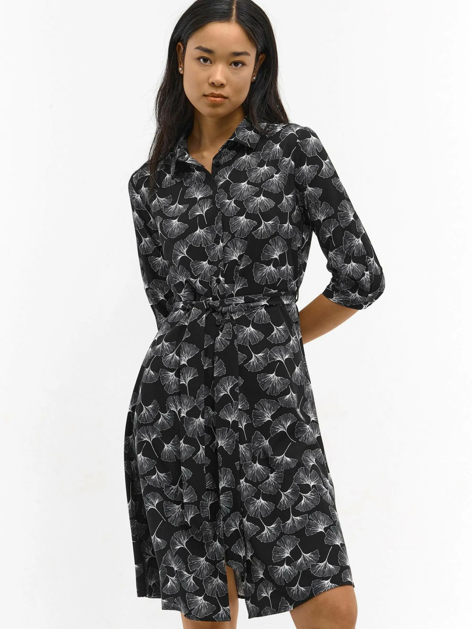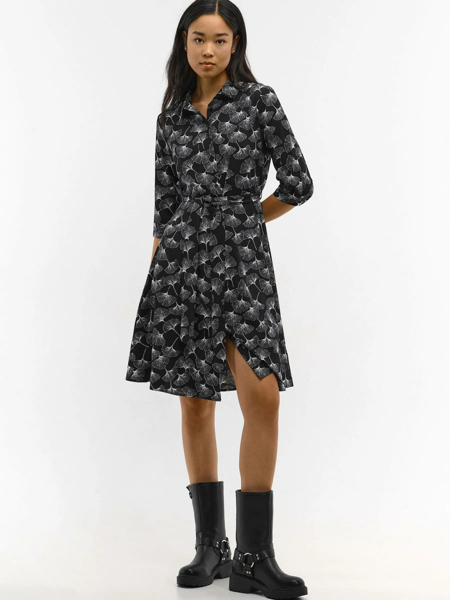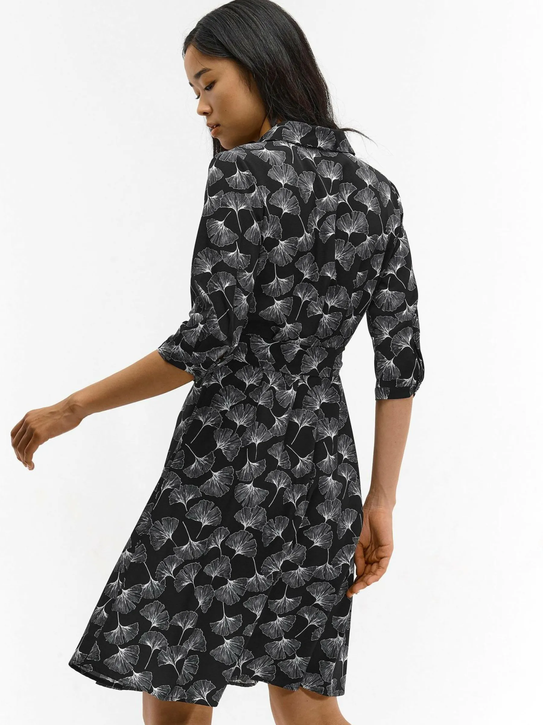 Kolor: czarnyKrój: koszuloweTyp: sukienkaRekaw: rękaw 3/4Długość: miniPattern style: z nadrukiem, kwiatoweDetal: na…