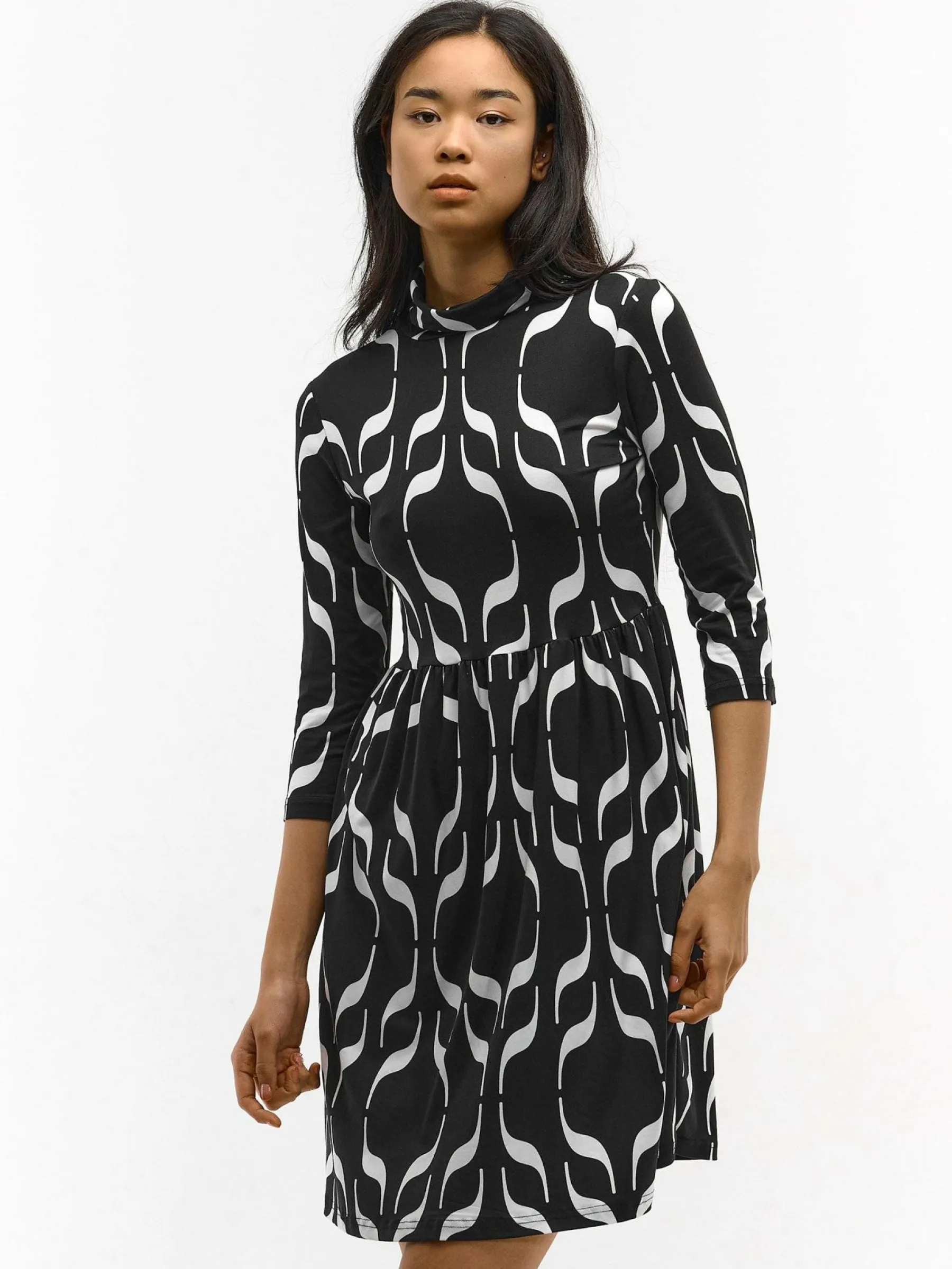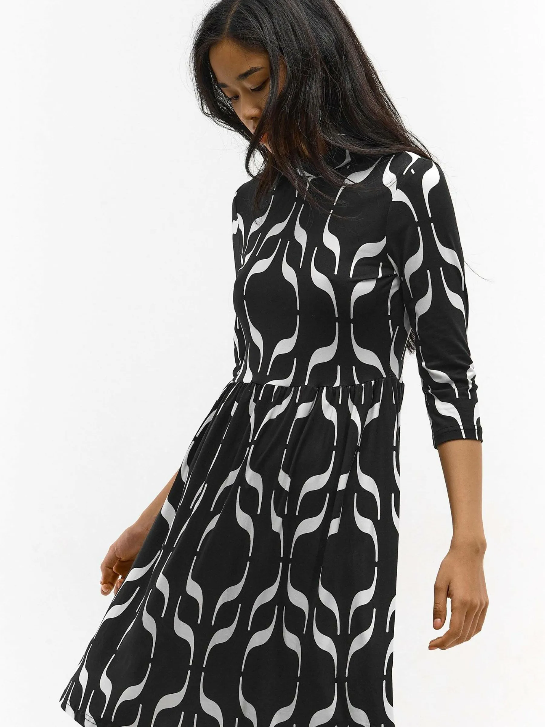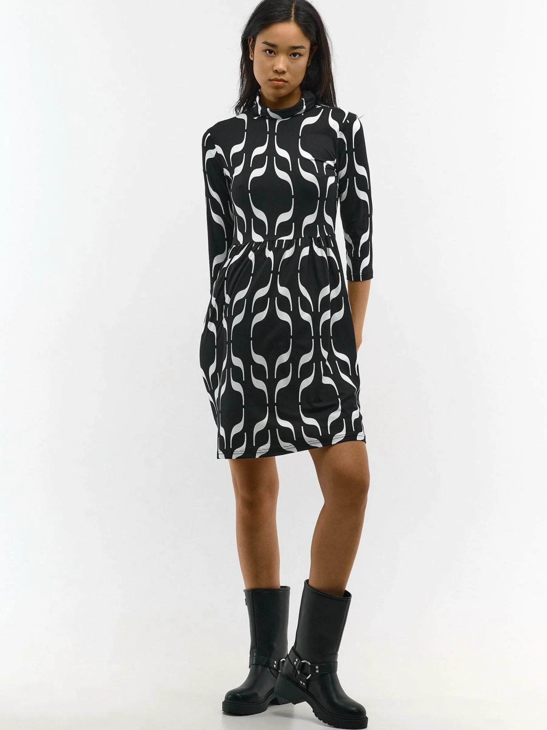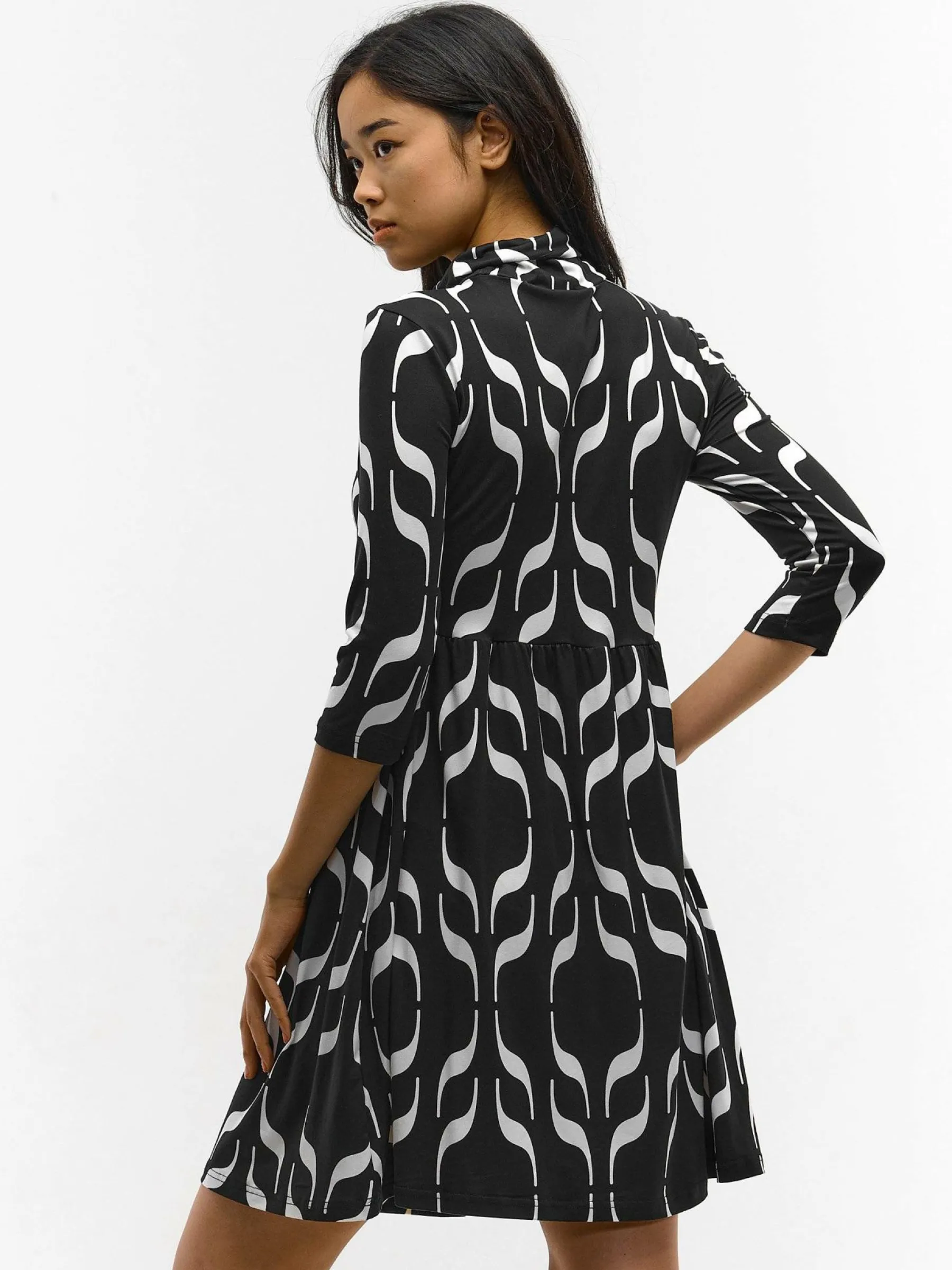 Kolor: czarnyKrój: asyTyp: sukienkaRekaw: rękaw 3/4Długość: miniPattern style: wzorzyste, z nadrukiemDetal: nad gł…
