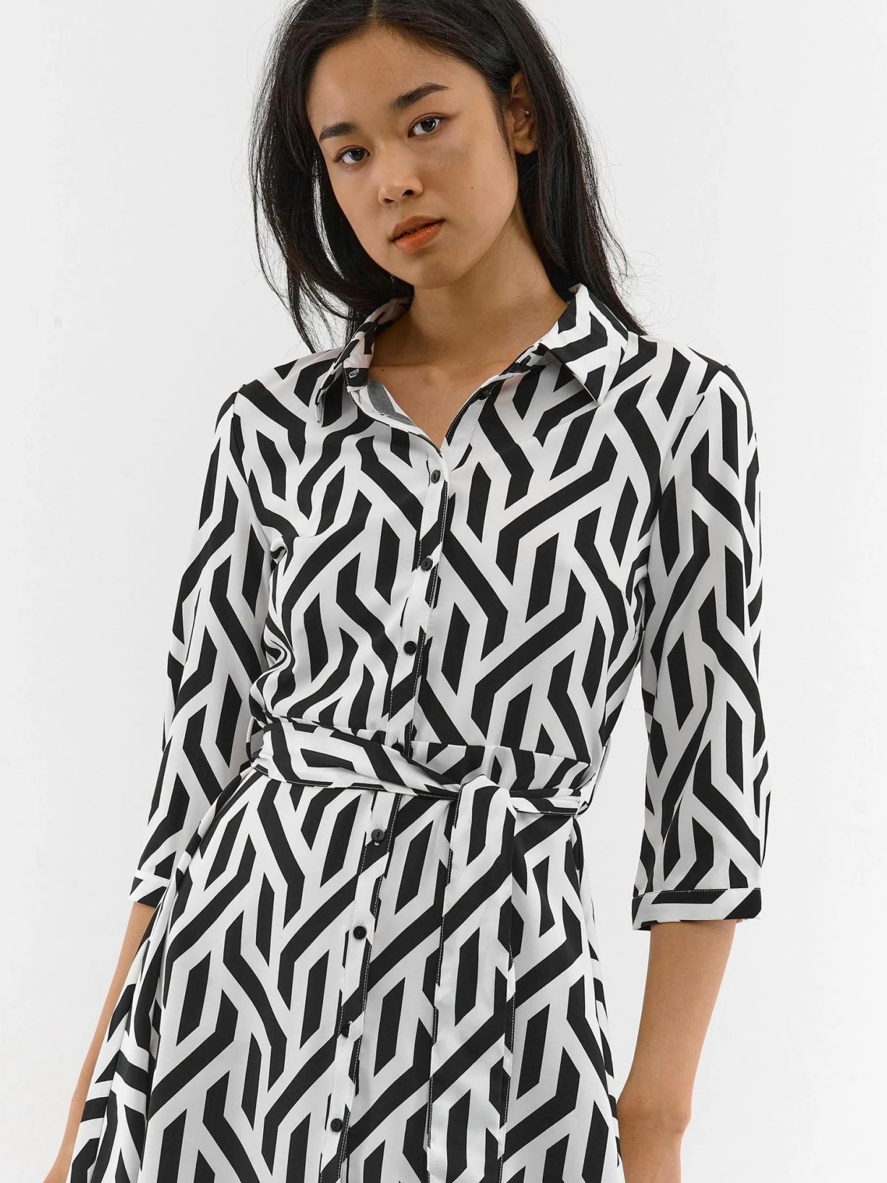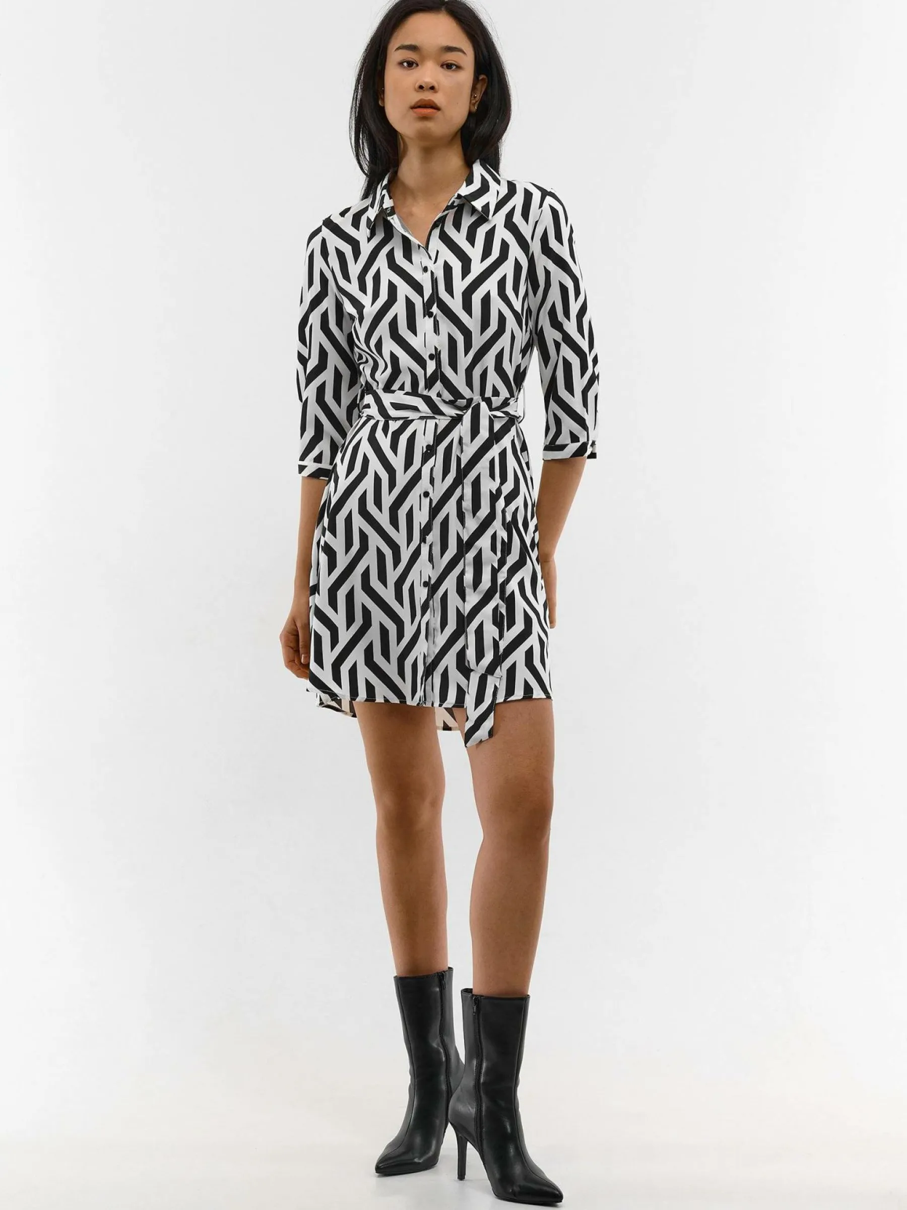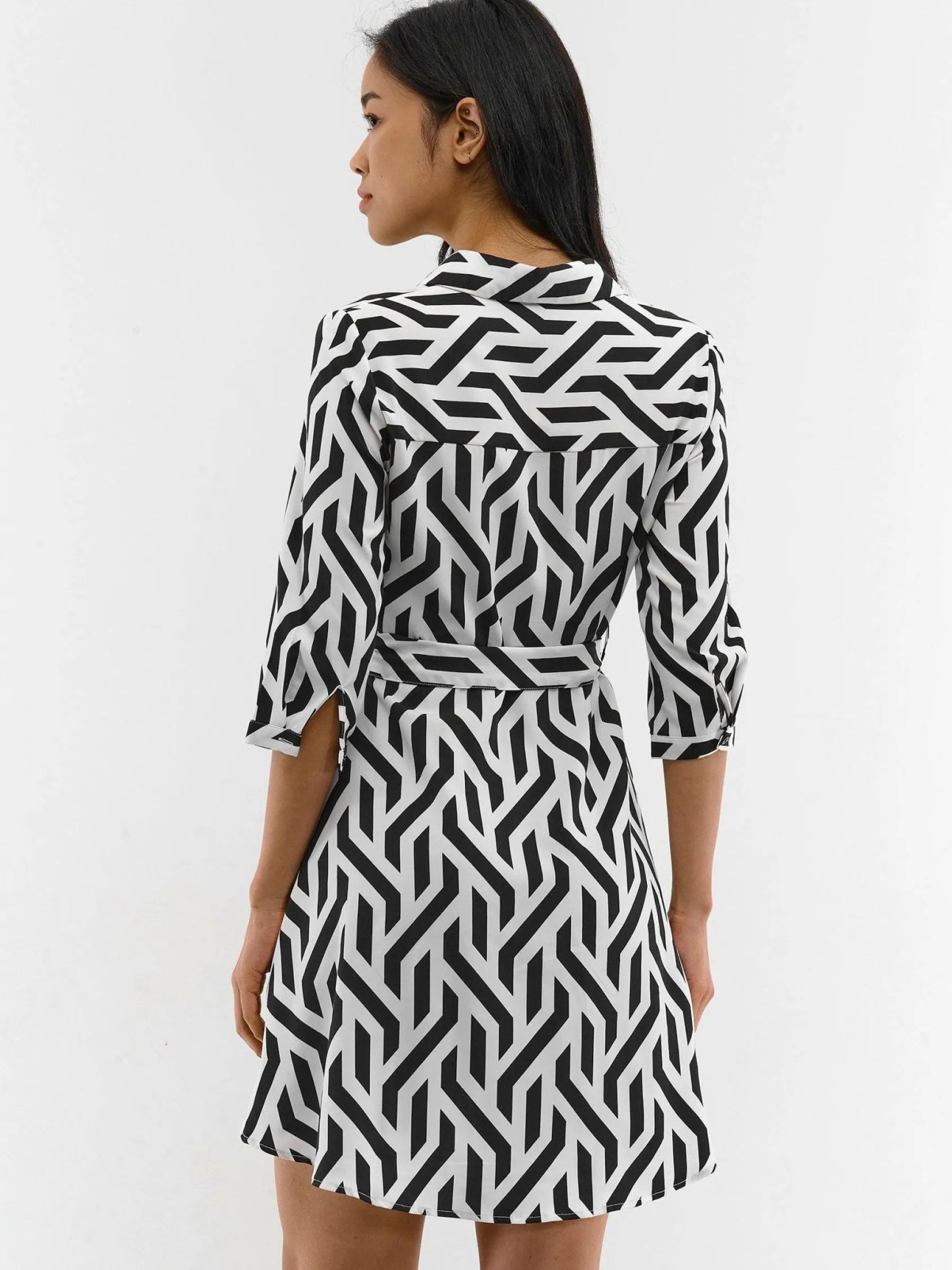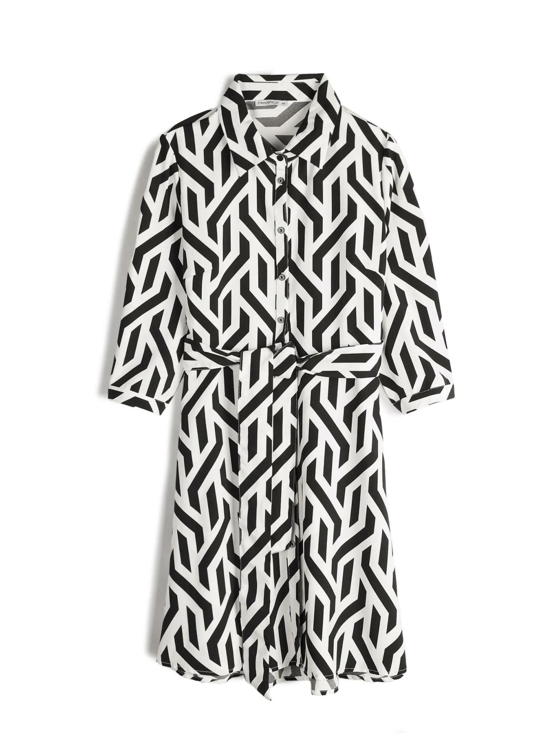 Kolor: białyKrój: koszuloweTyp: sukienkaRekaw: rękaw 3/4Długość: miniPattern style: z nadrukiemDetal: na guziki, z…