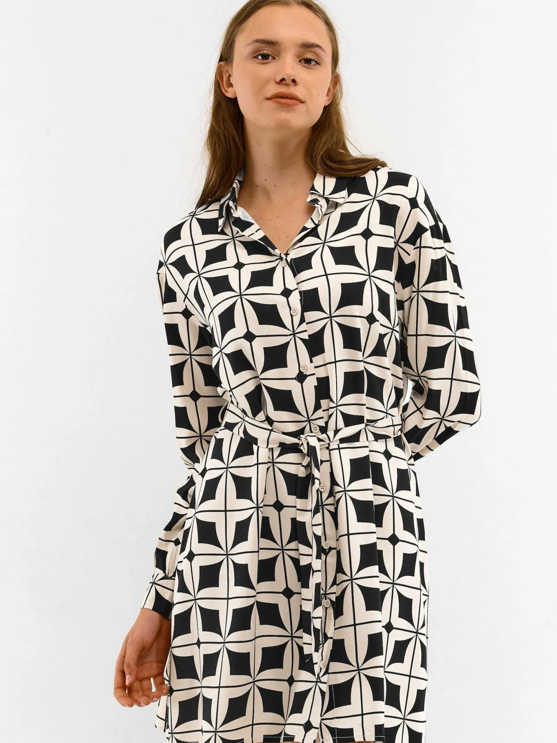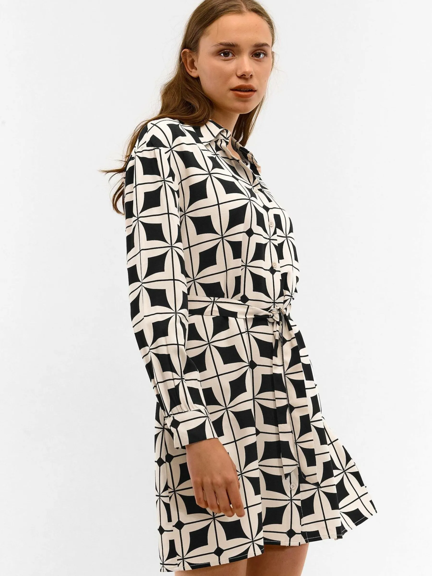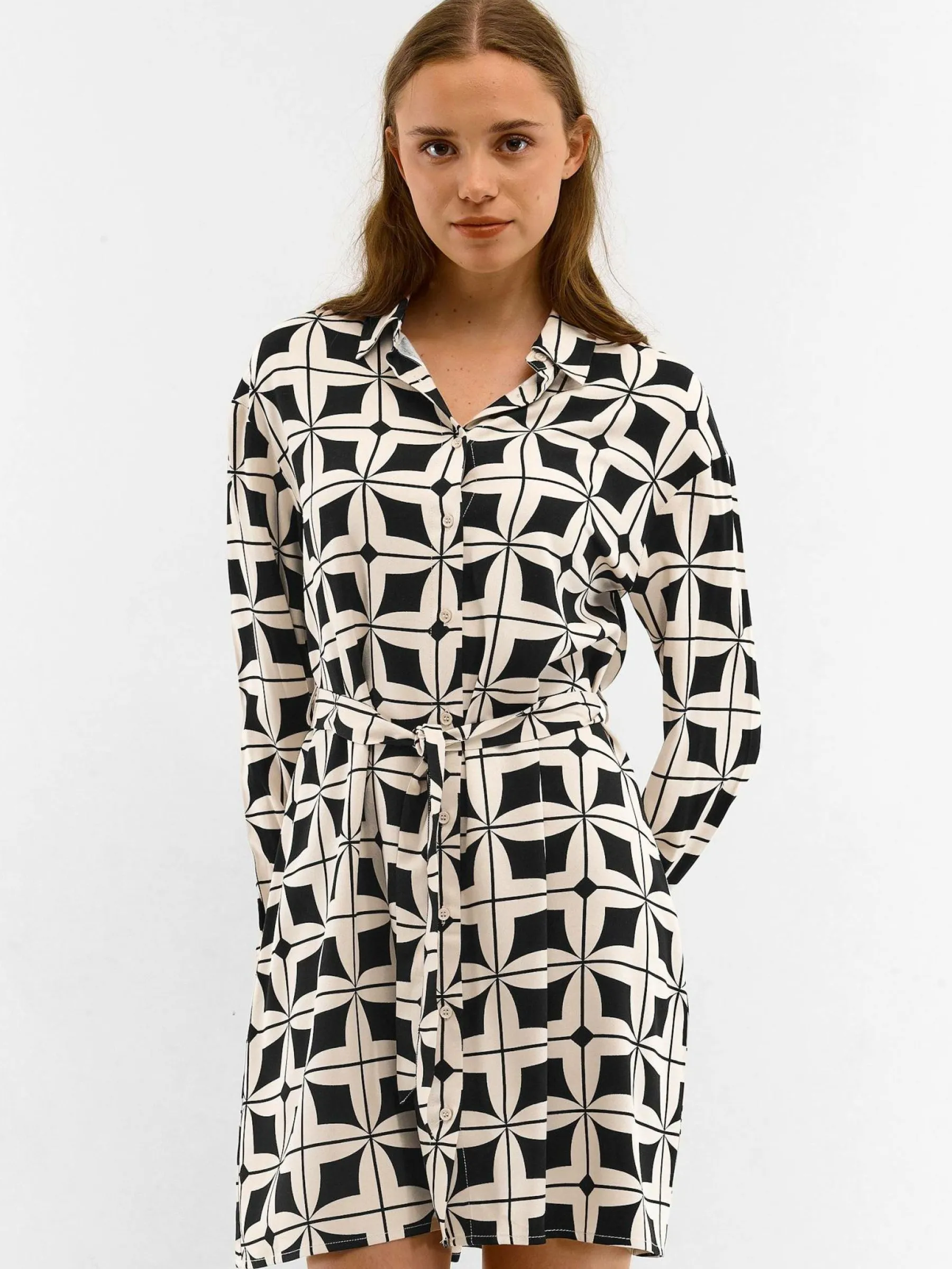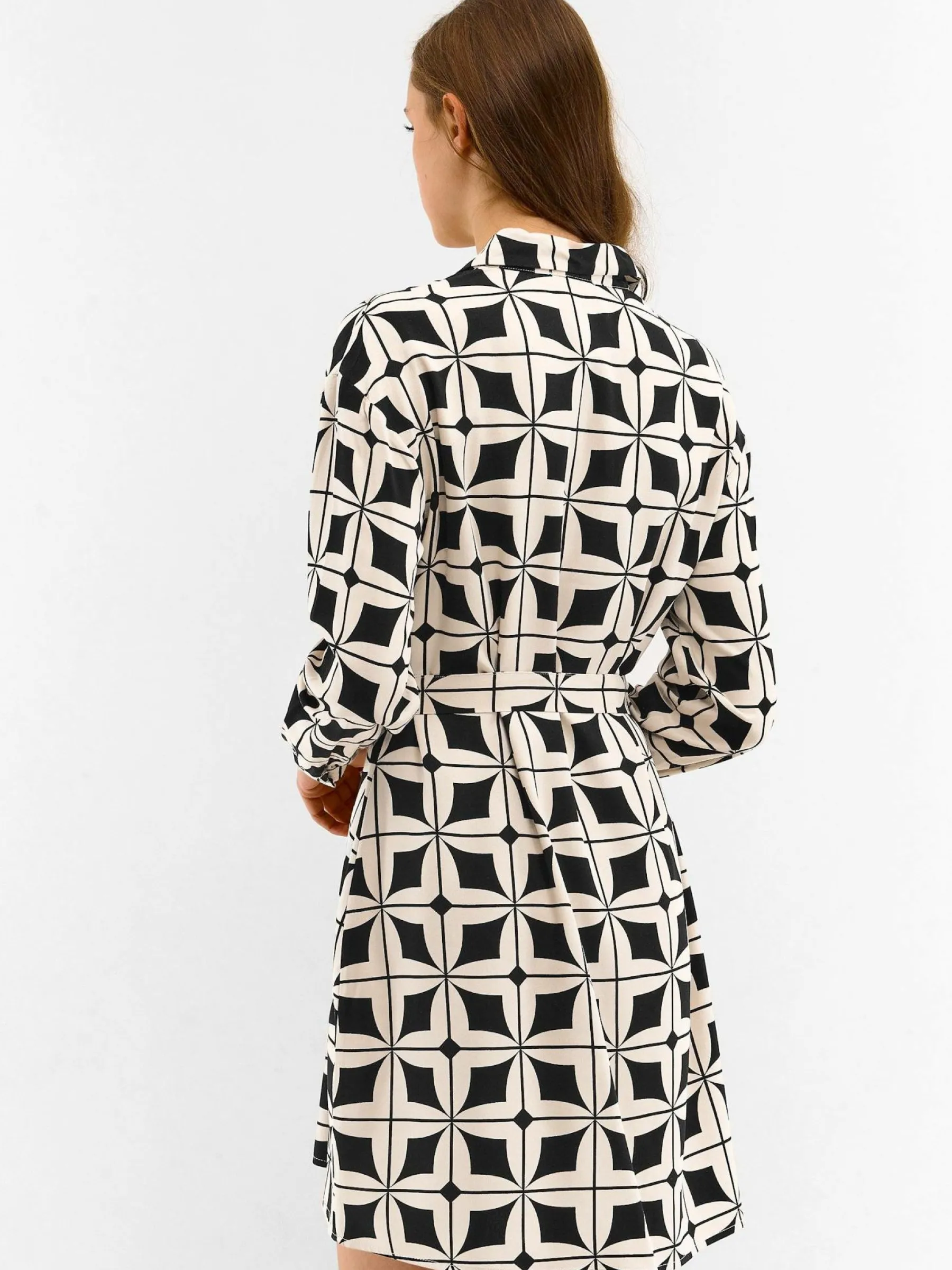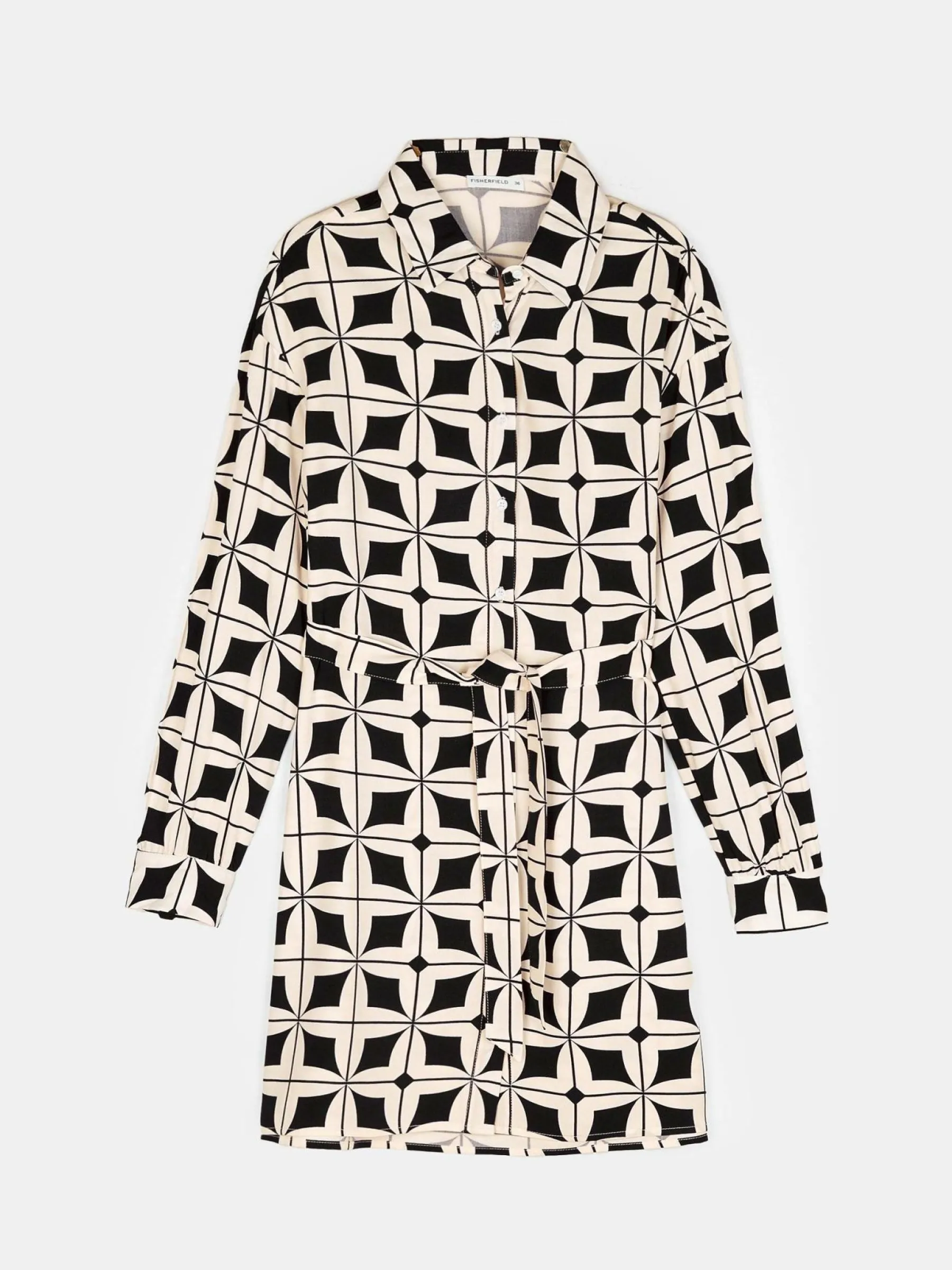Kolor: czarnyKrój: koszuloweTyp: sukienkaRekaw: długi rękawDługość: miniPattern style: wzorzysteDetal: na guziki, …