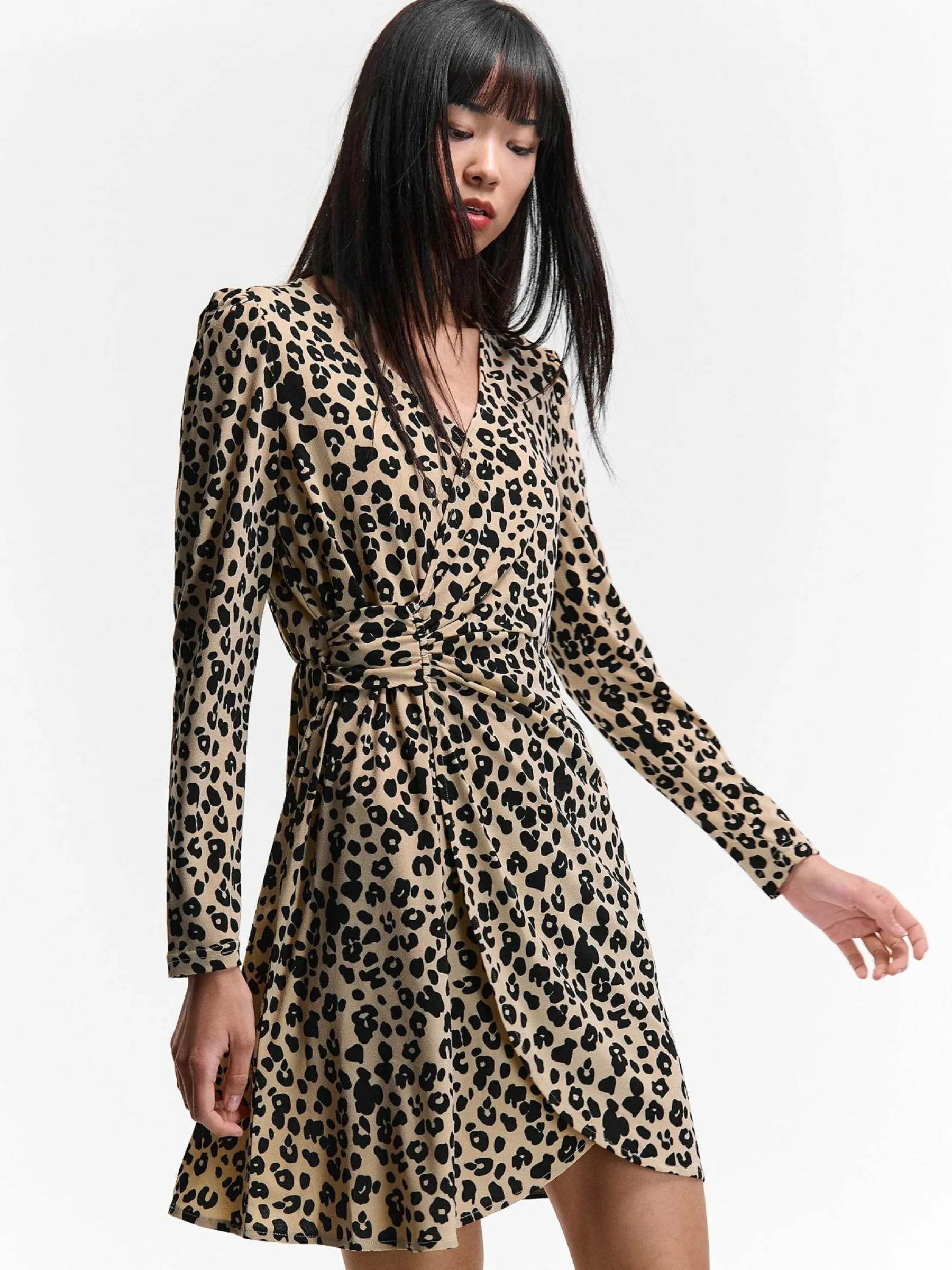 Zdjęcia z modelką mogą nie odpowiadać rzeczywistemu kolorowi produktu.Kolor: beżowyKrój: kopertówkiTyp: sukienkaR…