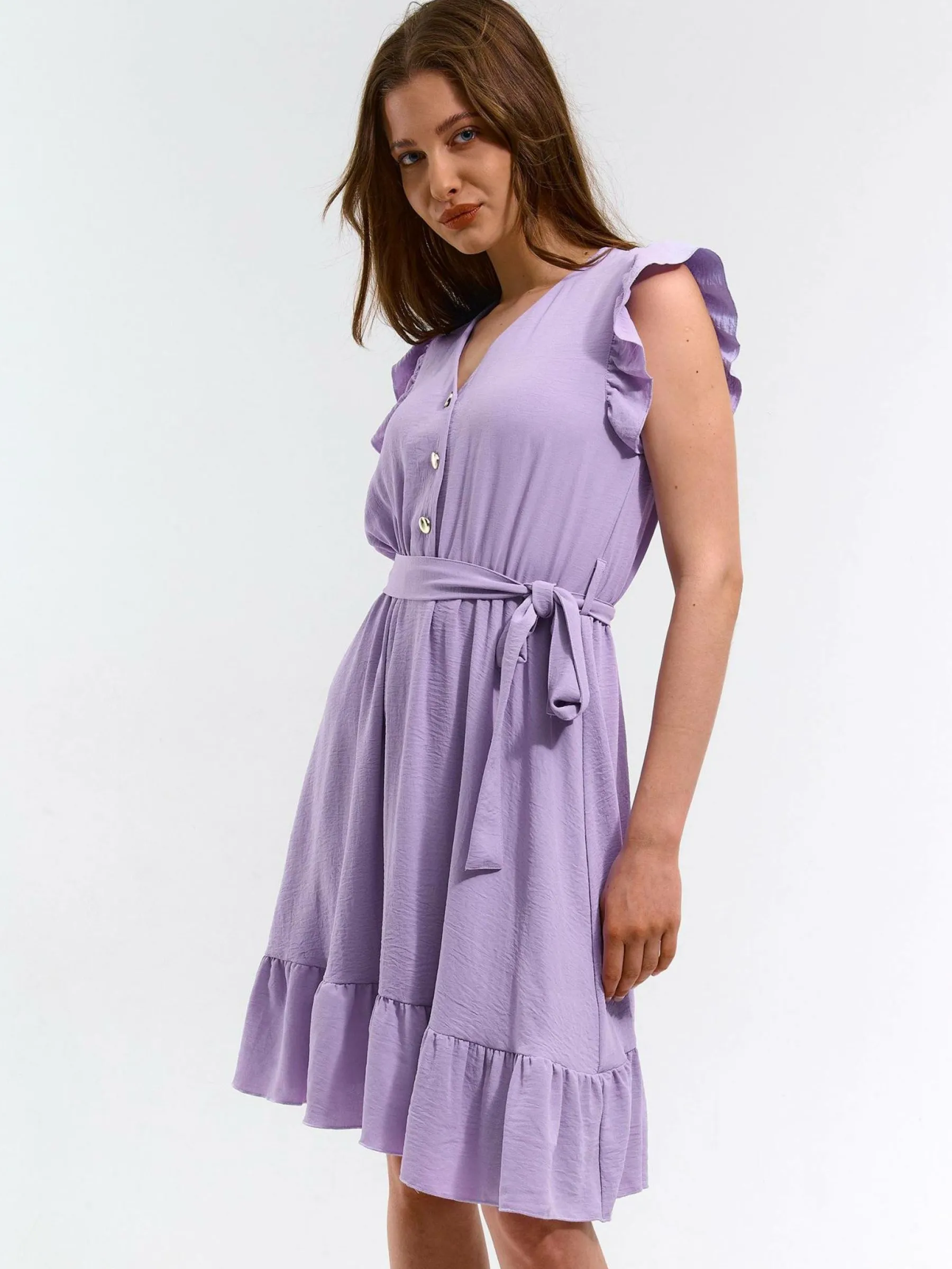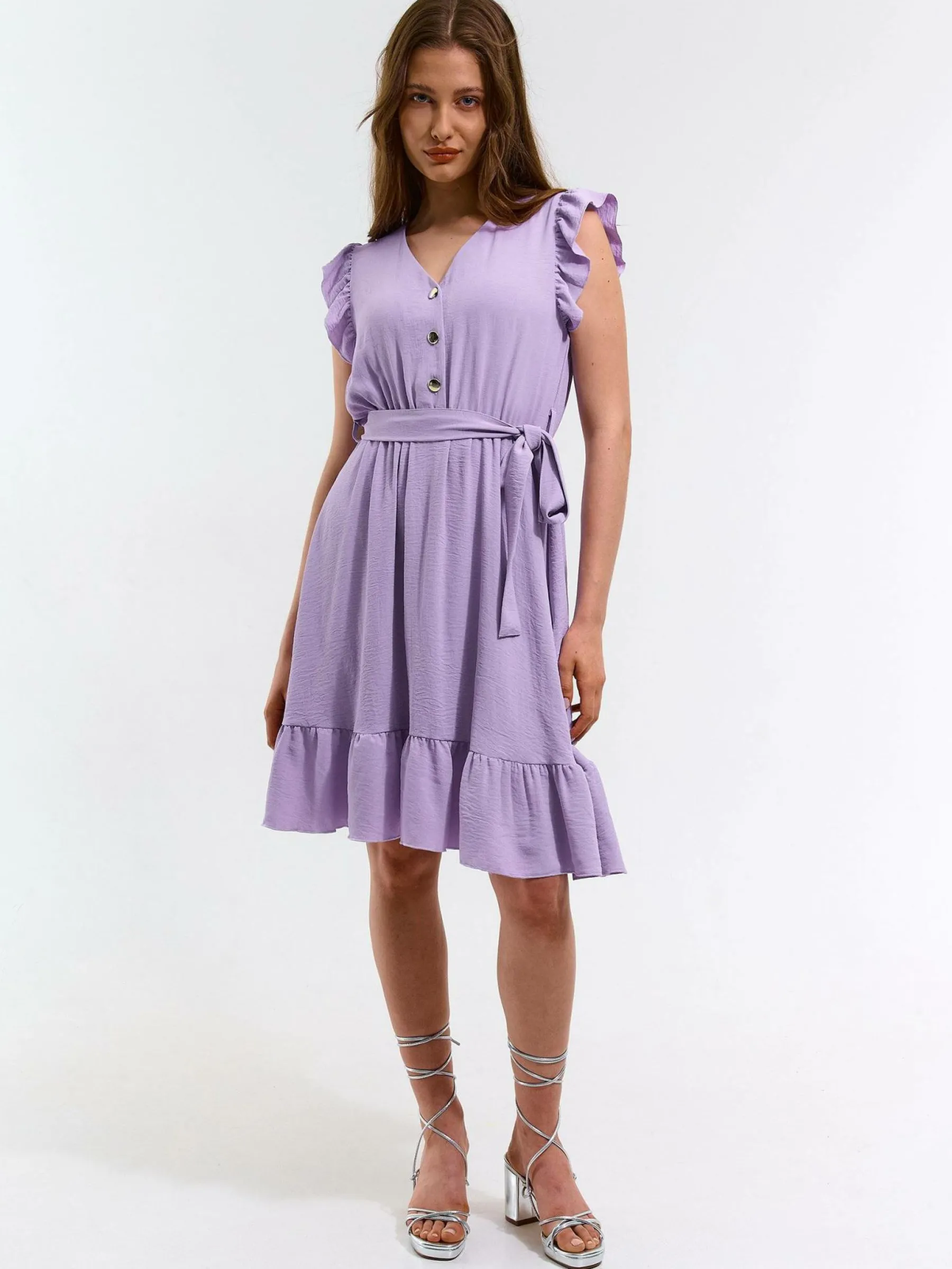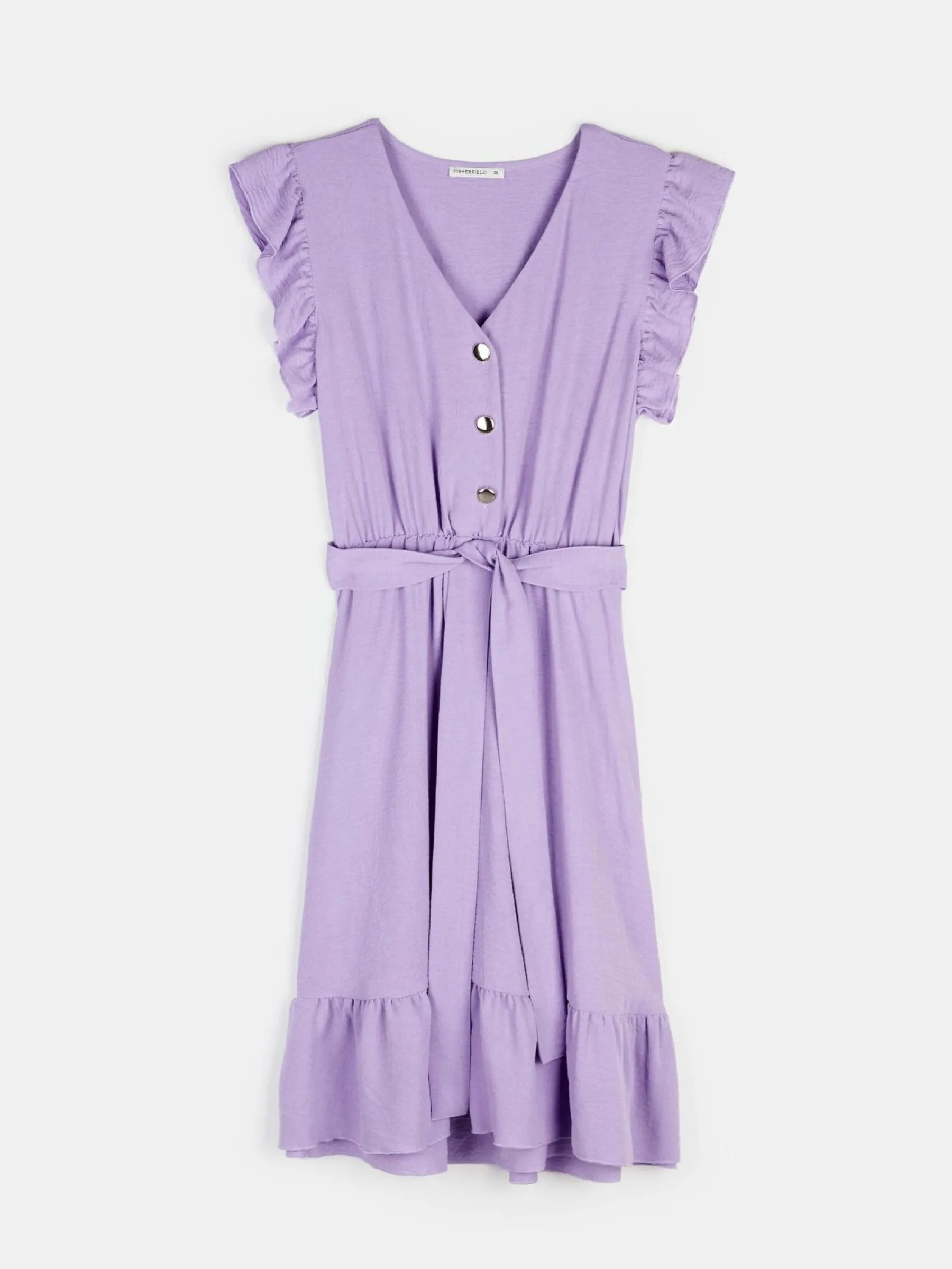 Zdjęcia z modelką mogą nie odpowiadać rzeczywistemu kolorowi produktu.Kolor: purpurowyKrój: z falbaną, koszuloweTy…