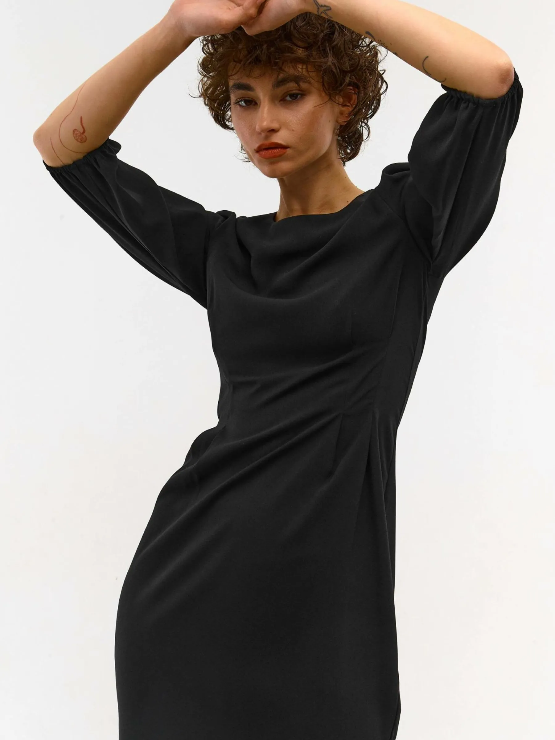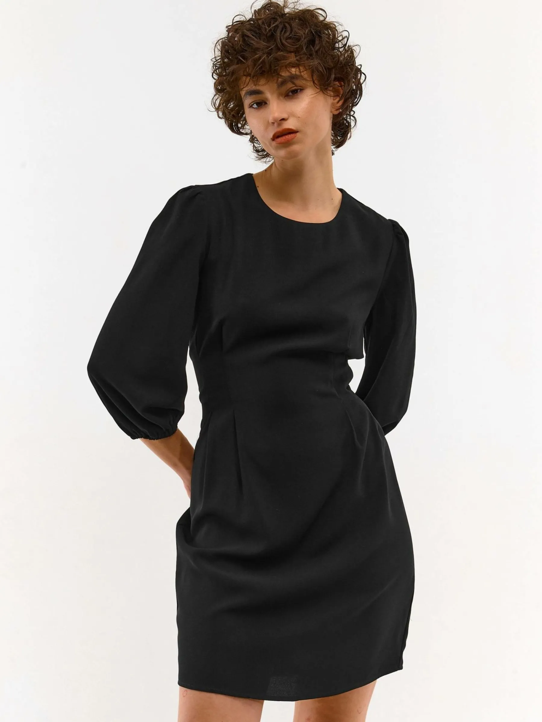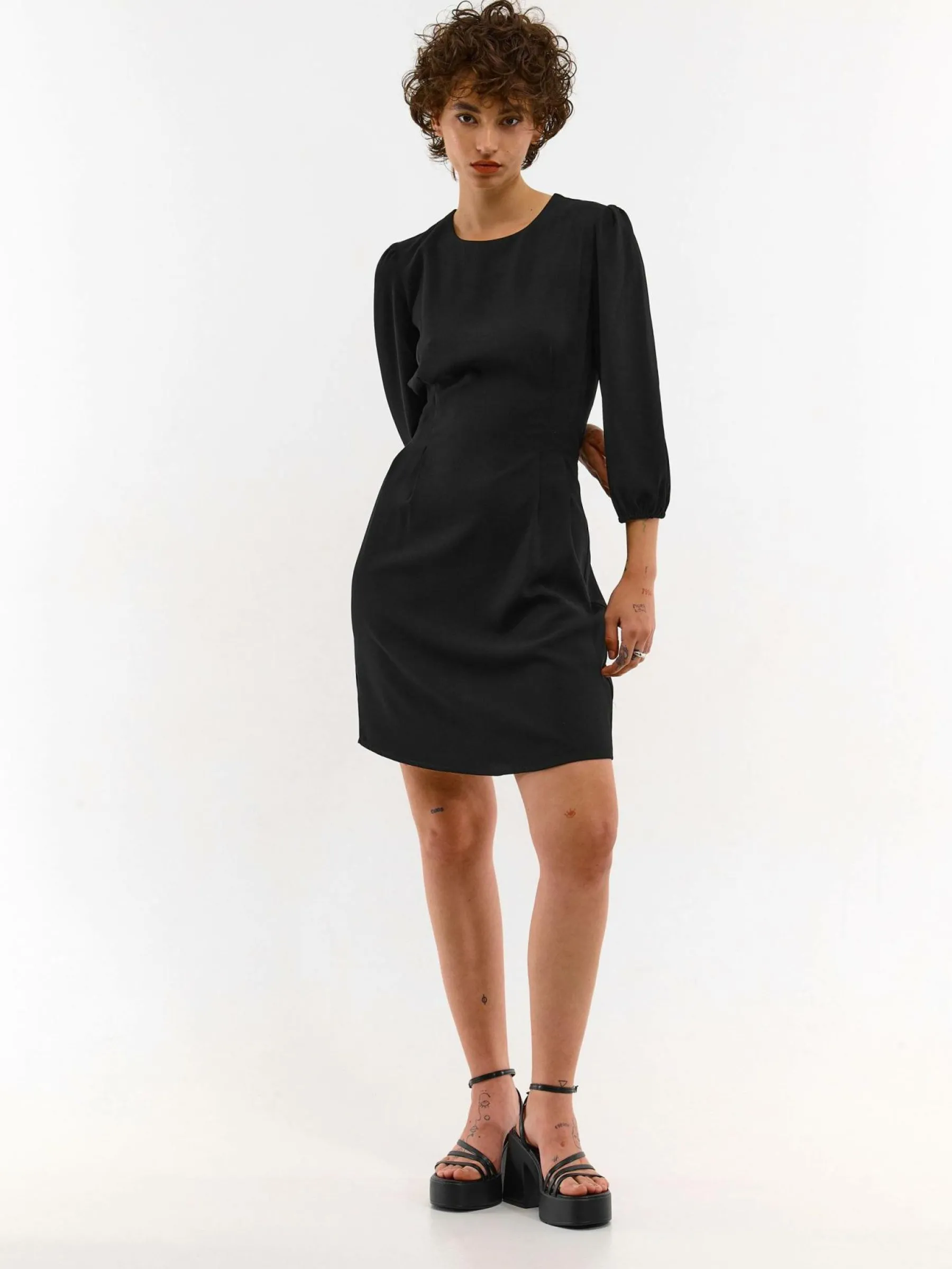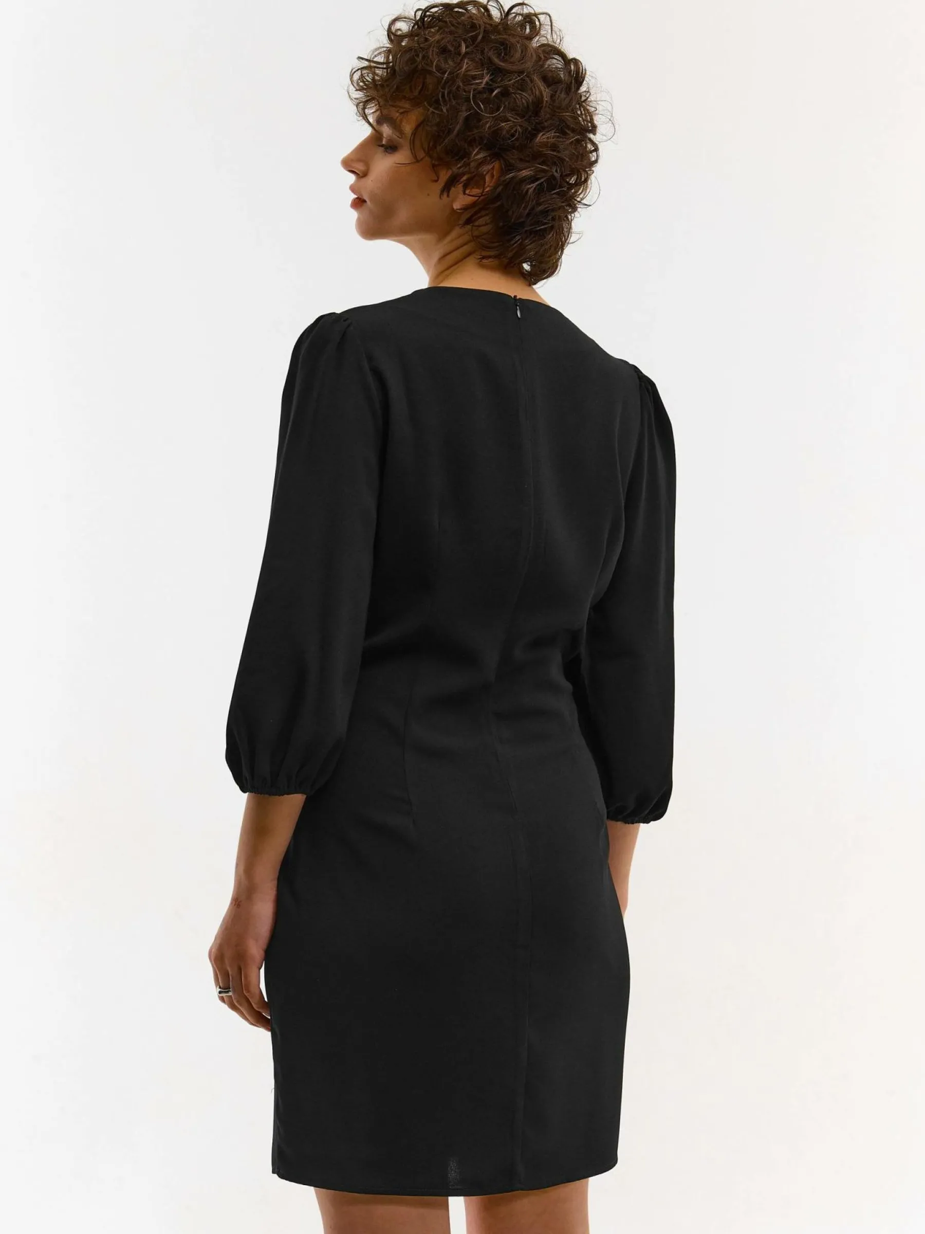 Kolor: czarnyKrój: asyTyp: sukienkaRekaw: rękaw 3/4Długość: miniPattern style: pojedynczy kolorDetal: na zamekMater…