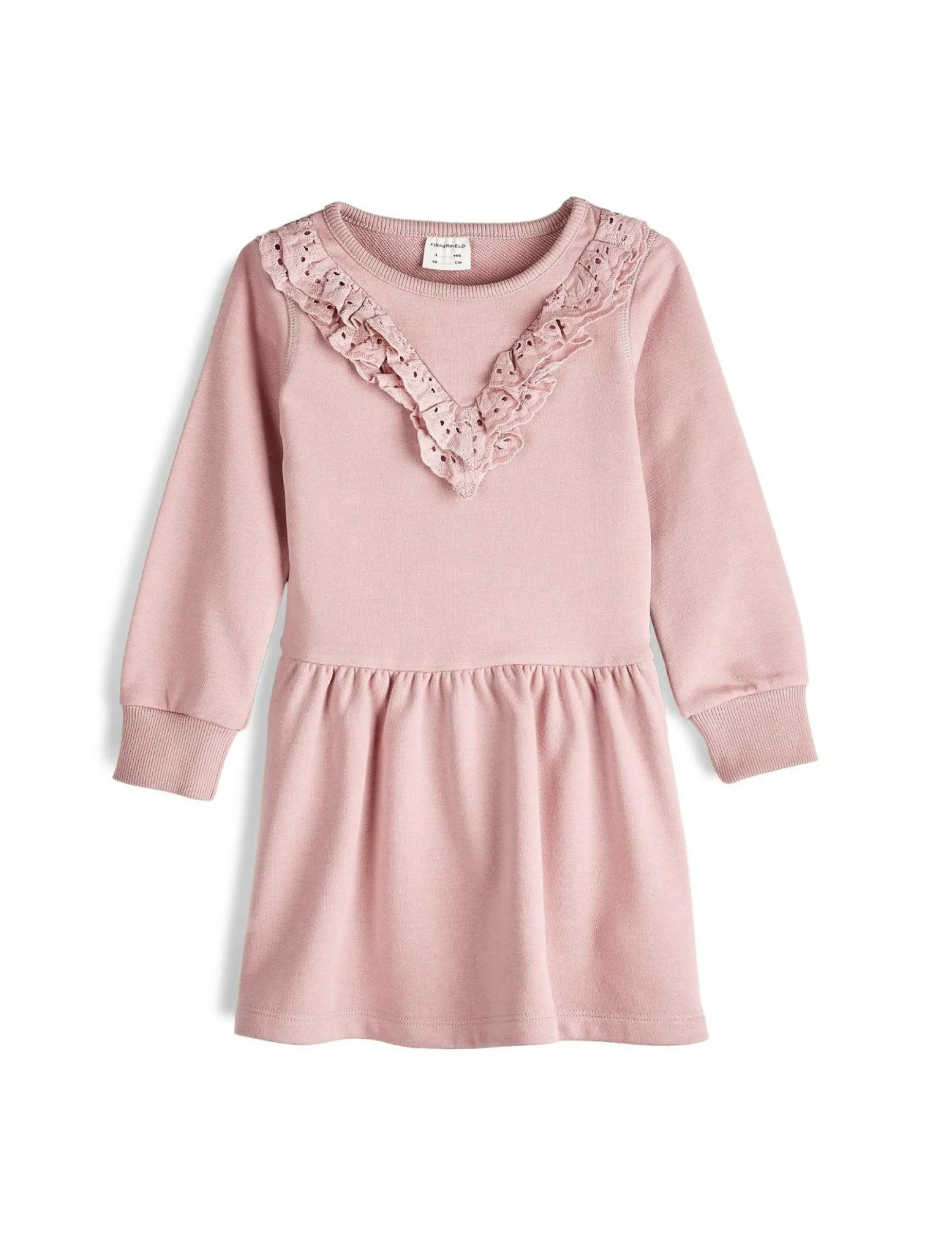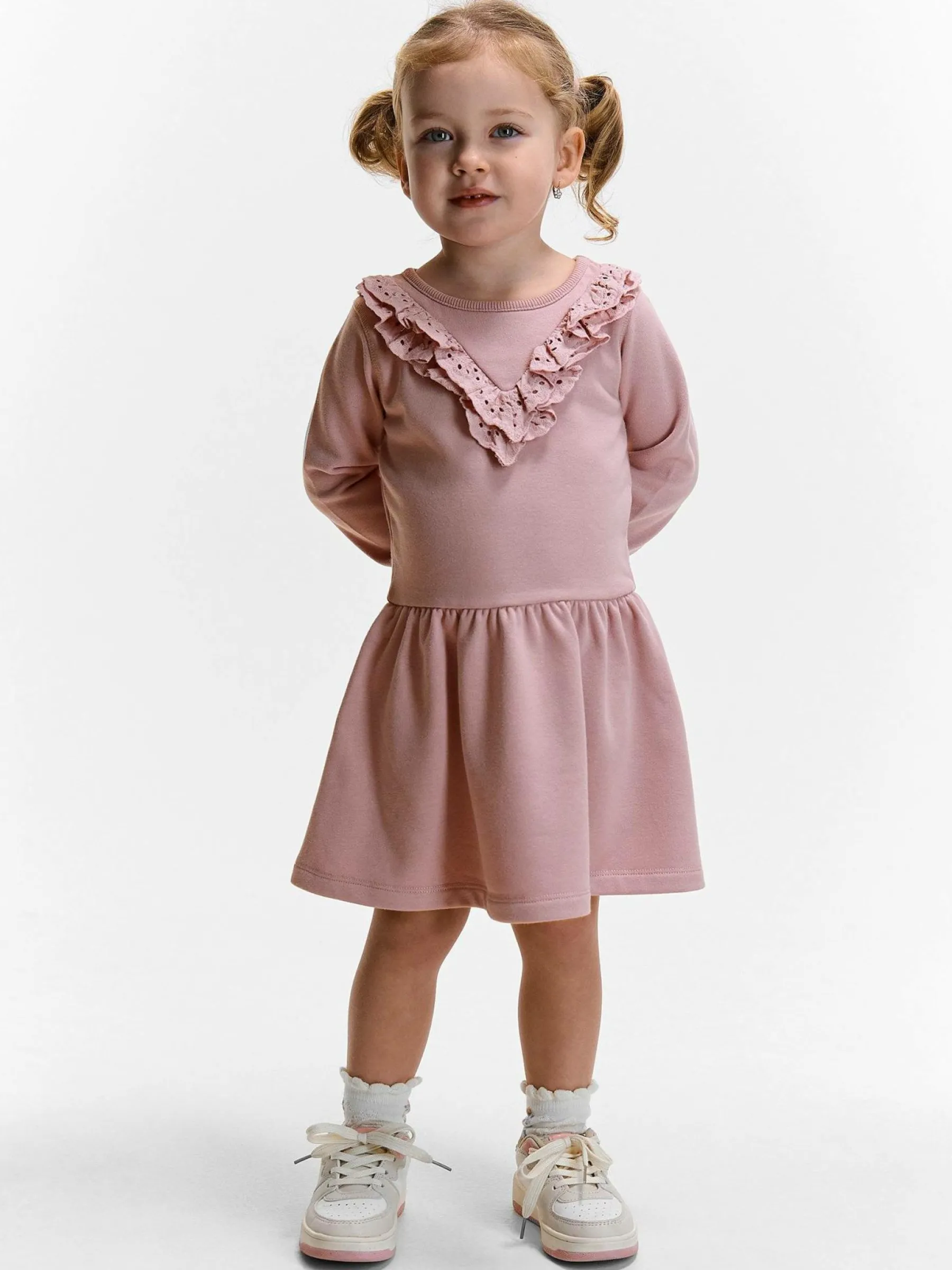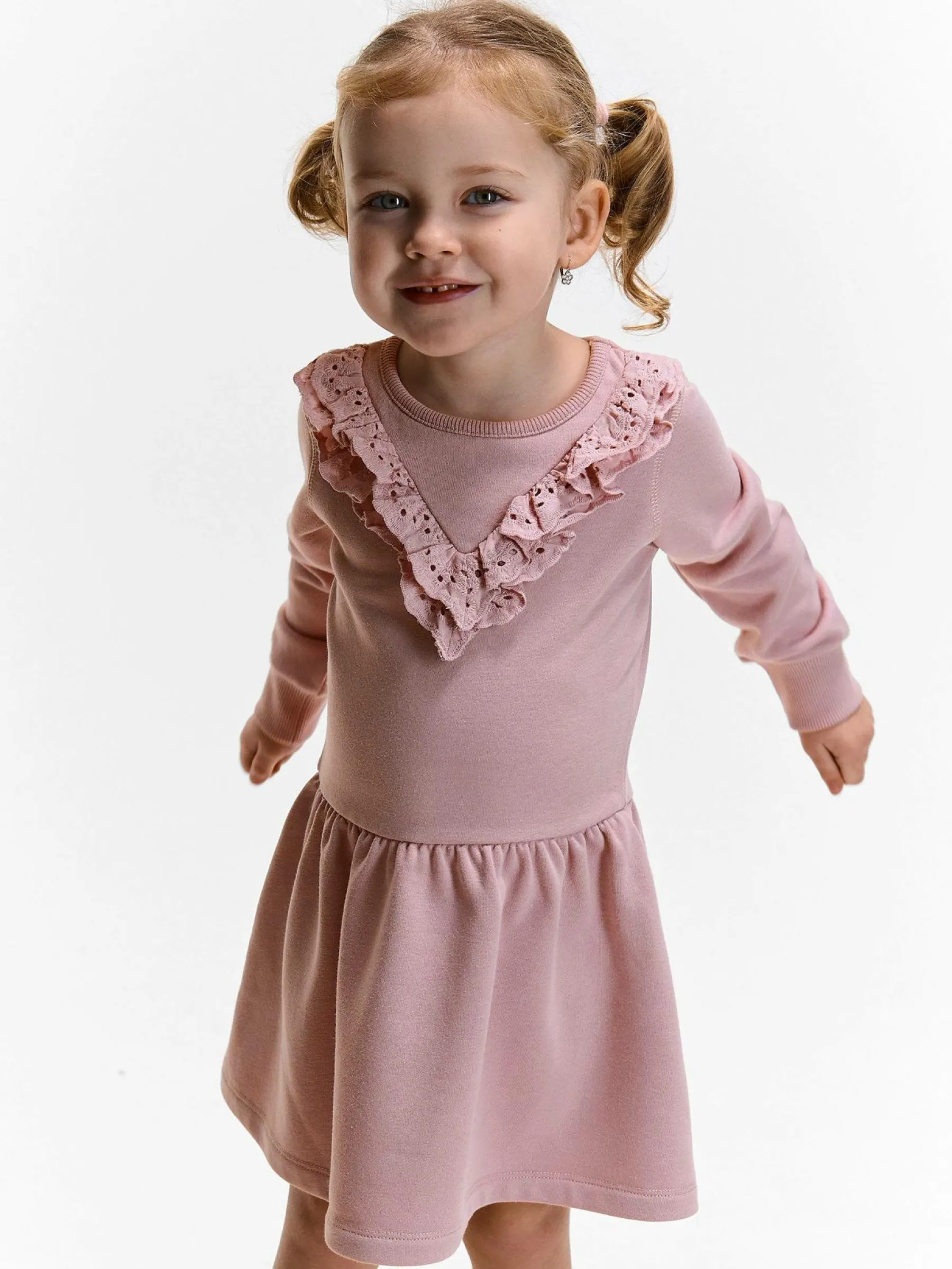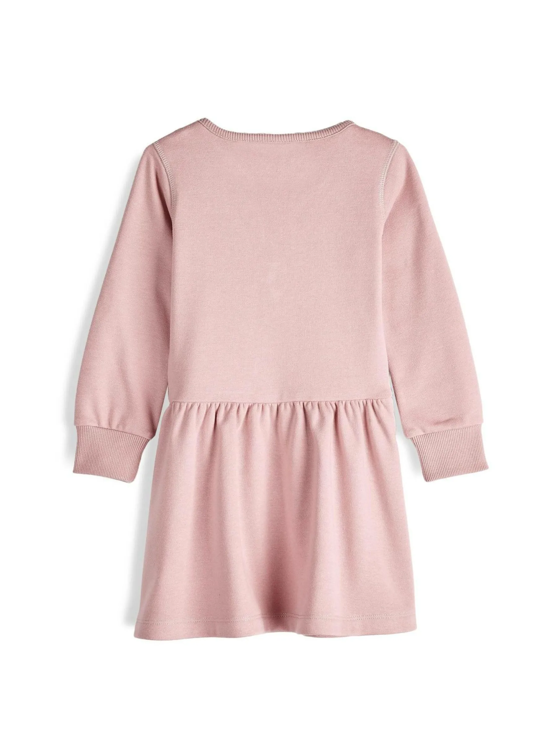 Kolor: różowyKrój: z falbaną, bluza sportowaTyp: sukienkaRekaw: długi rękawDługość: miniPattern style: pojedync…
