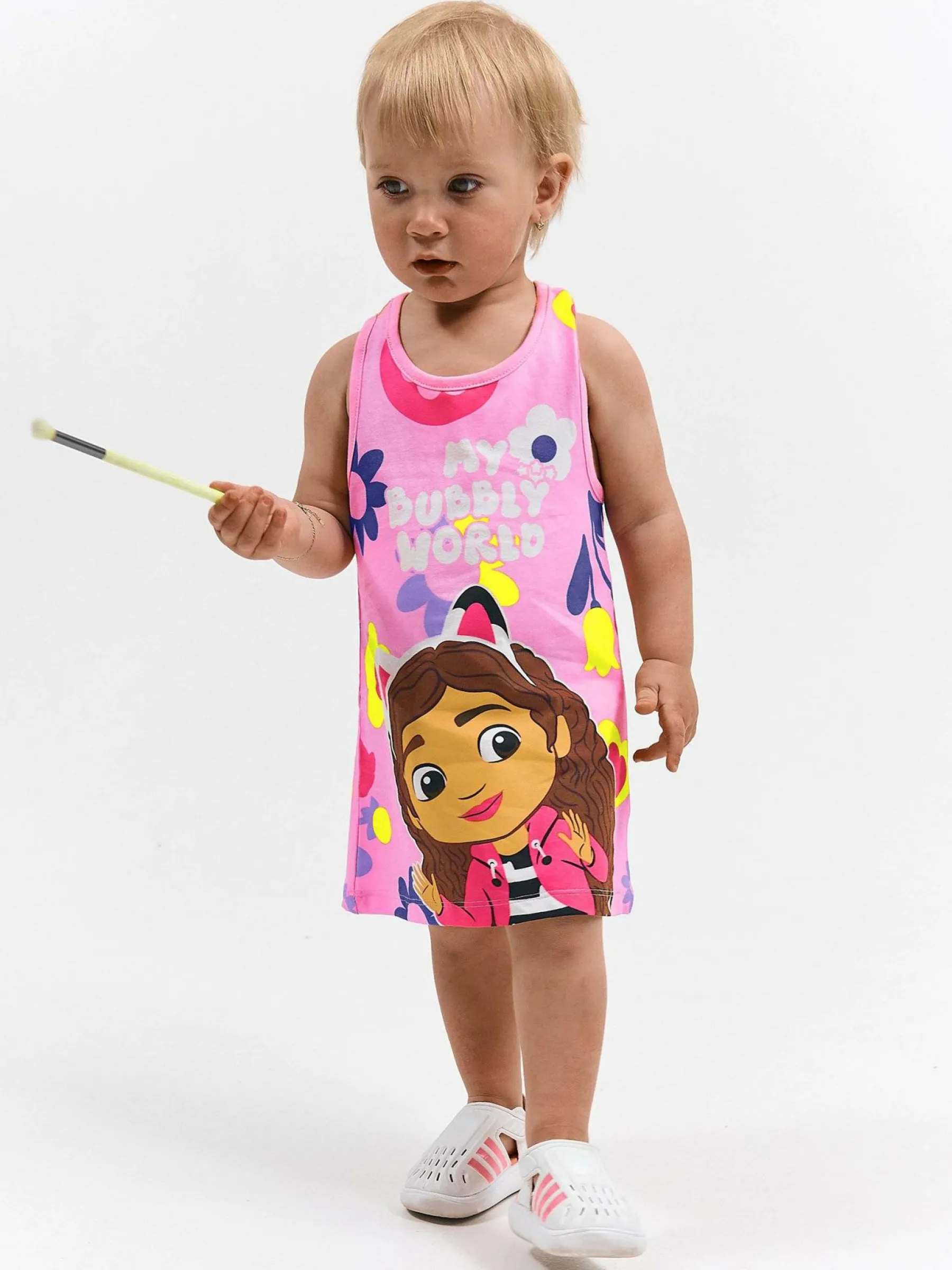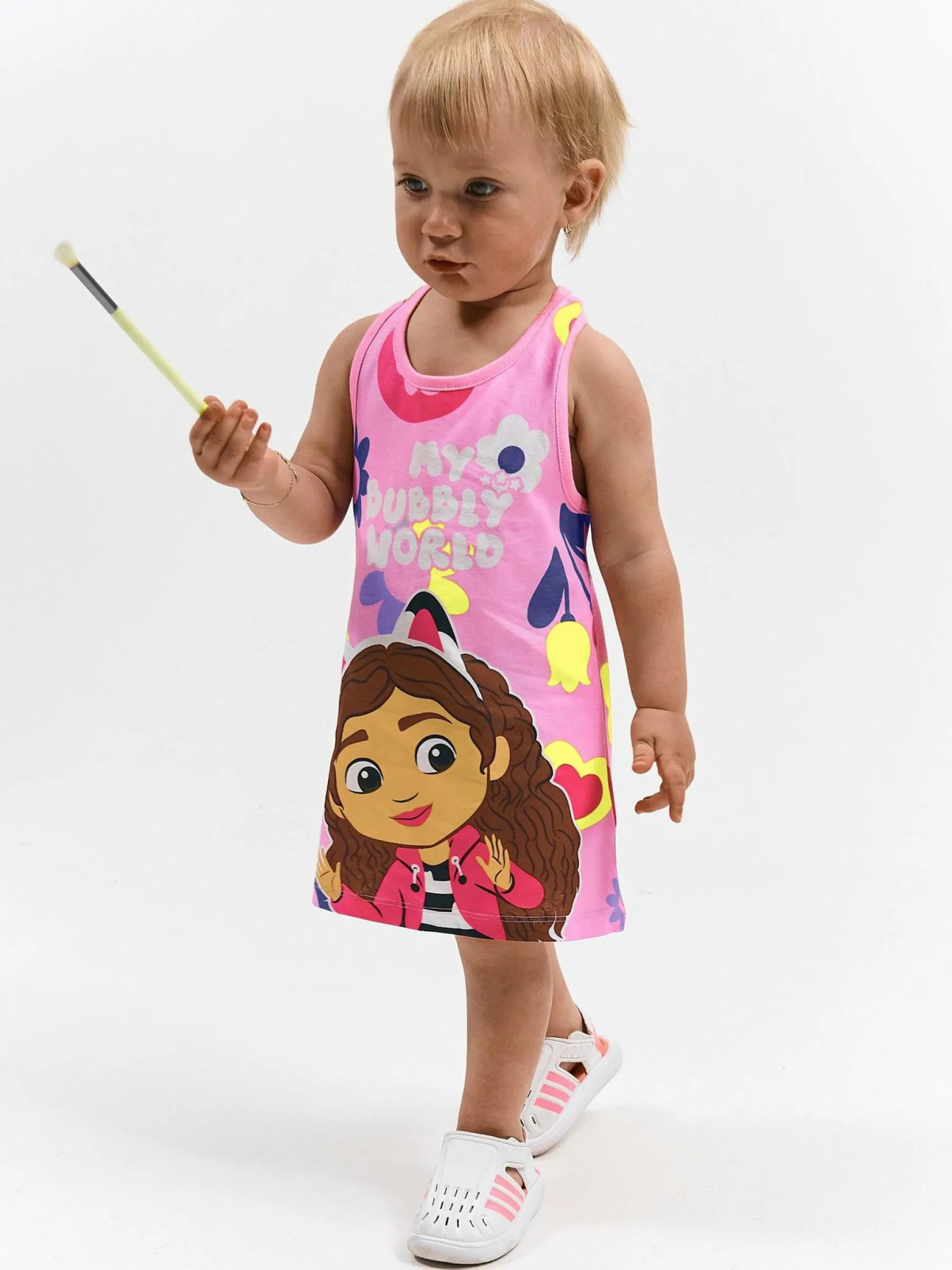Kolor: różowyKrój: regularTyp: sukienkaRekaw: bez rękawówDługość: miniPattern style: z nadrukiemDetal: nad głow…