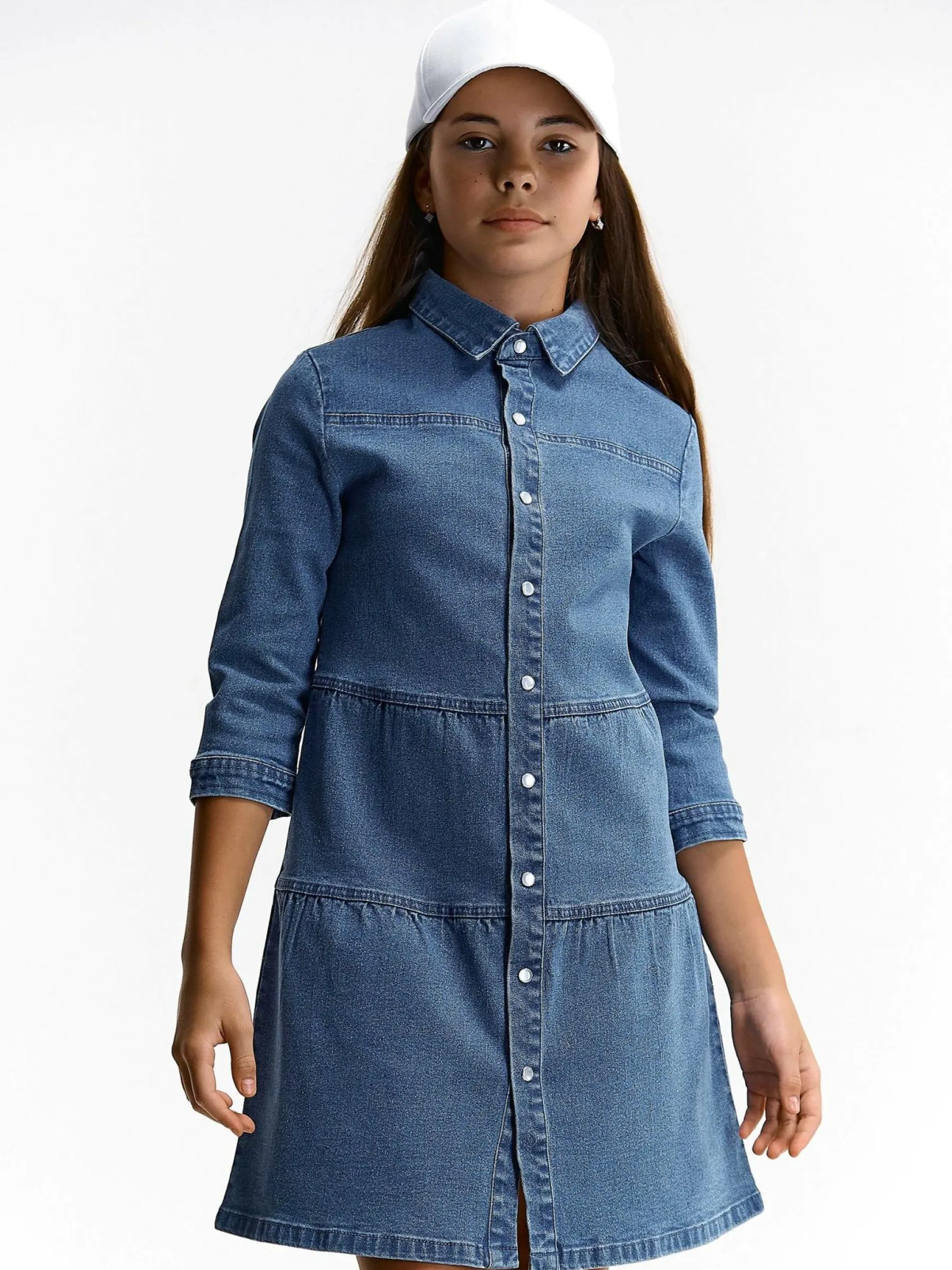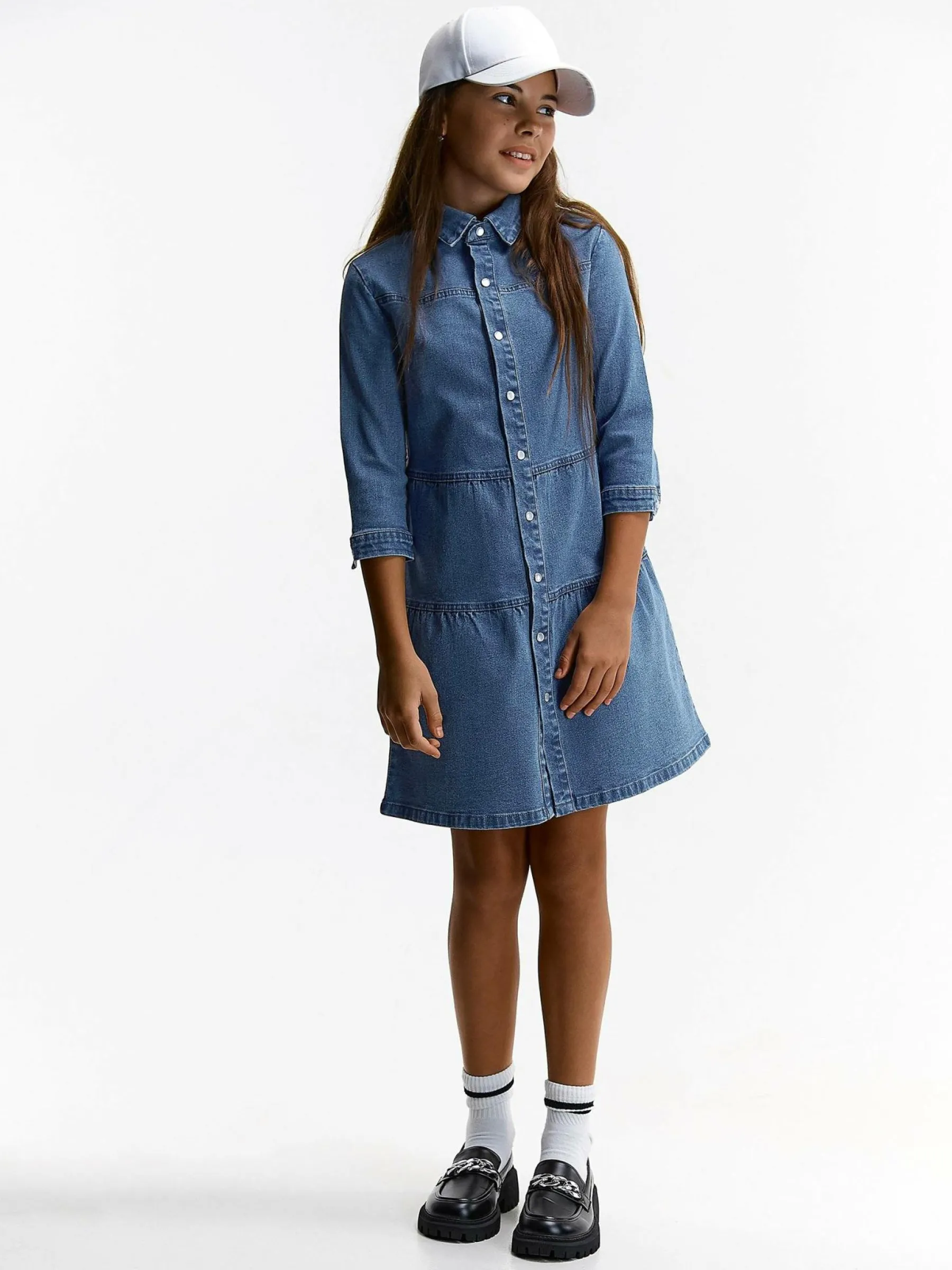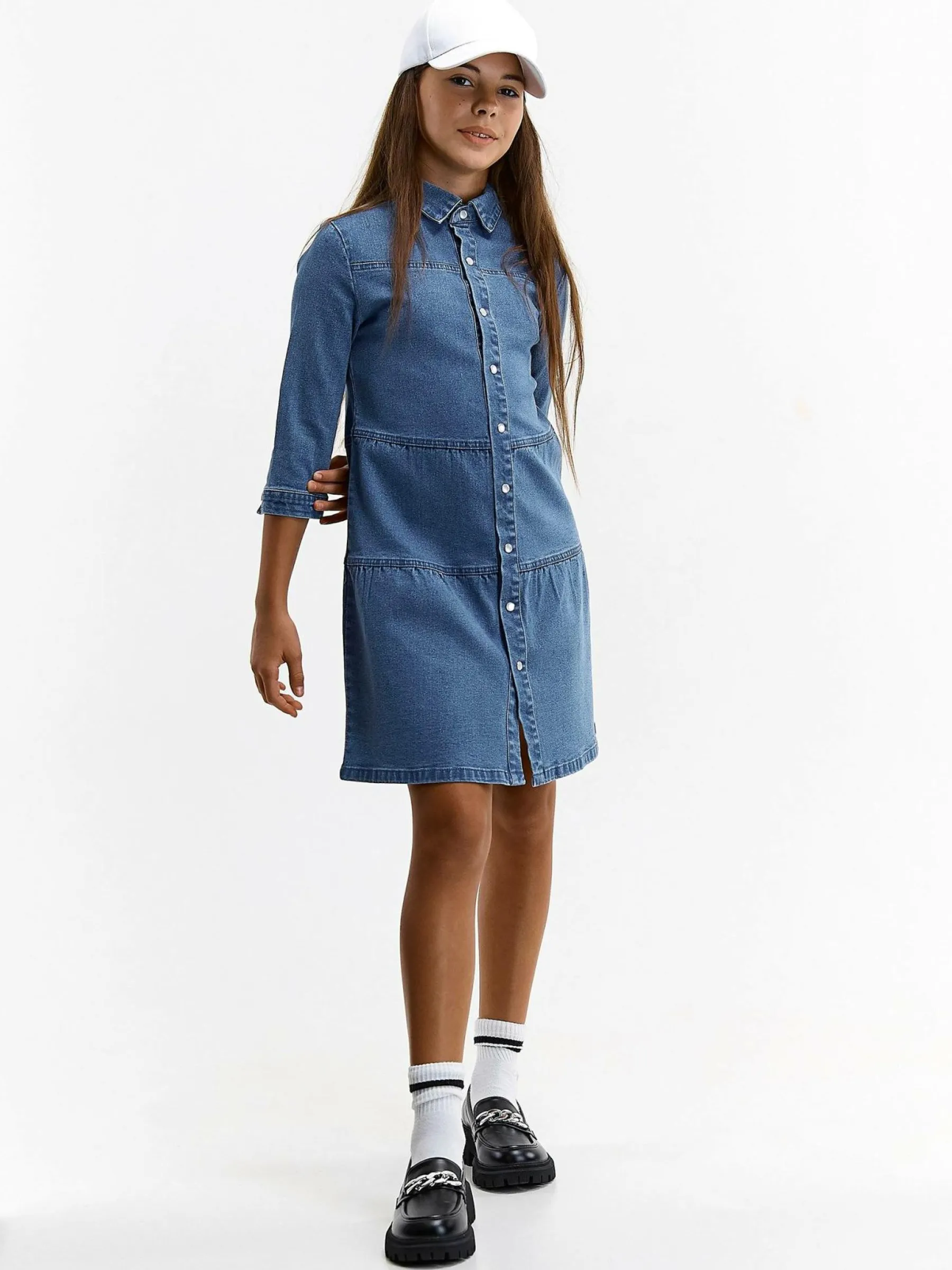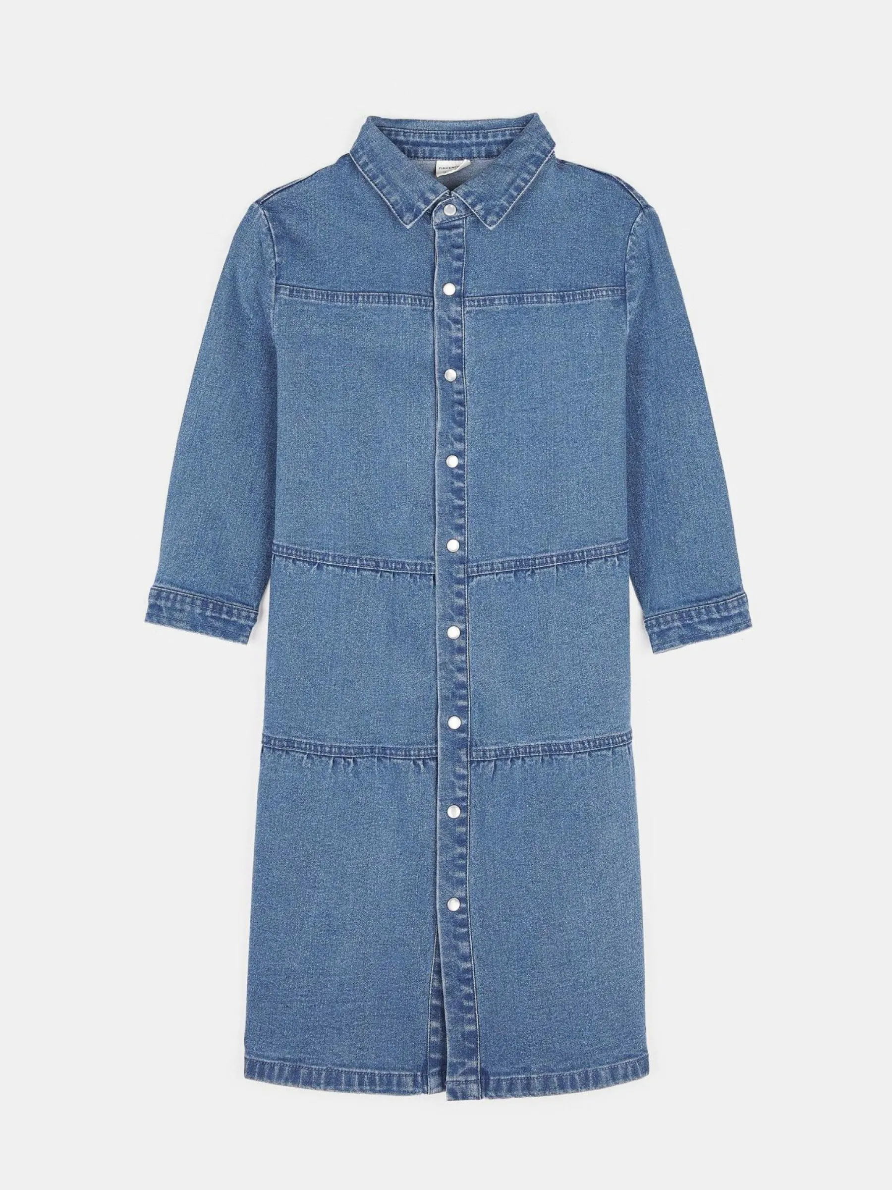 Kolor: niebieskiKrój: regular, koszuloweTyp: sukienkaRekaw: długi rękawDługość: miniPattern style: pojedynczy kolo…
