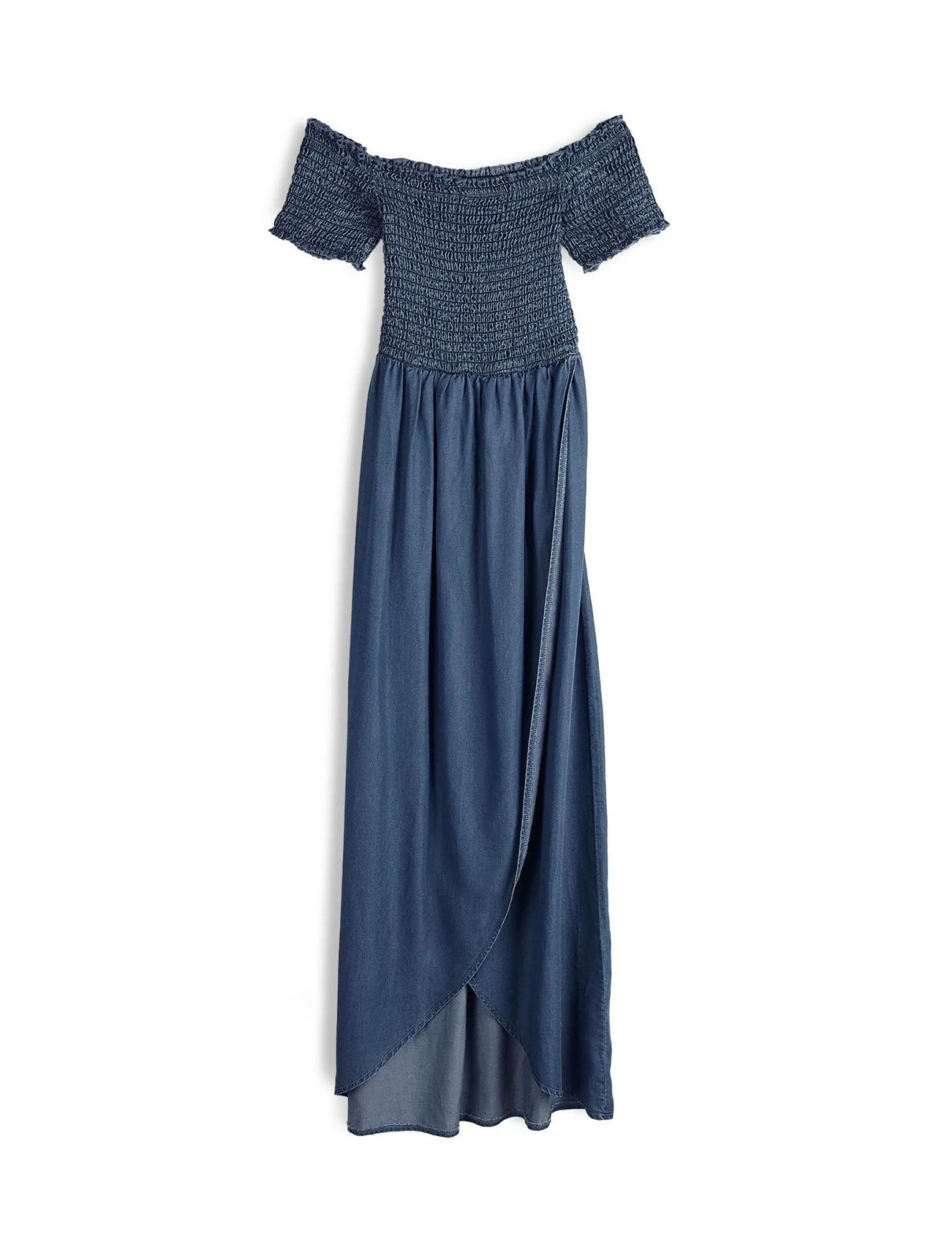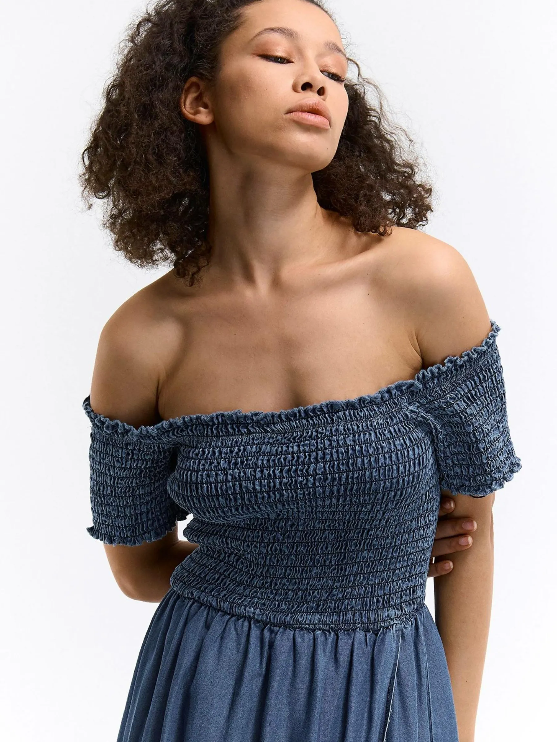 Kolor: granatowyKrój: z marszczeniem, asymetryczneTyp: sukienkaRekaw: krótki rękawDługość: midiPattern style: poje…