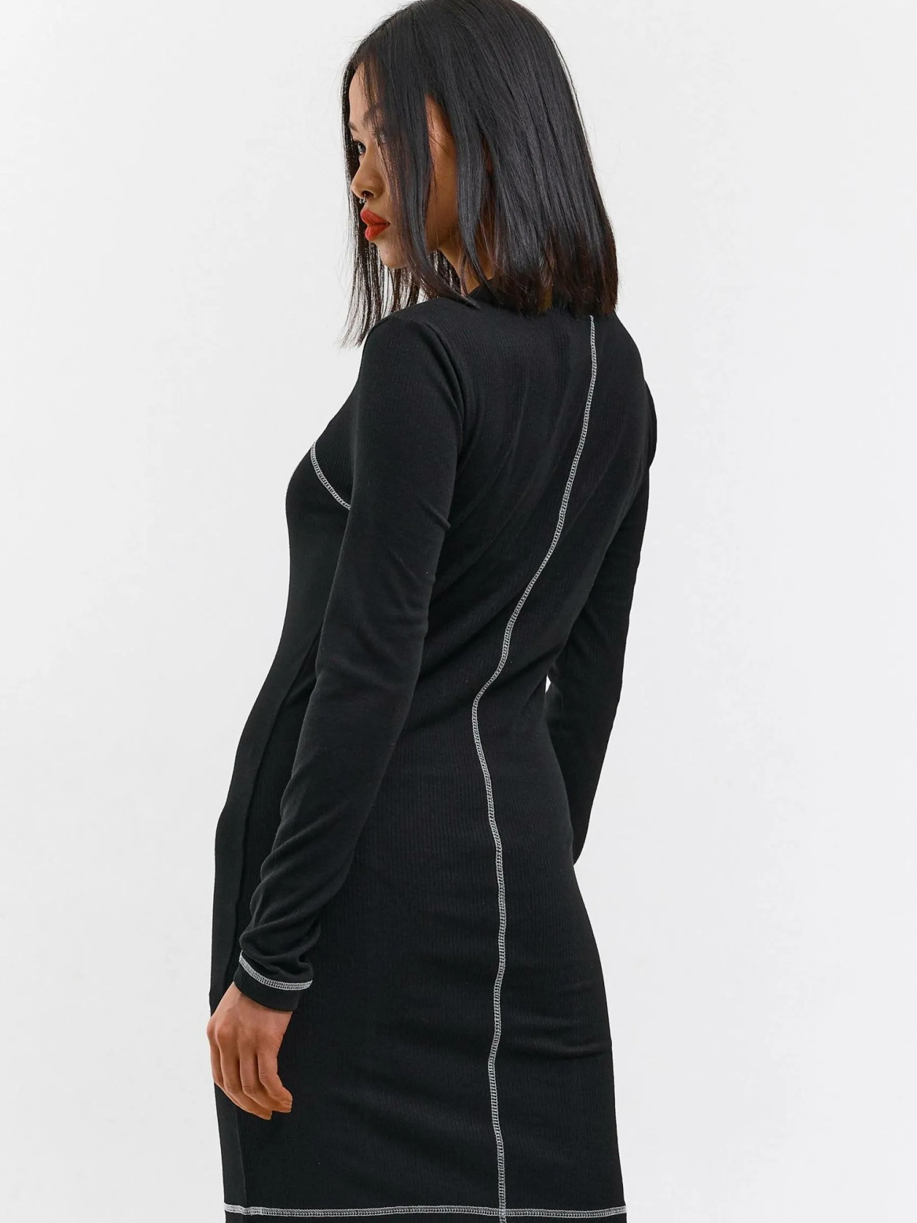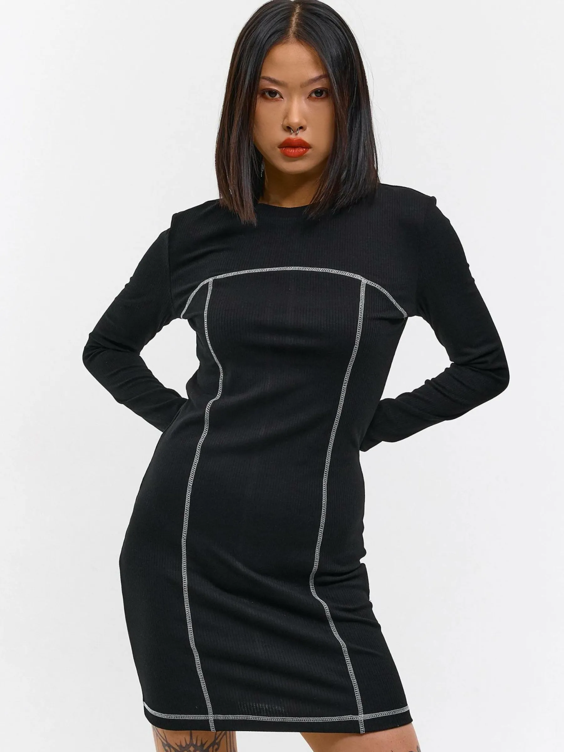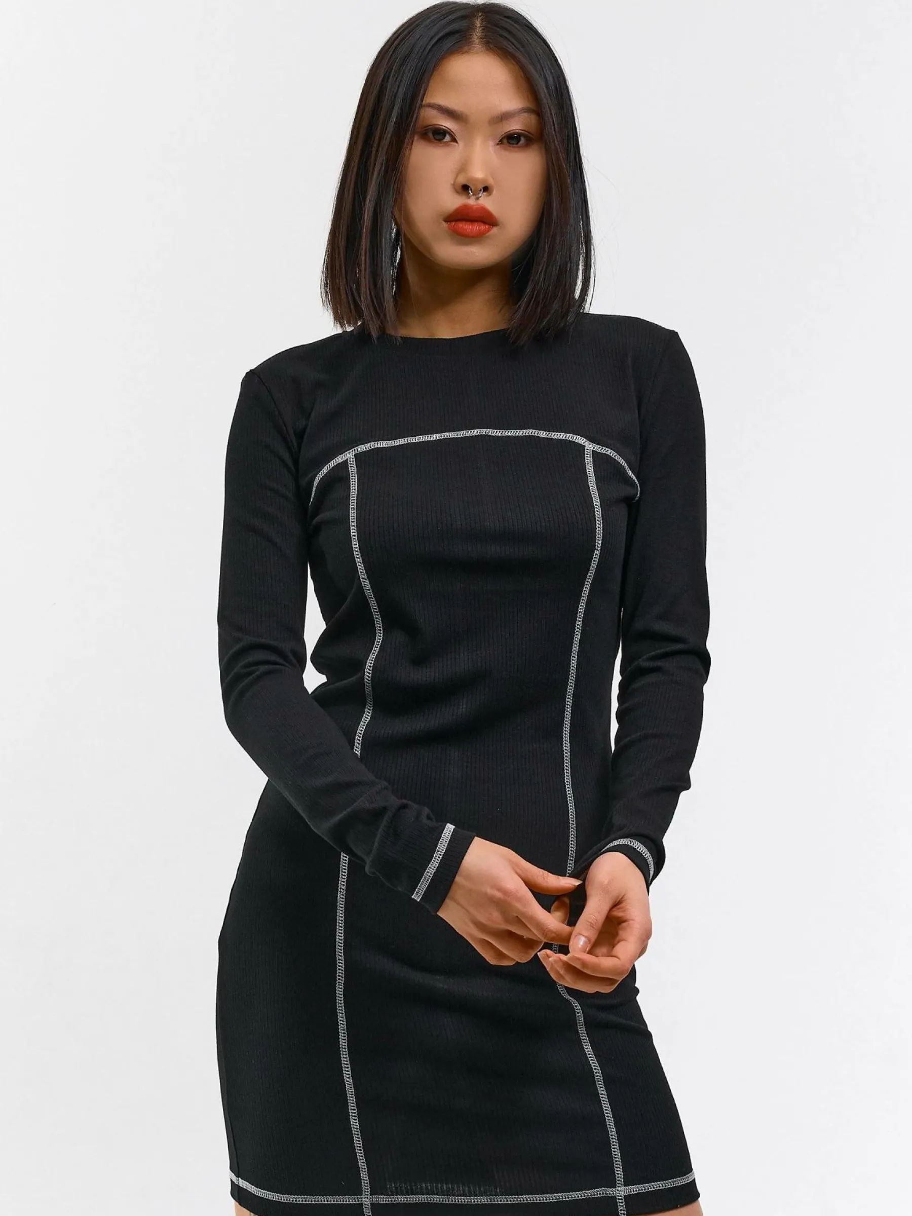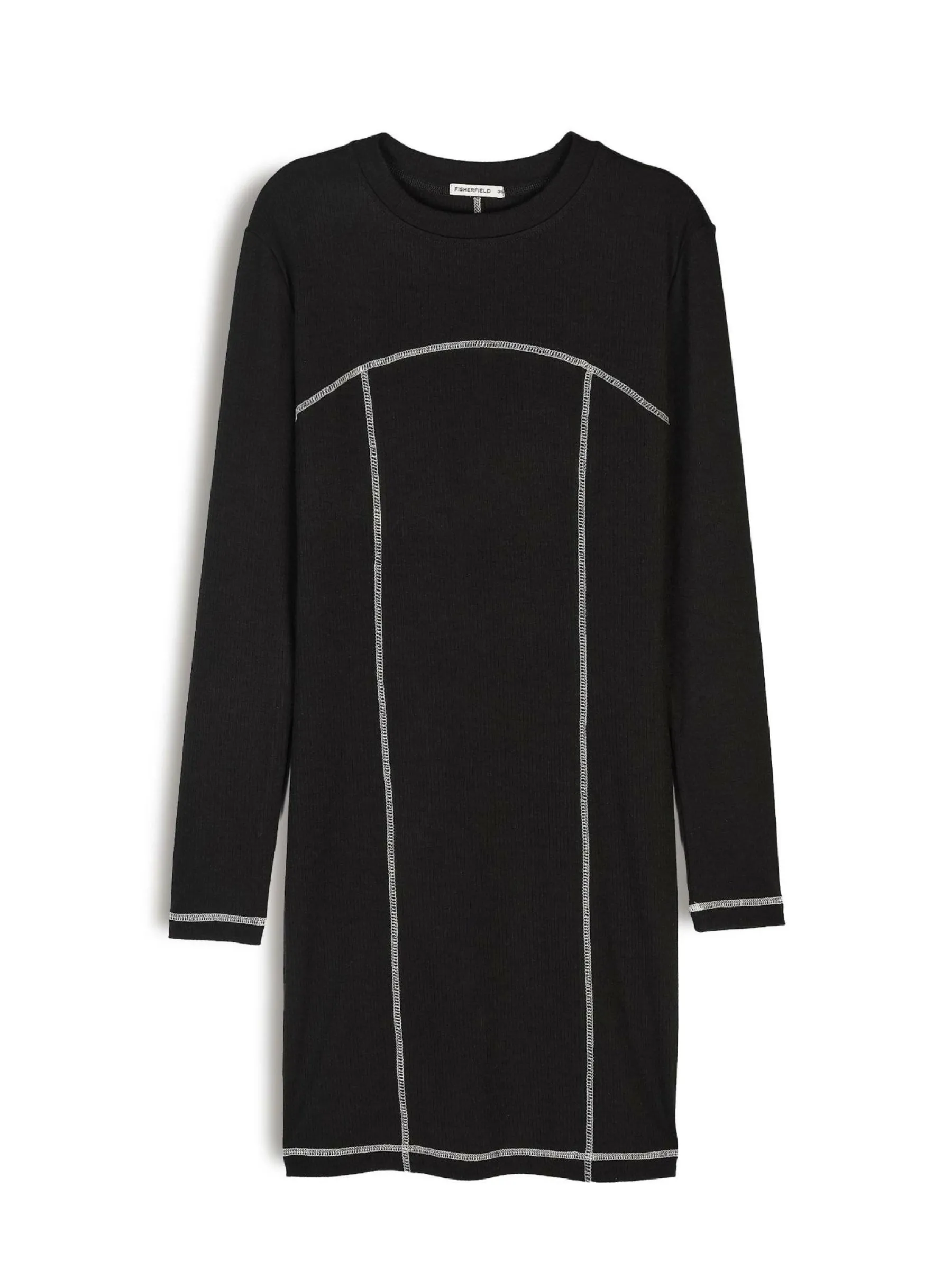 Kolor: czarnyKrój: podstawowyTyp: sukienkaRekaw: długi rękawDługość: miniPattern style: żebrowany, pojedynczy kol…