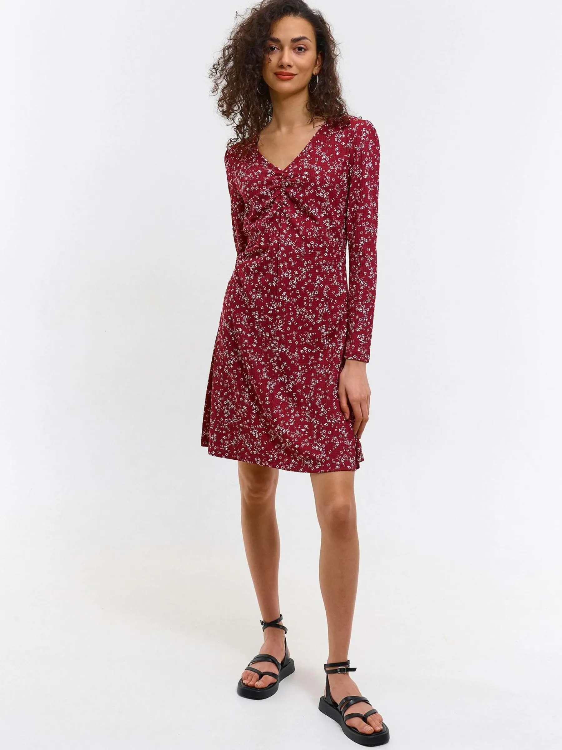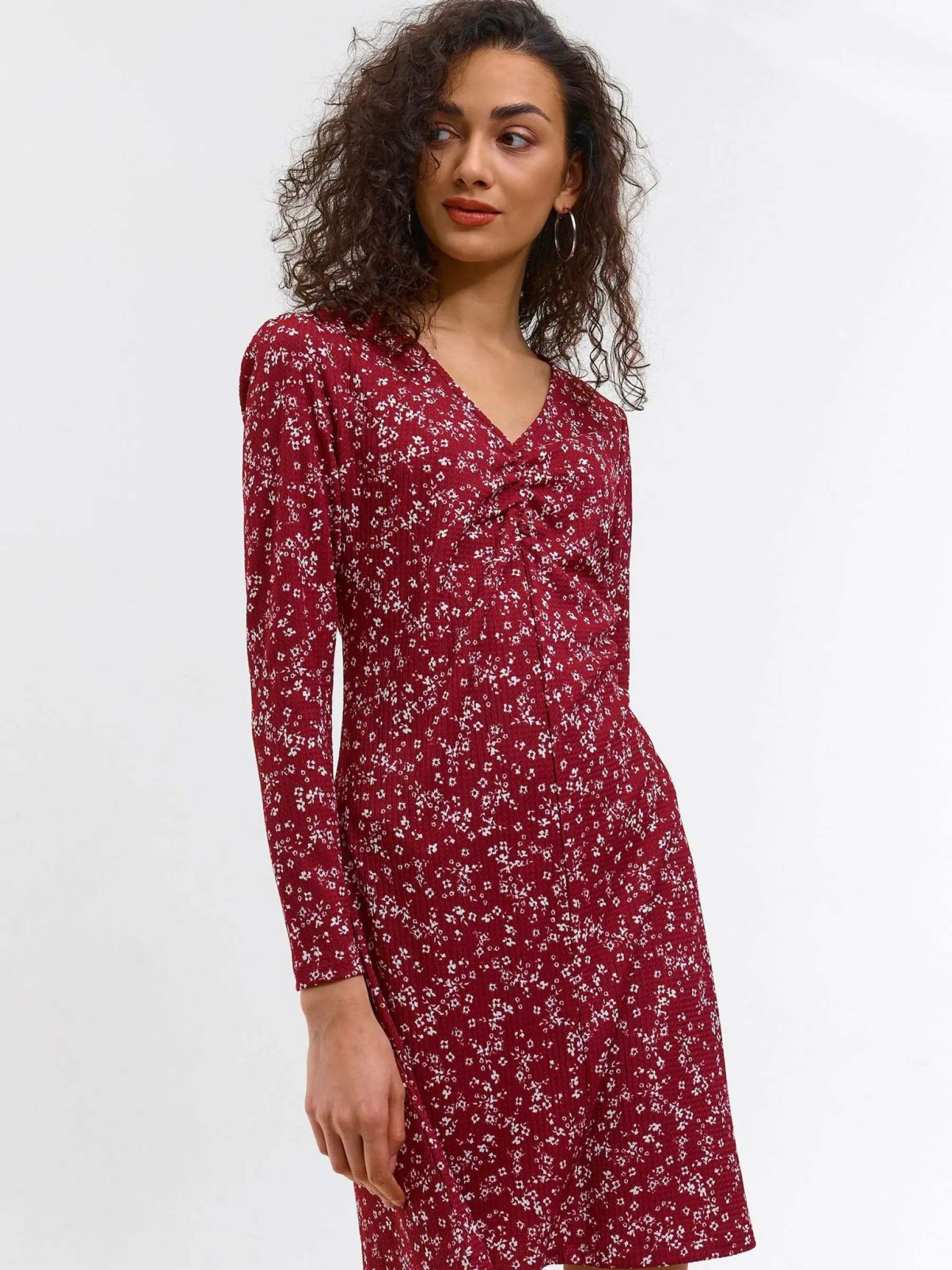 Zdjęcia z modelką mogą nie odpowiadać rzeczywistemu kolorowi produktu.Kolor: burgundyKrój: podstawowyTyp: sukienkaR…