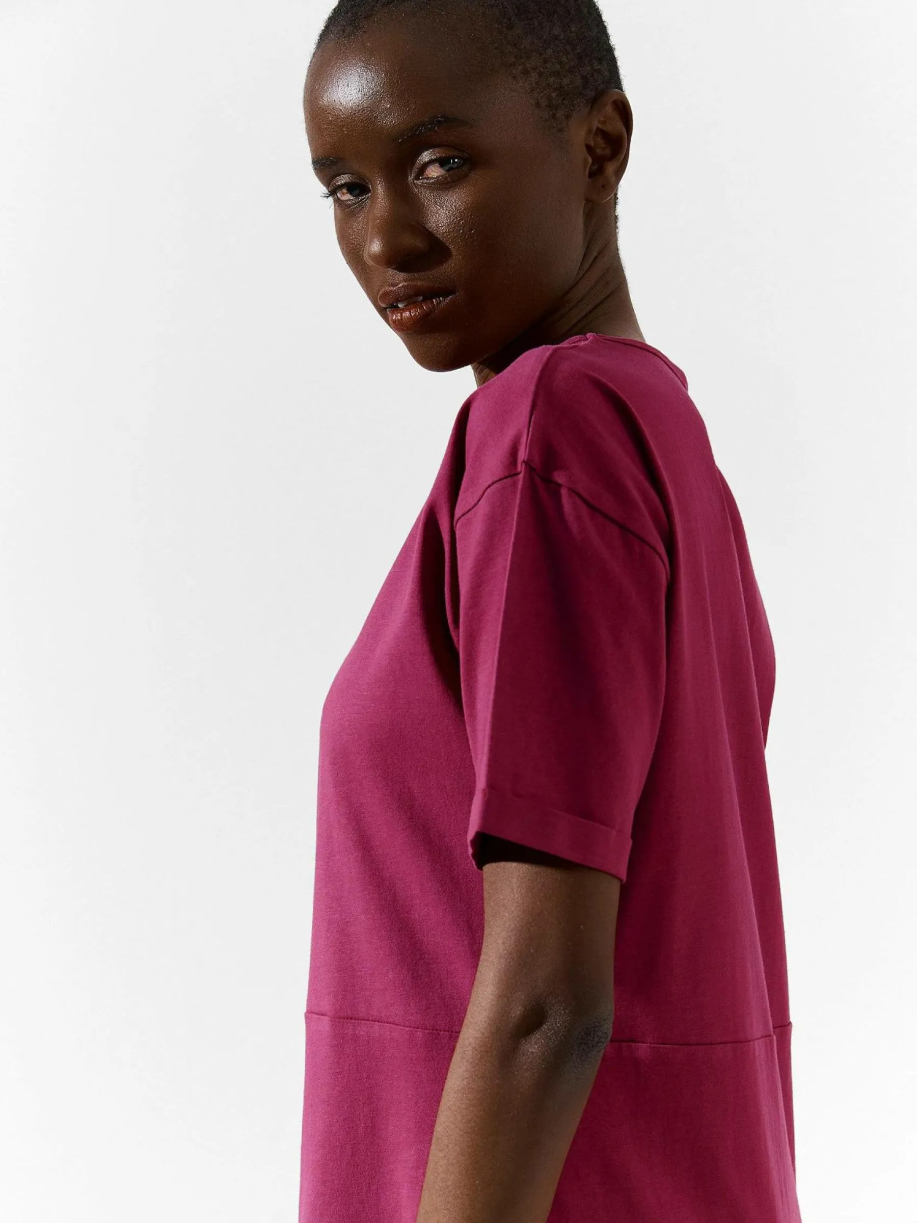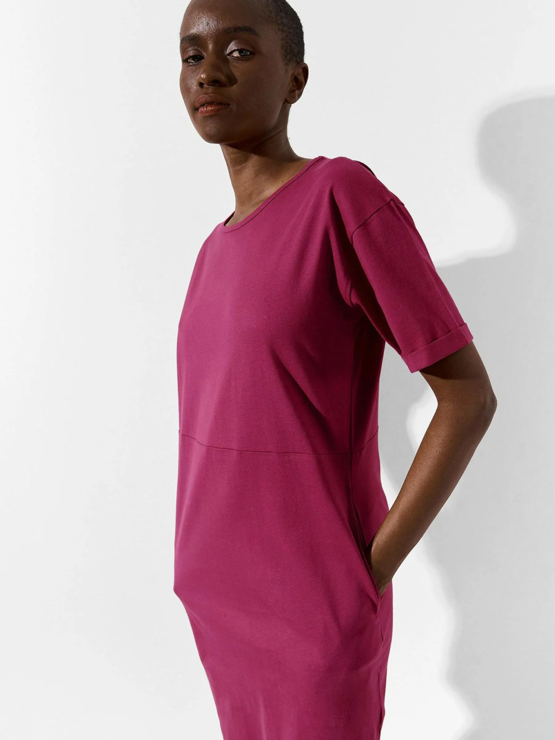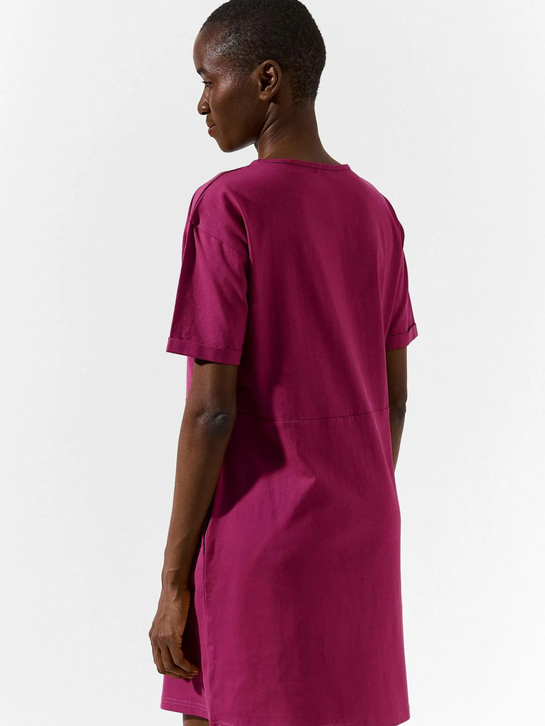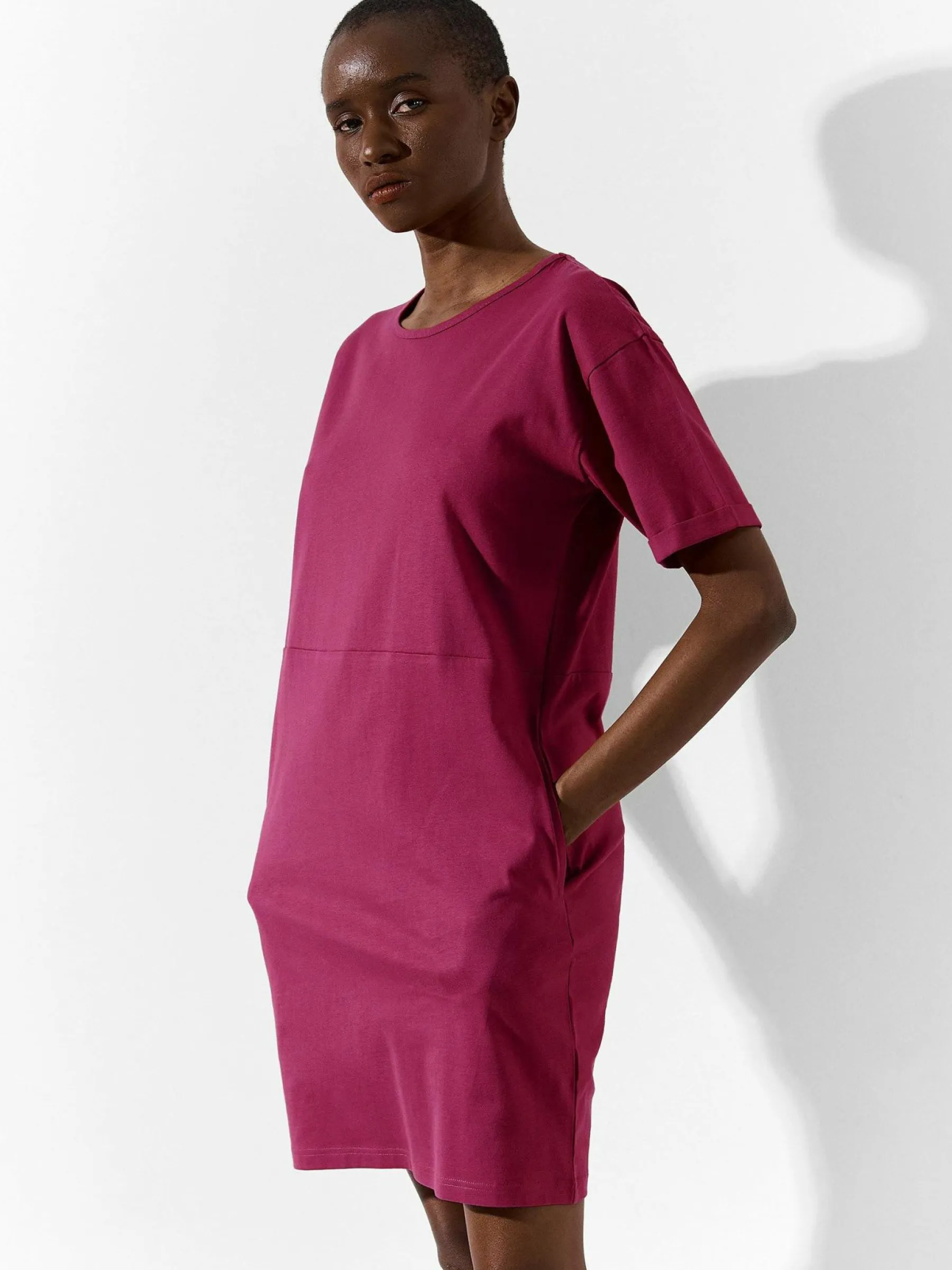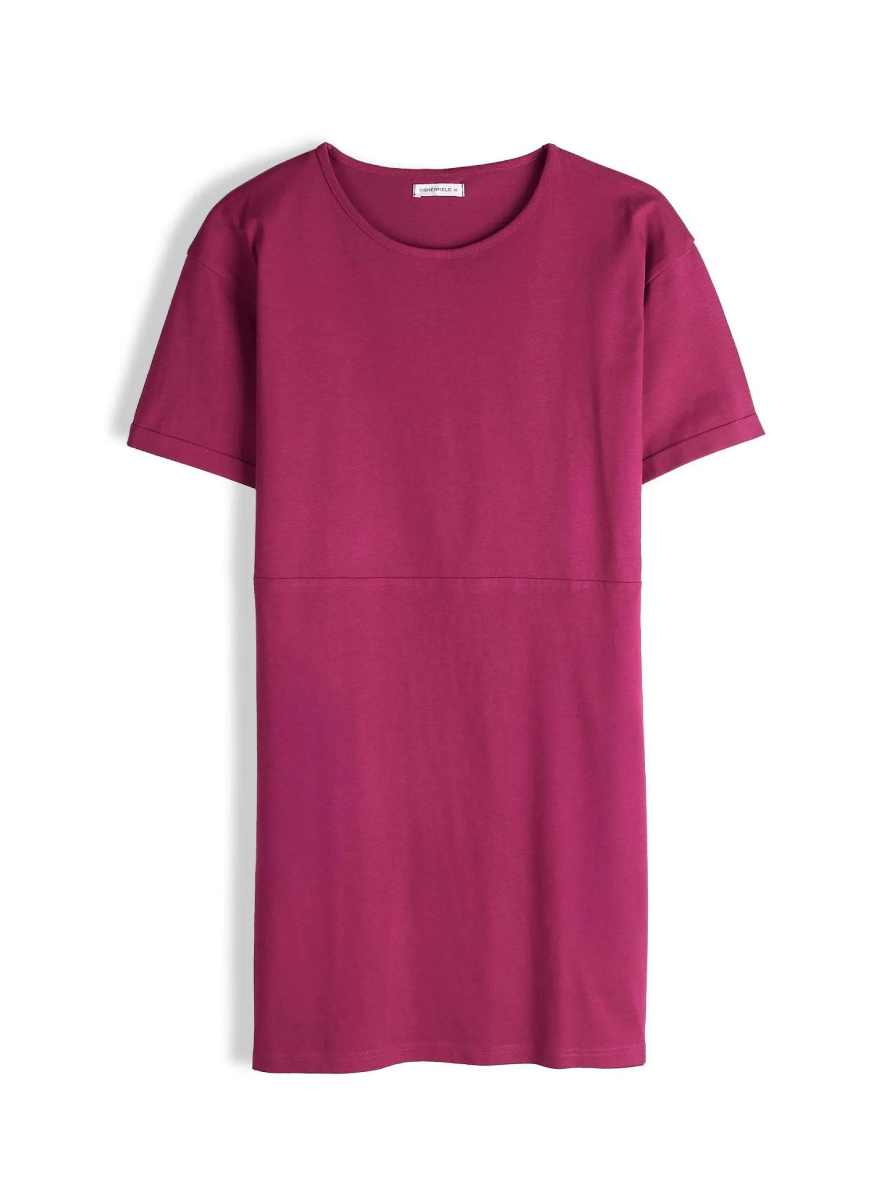 Kolor: różowyKrój: regularTyp: sukienkaRekaw: krótki rękawDługość: miniPattern style: pojedynczy kolorDetal: nad…