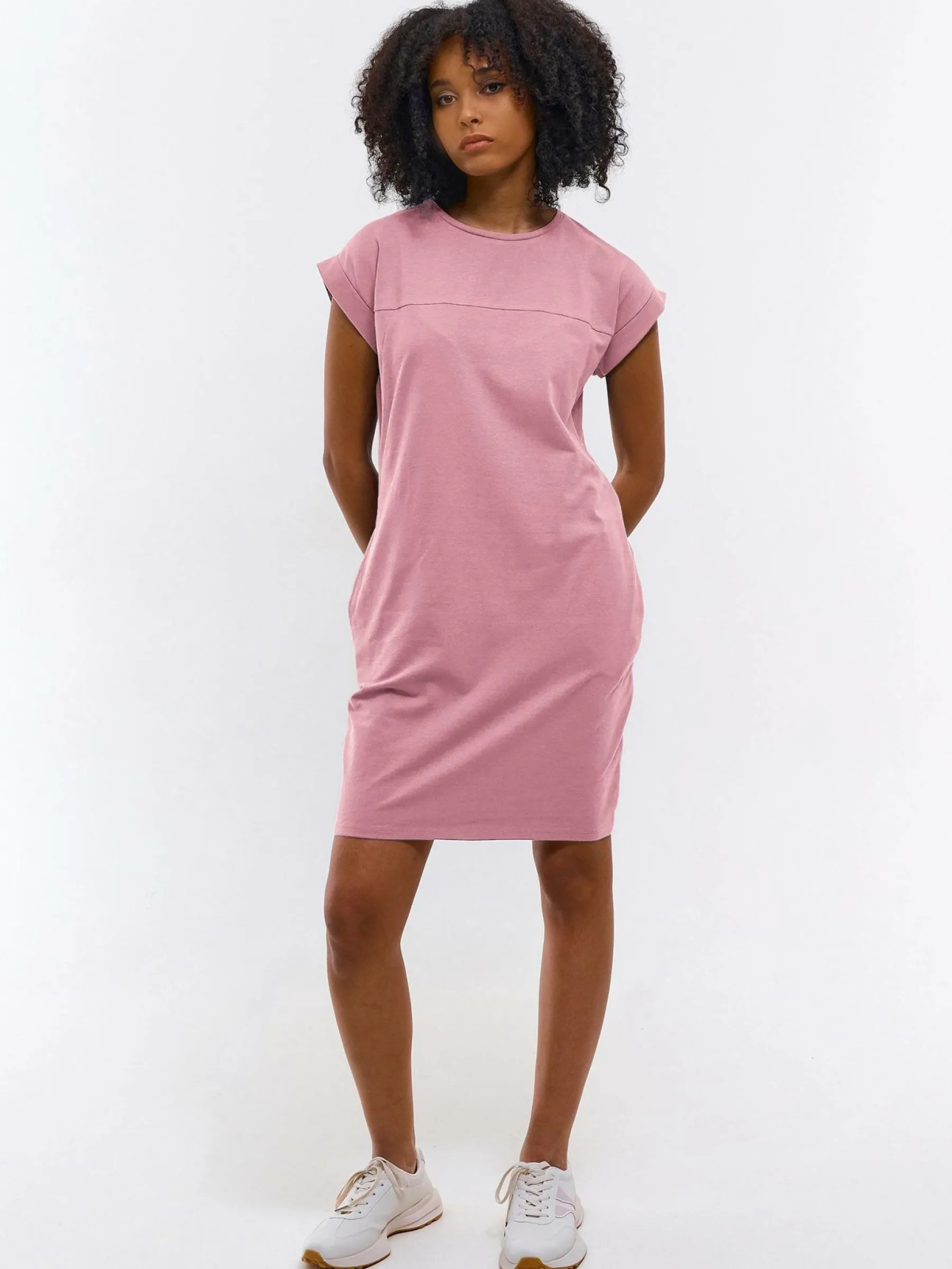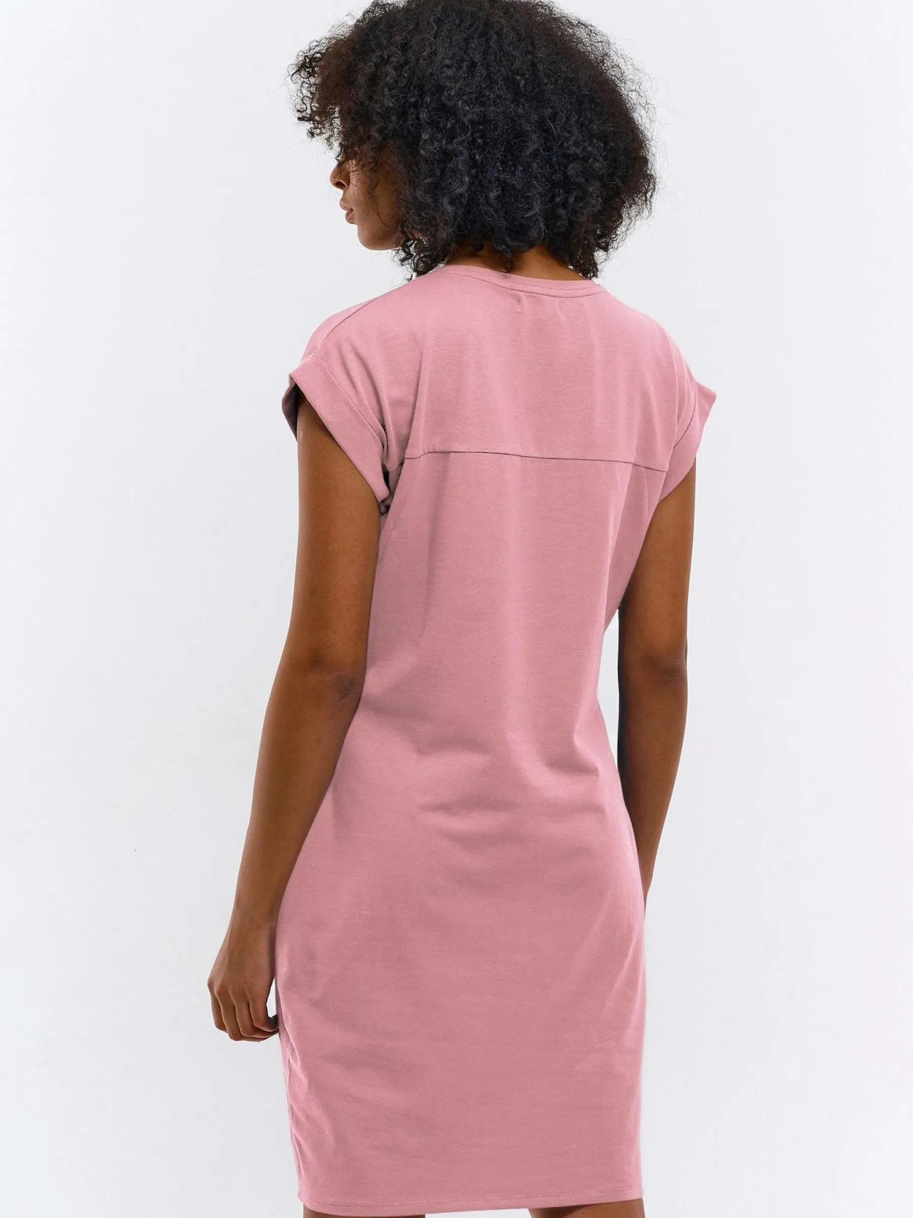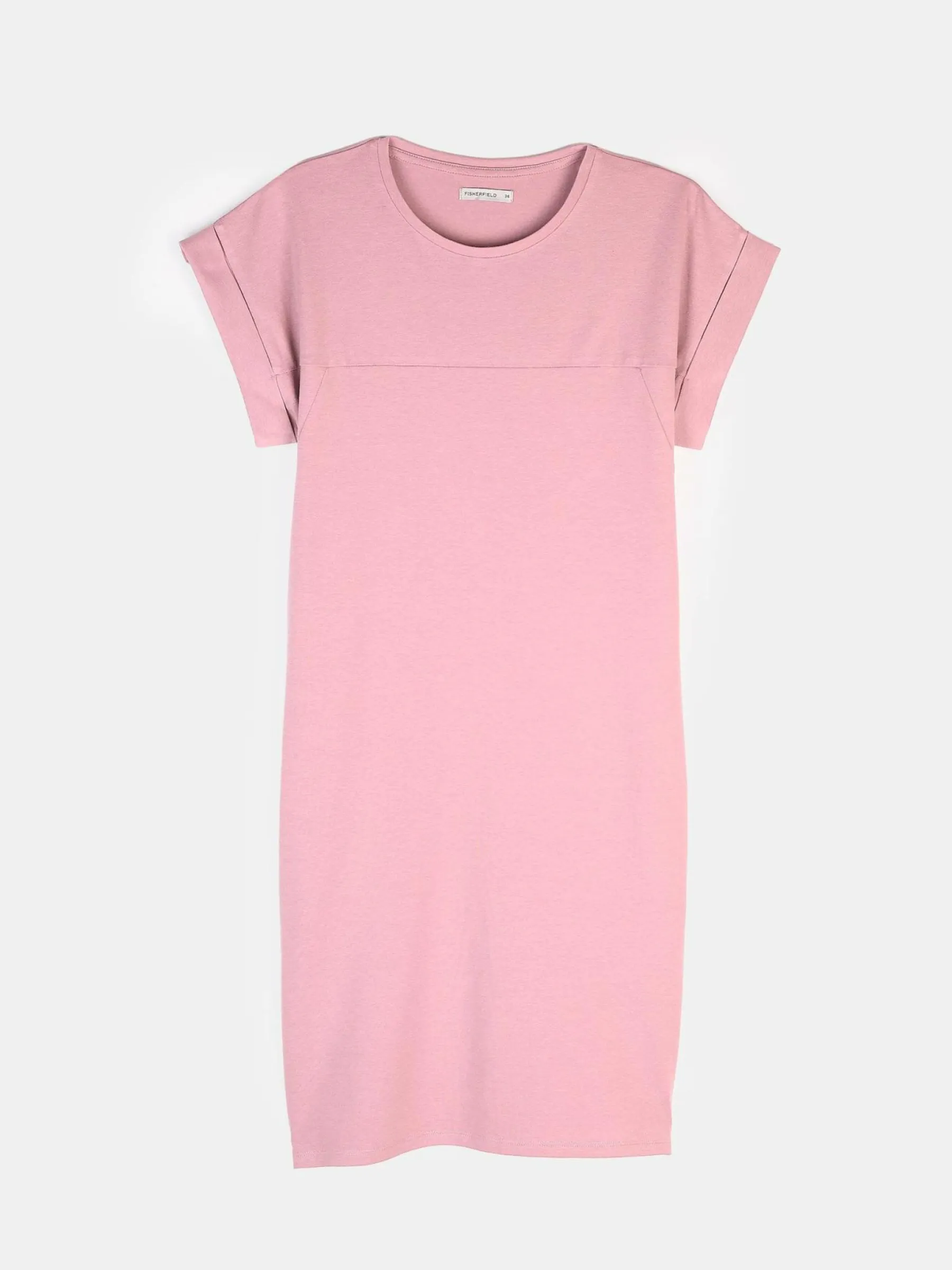 Kolor: różowyKrój: podstawowyTyp: sukienkaRekaw: krótki rękawDługość: miniPattern style: pojedynczy kolorDetal: …