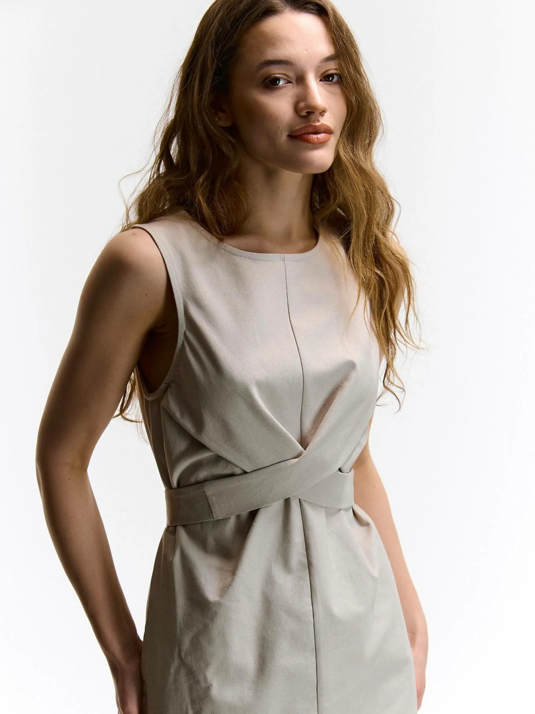 Kolor: beżowyTyp: sukienkaRekaw: bez rękawówDługość: midiPattern style: pojedynczy kolorDetal: z falbankamiMateria…