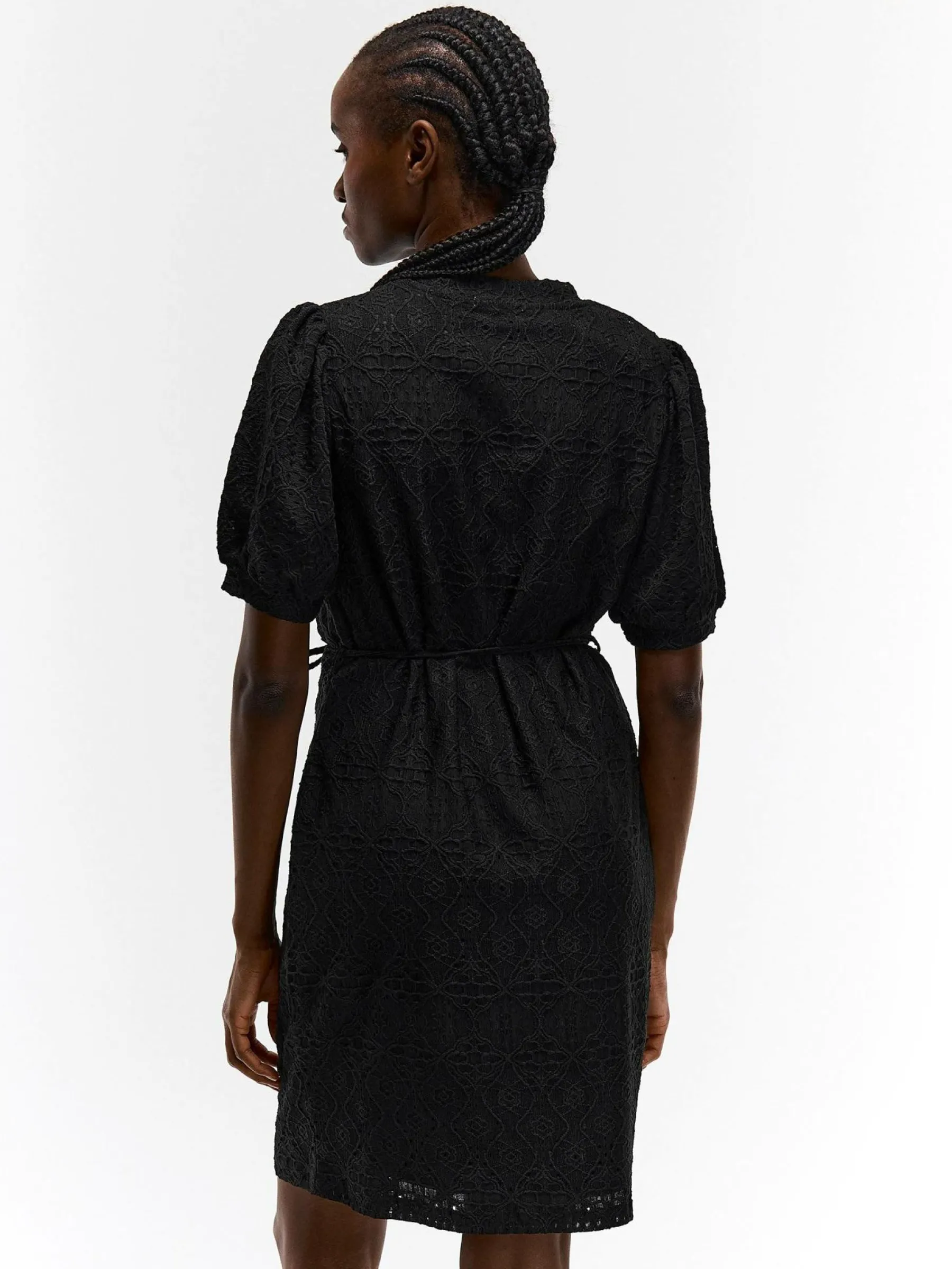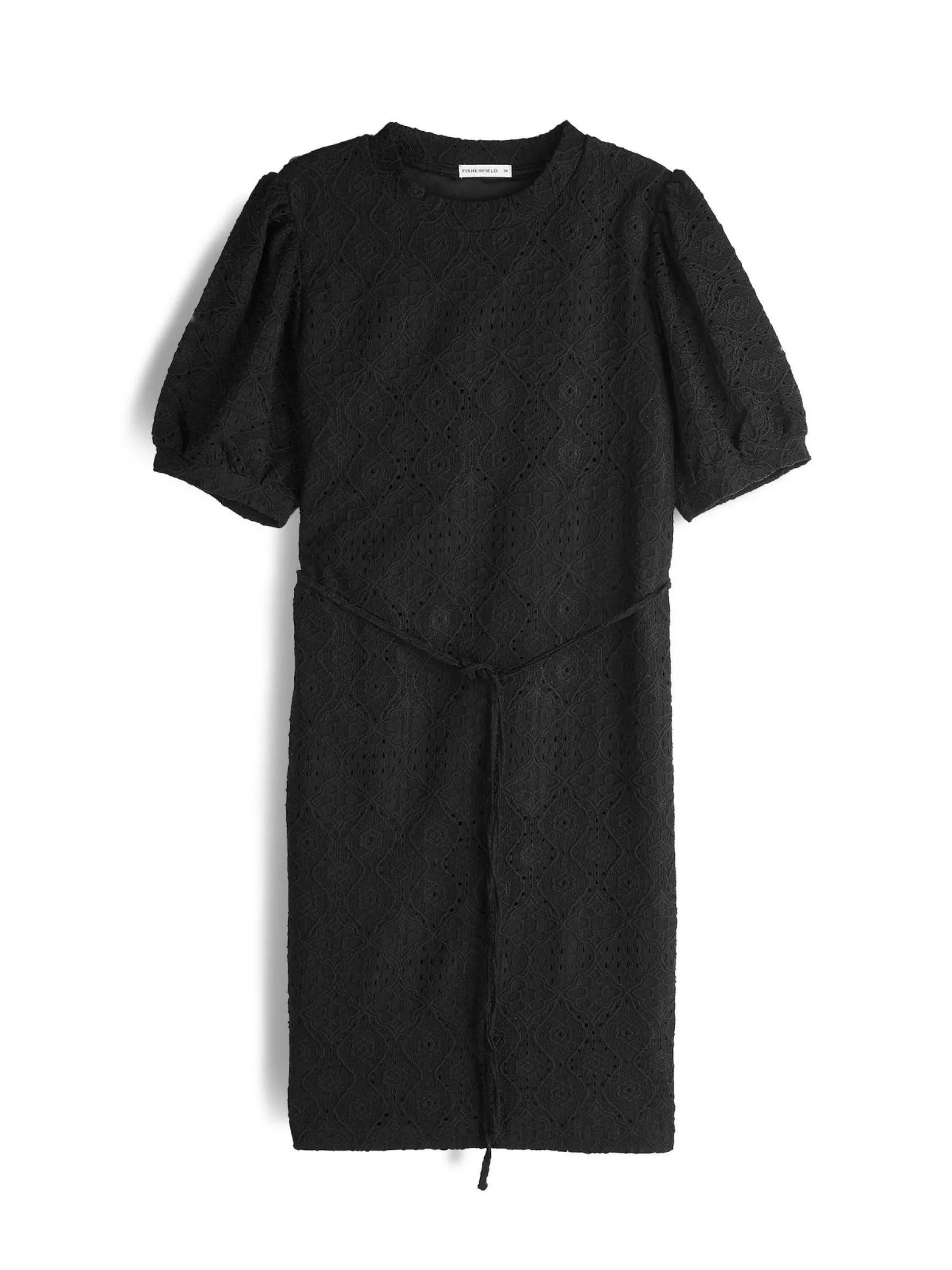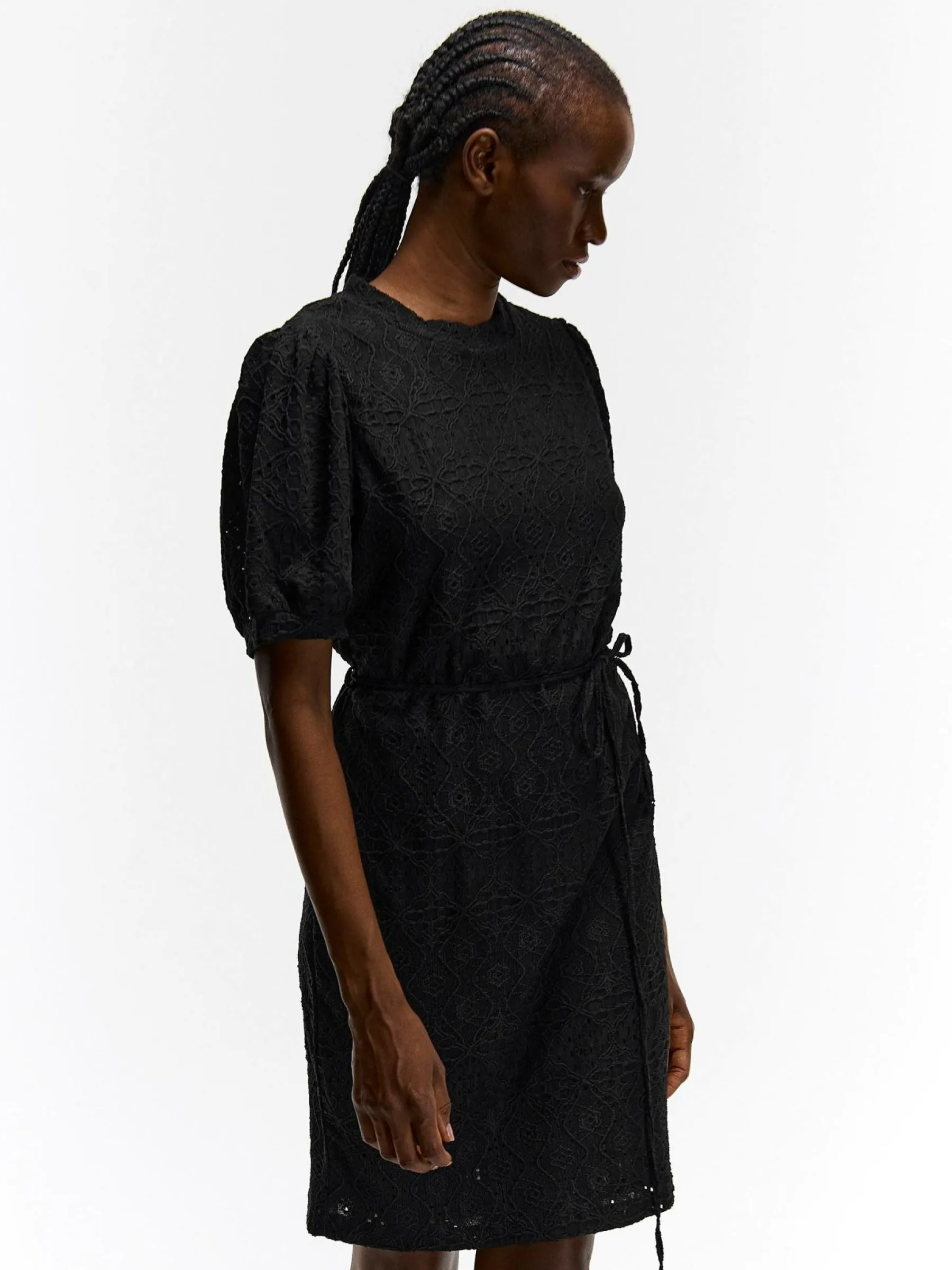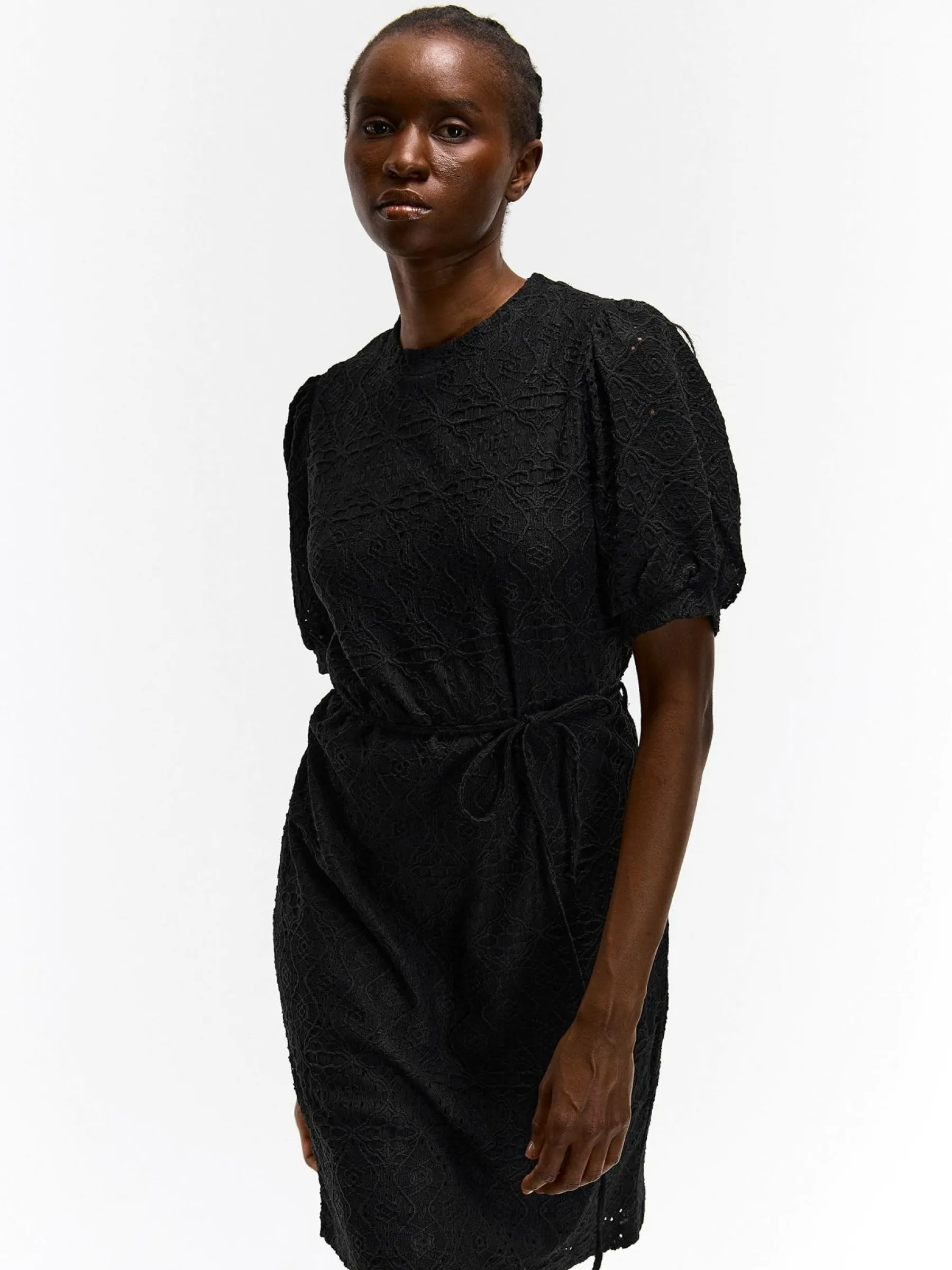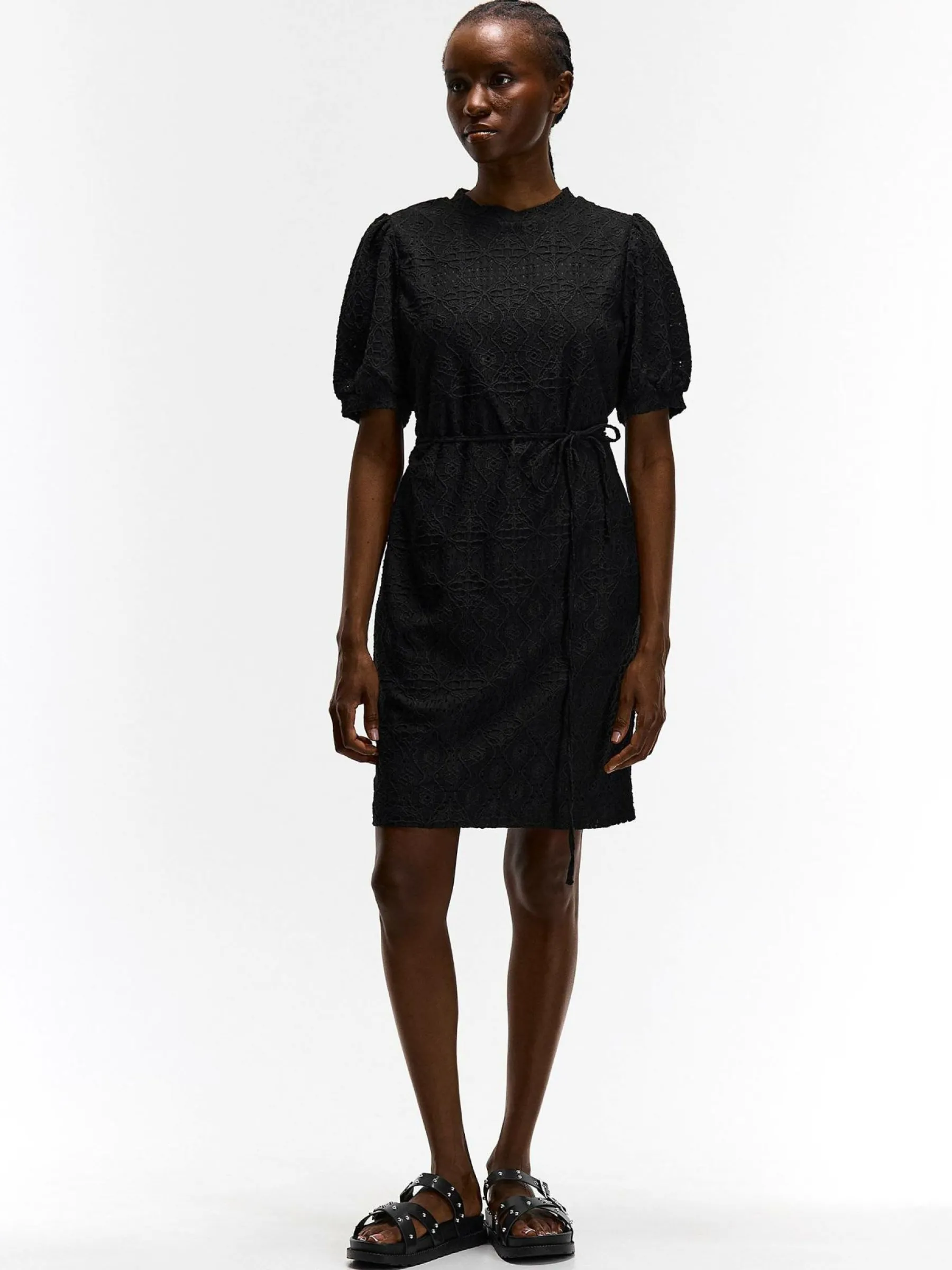 Kolor: czarnyKrój: regularTyp: sukienkaRekaw: krótki rękawDługość: miniPattern style: pojedynczy kolor, strukturow…