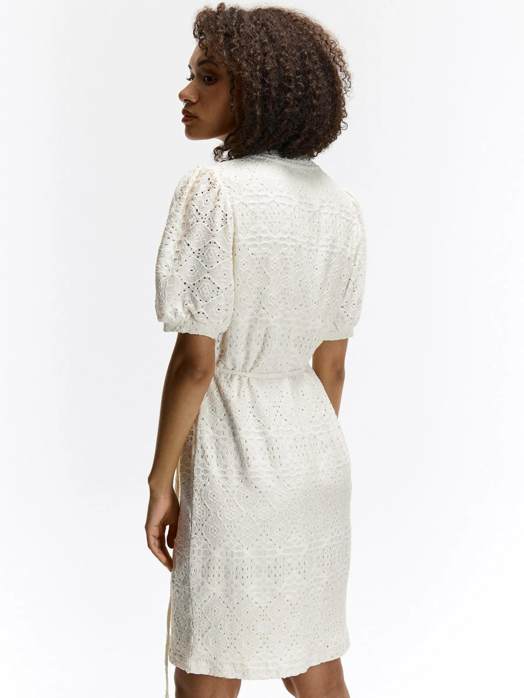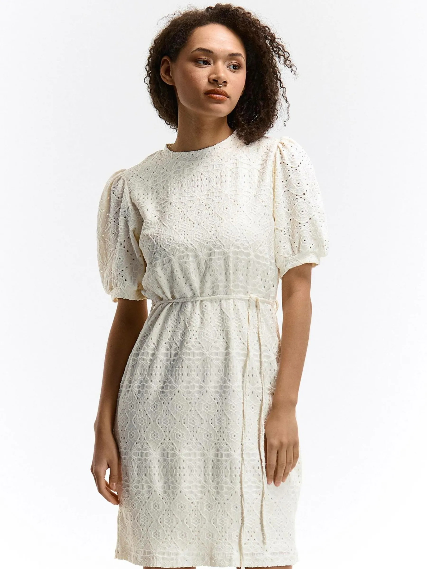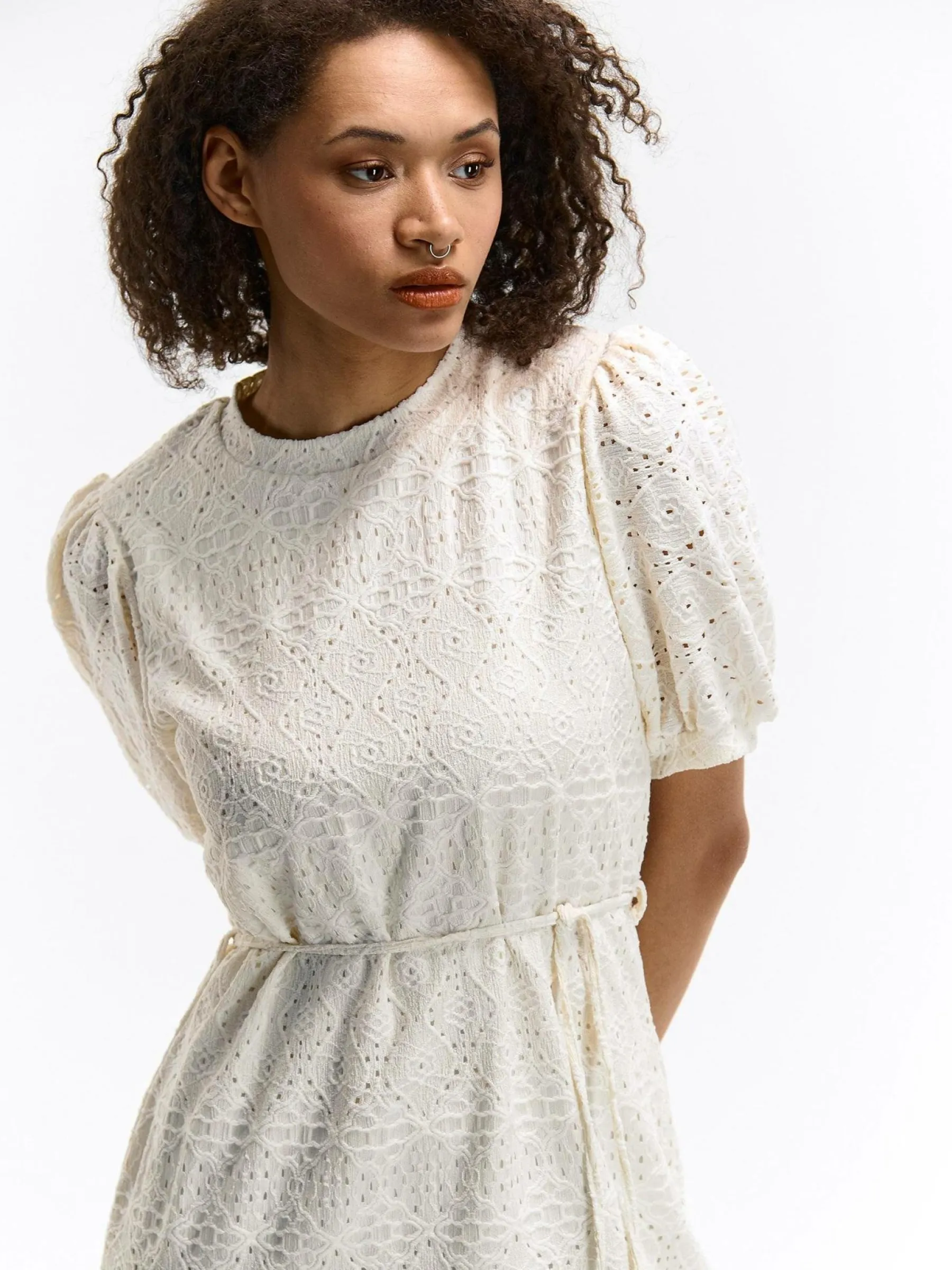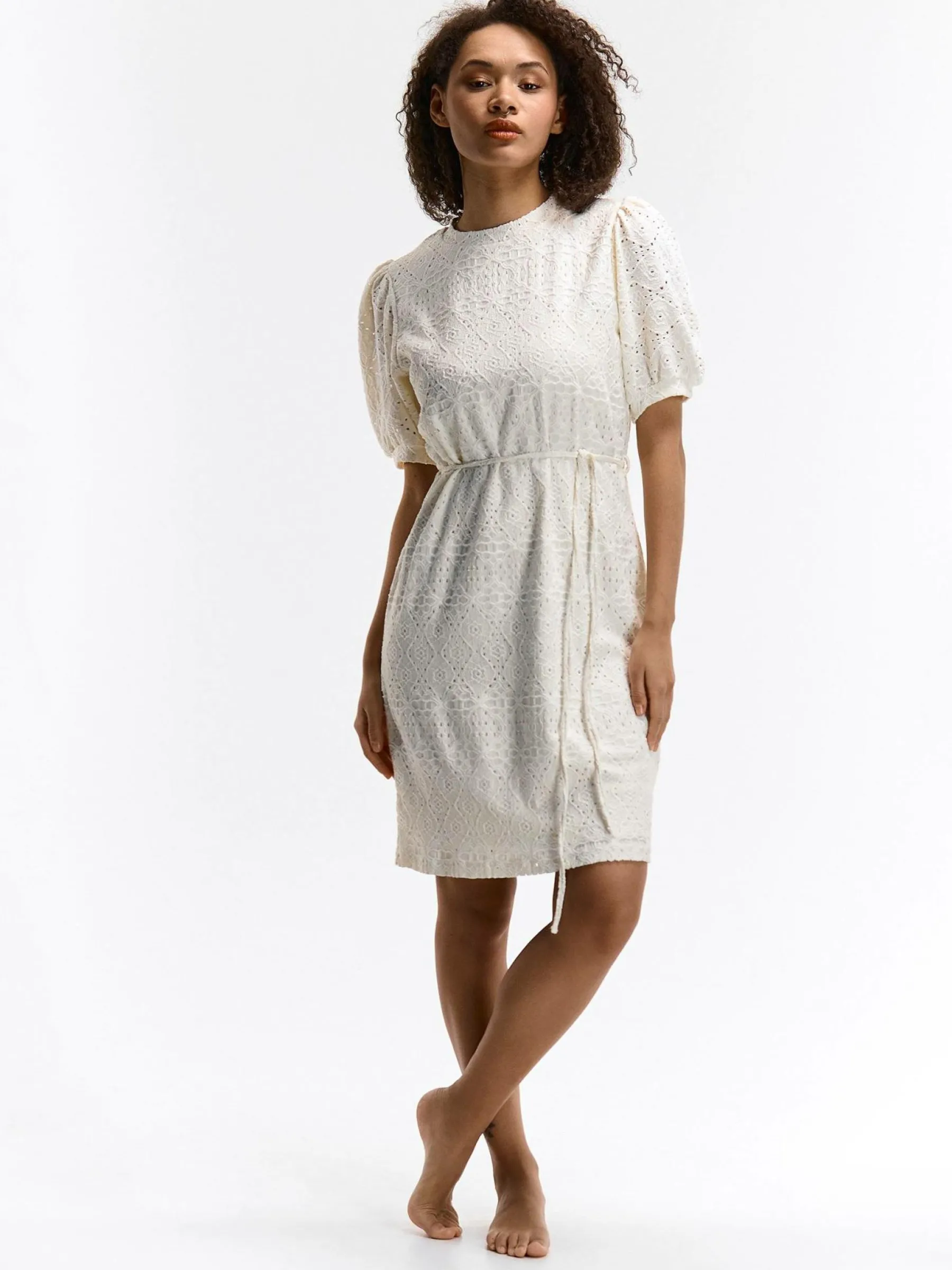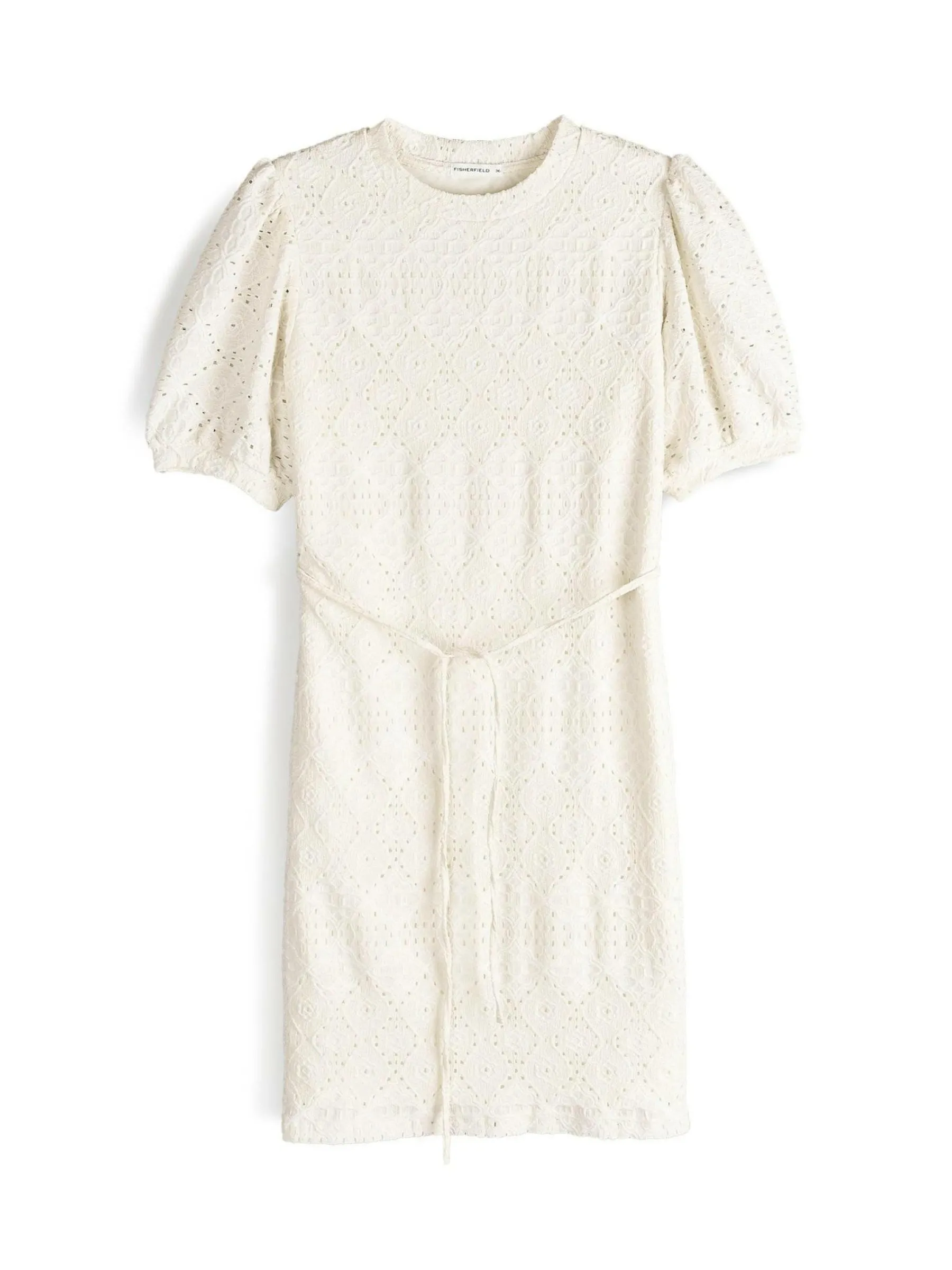 Kolor: beżowyKrój: regularTyp: sukienkaRekaw: krótki rękawDługość: miniPattern style: pojedynczy kolor, strukturo…
