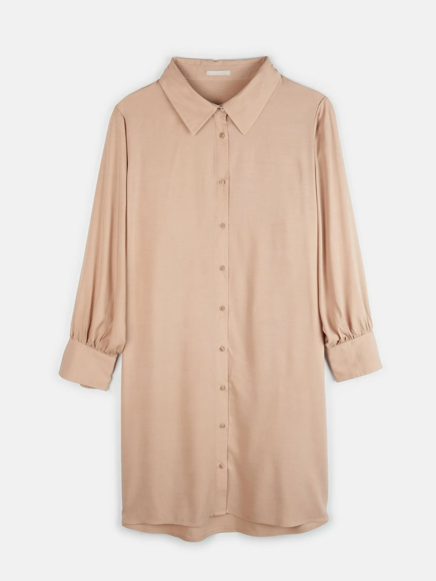 Kolor: beżowy, brązowyBody fit: plus sizeKrój: koszuloweTyp: sukienkaRekaw: długi rękawDługość: miniPattern styl…