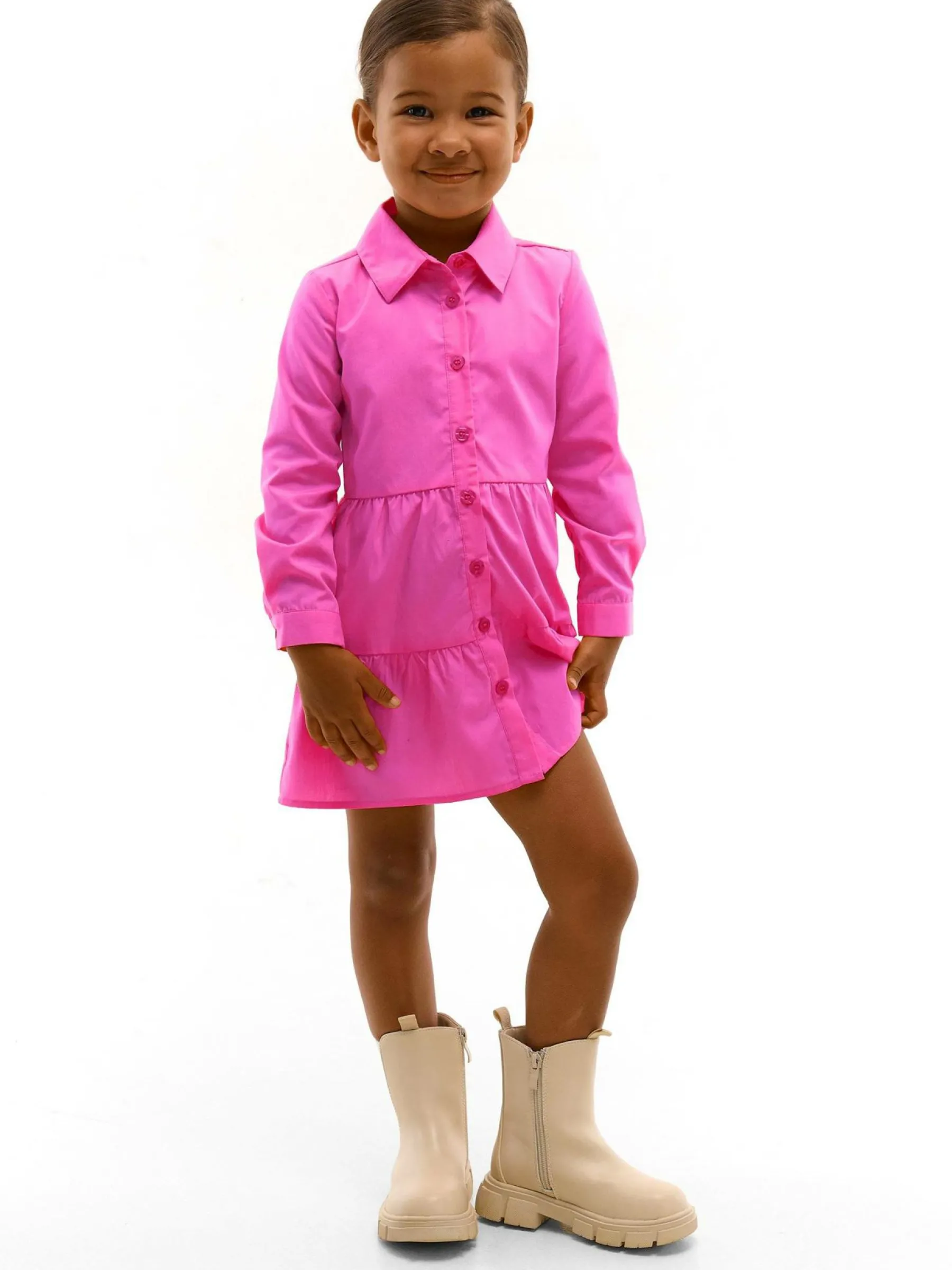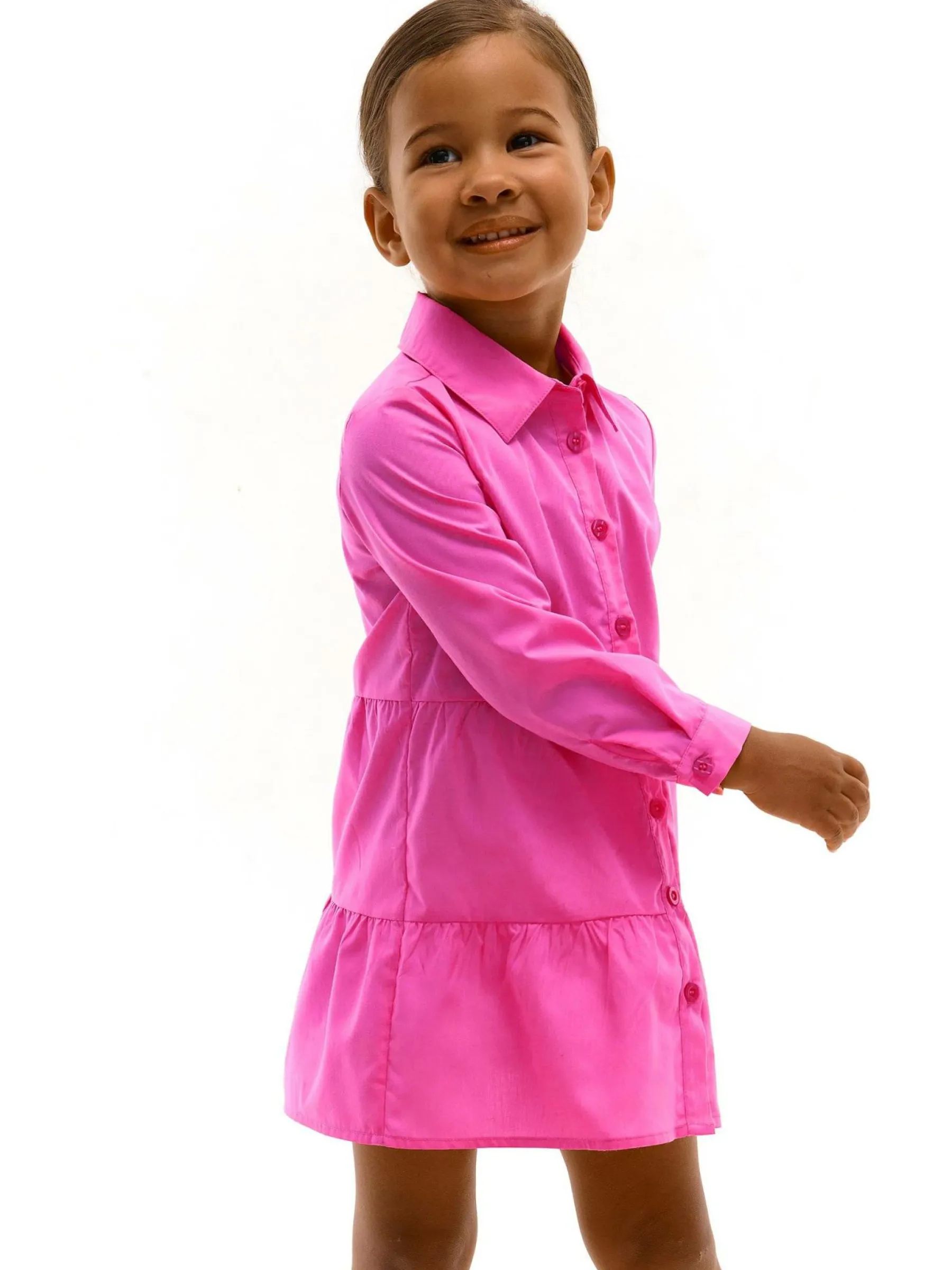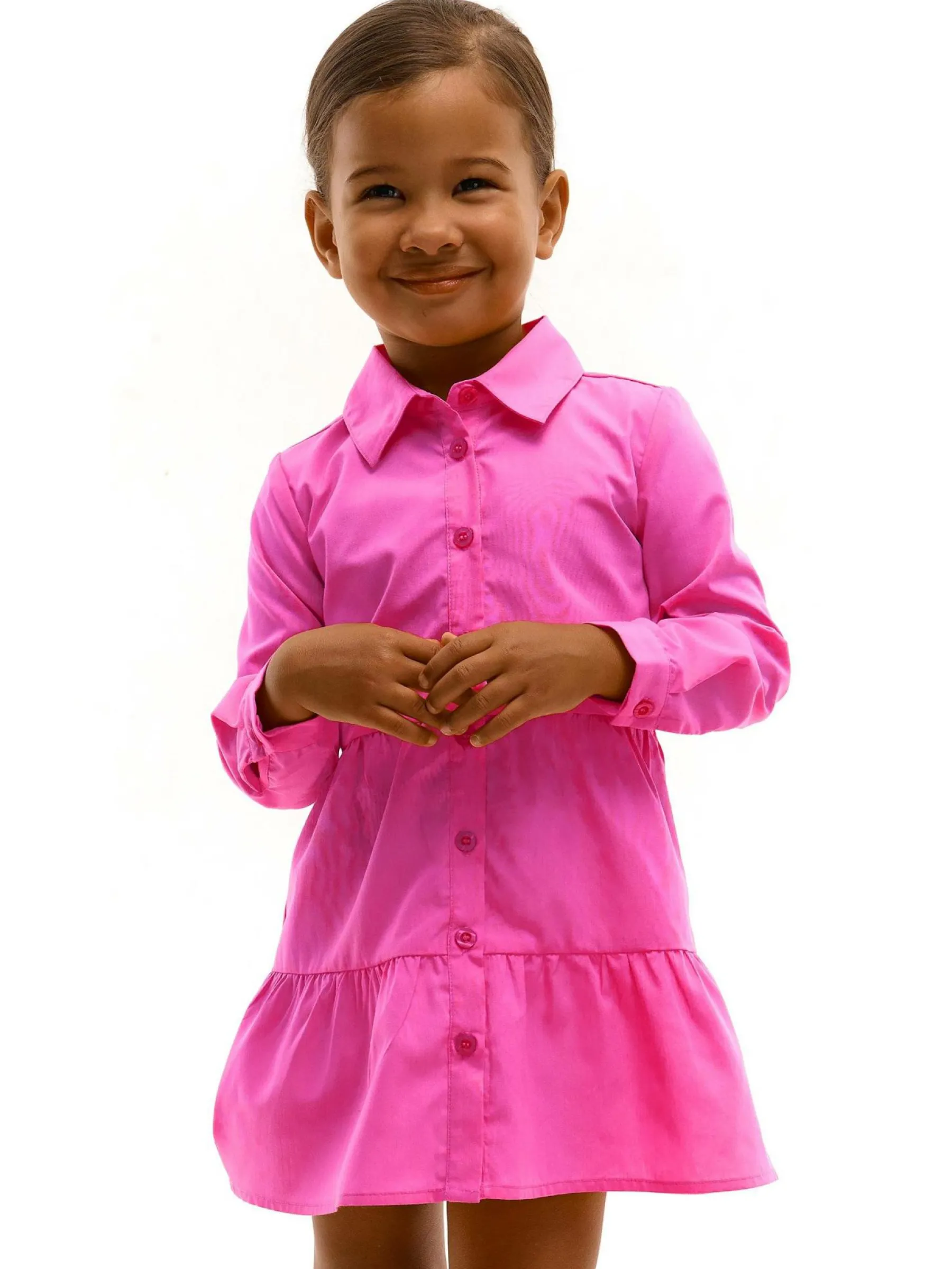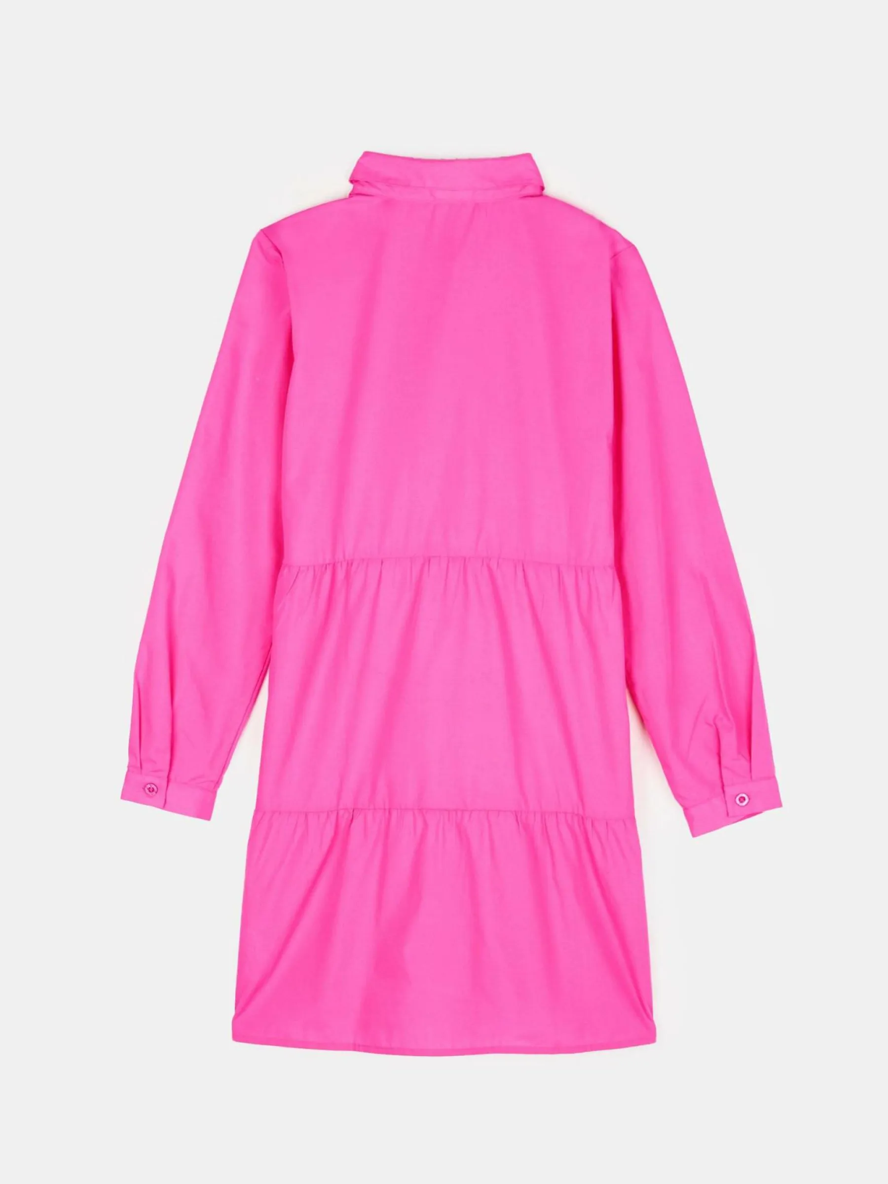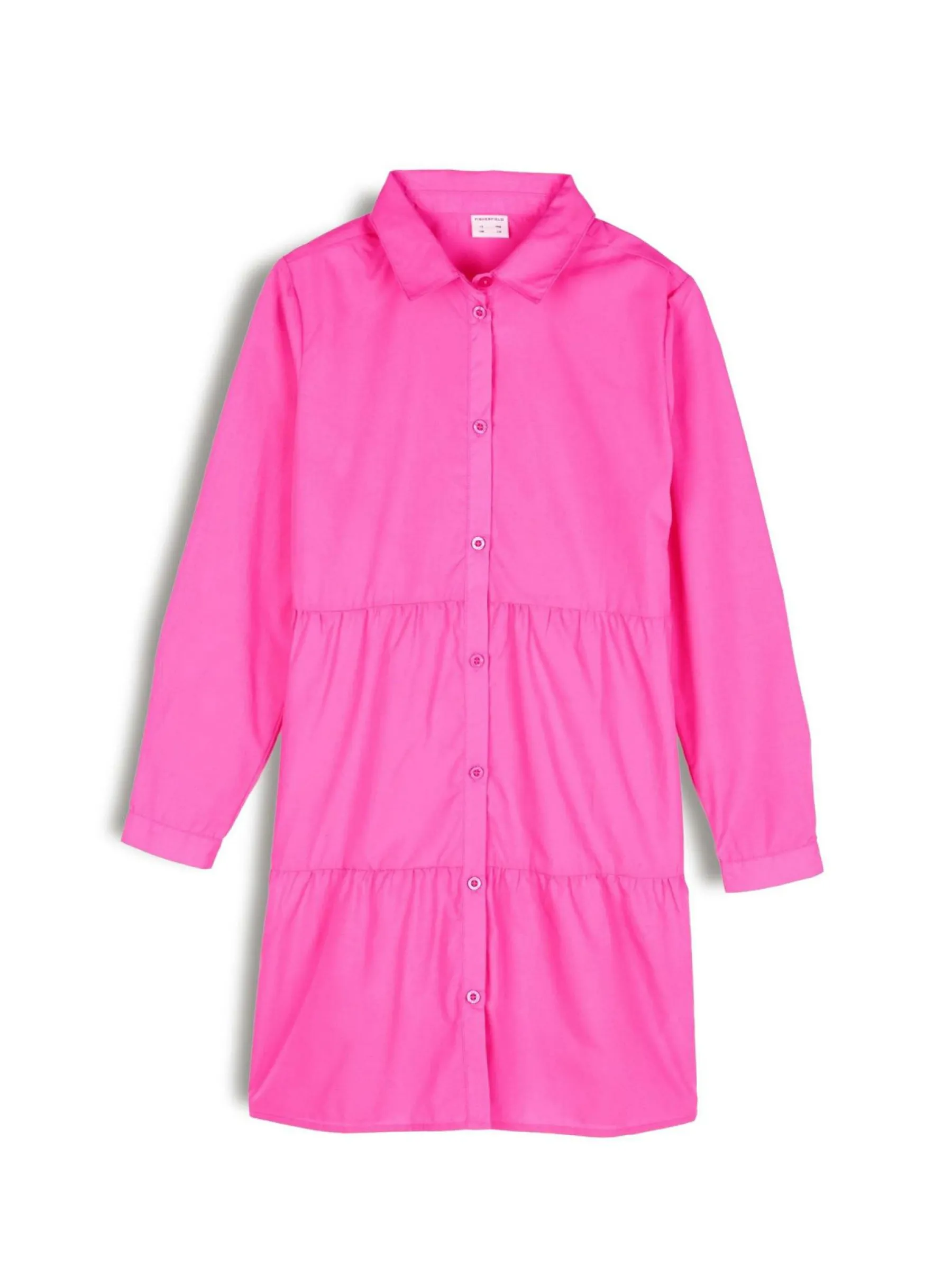 Kolor: różowyKrój: koszuloweTyp: sukienkaRekaw: długi rękawDługość: miniPattern style: pojedynczy kolorDetal: na…