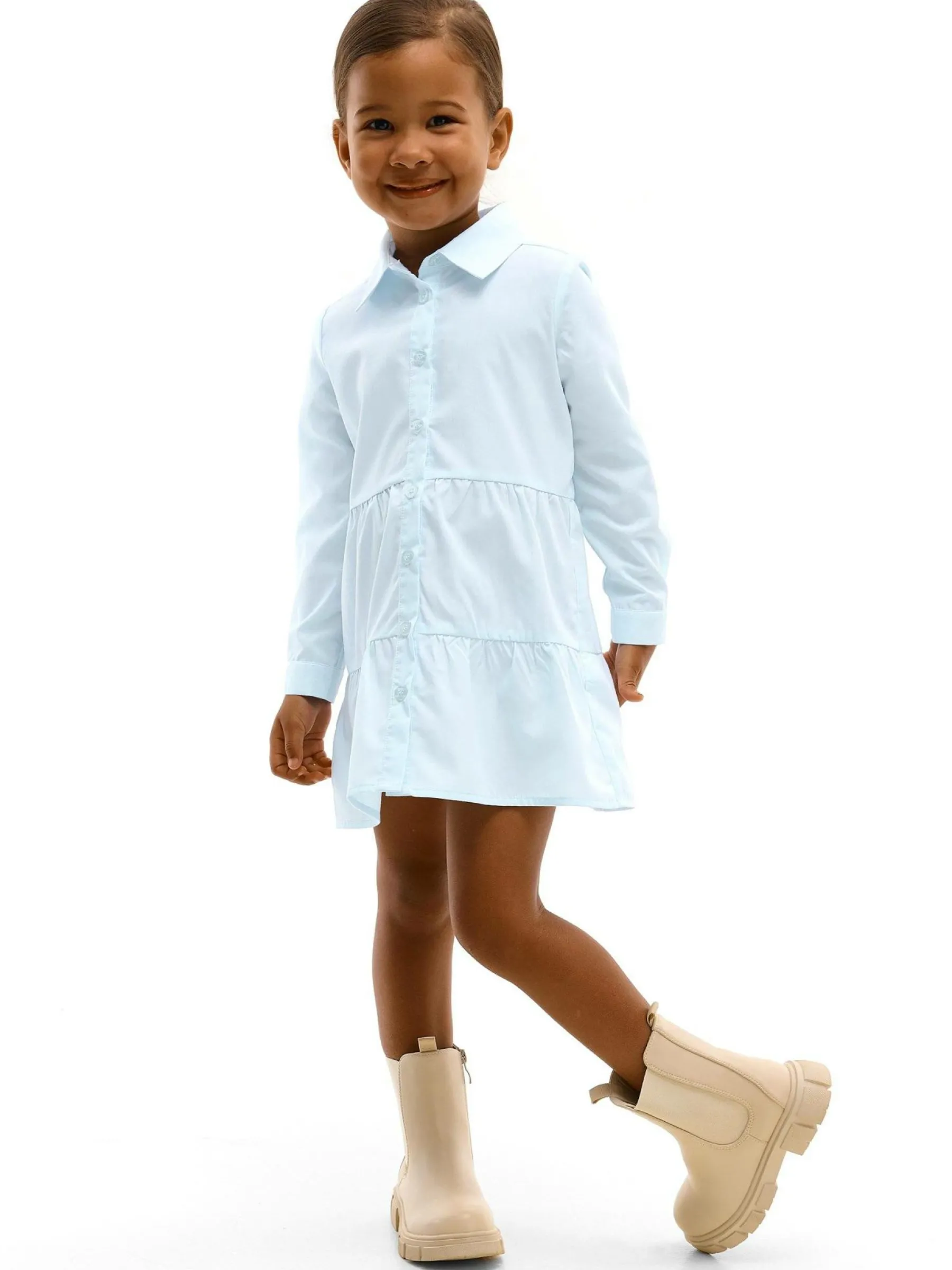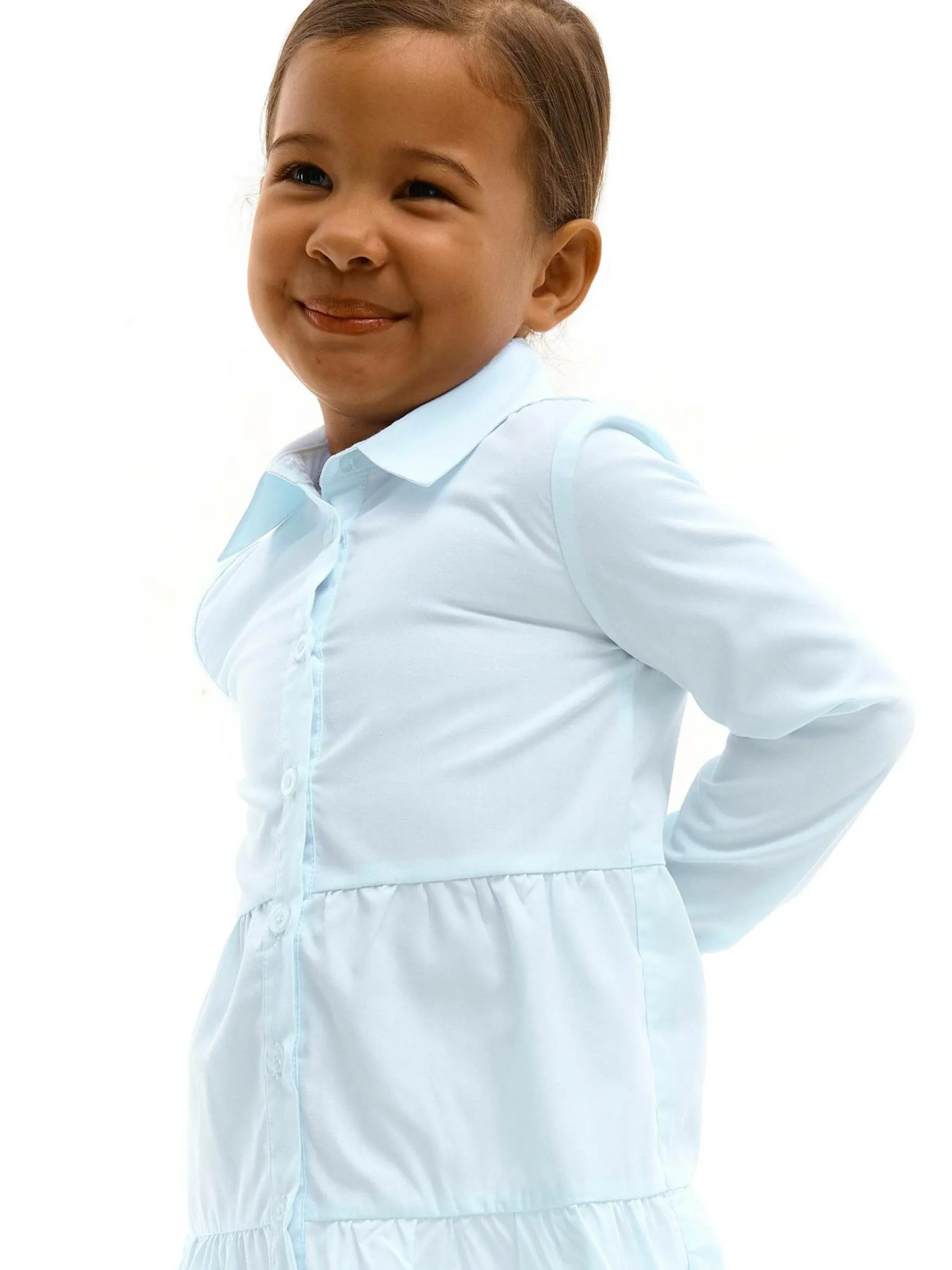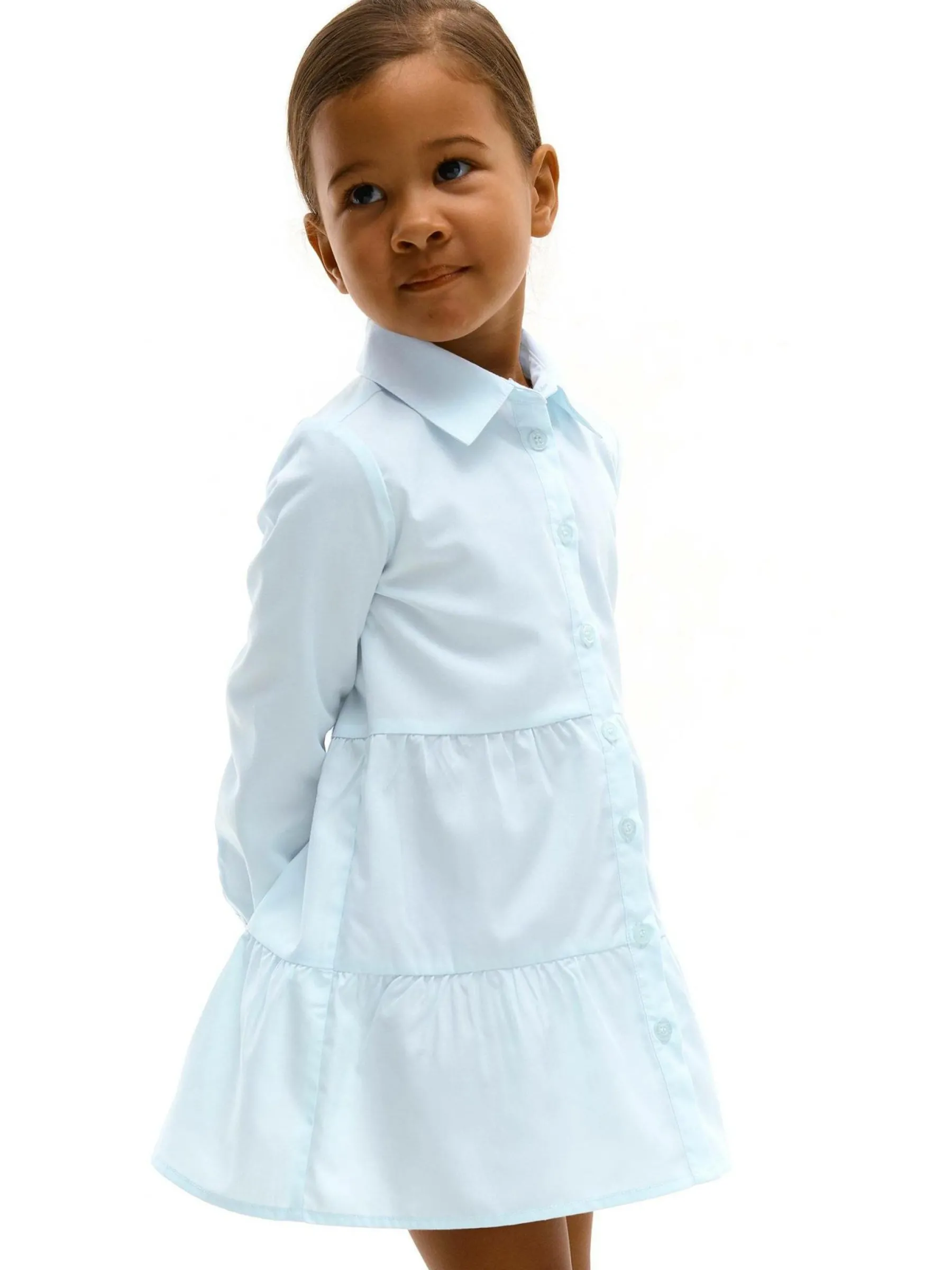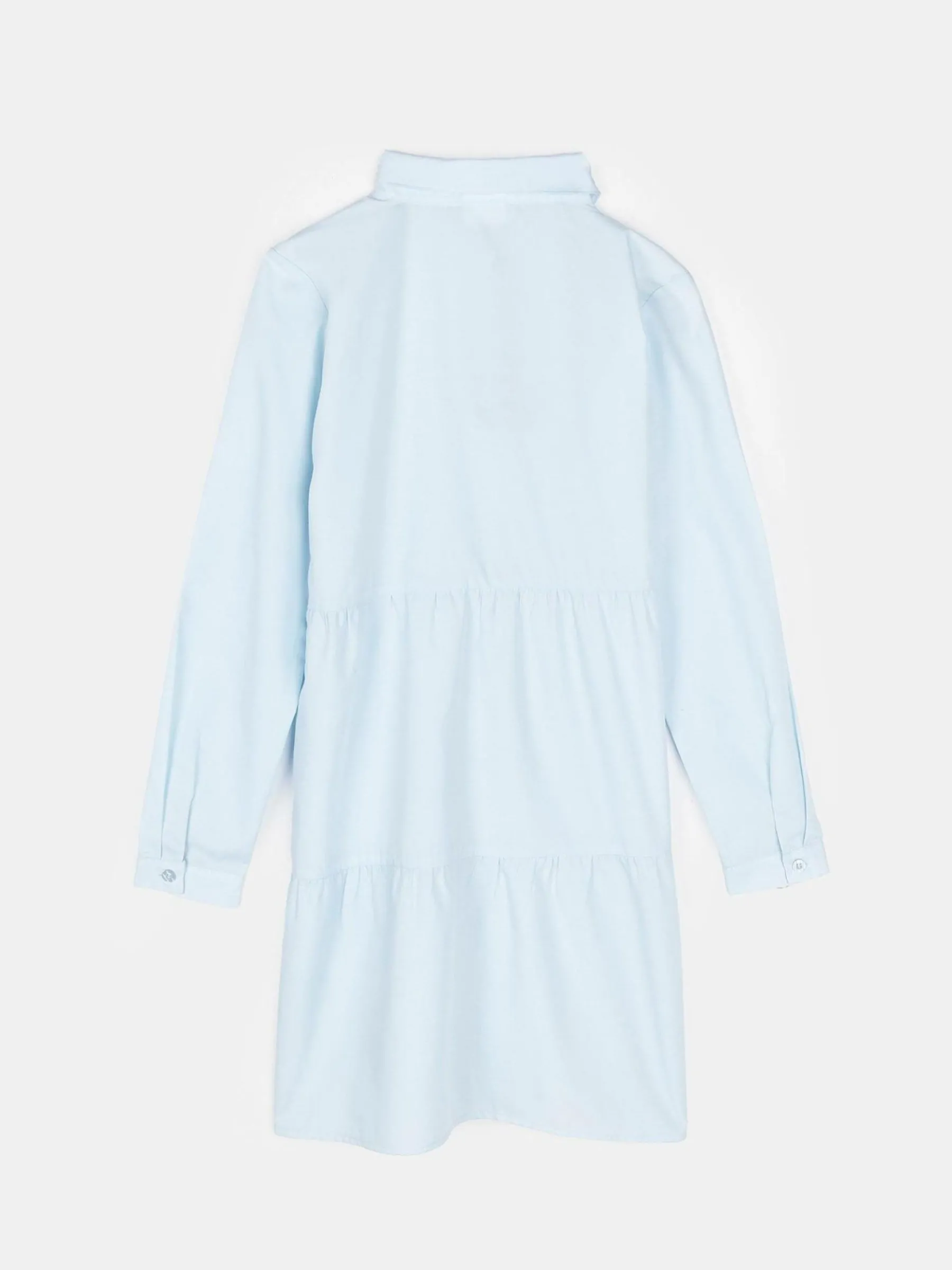 Kolor: niebieskiKrój: koszuloweTyp: sukienkaRekaw: długi rękawDługość: miniPattern style: pojedynczy kolorDetal: n…