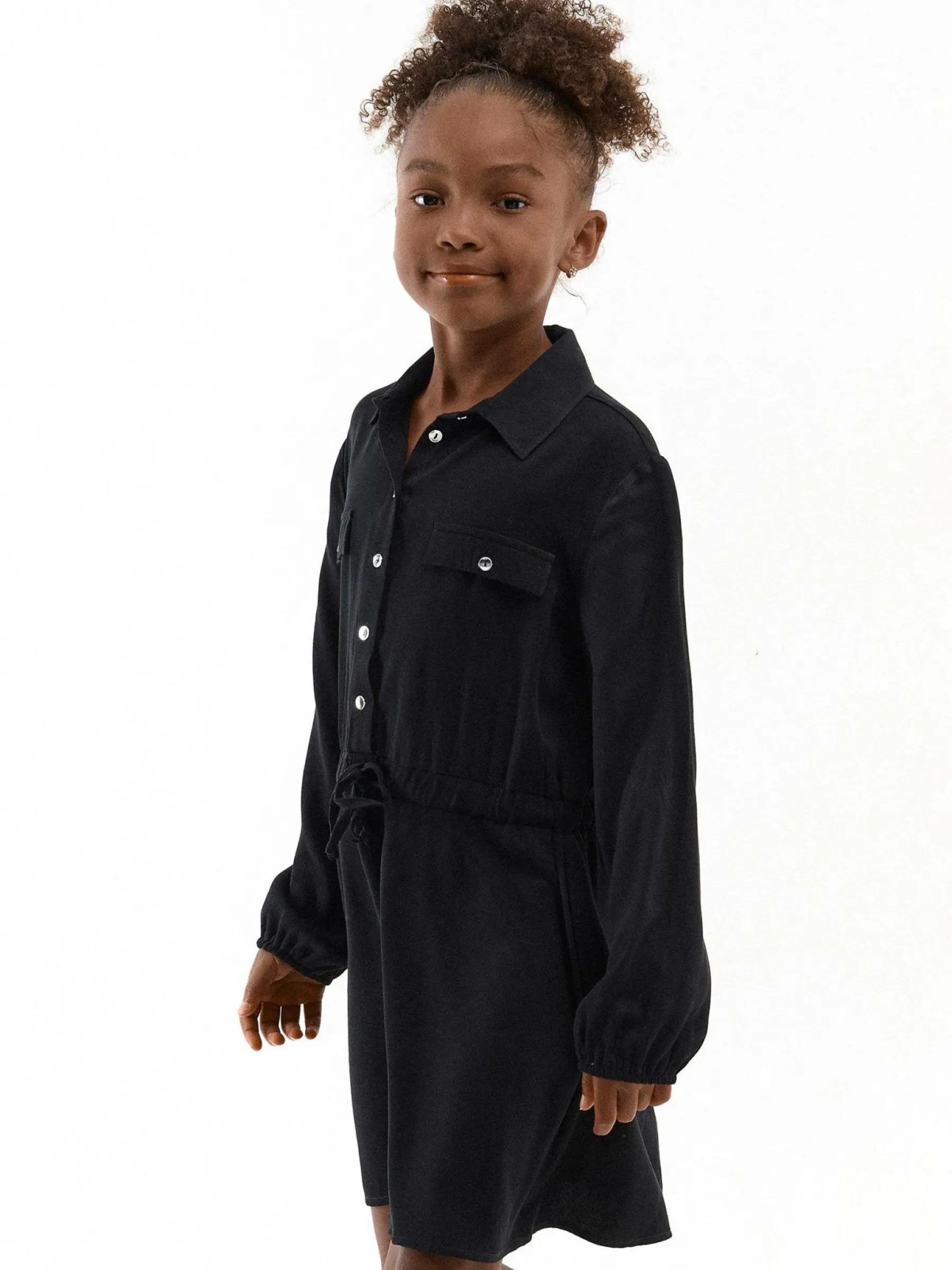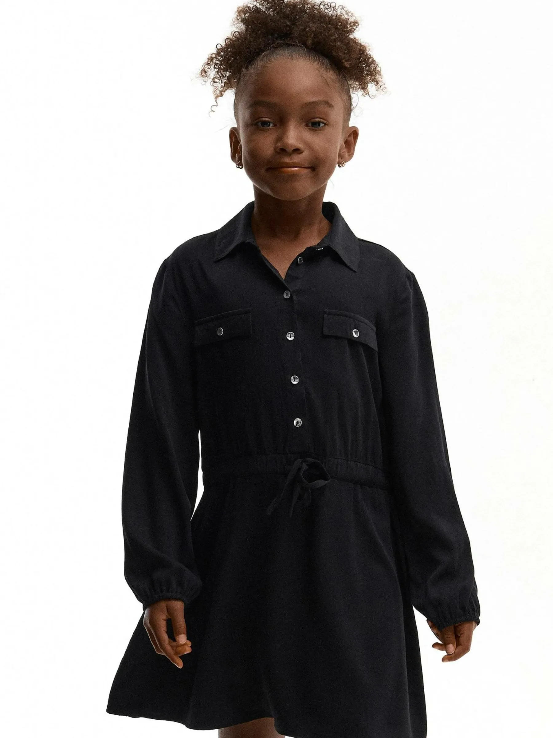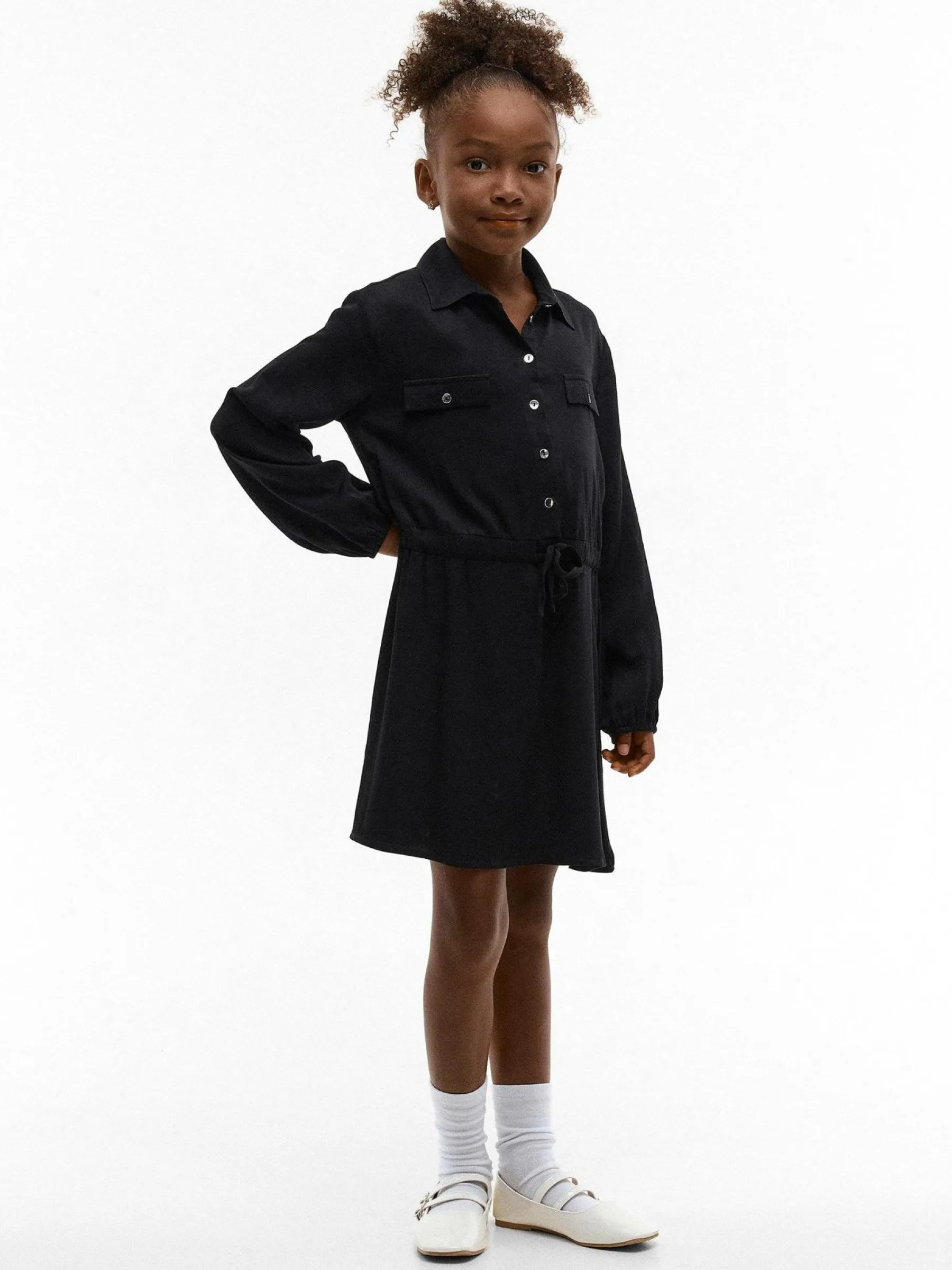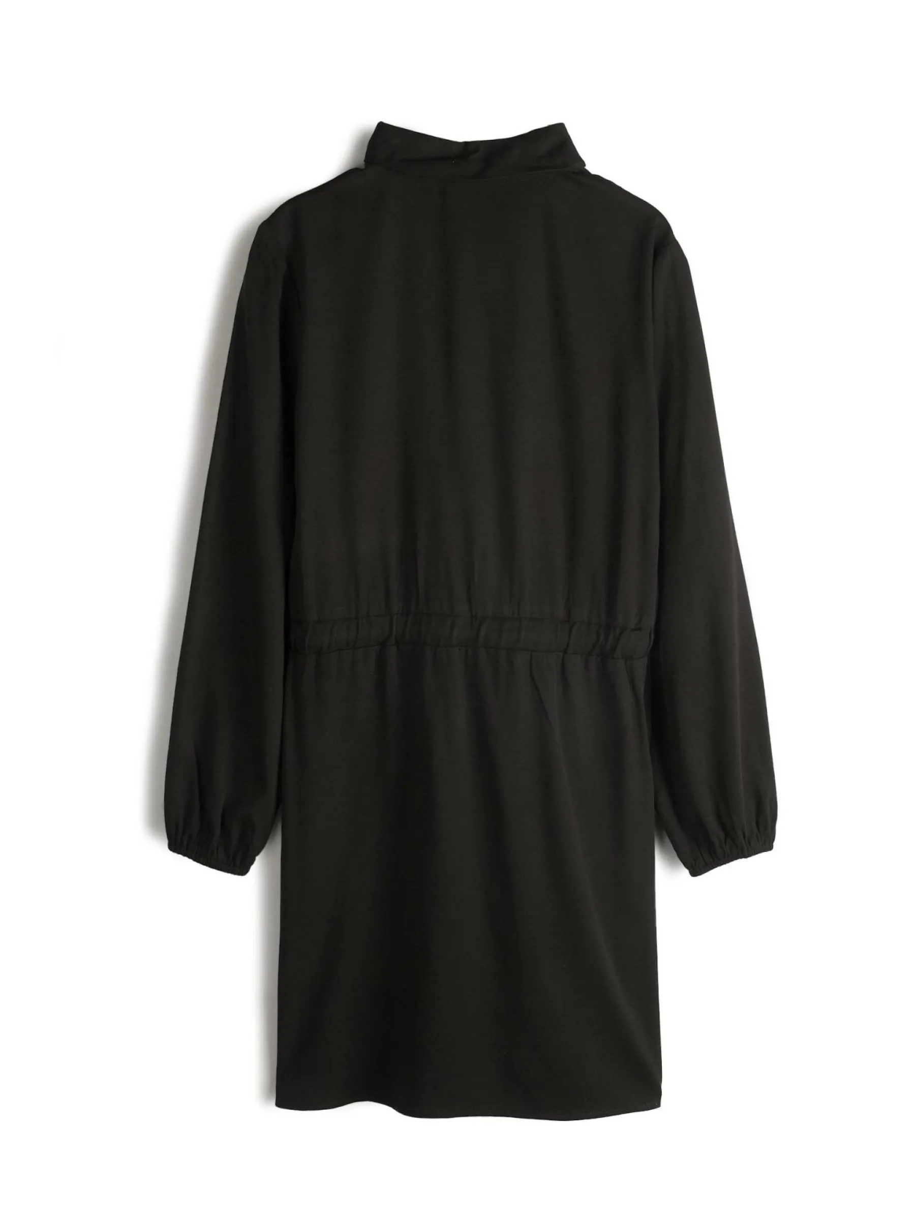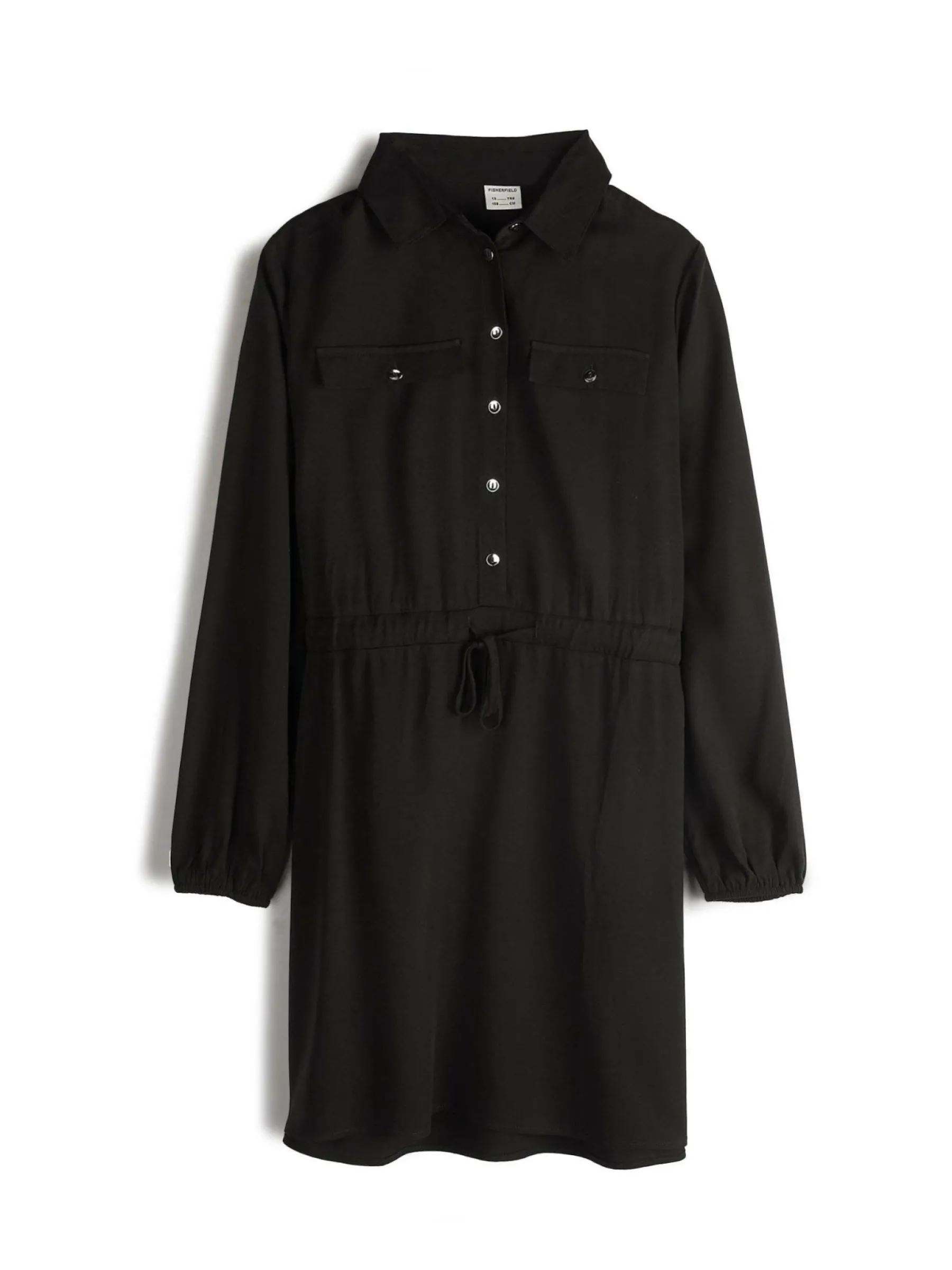 Kolor: czarnyKrój: koszuloweTyp: sukienkaRekaw: długi rękawDługość: miniPattern style: pojedynczy kolorDetal: na g…