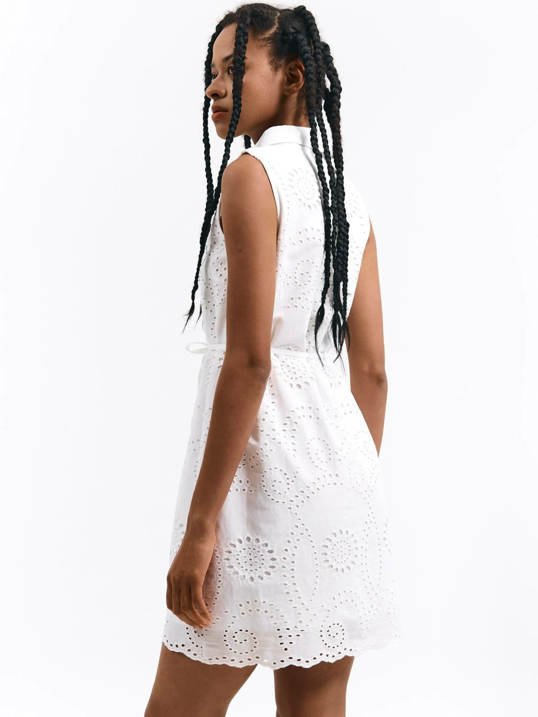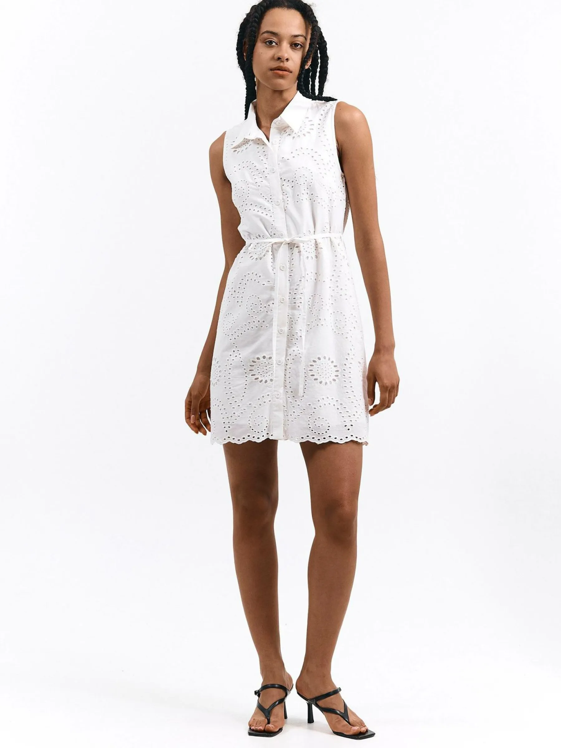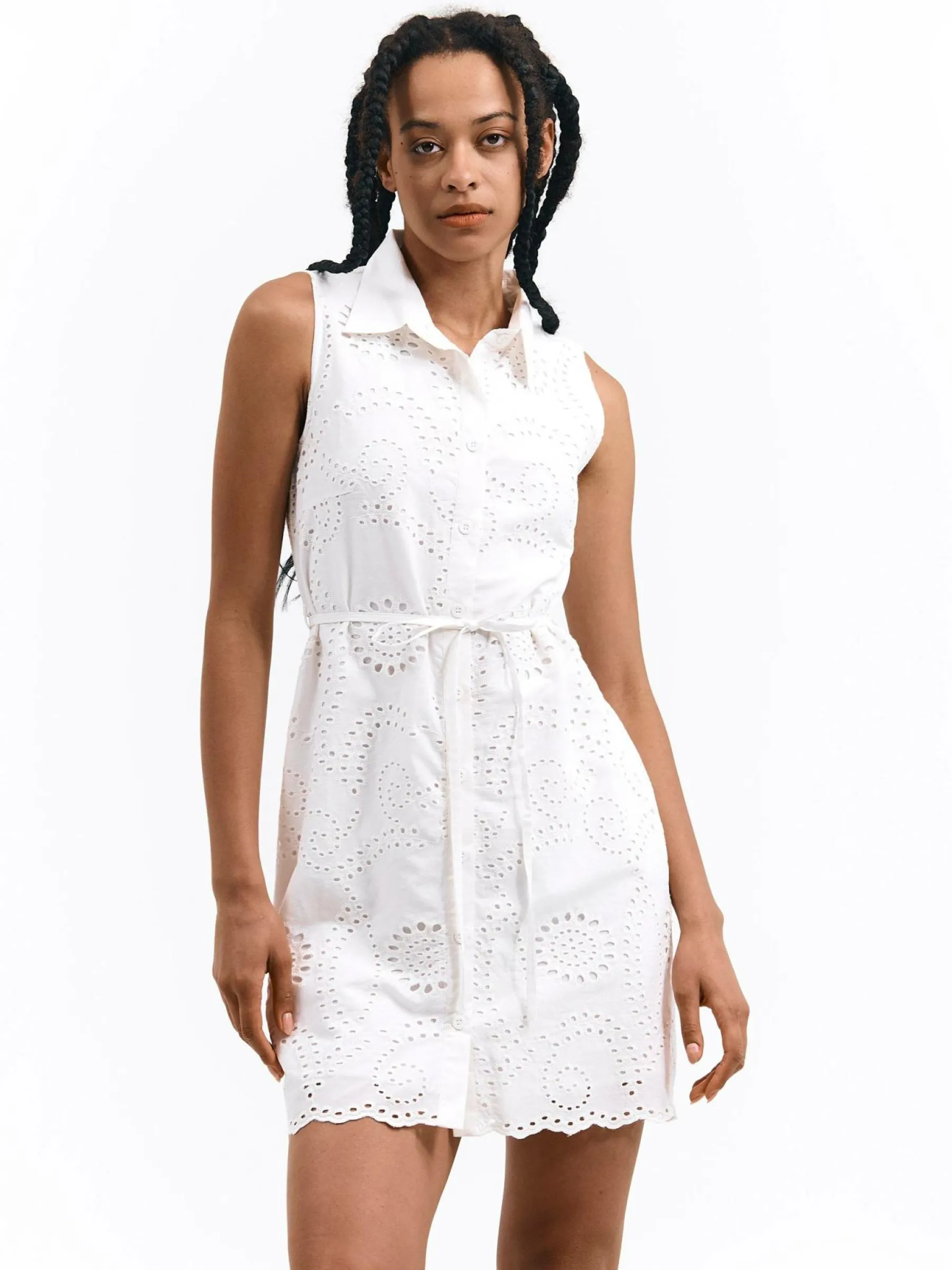 Kolor: białyKrój: koszuloweTyp: sukienkaRekaw: bez rękawówDługość: miniPattern style: pojedynczy kolor, haftowane…