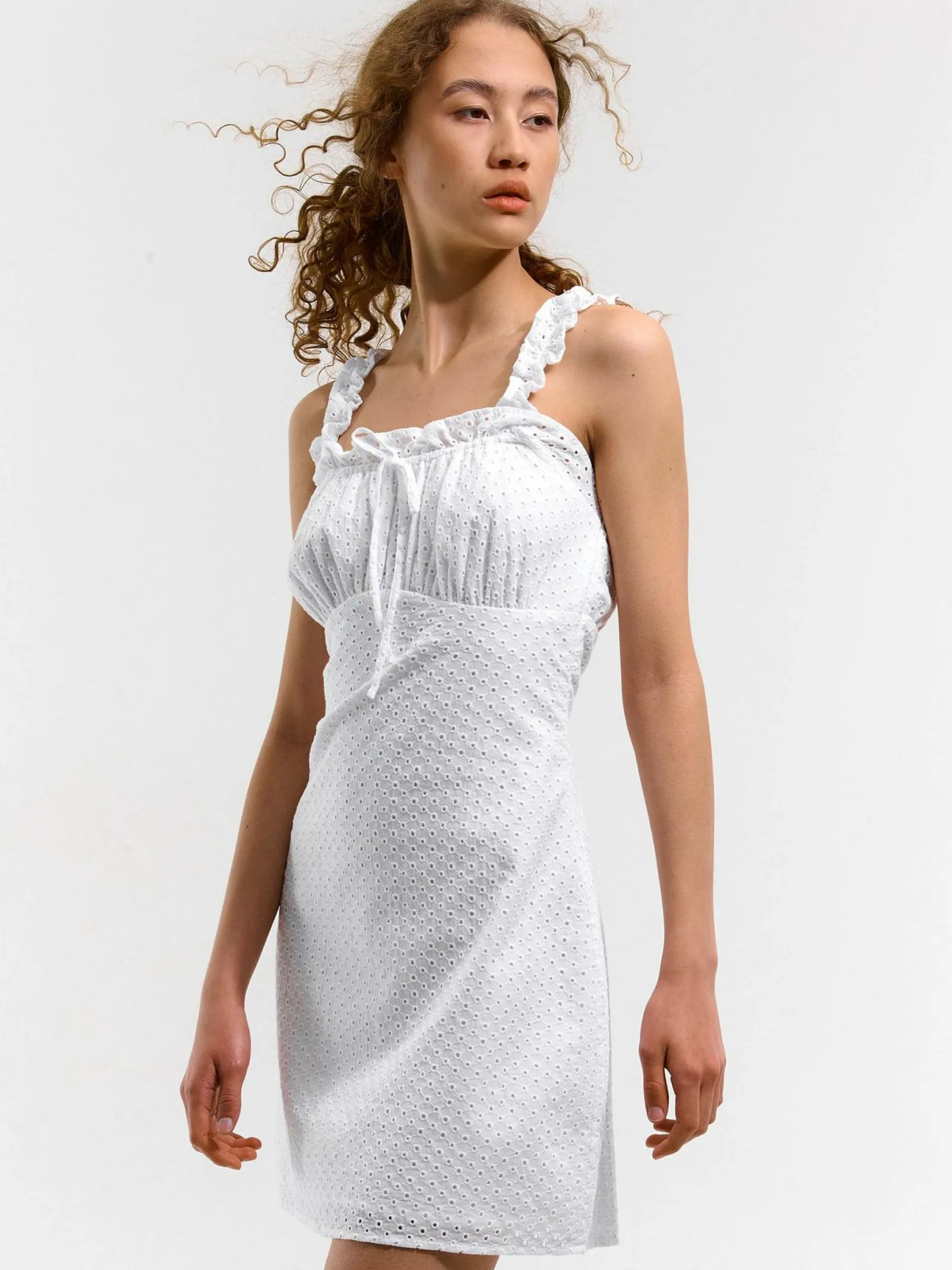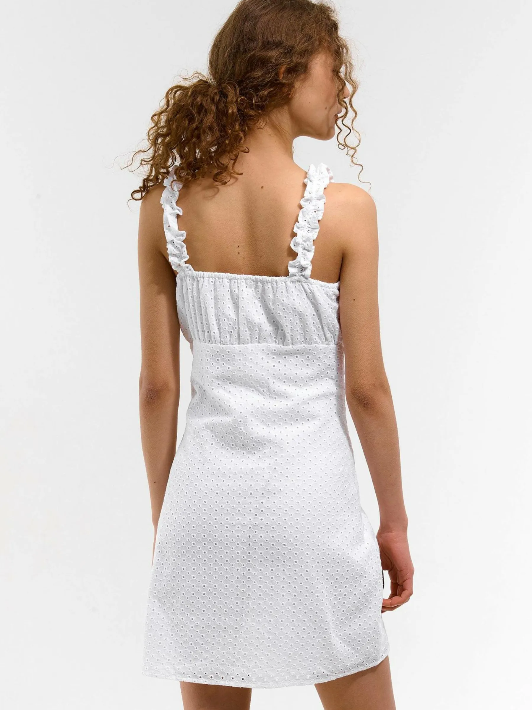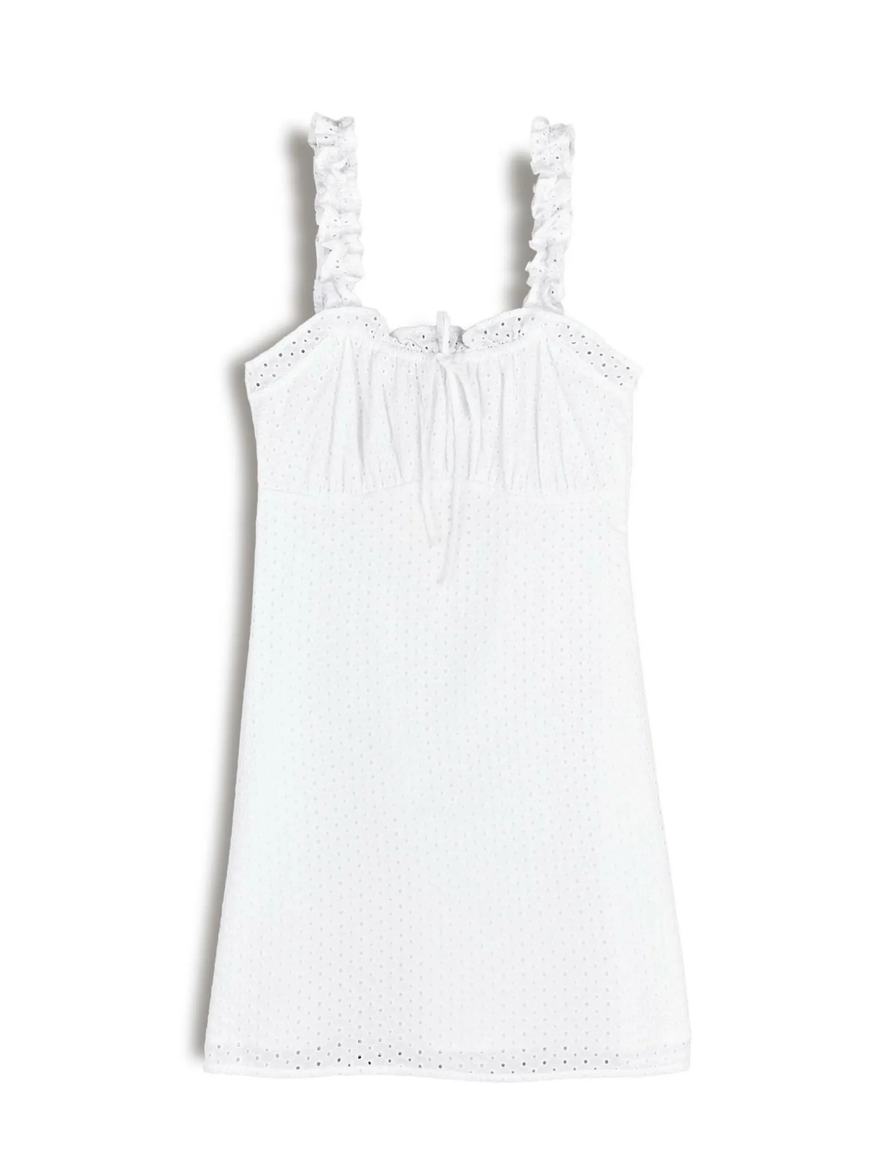 Kolor: białyKrój: asyTyp: sukienkaRekaw: bez rękawówDługość: miniPattern style: pojedynczy kolor, strukturowaneDe…