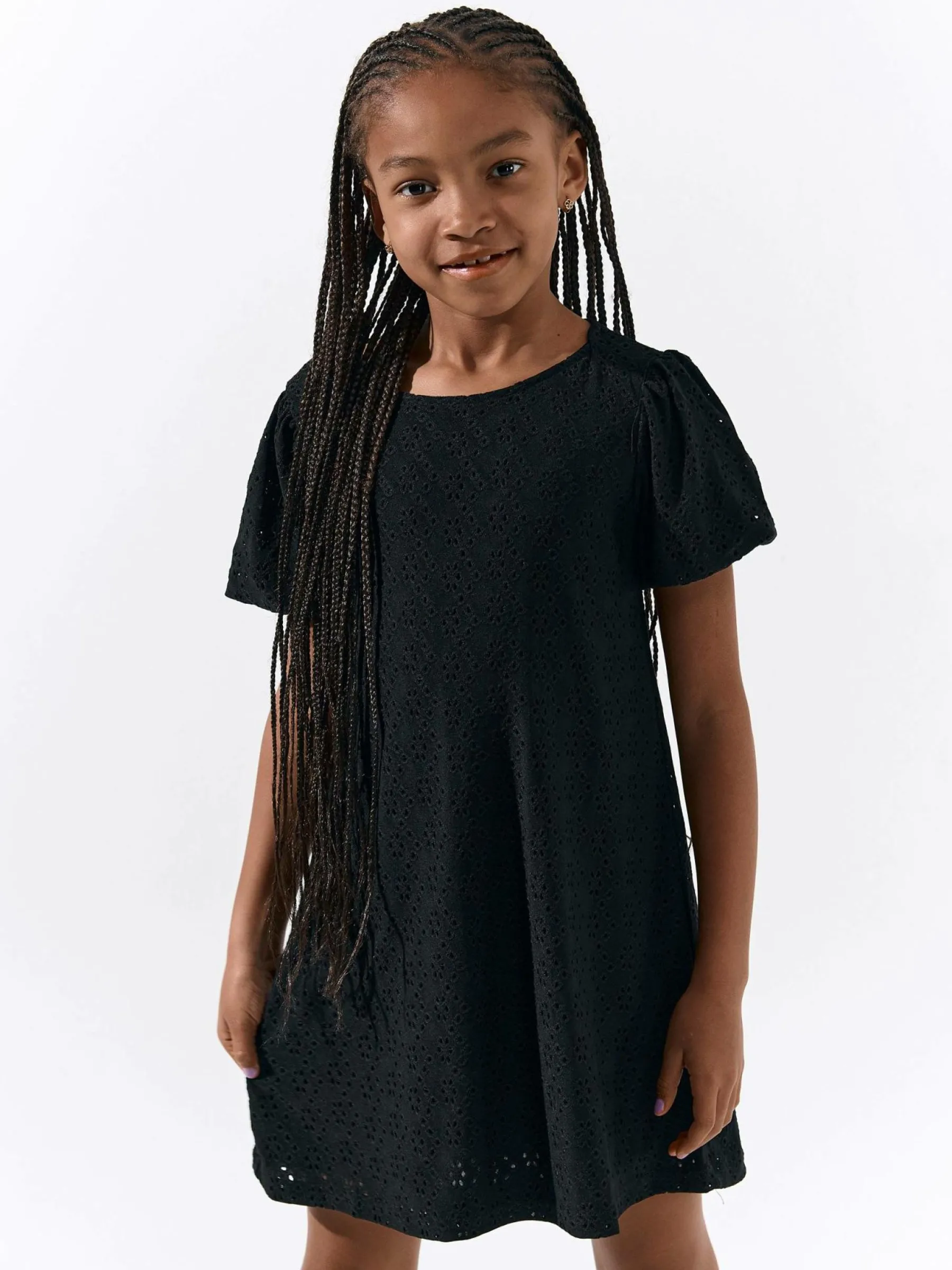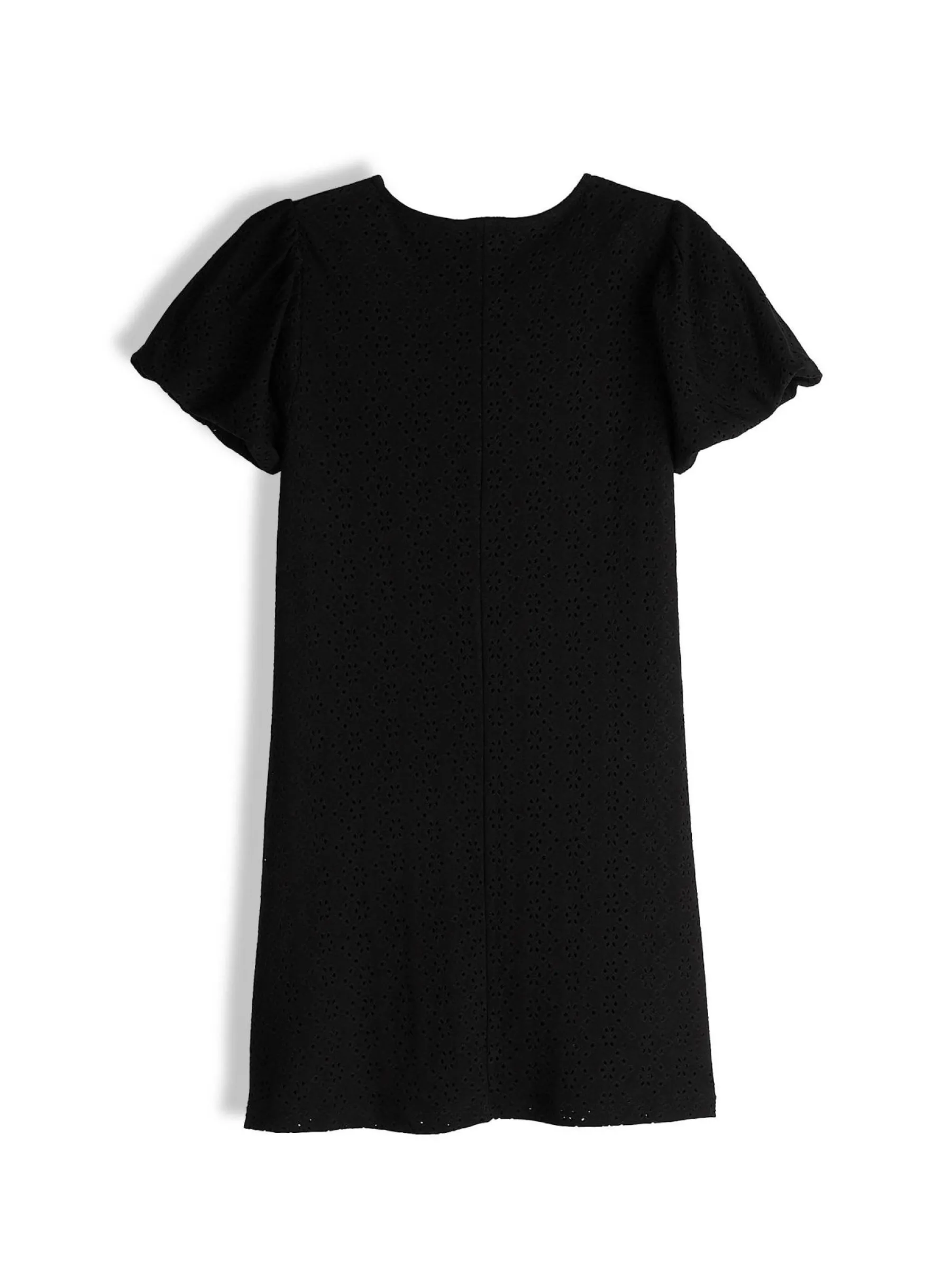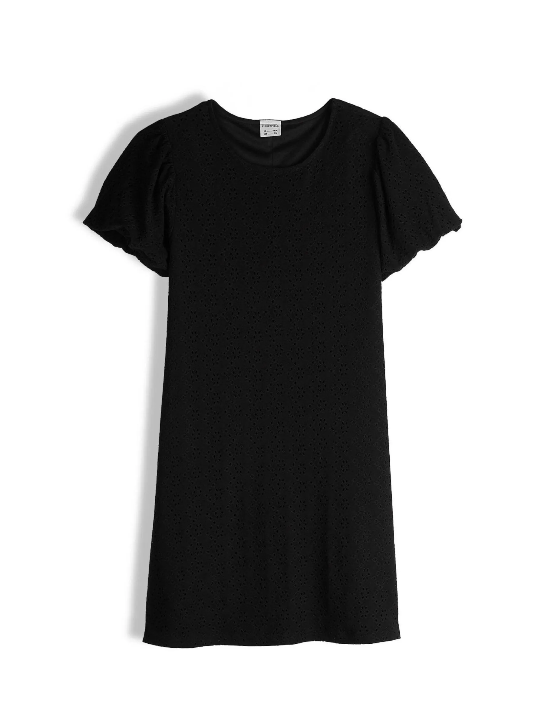 Kolor: czarnyKrój: regularTyp: sukienkaRekaw: krótki rękawDługość: miniPattern style: haftowane, pojedynczy kolorD…