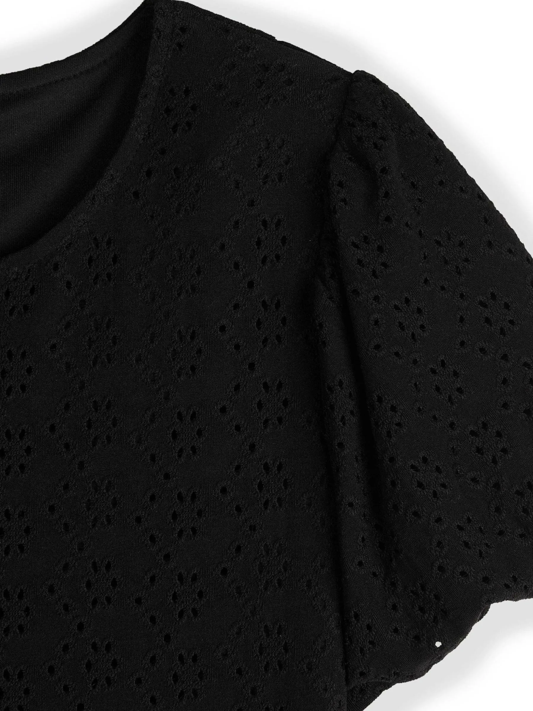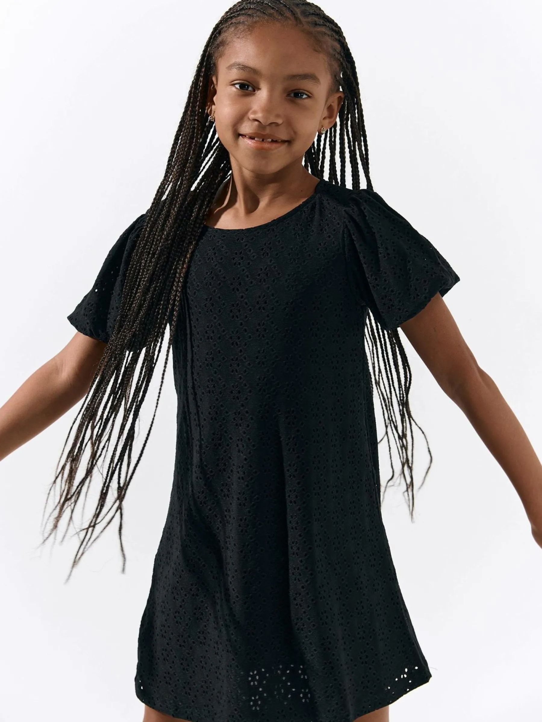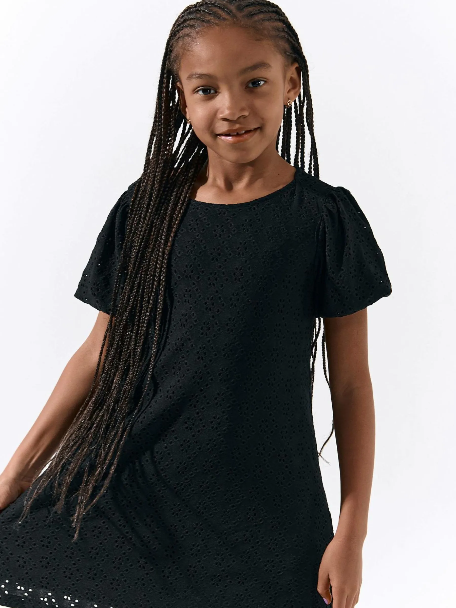 Kolor: czarnyKrój: regularTyp: sukienkaRekaw: krótki rękawDługość: miniPattern style: haftowane, pojedynczy kolorD…
