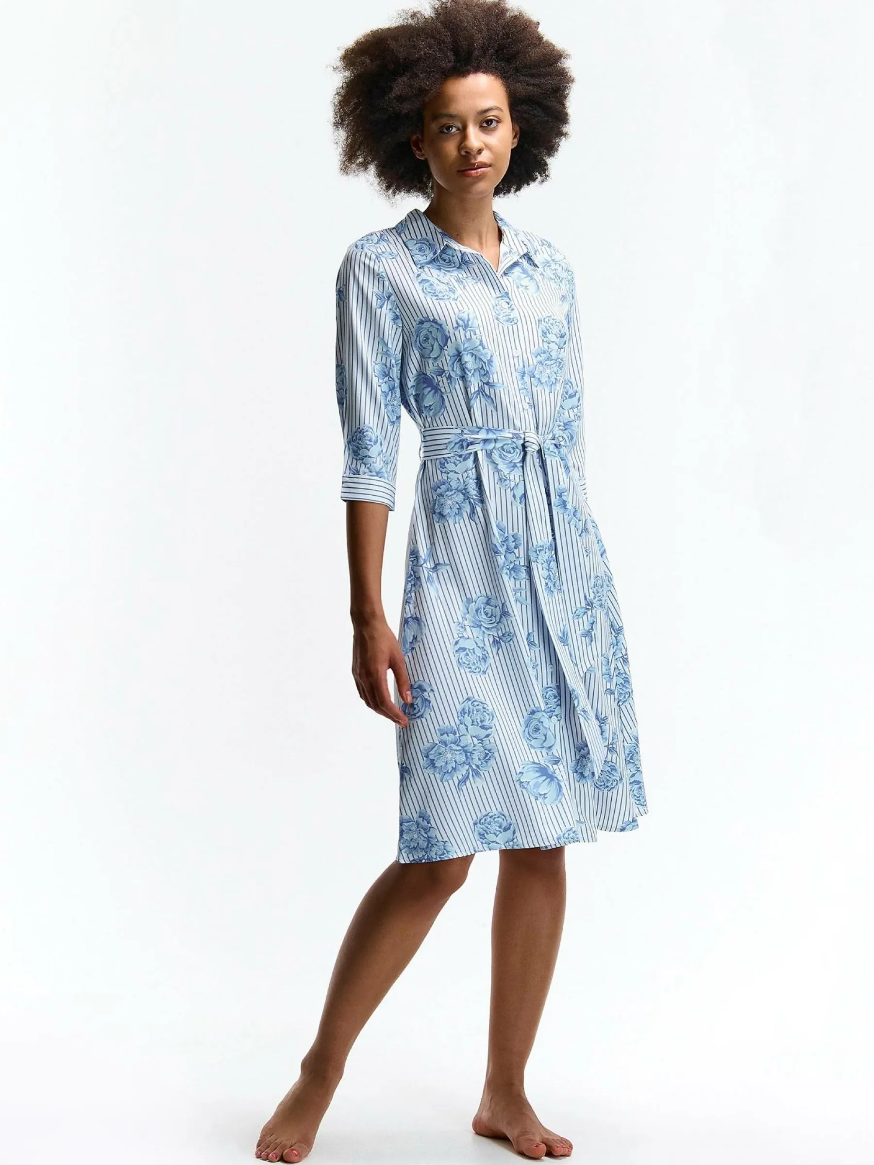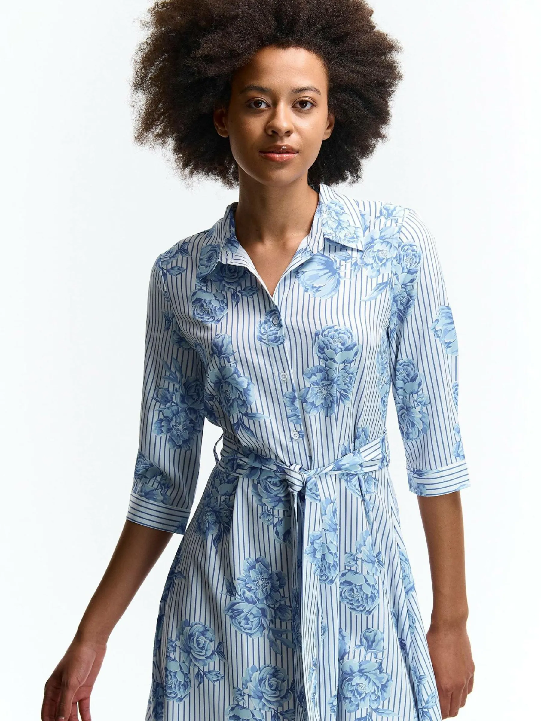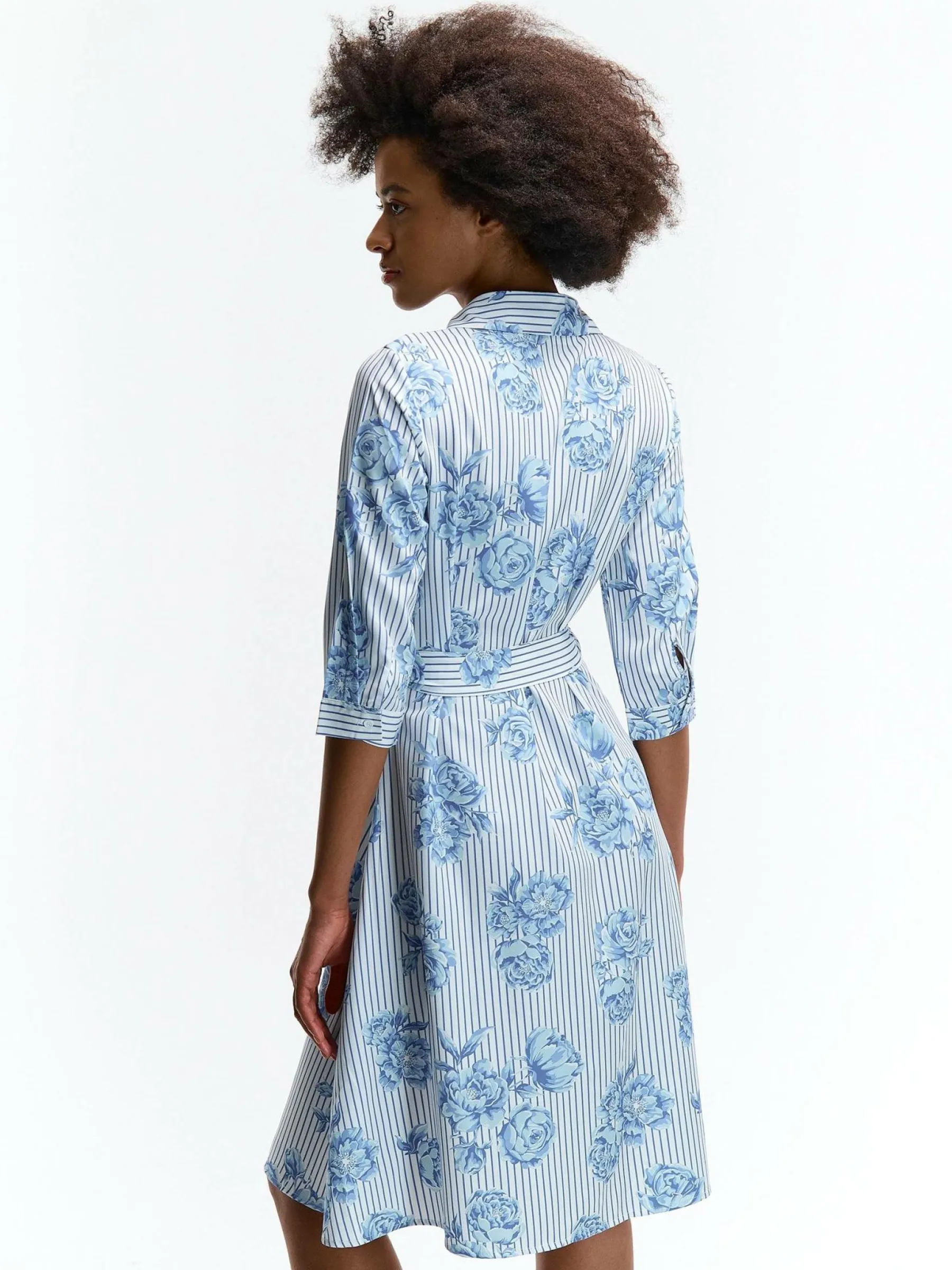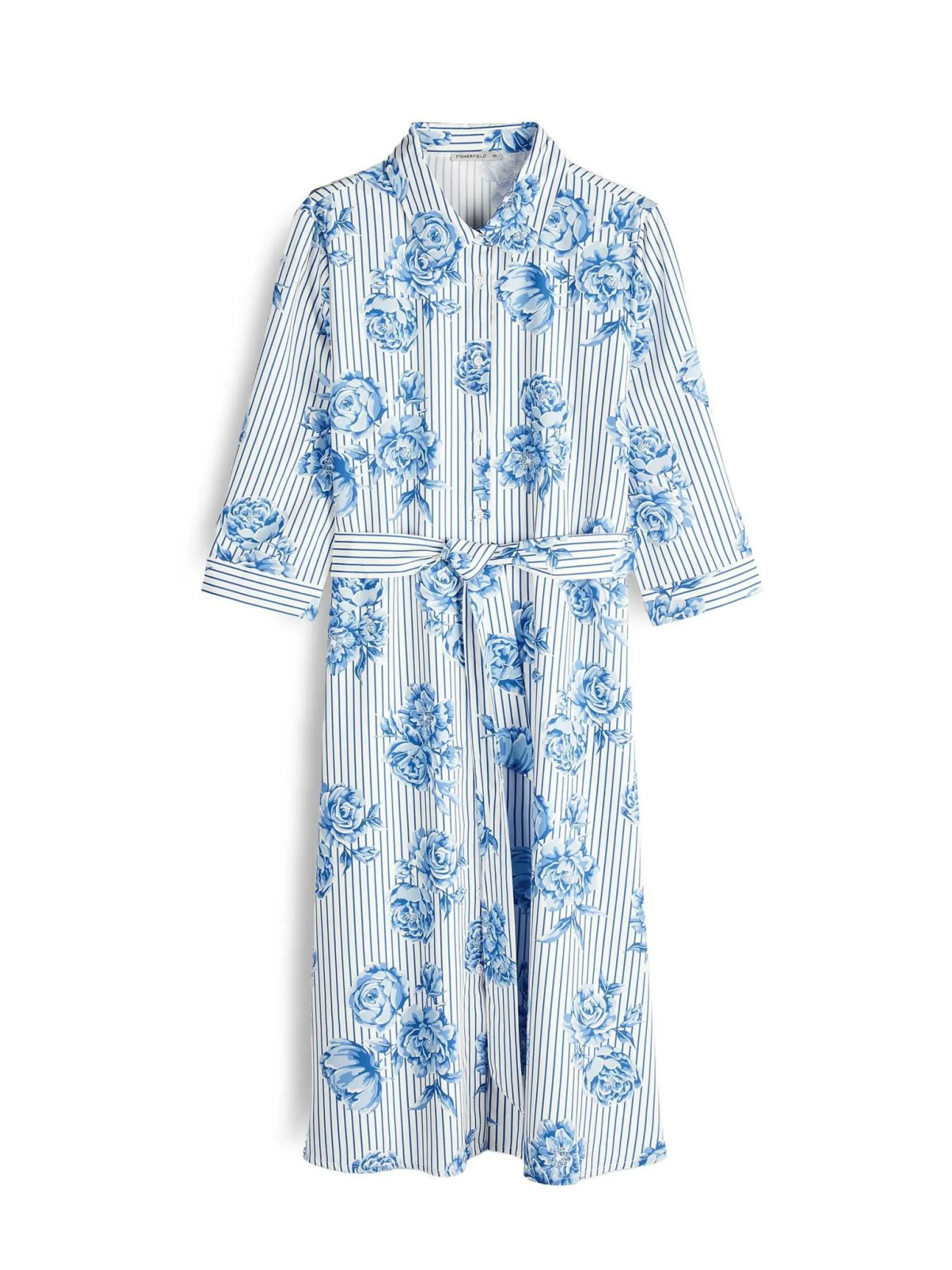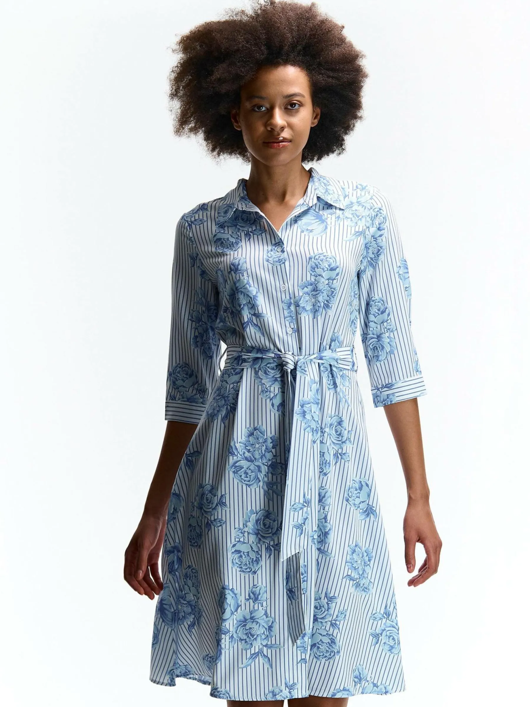 Kolor: niebieskiKrój: koszuloweTyp: sukienkaRekaw: rękaw 3/4Długość: midiPattern style: z nadrukiem, kwiatowe, w pr…