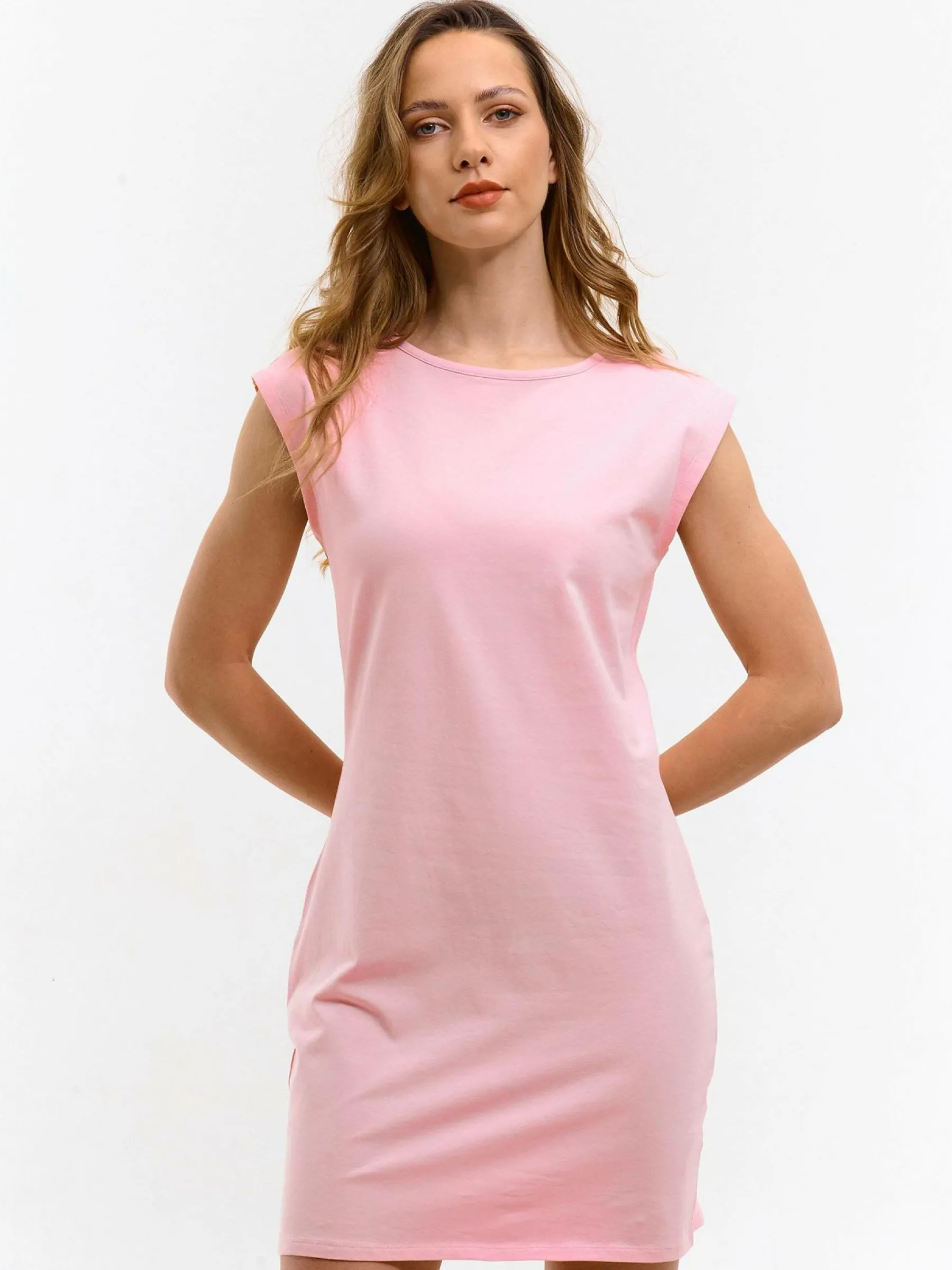 Kolor: różowyKrój: regularTyp: sukienkaRekaw: bez rękawówDługość: miniPattern style: pojedynczy kolorDetal: nad …