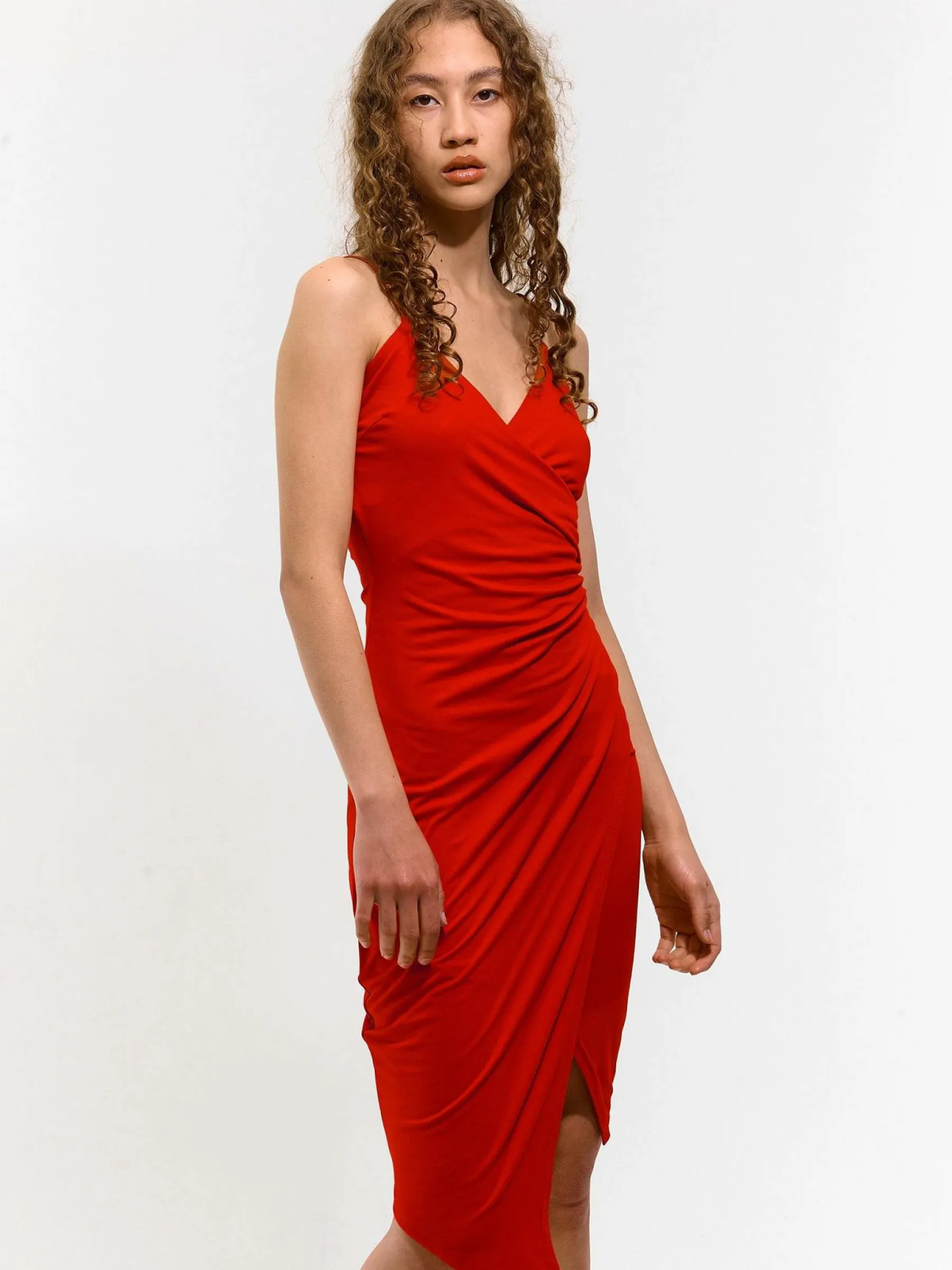 Zdjęcia z modelką mogą nie odpowiadać rzeczywistemu kolorowi produktu.Kolor: czerwonyKrój: ołówkowe, asymetryczne…