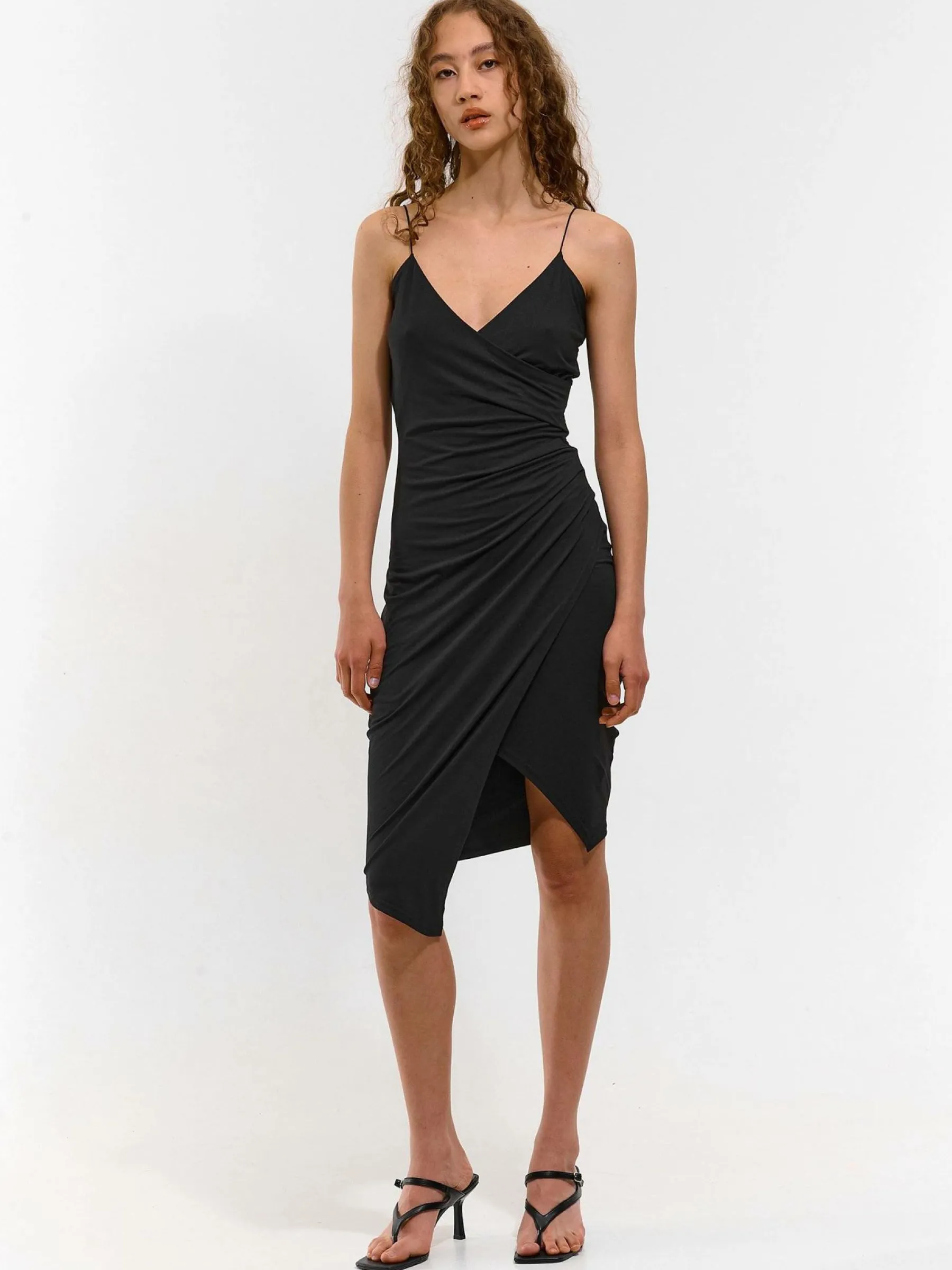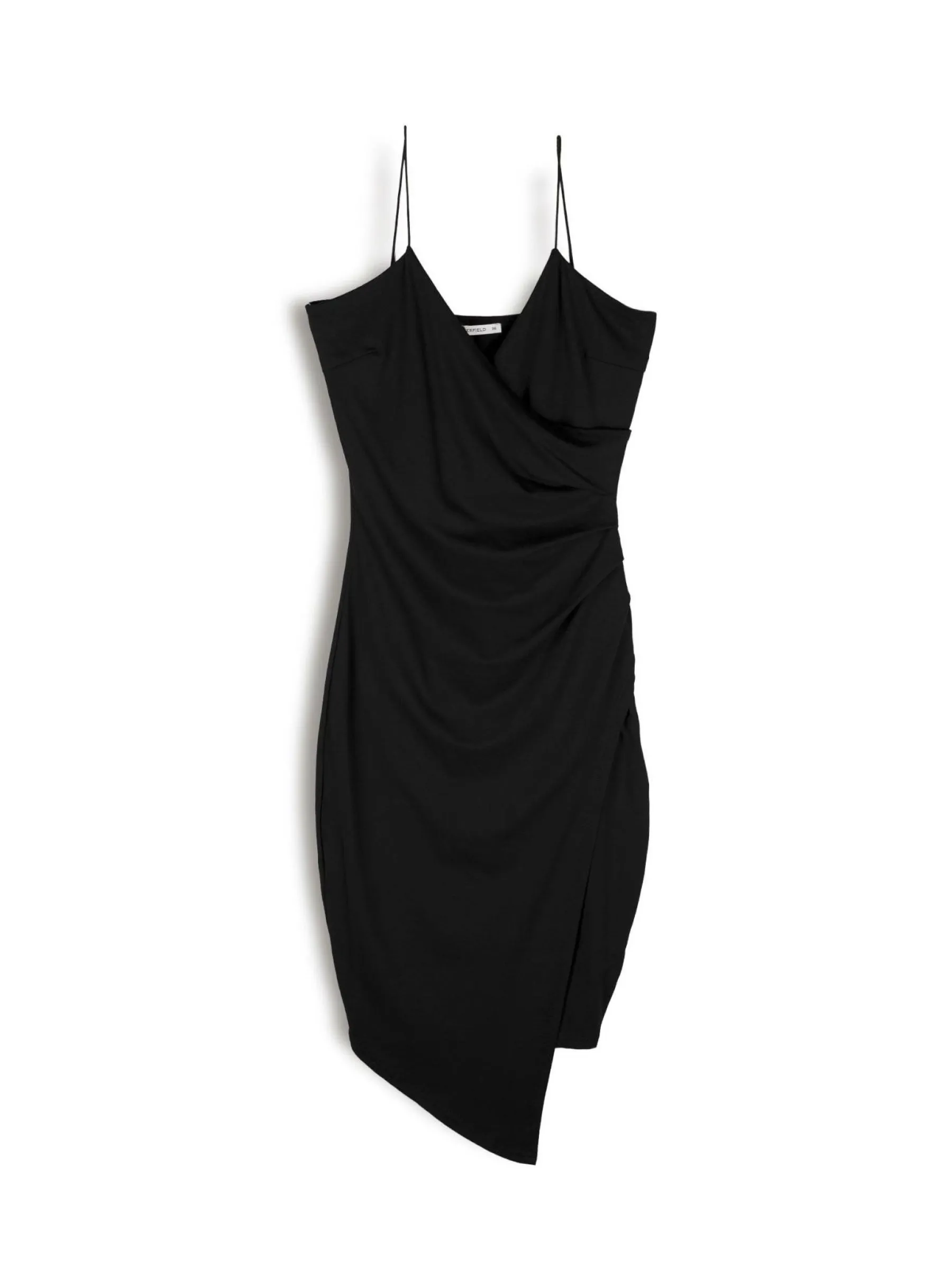 Kolor: czarnyKrój: asymetryczne, ołówkoweTyp: sukienkaRekaw: bez rękawówDługość: miniPattern style: pojedynczy k…