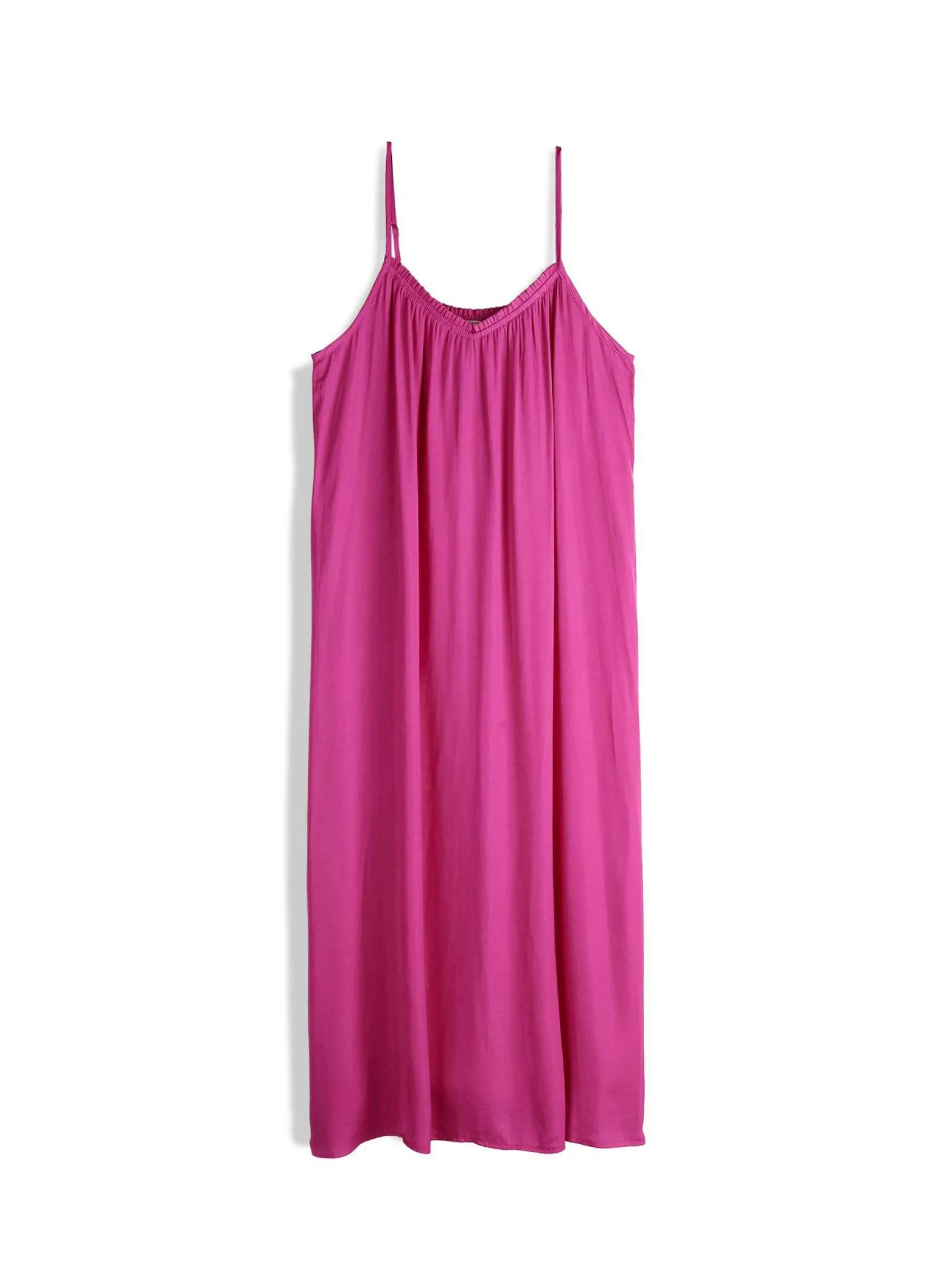 Kolor: różowyKrój: regularTyp: sukienkaRekaw: bez rękawówDługość: maxiPattern style: pojedynczy kolorDetal: v-ne…
