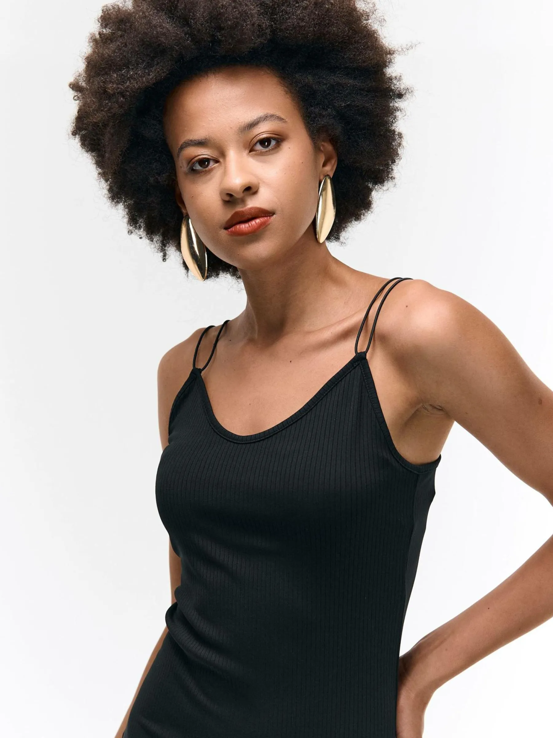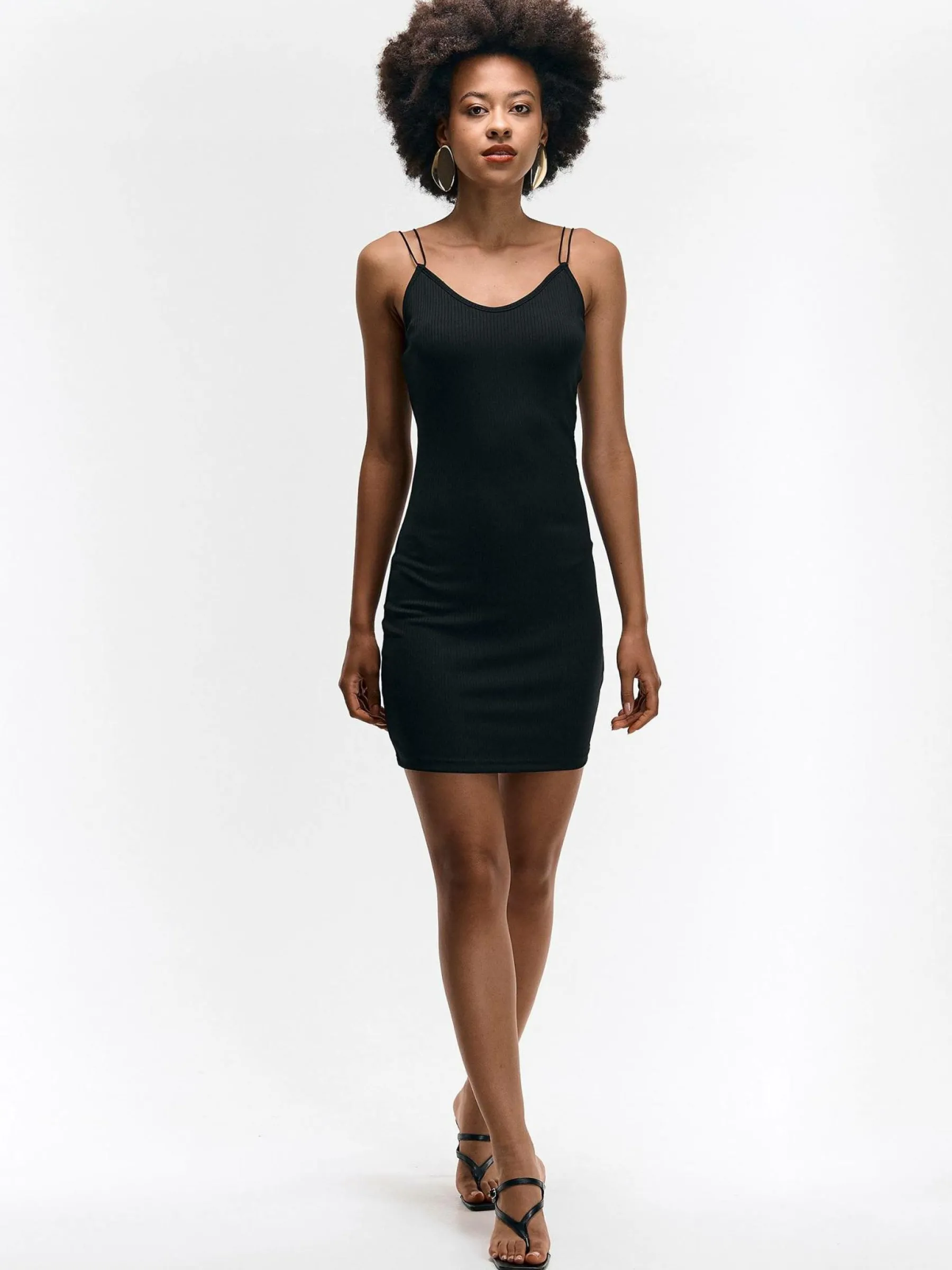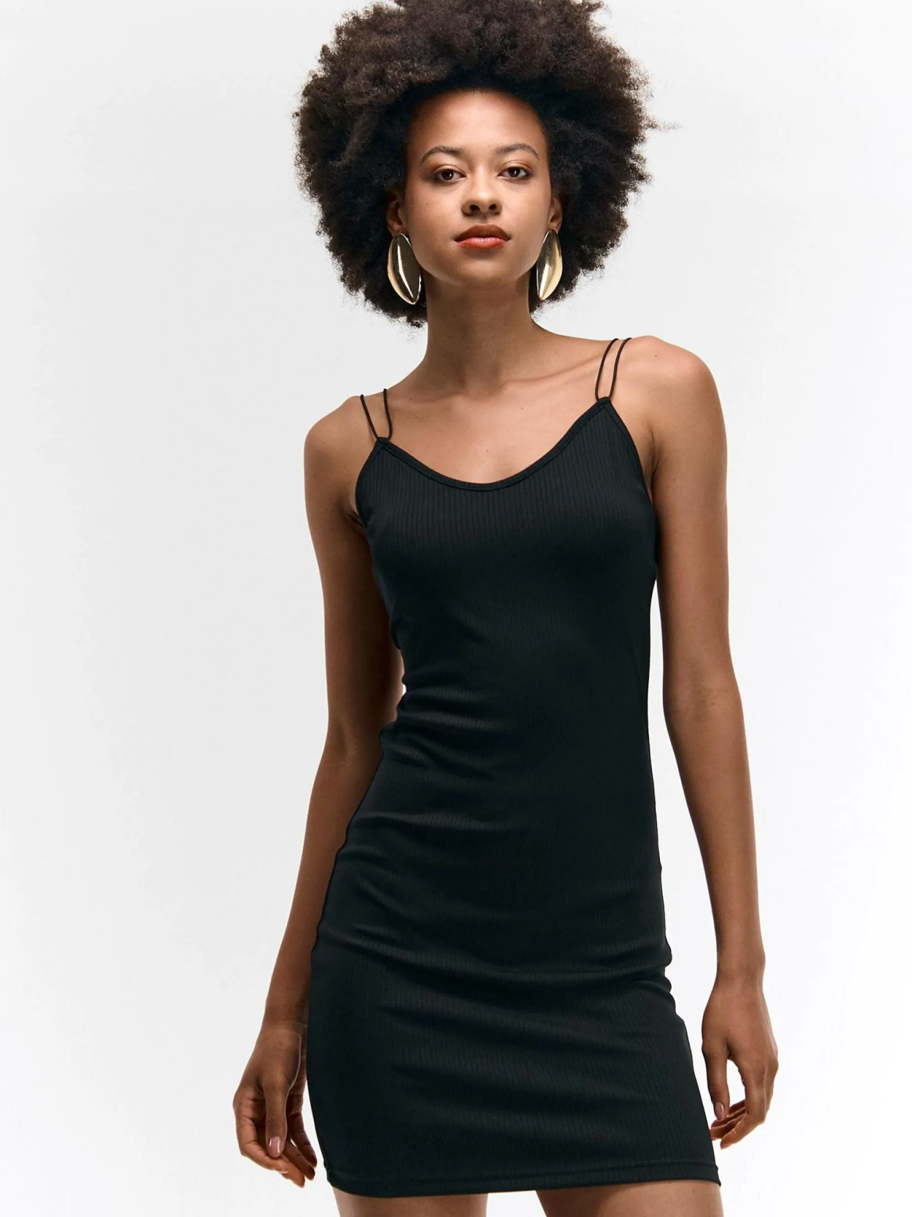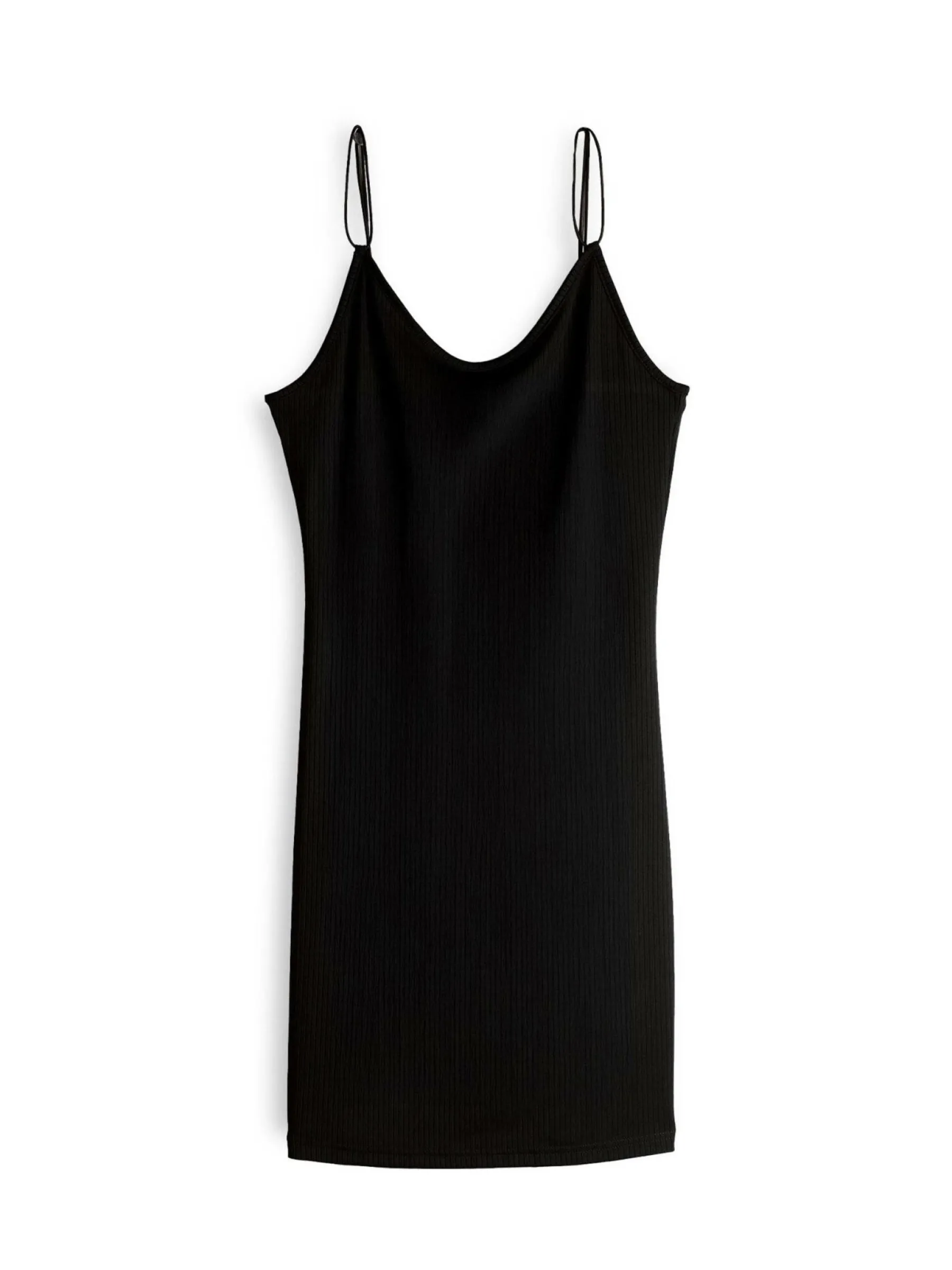 Kolor: czarnyKrój: ołówkoweTyp: sukienkaRekaw: bez rękawówDługość: miniPattern style: pojedynczy kolor, żebrowa…