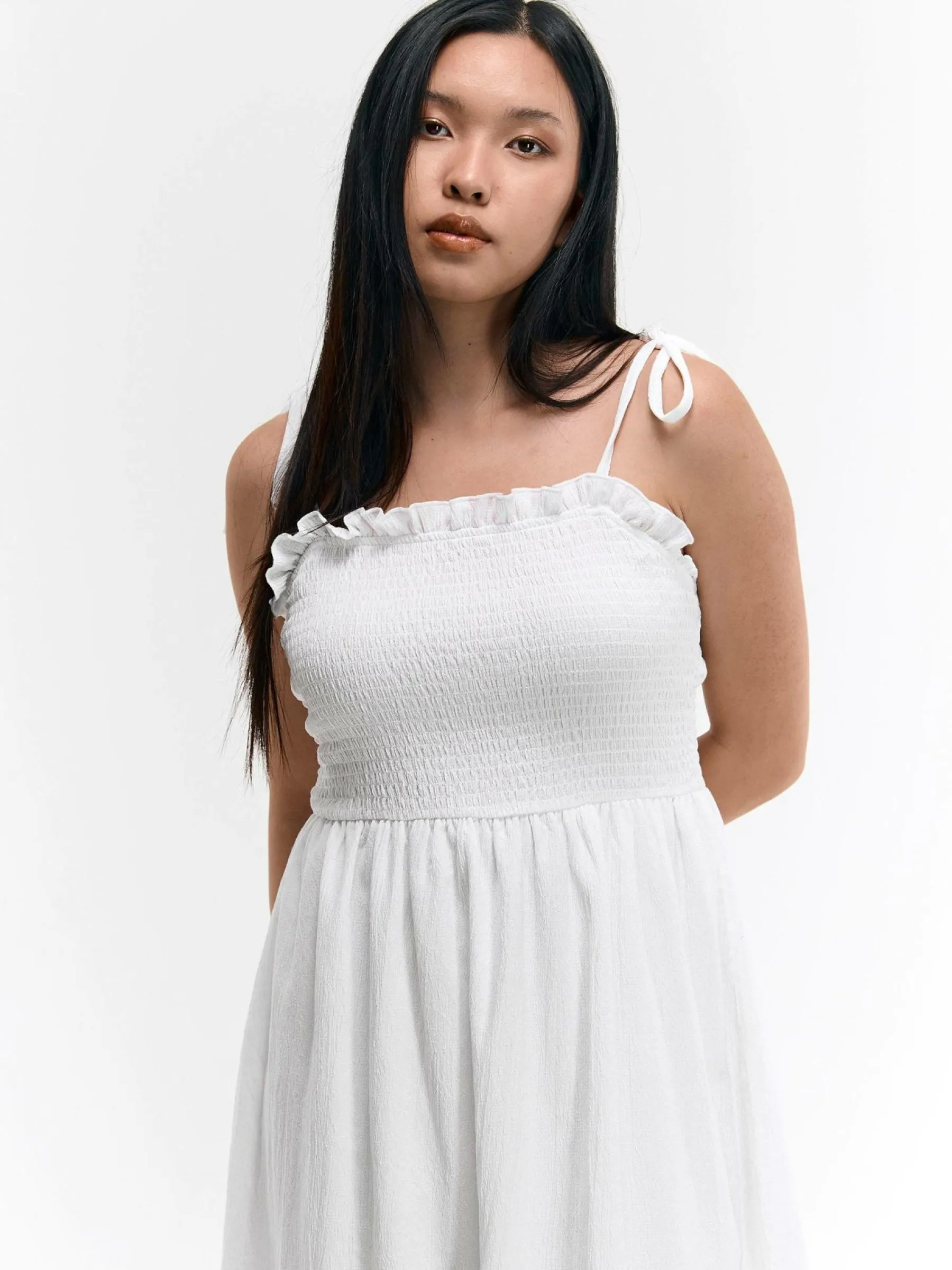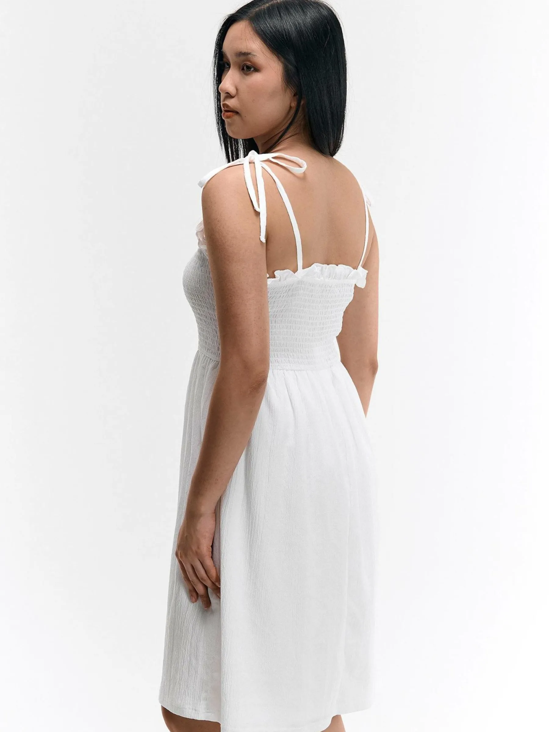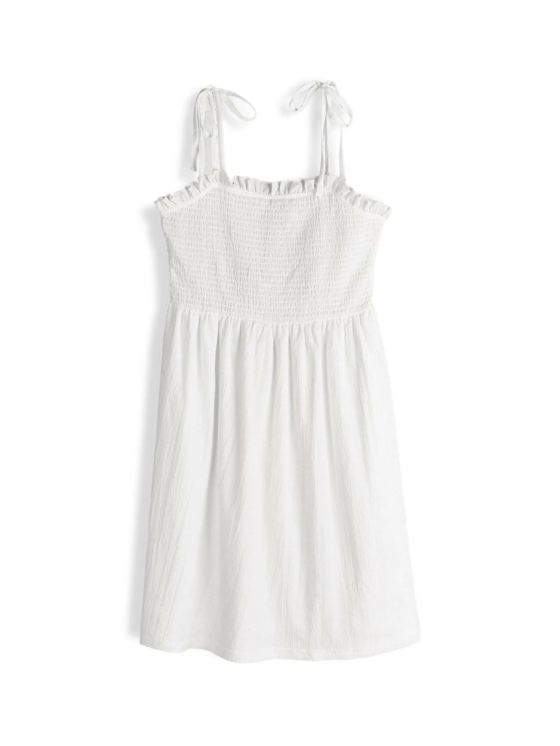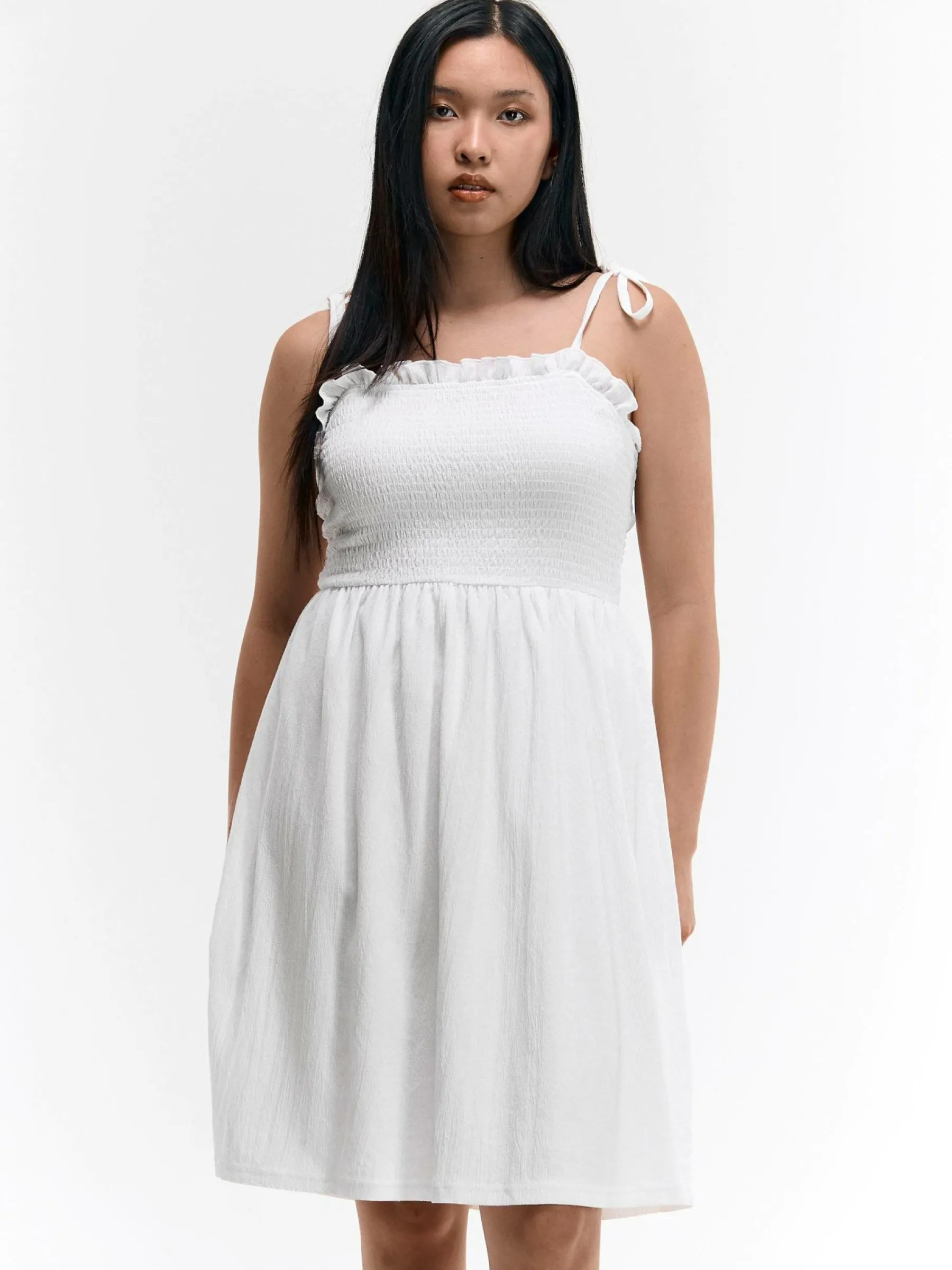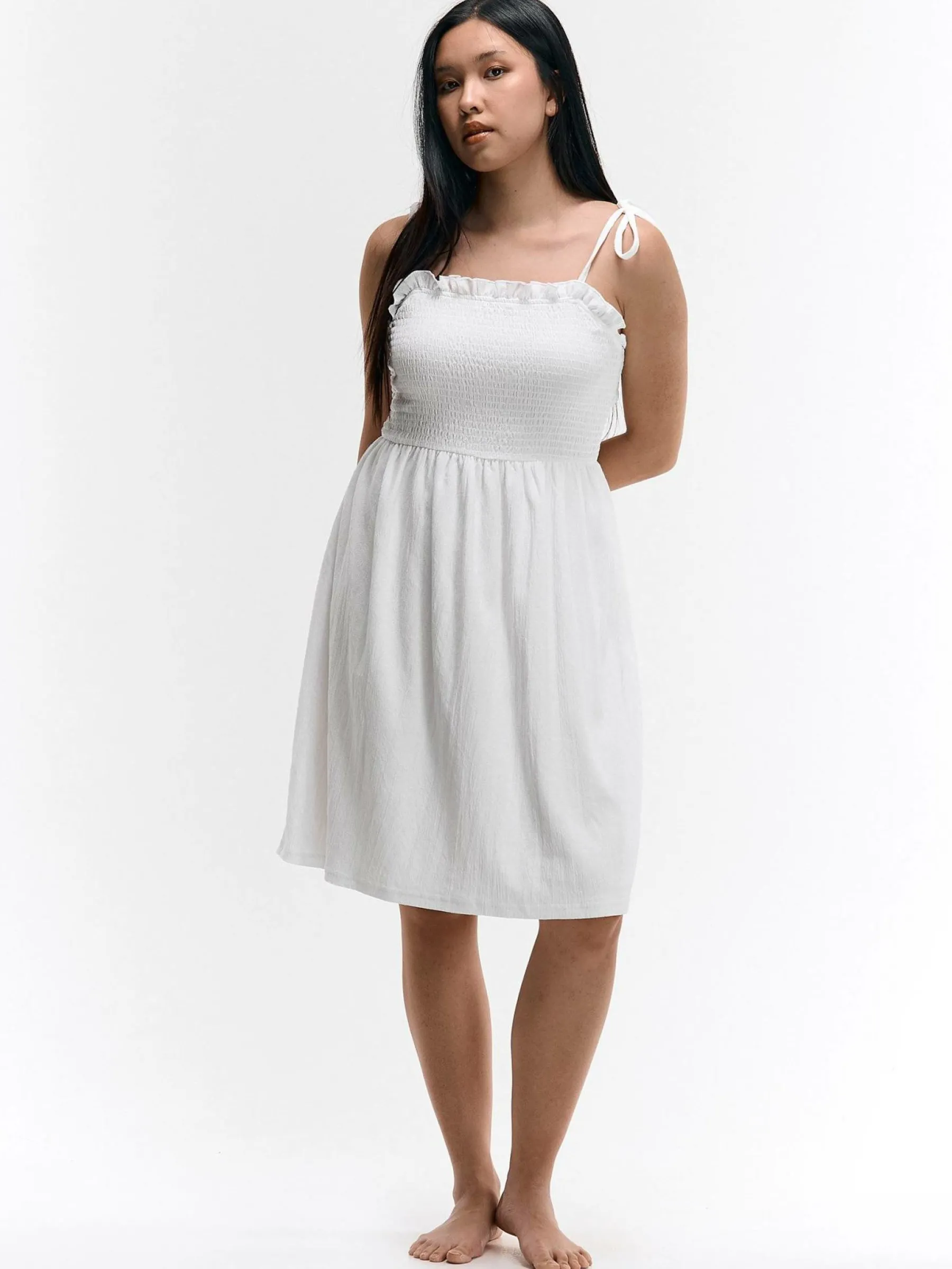 Kolor: białyKrój: z marszczeniem, asyTyp: sukienkaRekaw: bez rękawówDługość: miniPattern style: pojedynczy kolorD…