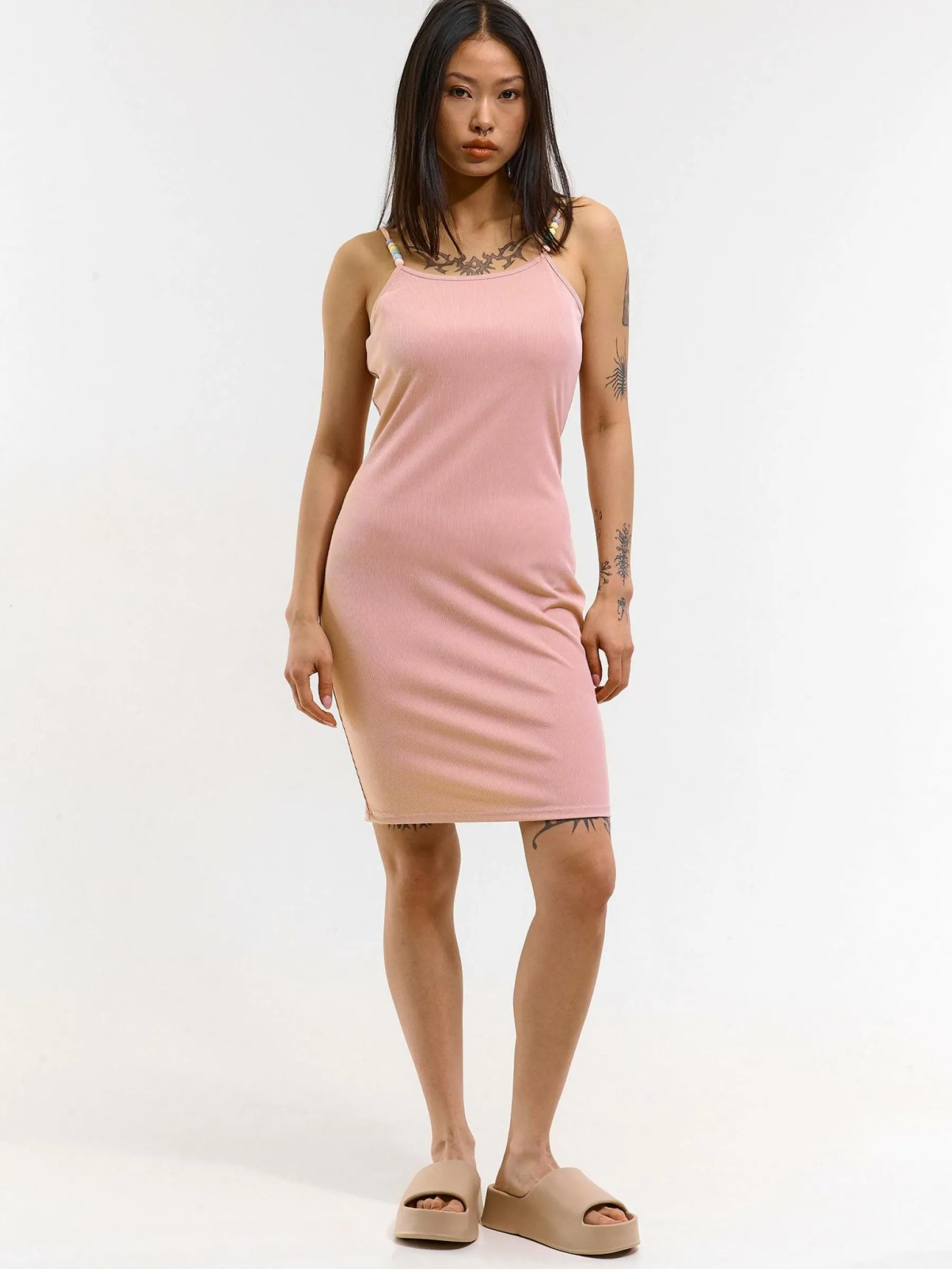 Kolor: różowyKrój: regularTyp: sukienkaRekaw: bez rękawówDługość: miniPattern style: żebrowany, pojedynczy kolo…