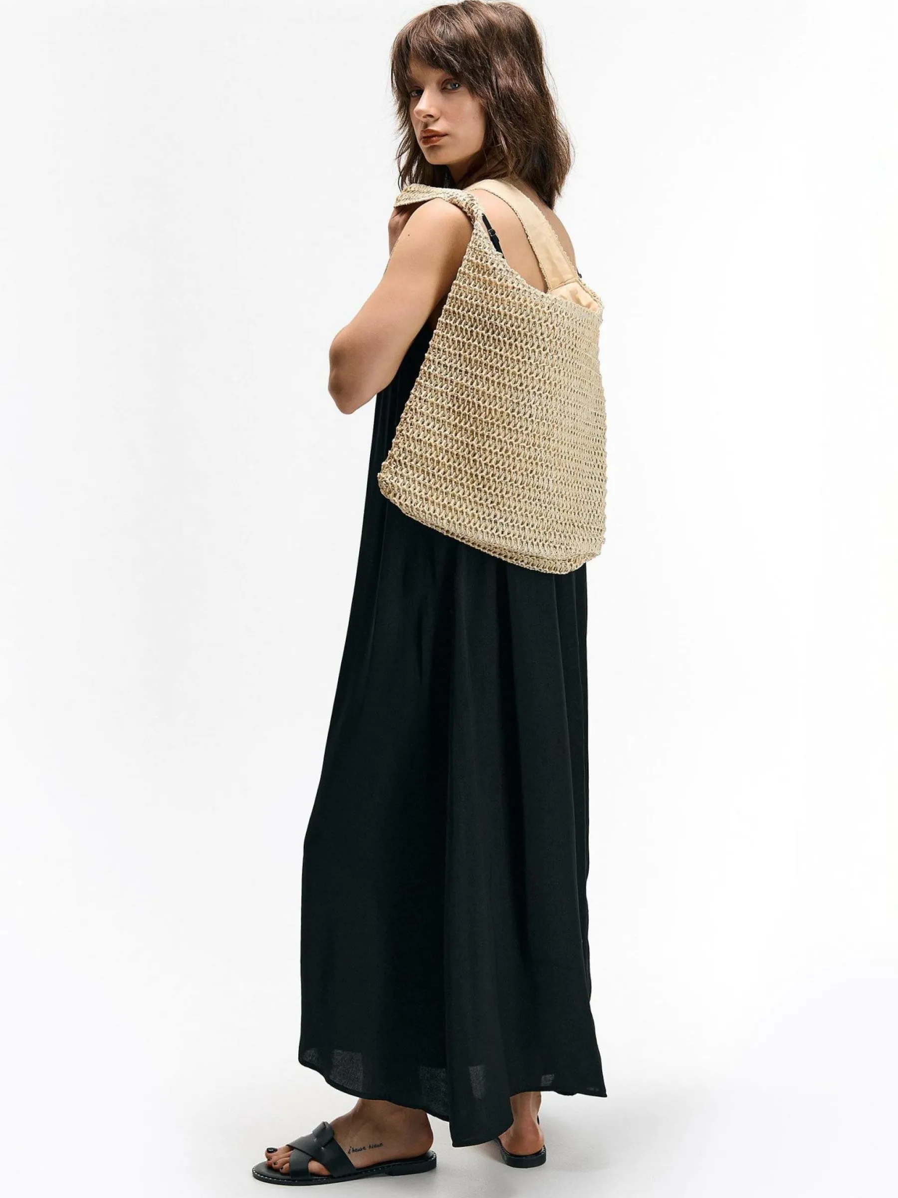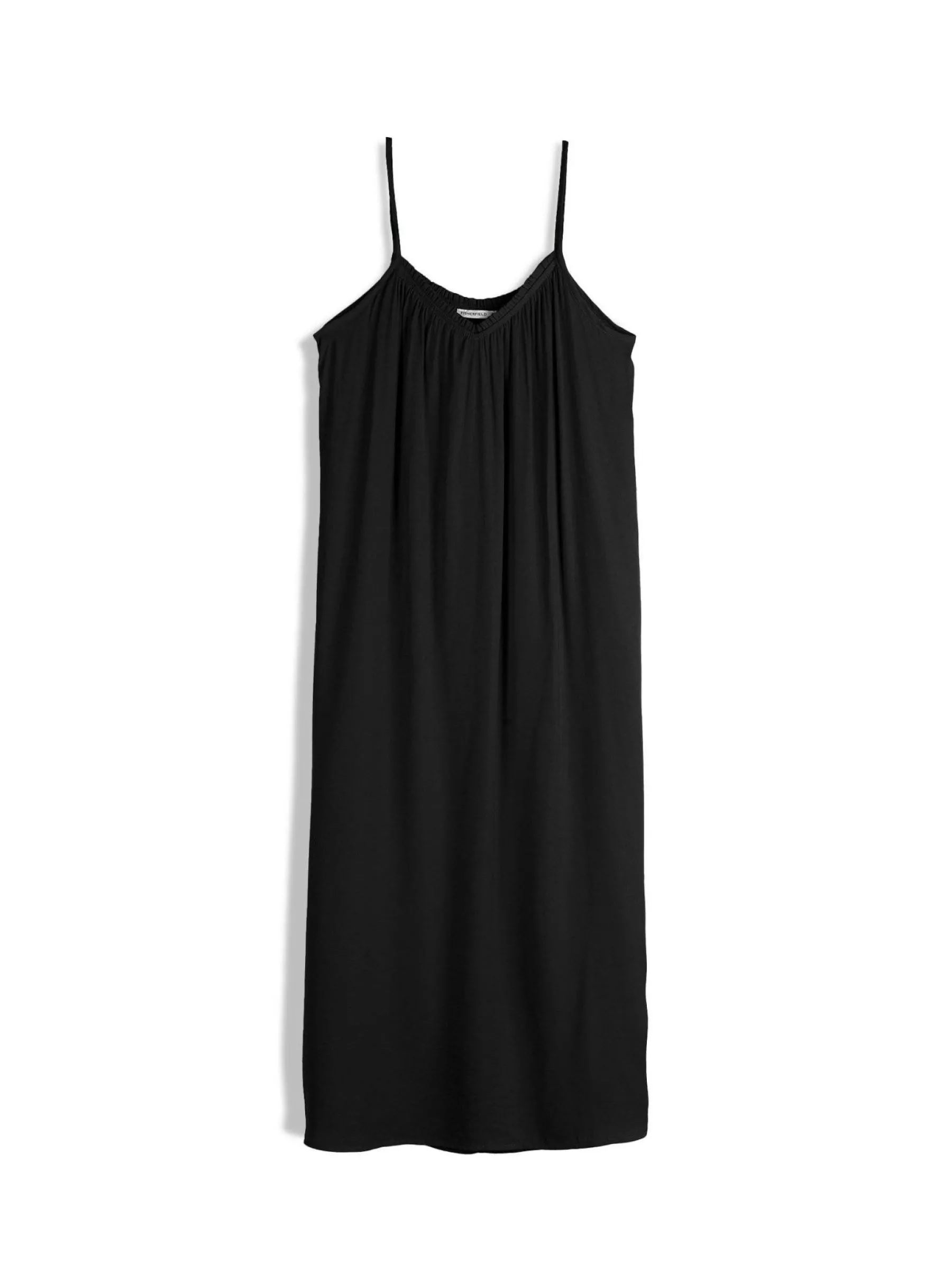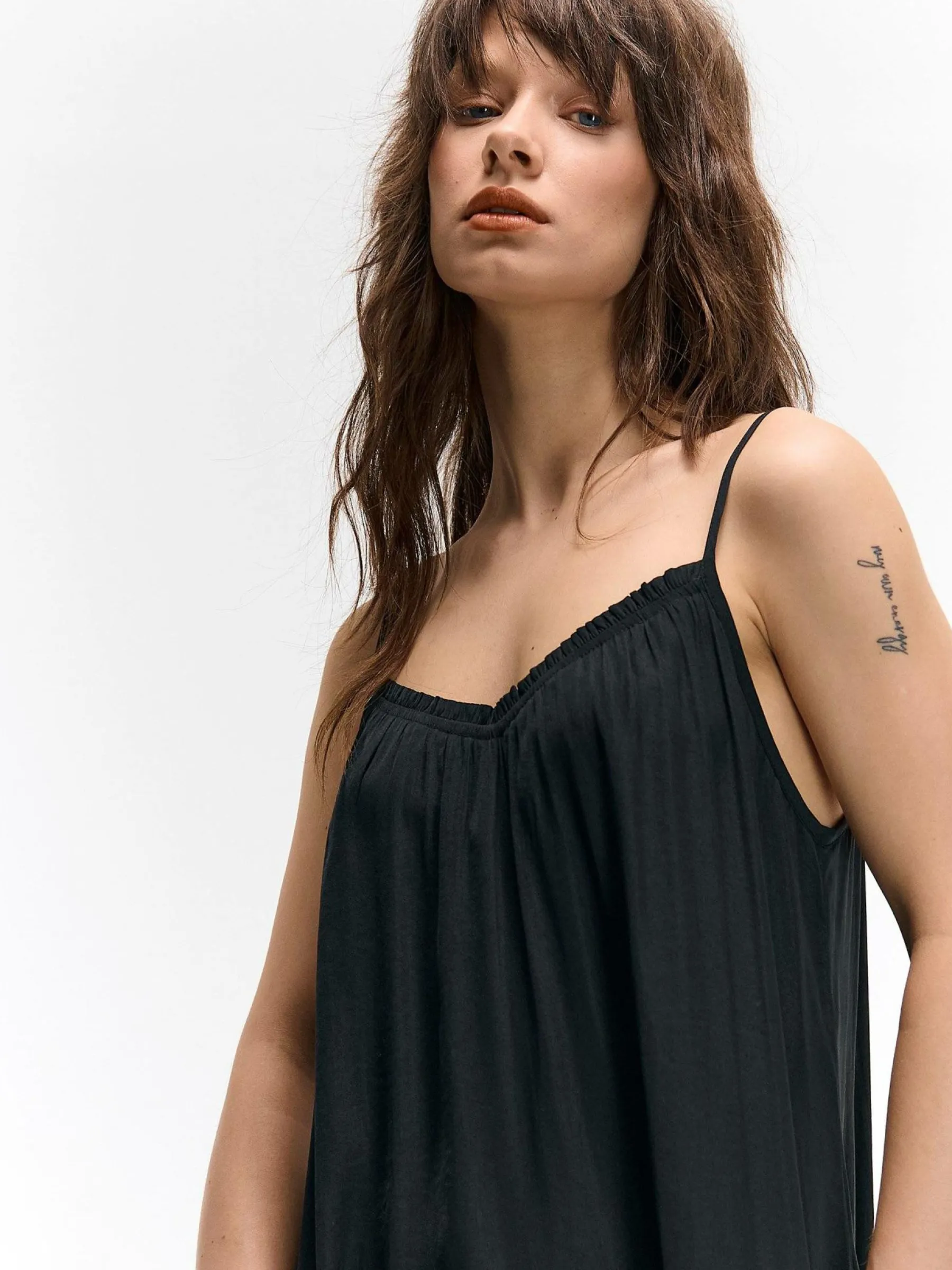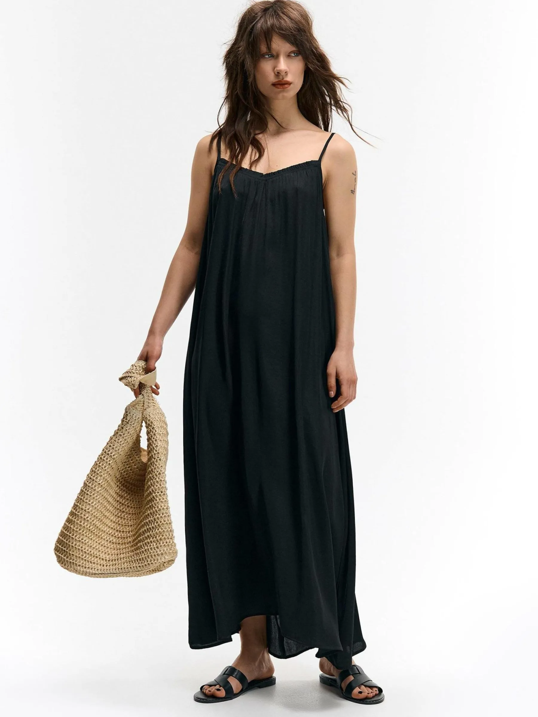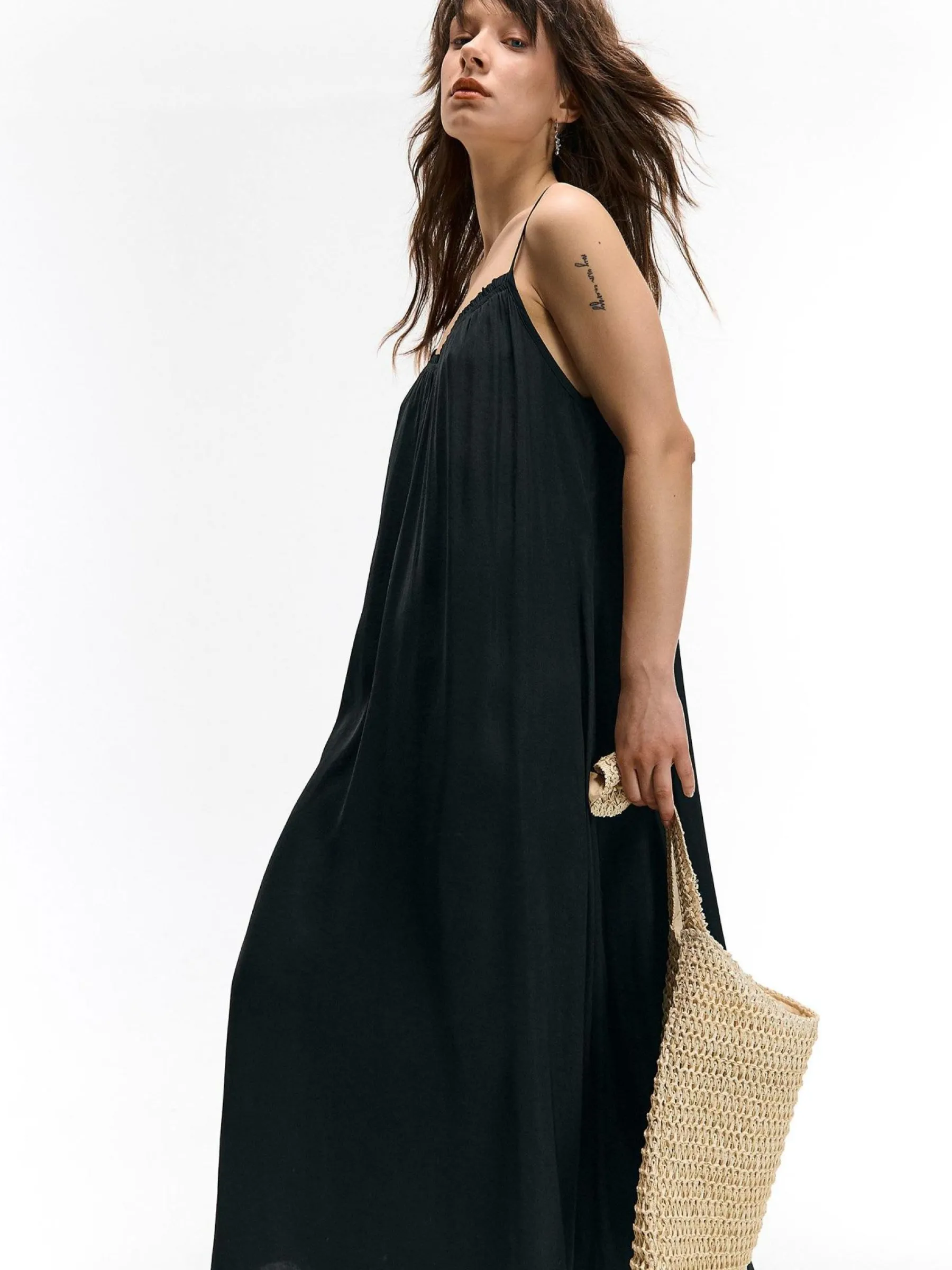 Kolor: czarnyKrój: regularTyp: sukienkaRekaw: bez rękawówDługość: maxiPattern style: pojedynczy kolorDetal: v-neck…