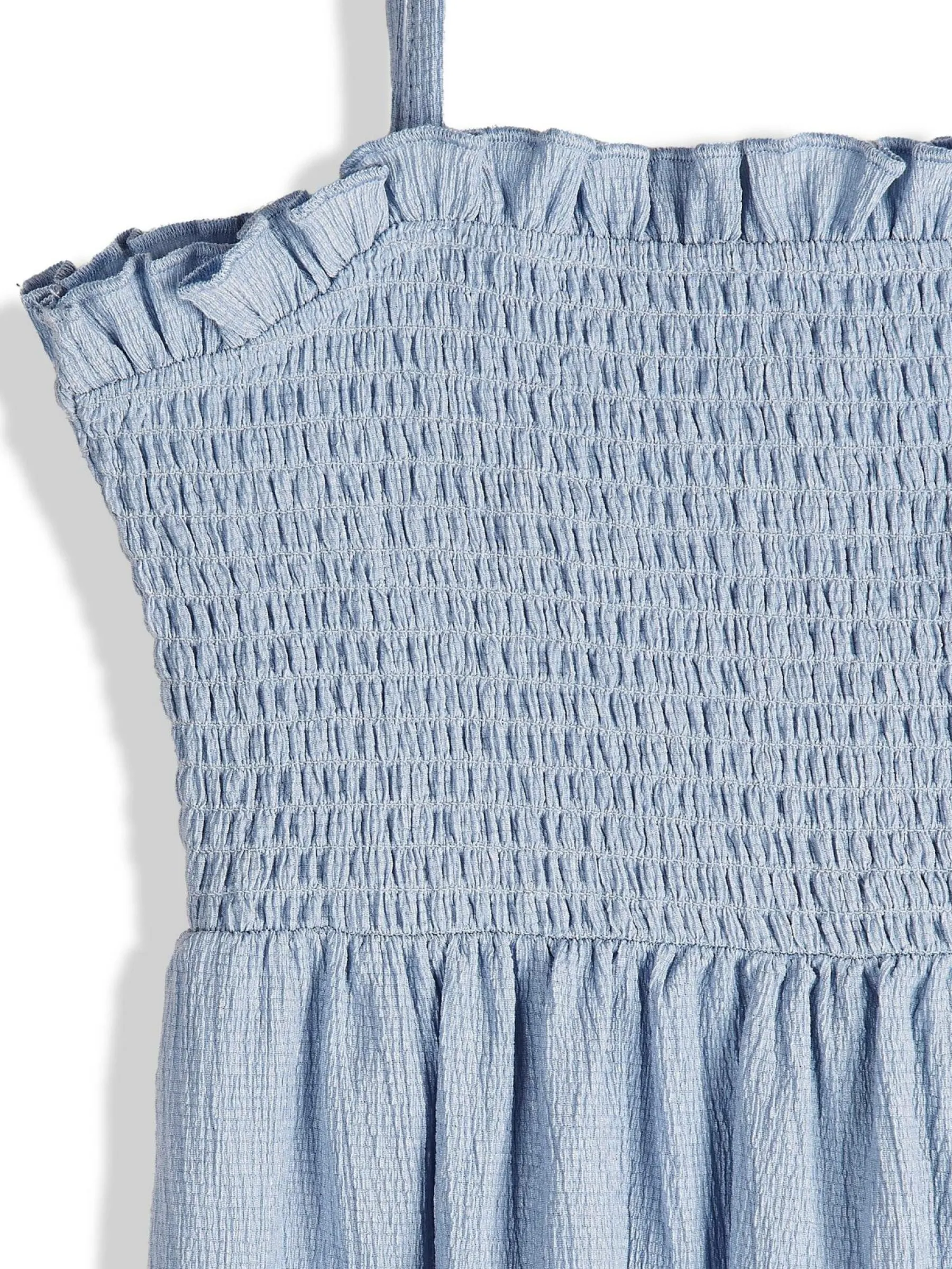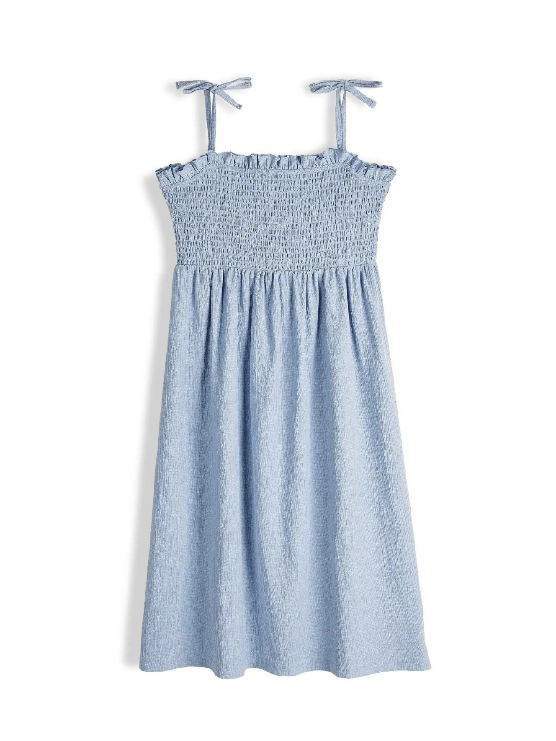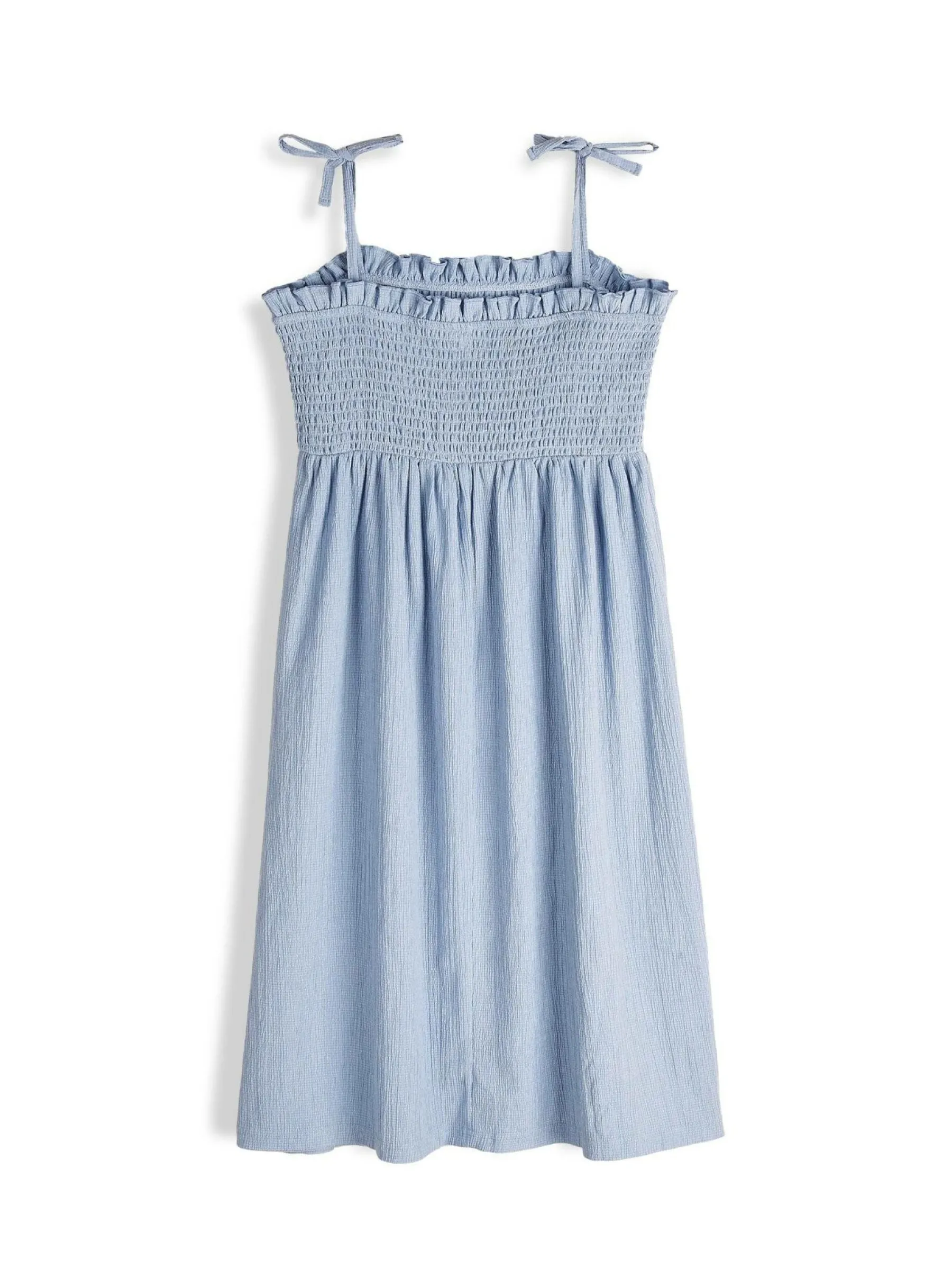 Kolor: niebieskiKrój: asy, z marszczeniemTyp: sukienkaRekaw: bez rękawówDługość: miniPattern style: pojedynczy kol…