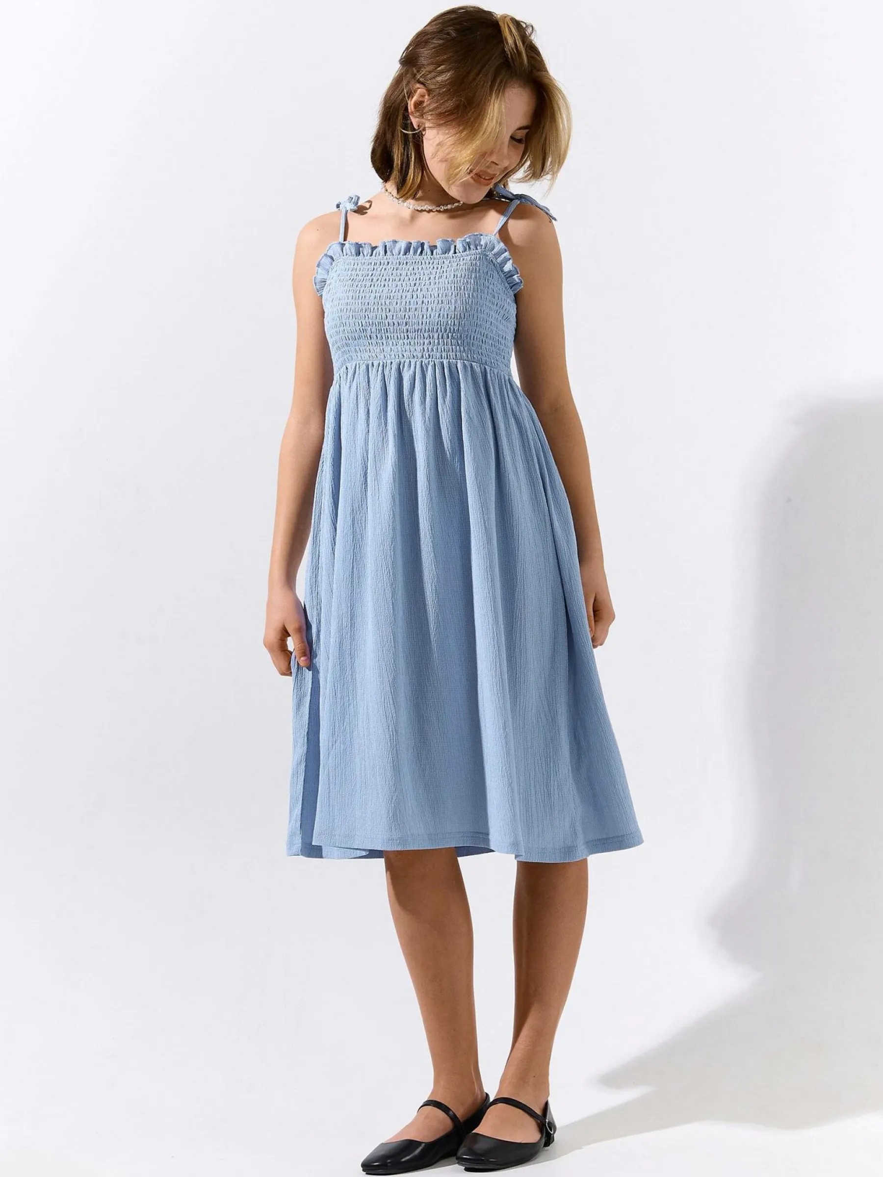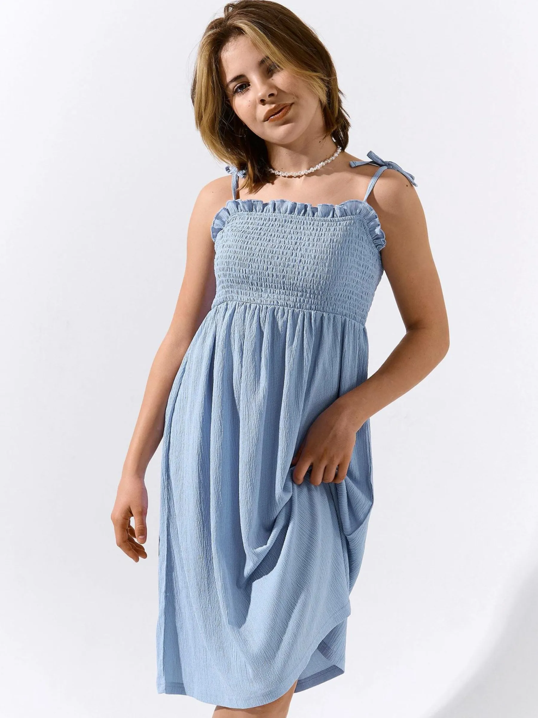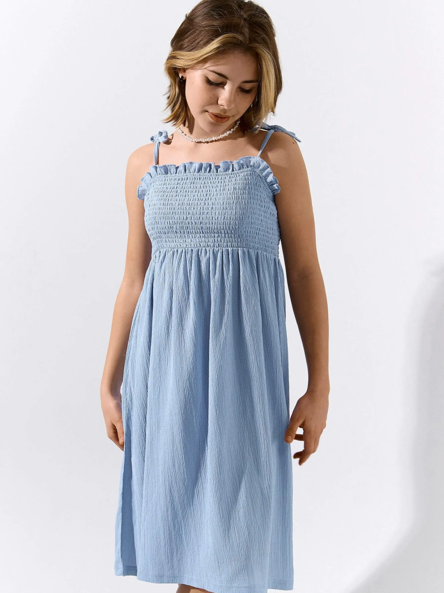 Kolor: niebieskiKrój: asy, z marszczeniemTyp: sukienkaRekaw: bez rękawówDługość: miniPattern style: pojedynczy kol…