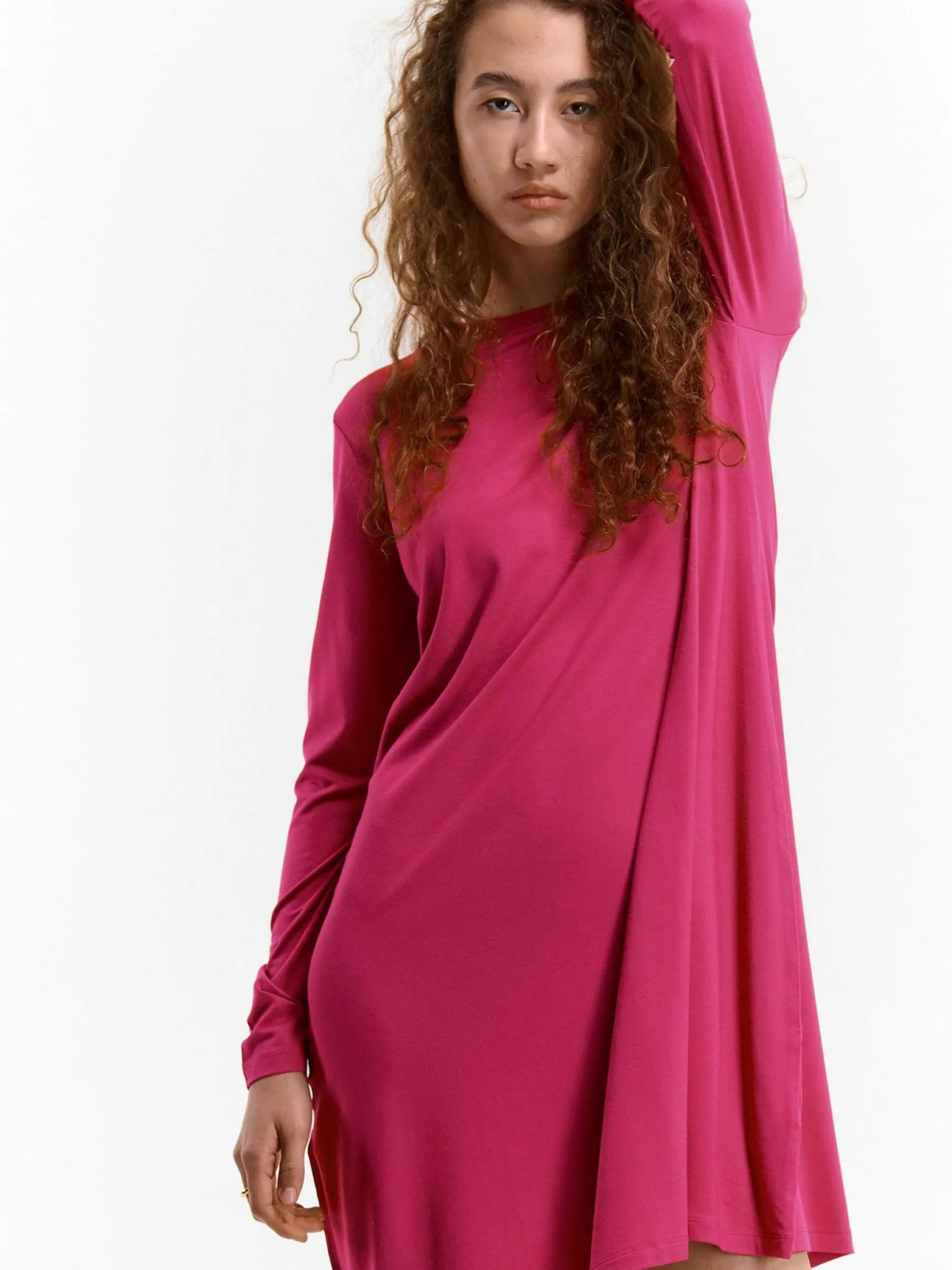 Kolor: różowyKrój: regular, oversizedTyp: sukienkaRekaw: długi rękawDługość: miniPattern style: pojedynczy kolor…
